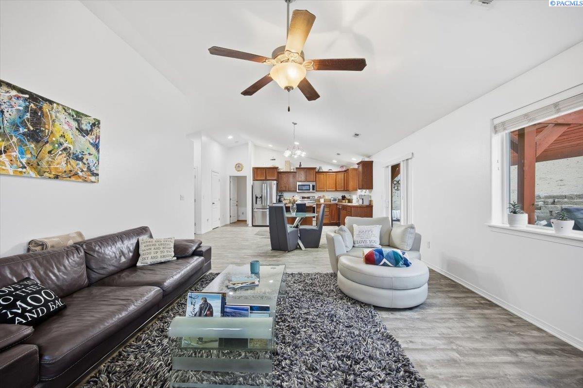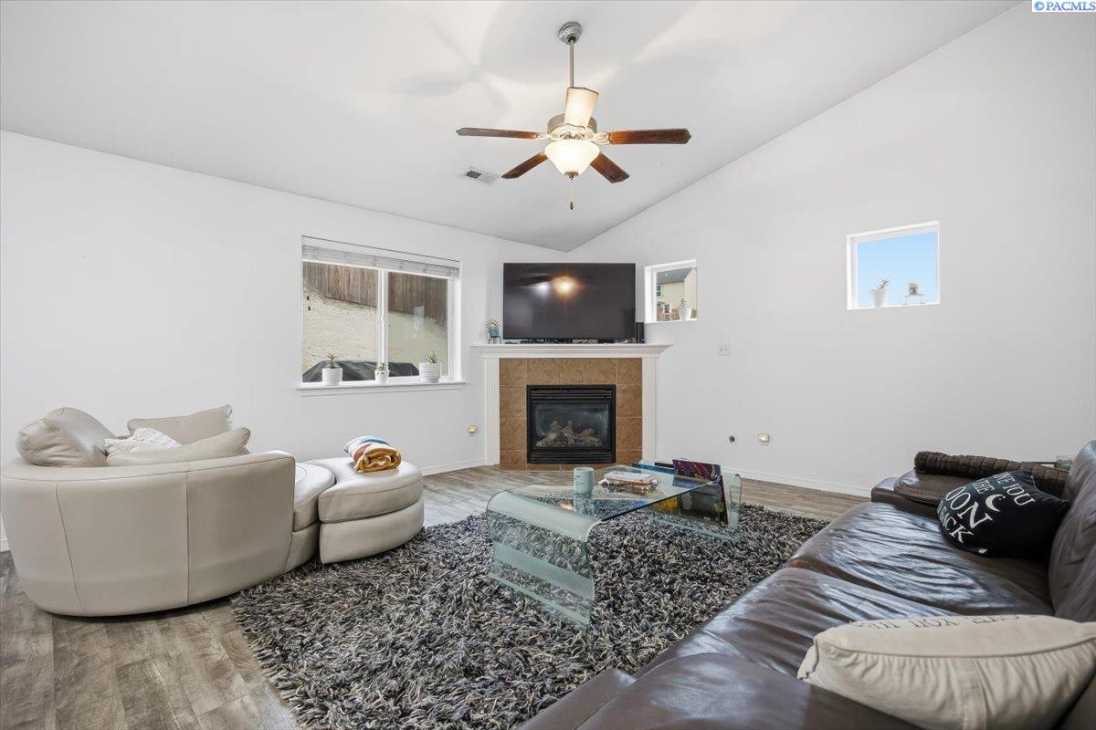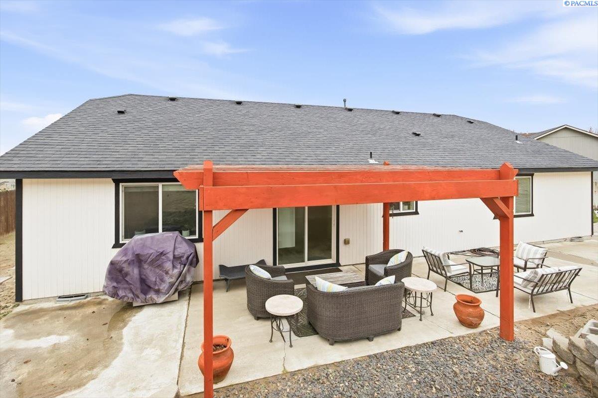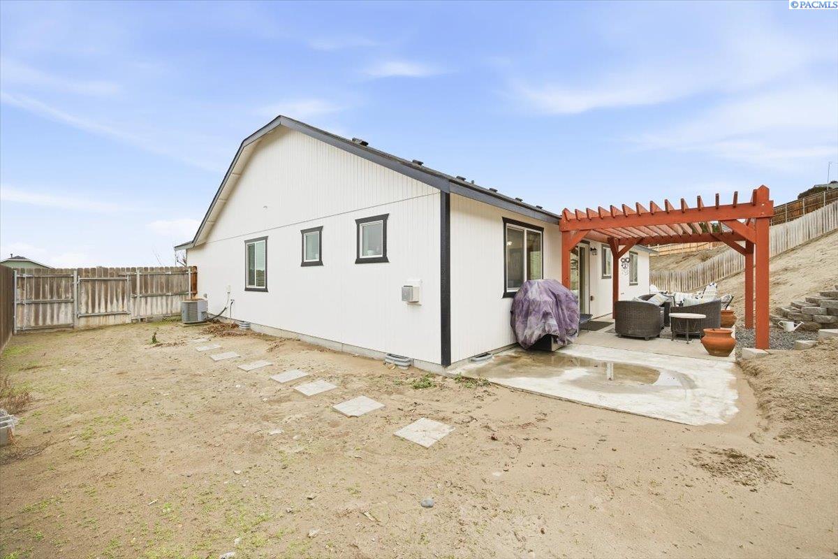 Welcome to 5002 Blue Sage Ln in West Pasco! Built on an oversized cul-de-sac for privacy without sacrificing convenience. This 4-bed, 2-bath home offers 1,600+ sq ft with an open layout, vaulted ceilings, and a seamless flow from the foyer to the kitchen and great room ideal for everyday living and entertaining. Three bedrooms share a full bath, while the primary suite is tucked away for privacy and features dual vanities and two closets. The front yard is beautifully maintained with a producing fruit tree (nectarines, peaches, plums, apricots). Out back, enjoy a blank-slate yard with a fire pit and pergola ready for your imagination. Quiet location, close to West Pasco shopping and dining. Come and make this your new home today!