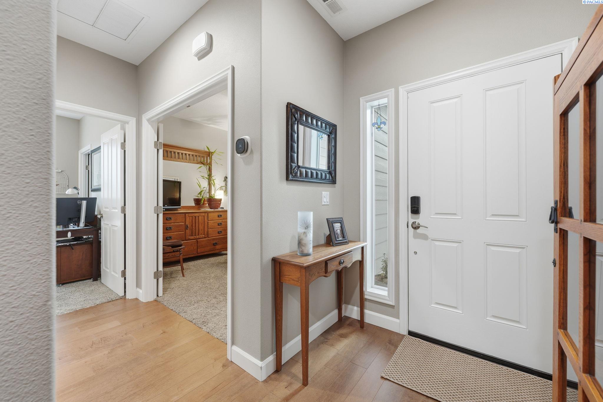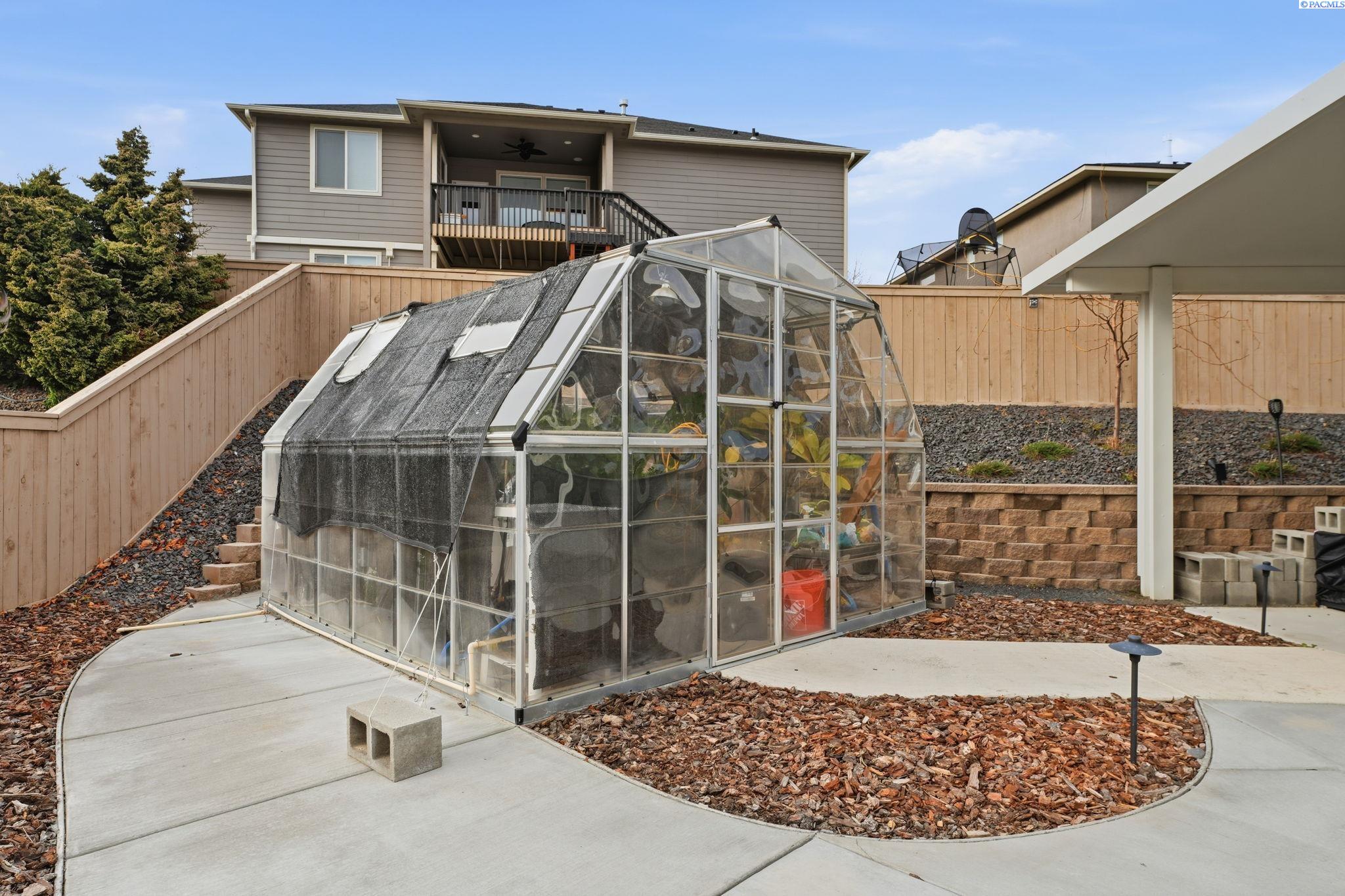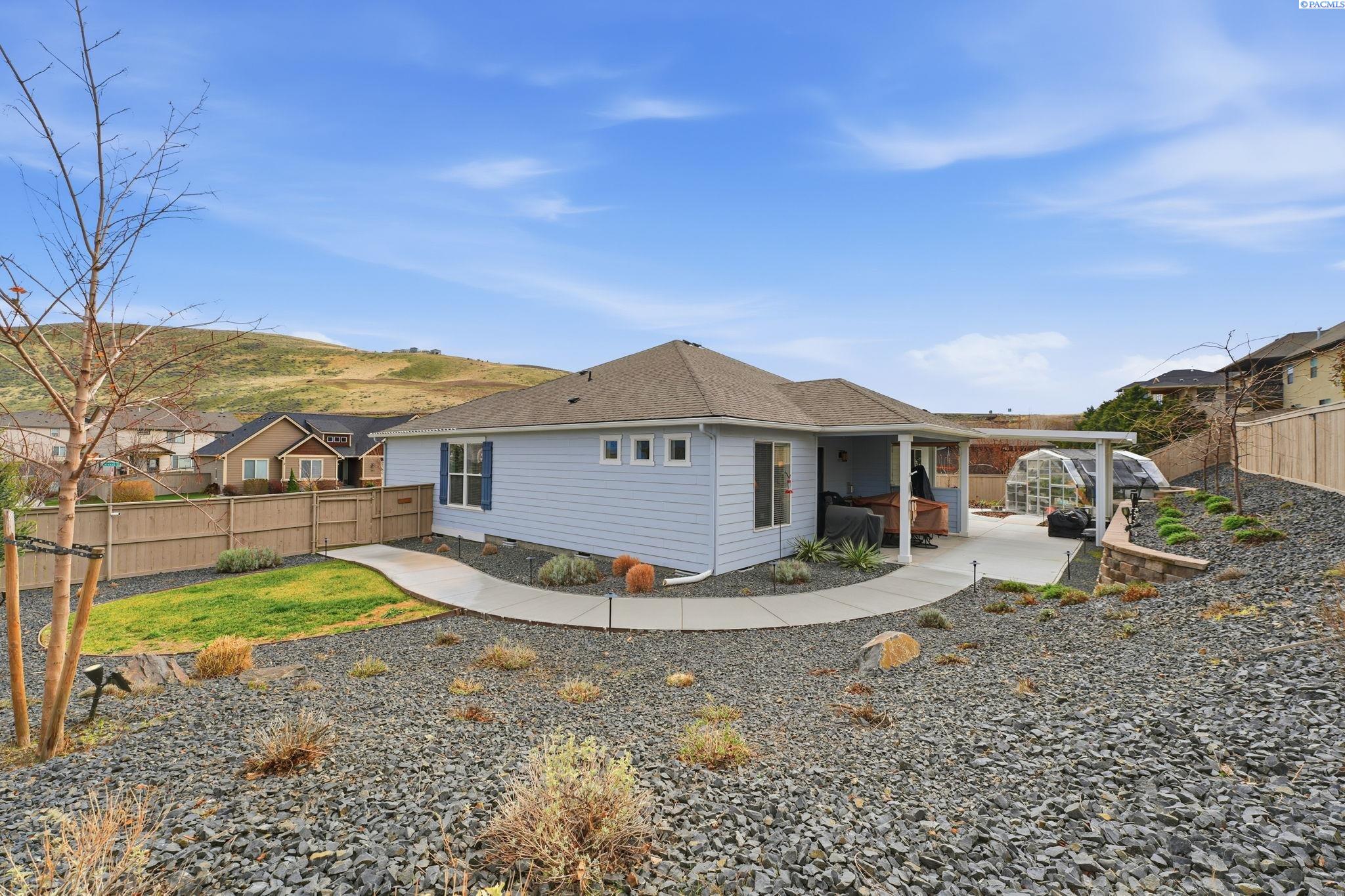 MLS# 289702 Looking to downsize or just want easy living all on one-level? This one's for you! Corner lot with a fully-fenced backyard that requires no mowing! A greenhouse is perfect for all of your horticultural hobbies and the large patio with walkway is great for entertaining and ease of mobility. Inside you'll find exquisite wood floors, a gorgeous kitchen including an island and gas range/oven. The gas fireplace in the living room provides a cozy place to curl up with a book. The split bedroom floorplan works so well for privacy with great separation between the primary bedroom and the two secondary bedrooms. Extremely well-cared for home that is clean and move-in ready for you.