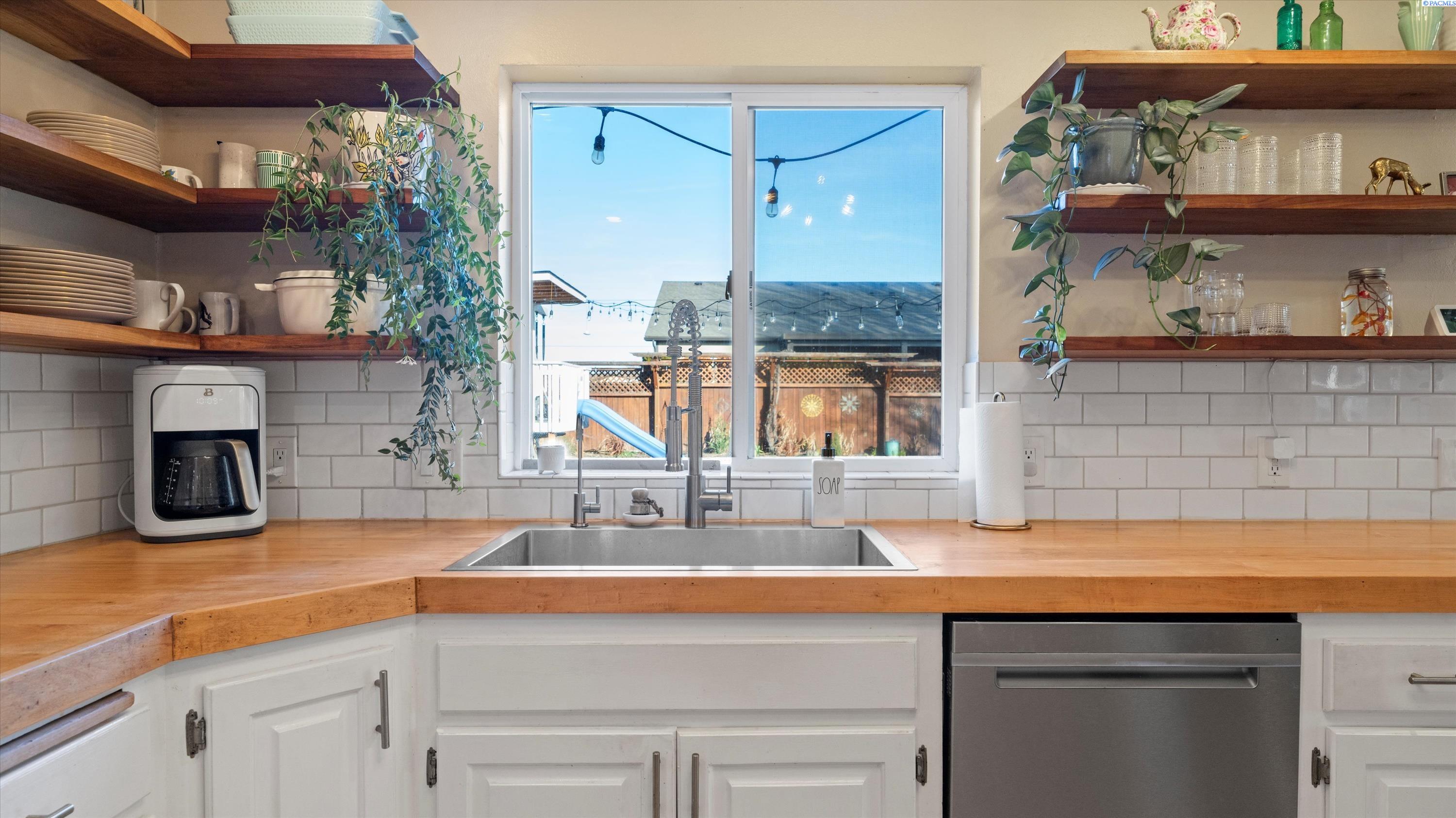 Charming and beautifully updated 1,473 sq ft rambler located at 4322 W 8th Ave. in Kennewick. This inviting home features 3 bedrooms plus a den and a 2-car garage. Interior updates include tile flooring throughout and LVP floors in the living room along with an electric fireplace that adds warmth and style. The updated kitchen showcases painted cabinets, subway tile backsplash, an stainless steel appliances. Both bathrooms have been tastefully updated and feature tile floors; the home offers 1.75 baths, including a primary suite with a tile shower. Recent upgrades include a newer HVAC system. Outside, enjoy a fully fenced, park-like yard with beautiful landscaping, a large covered patio, fresh exterior paint, and updated fixtures inside and out. Truly charming and move-in ready.