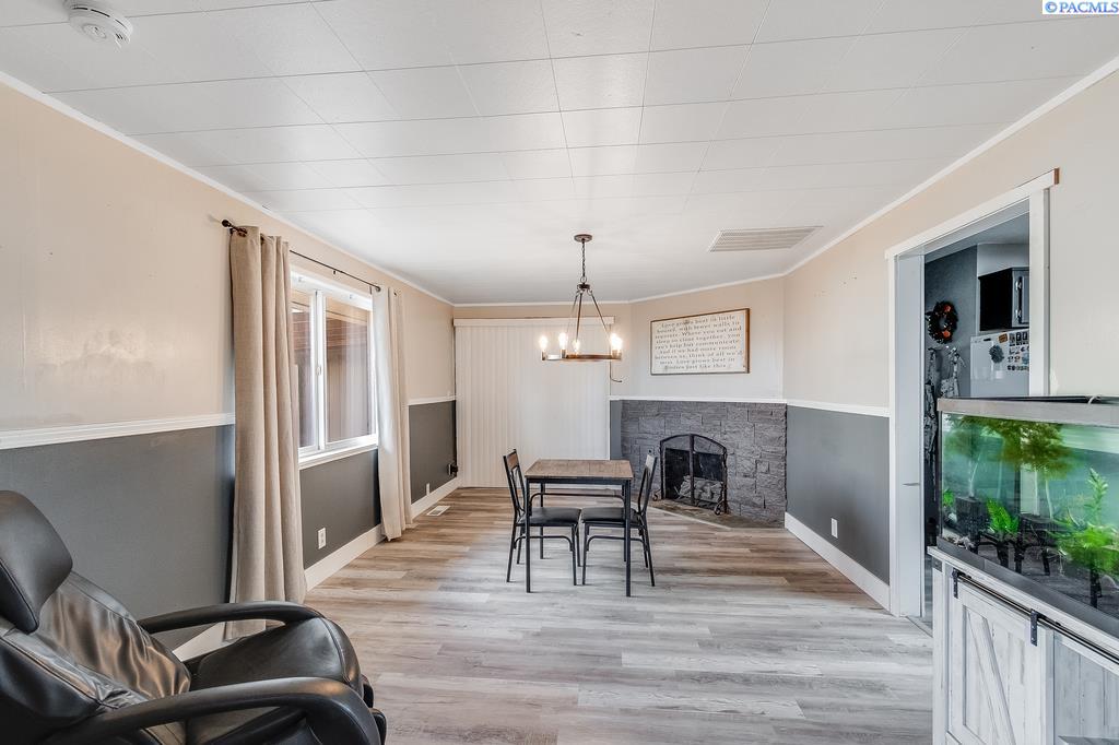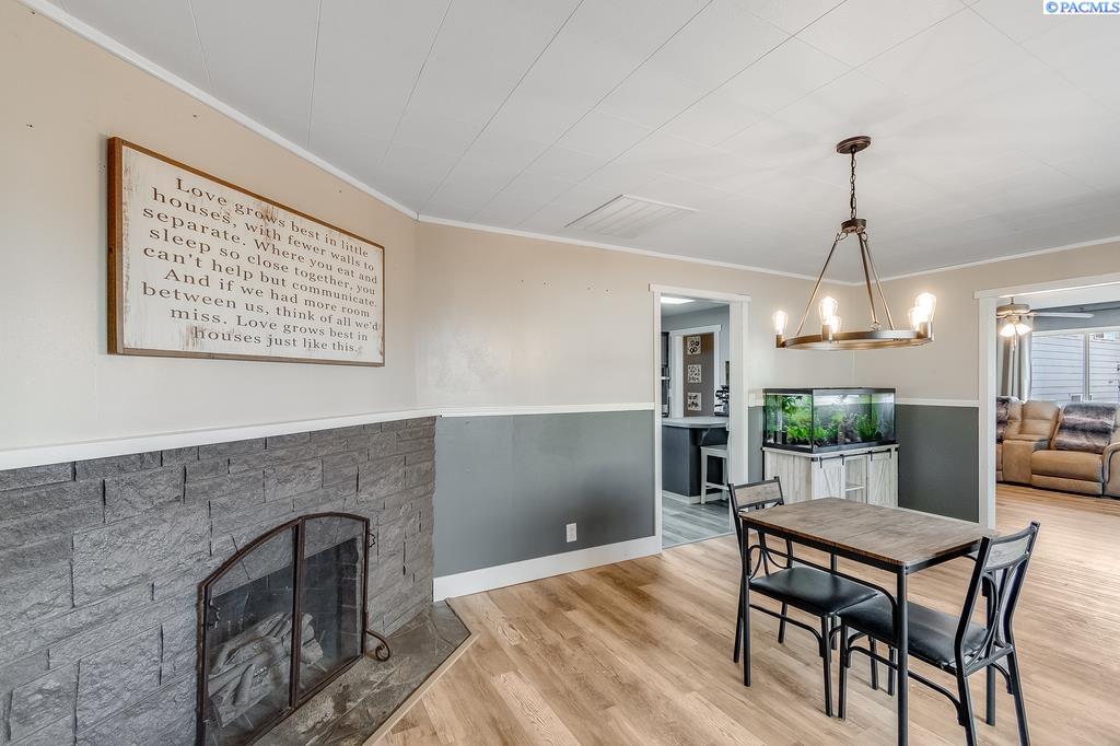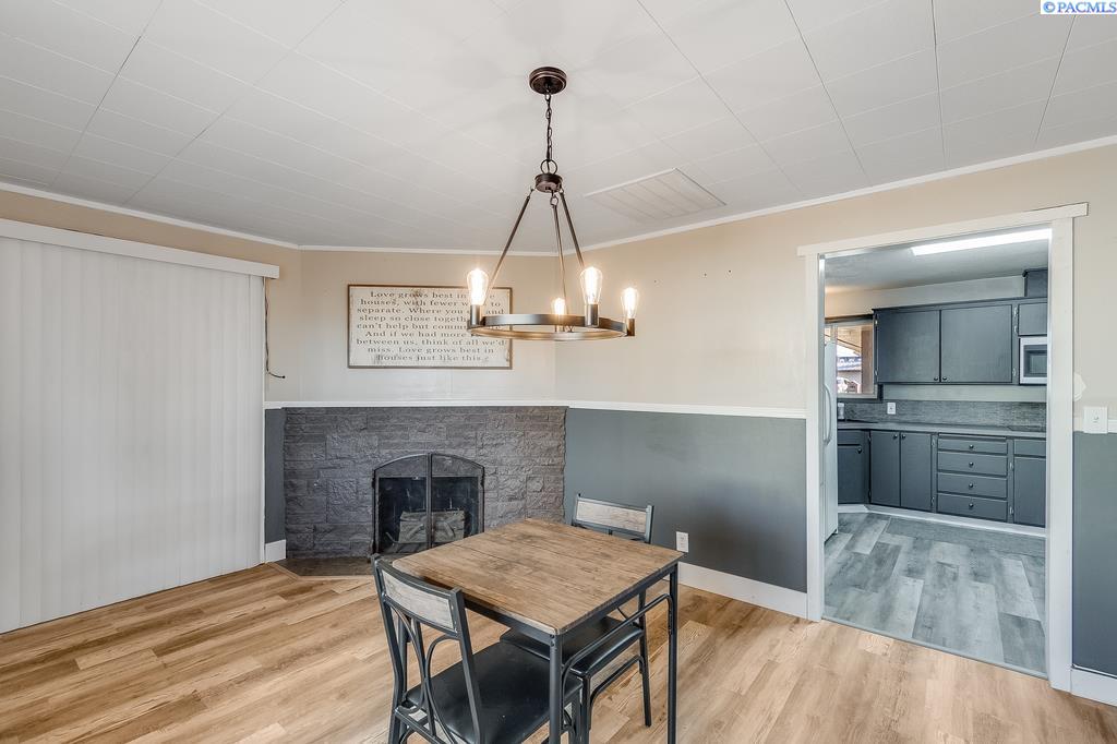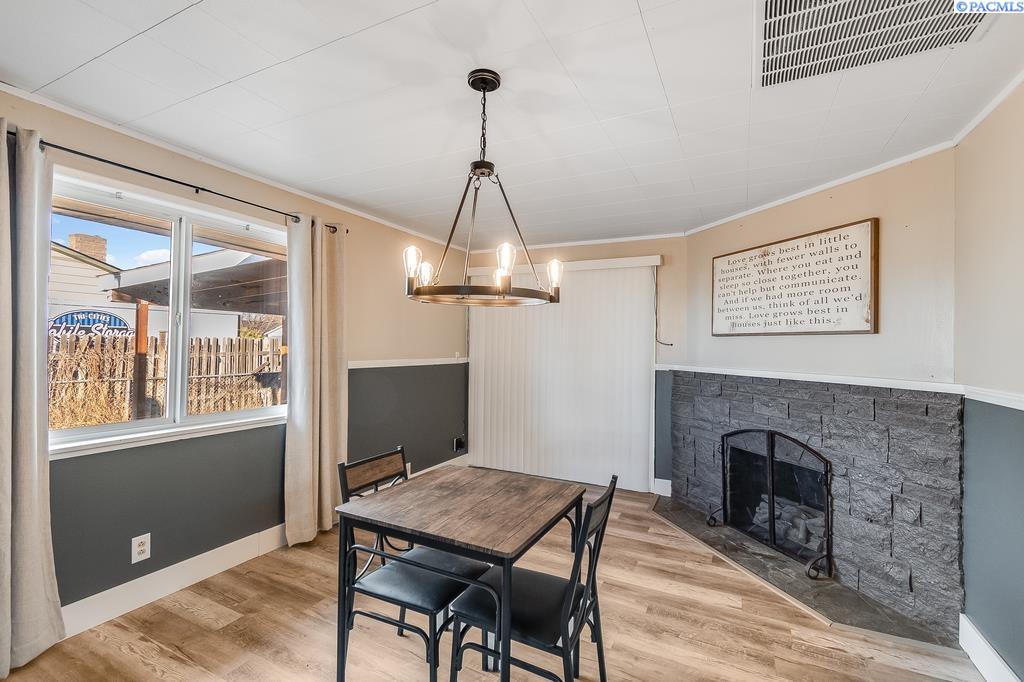 OPEN HOUSE SATURDAY (3/21) FROM 3-4 PM. MLS# 289744 Within easy walking distance to shopping and other city conveniences, but nestled away off the beaten path, you'll find this brick beauty. The corner lot is nearly a quarter acre in size and is fully fenced. Storage is plenty with two separate areas and a two car attached carport. When you enter the home you'll appreciate the new easy-maintenance LVP floating floors. Underneath them are the original hardwood. The kitchen has been updated and connects to the dining/family room with fireplace. The formal living room is generous in size making entertaining a breeze. Three nice-sized bedrooms share an updated bathroom. The laundry/half bath is located conveniently near the back door. Enjoy the upcoming harvest of pear, cherry, nectarine, peach, apple, various grapes, blackberries and raspberries. YUM! This home is move-in ready!