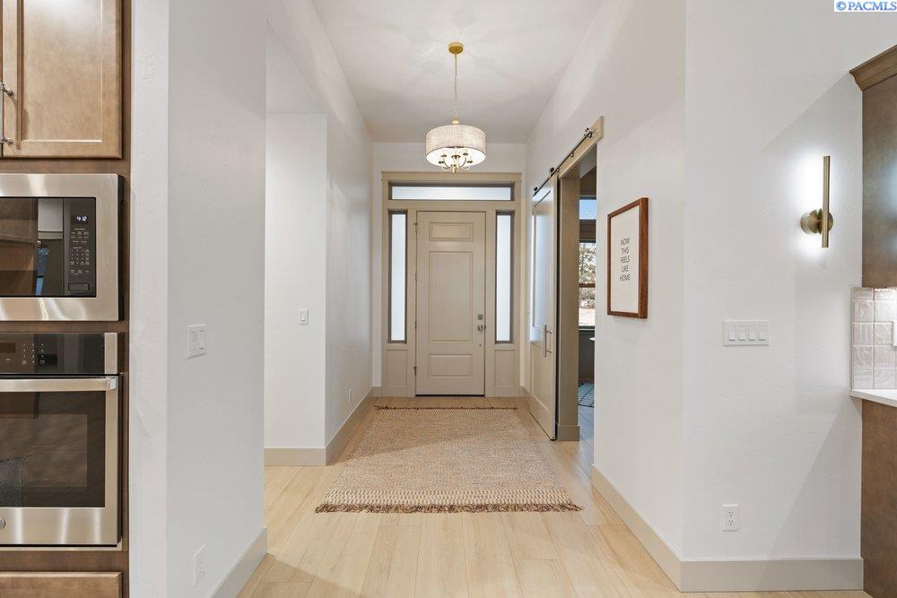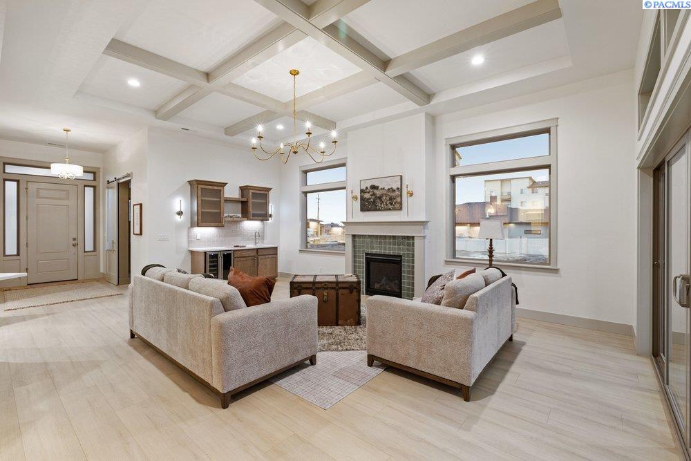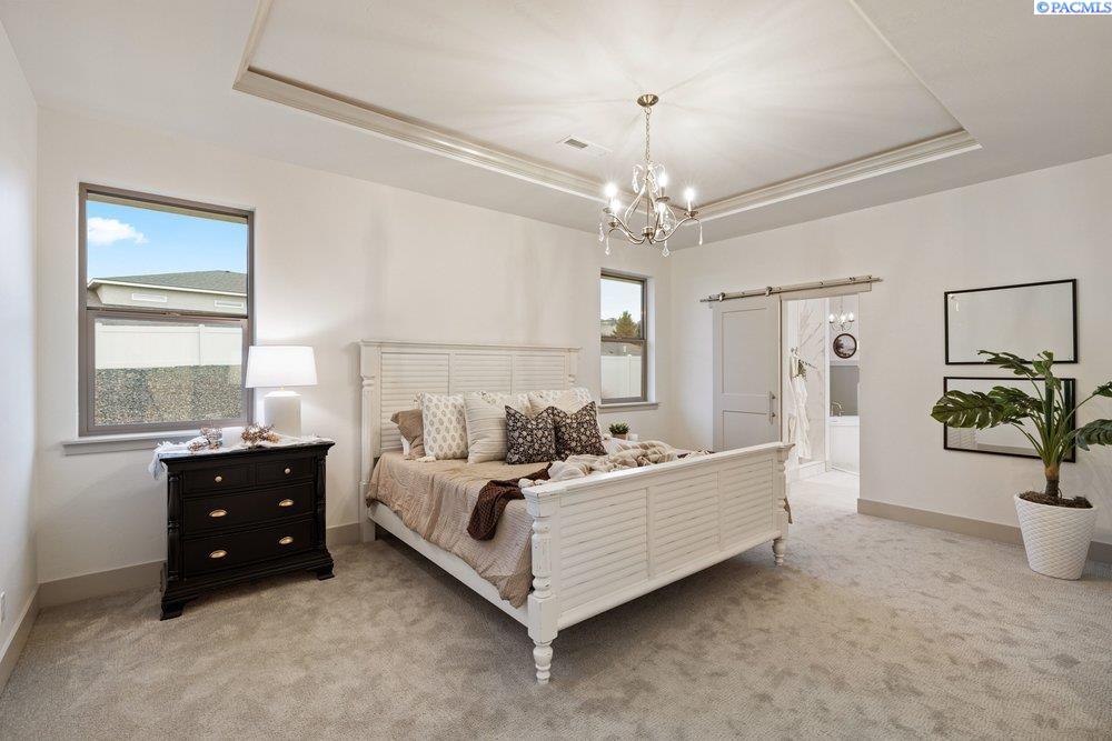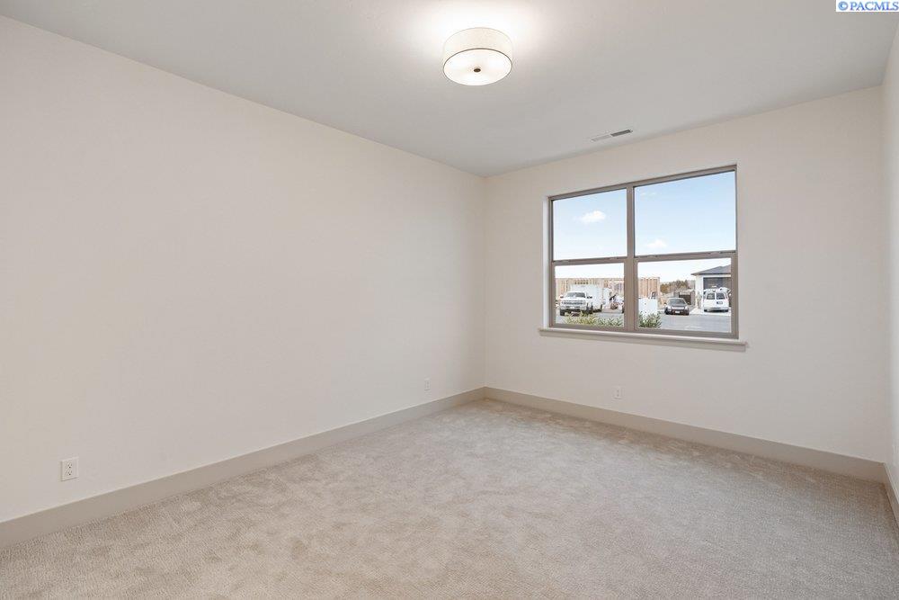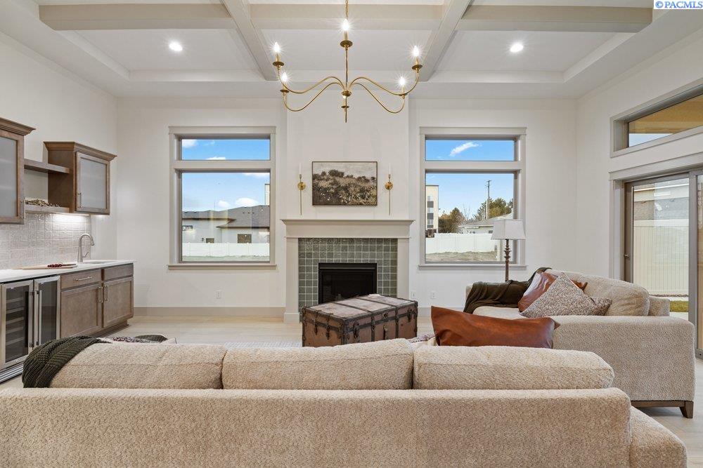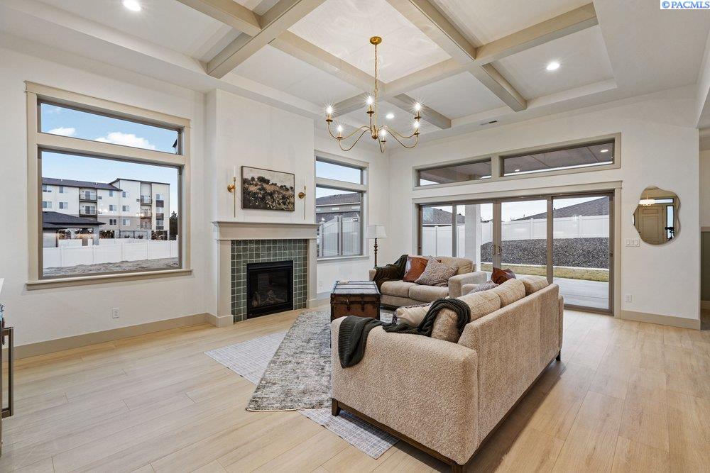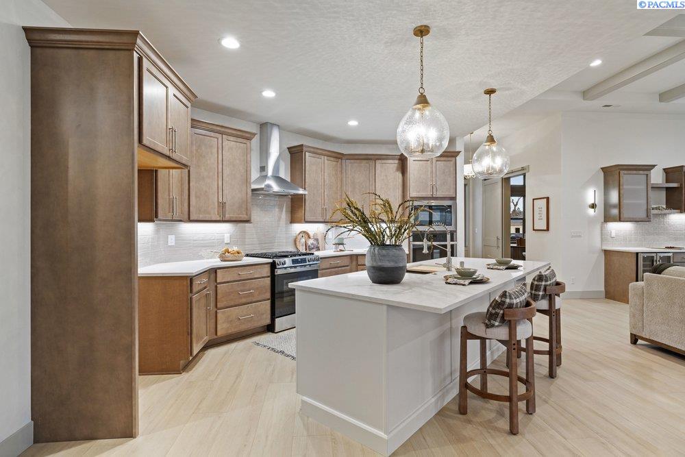 MLS#289745. NO HOA!! Brand-new 2025 construction located in the heart of West Kennewick. This thoughtfully designed 2,421 sq ft home offers 3 bedrooms, a large, dedicated office, and a functional, open floor plan. Features include soaring 11-foot ceilings with box-beam details in the family room, wide-plank flooring, and an extensive triple-pane window package with transom windows that provide an abundance of natural light. The kitchen is equipped with quartz countertops, double ovens, stainless steel appliances, and timeless finishes ideal for everyday living and entertaining. The laundry room is generously sized and includes upper cabinetry for added storage. Spacious bedrooms throughout, including a second primary bedroom/in-law suite with an ensuite bathroom for added privacy. The exterior features a stucco finish, professionally landscaped and a fully fenced backyard, and an expansive covered patio perfect for outdoor enjoyment. 3-car tandem garage with an oversized third bay measuring 49 feet deep, ideal for RV/Boat parking, a workshop, or additional storage. Conveniently located near shopping, dining, schools, and all city amenities. This home sits in a quiet cul-de-sac and the backyard is a private oasis. Garage is 21'6 wide by 29'6 deep on the 2-car side and 14 feet wide by 49 feet deep on the 3rd tandem bay.
