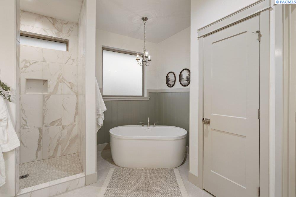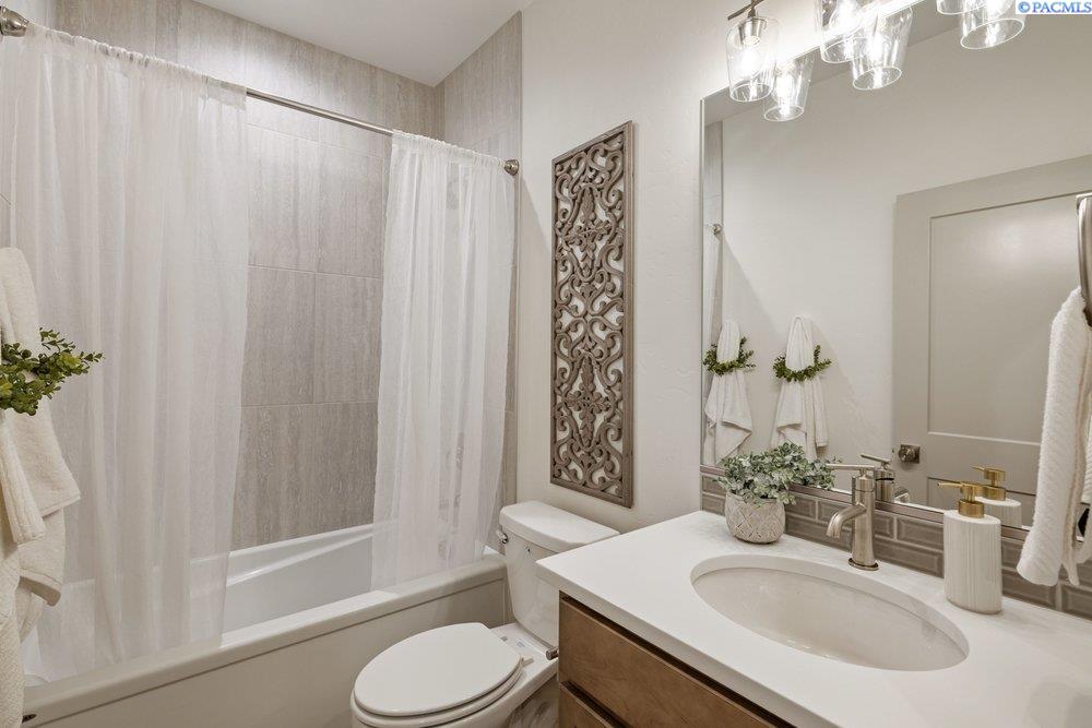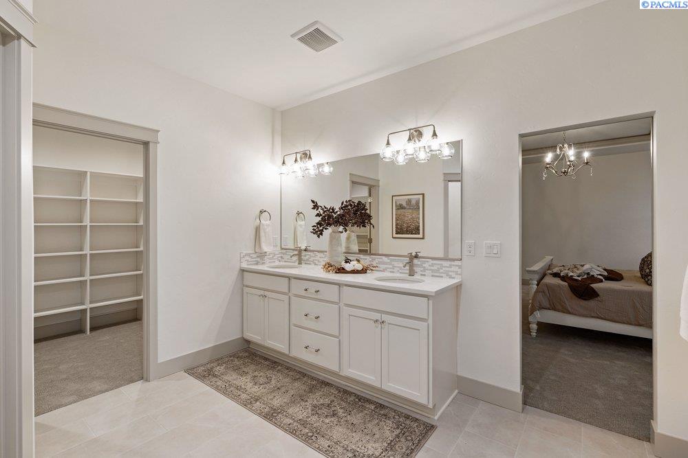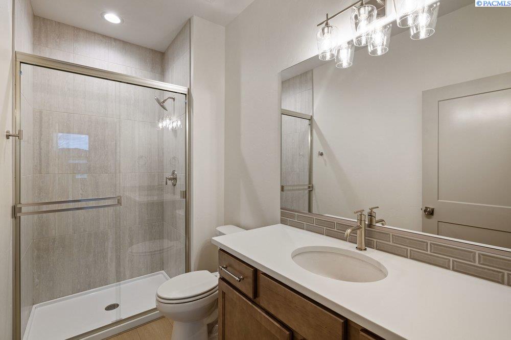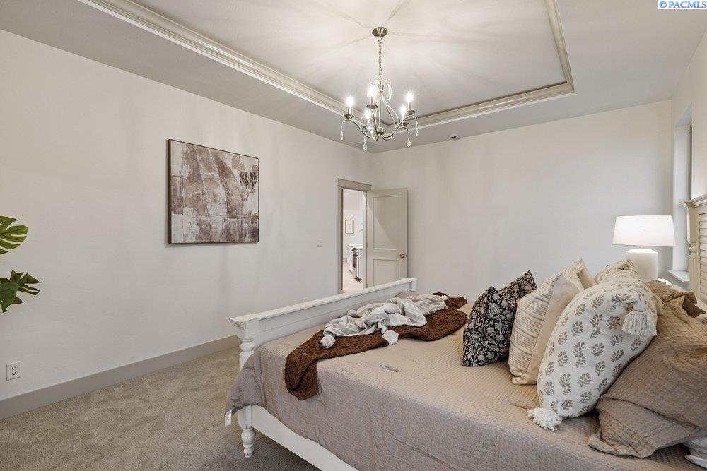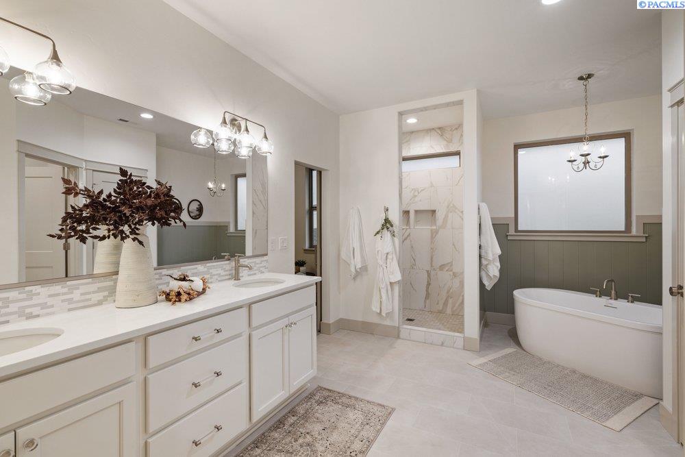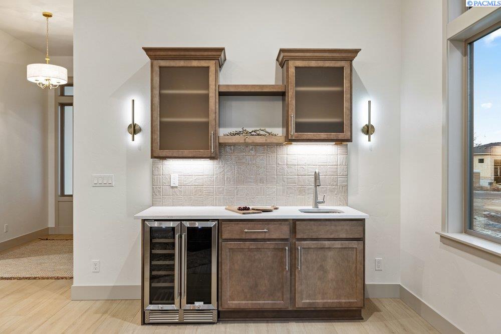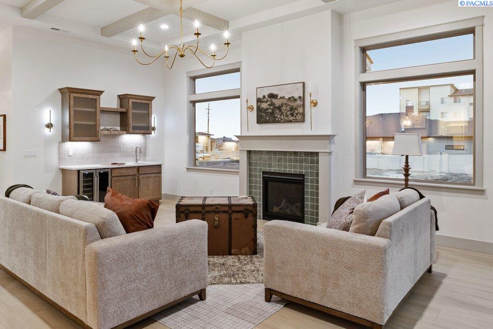 MLS#289745. NO HOA!! Brand-new 2025 construction located in the heart of West Kennewick. This thoughtfully designed 2,421 sq ft home offers 3 bedrooms, a large, dedicated office, and a functional, open floor plan. Features include soaring 11-foot ceilings with box-beam details in the family room, wide-plank flooring, and an extensive triple-pane window package with transom windows that provide an abundance of natural light. The kitchen is equipped with quartz countertops, double ovens, stainless steel appliances, and timeless finishes ideal for everyday living and entertaining. The laundry room is generously sized and includes upper cabinetry for added storage. Spacious bedrooms throughout, including a second primary bedroom/in-law suite with an ensuite bathroom for added privacy. The exterior features a stucco finish, professionally landscaped and a fully fenced backyard, and an expansive covered patio perfect for outdoor enjoyment. 3-car tandem garage with an oversized third bay measuring 49 feet deep, ideal for RV/Boat parking, a workshop, or additional storage. Conveniently located near shopping, dining, schools, and all city amenities. This home sits in a quiet cul-de-sac and the backyard is a private oasis. Garage is 21'6 wide by 29'6 deep on the 2-car side and 14 feet wide by 49 feet deep on the 3rd tandem bay.