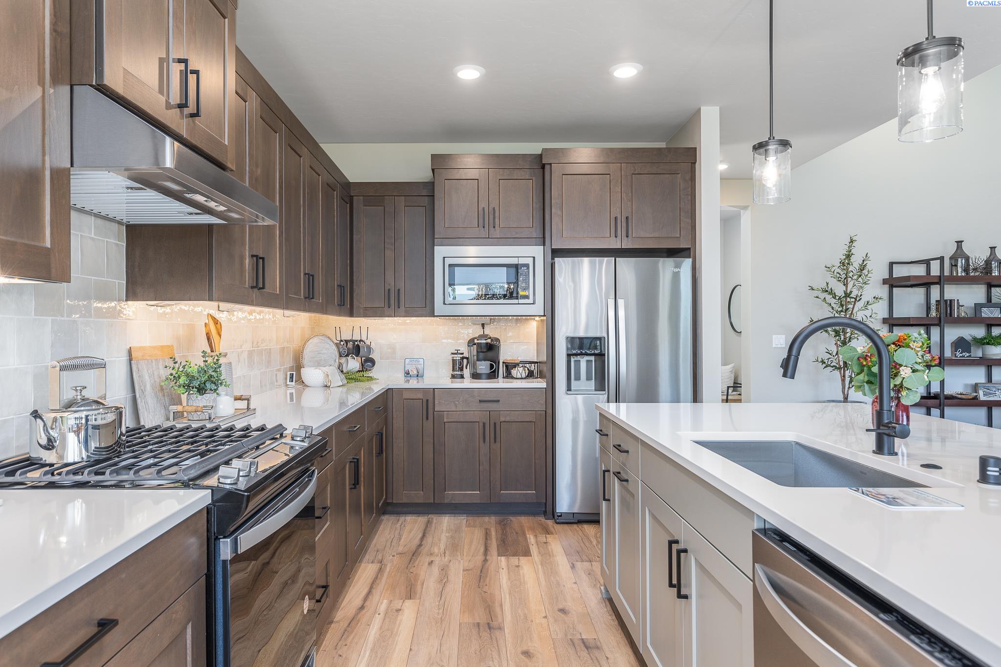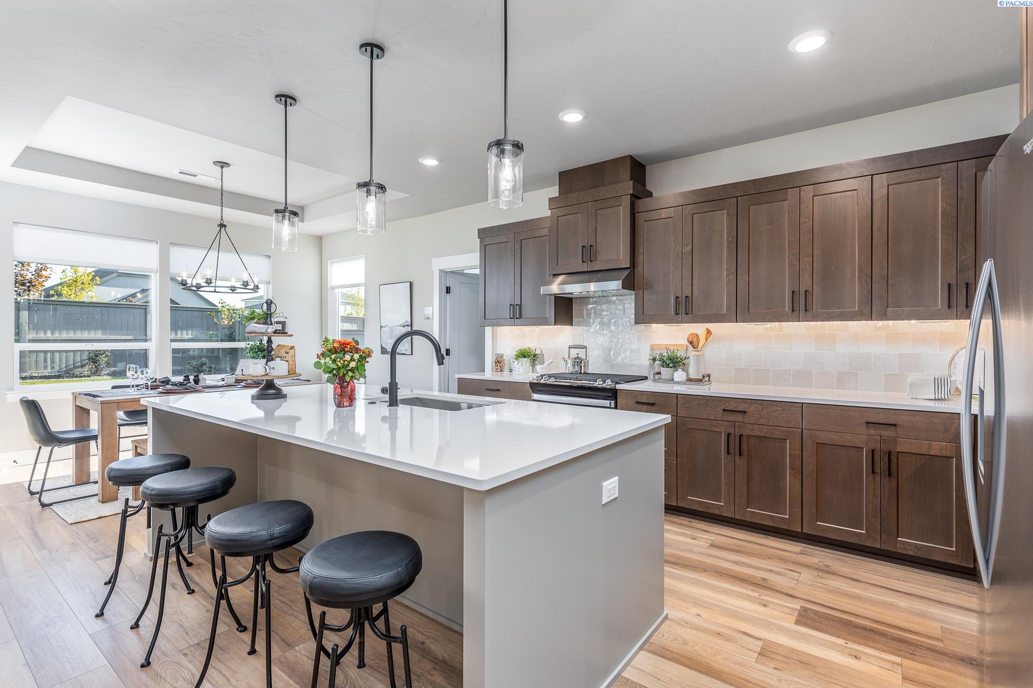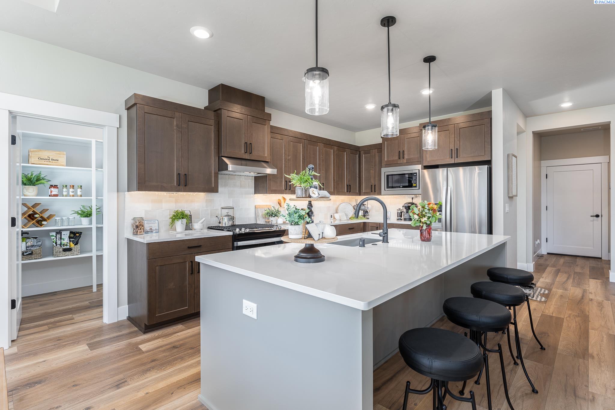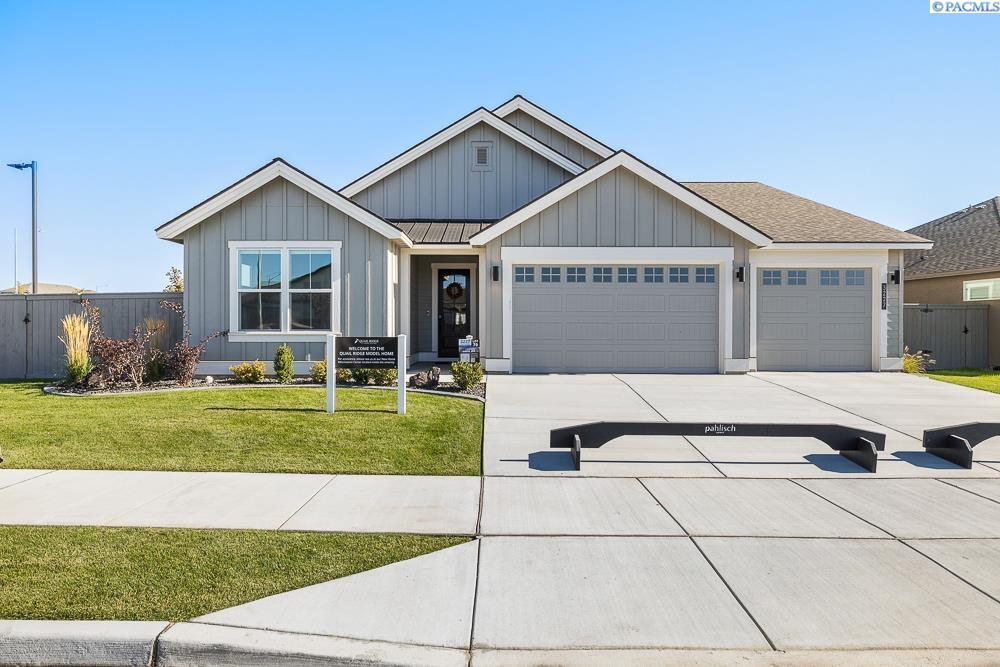 MLS# 289754 Welcome to Pahlisch Homes â where timeless design meets resort-style living. This former model home is now available and showcases the stunning Carrington Rambler located in the highly sought-after Quail Ridge at Horn Rapids community. Step into a lifestyle of comfort and convenience surrounded by premier amenities including a sparkling pool, clubhouse, and fitness center. Situated on Lot 70, Phase III, this meticulously curated rambler offers the perfect blend of elegance, functionality, and modern living. The Carrington features 3 spacious bedrooms, 3 bathrooms, and a 3-car garage, all highlighted by top-of-the-line finishes and thoughtful design throughout. The open-concept great room is bathed in natural light, boasting soaring vaulted ceilings and a dramatic full-height gas fireplaceâcreating a warm and inviting space ideal for both entertaining and everyday living. The gourmet kitchen is a true showstopper with quartz slab countertops, stainless steel appliances, a generous center island, custom soft-close cabinetry, and sleek hardware. A large walk-in pantry provides exceptional storage and organization.A private secondary guest suite with its own bathroom adds flexibility for visitors or multi-generational living. As with all Pahlisch Homes, this residence comes equipped with Smart Home technology, including a smart thermostat, smart deadbolt, and smart garage door openerâkeeping your home secure, efficient, and connected. Enjoy front yard landscaping and fully enclosed fencing, enhancing both curb appeal and privacy. This former model offers designer touches and elevated finishes rarely available in new construction. Schedule your private showing today and experience why the Carrington is the perfect place to call home.