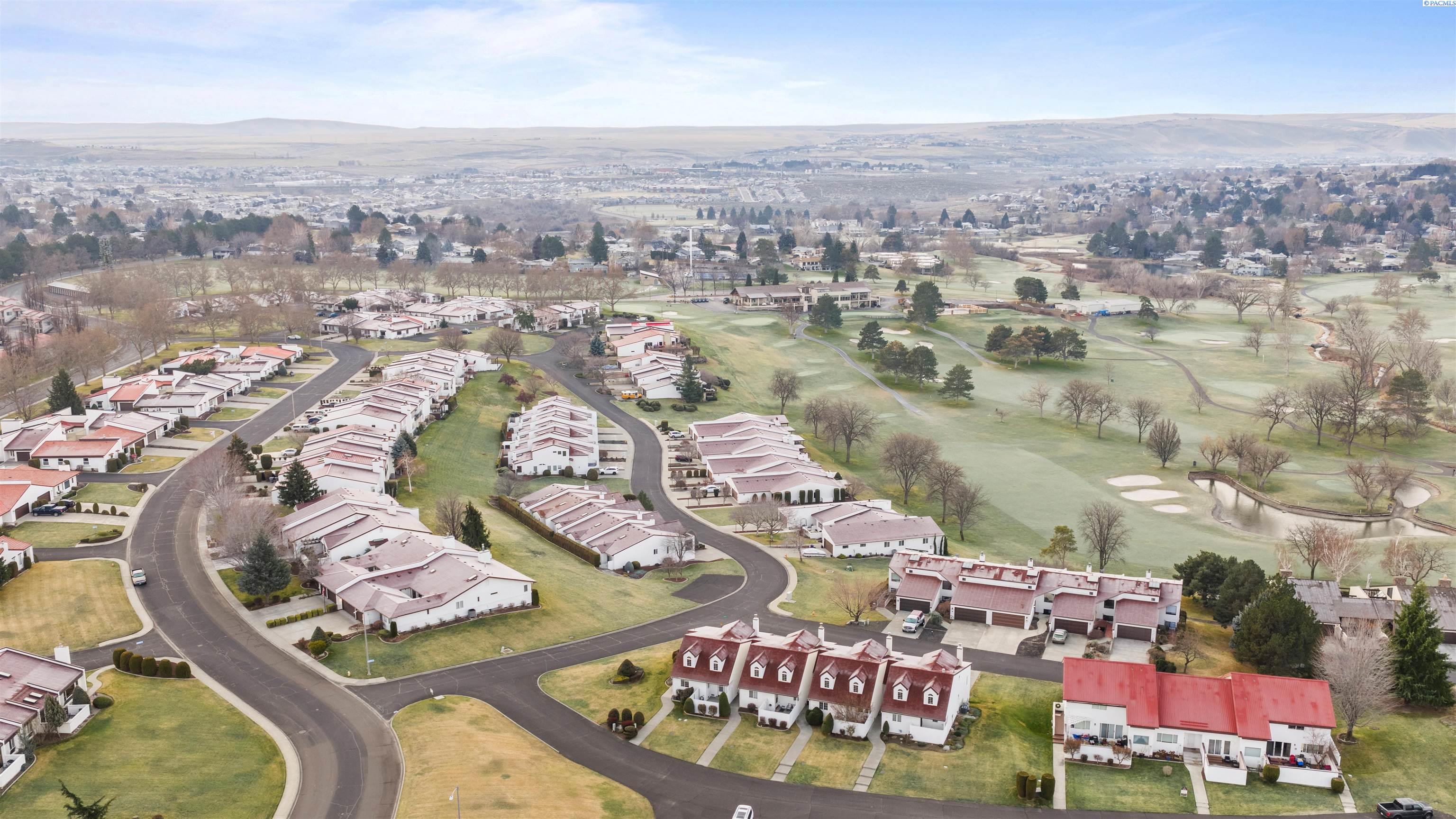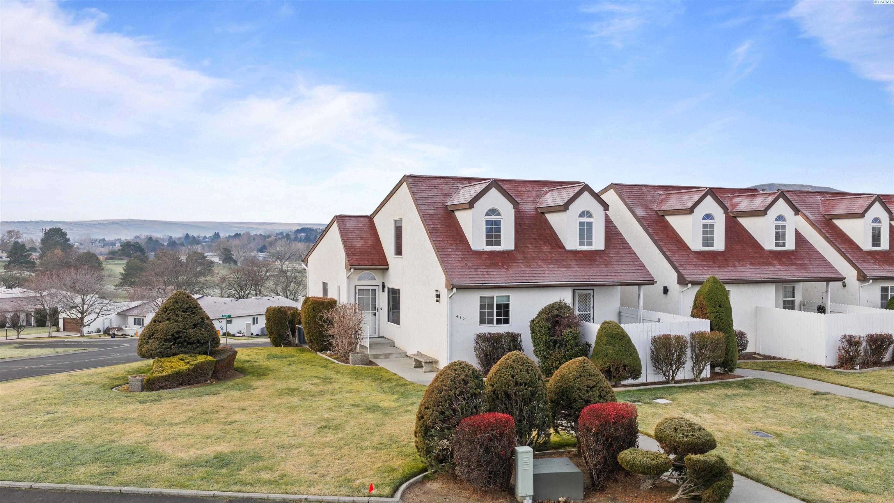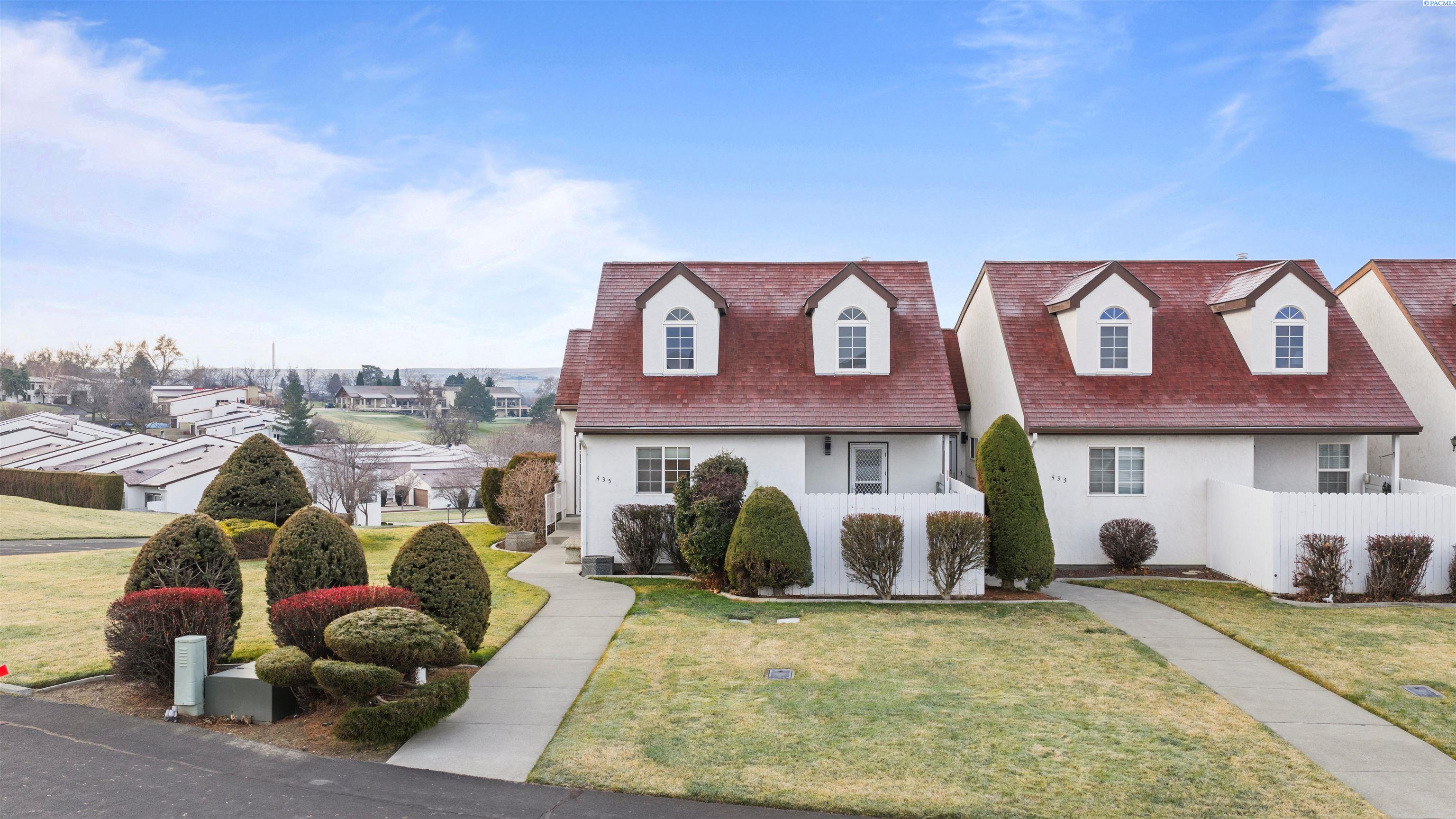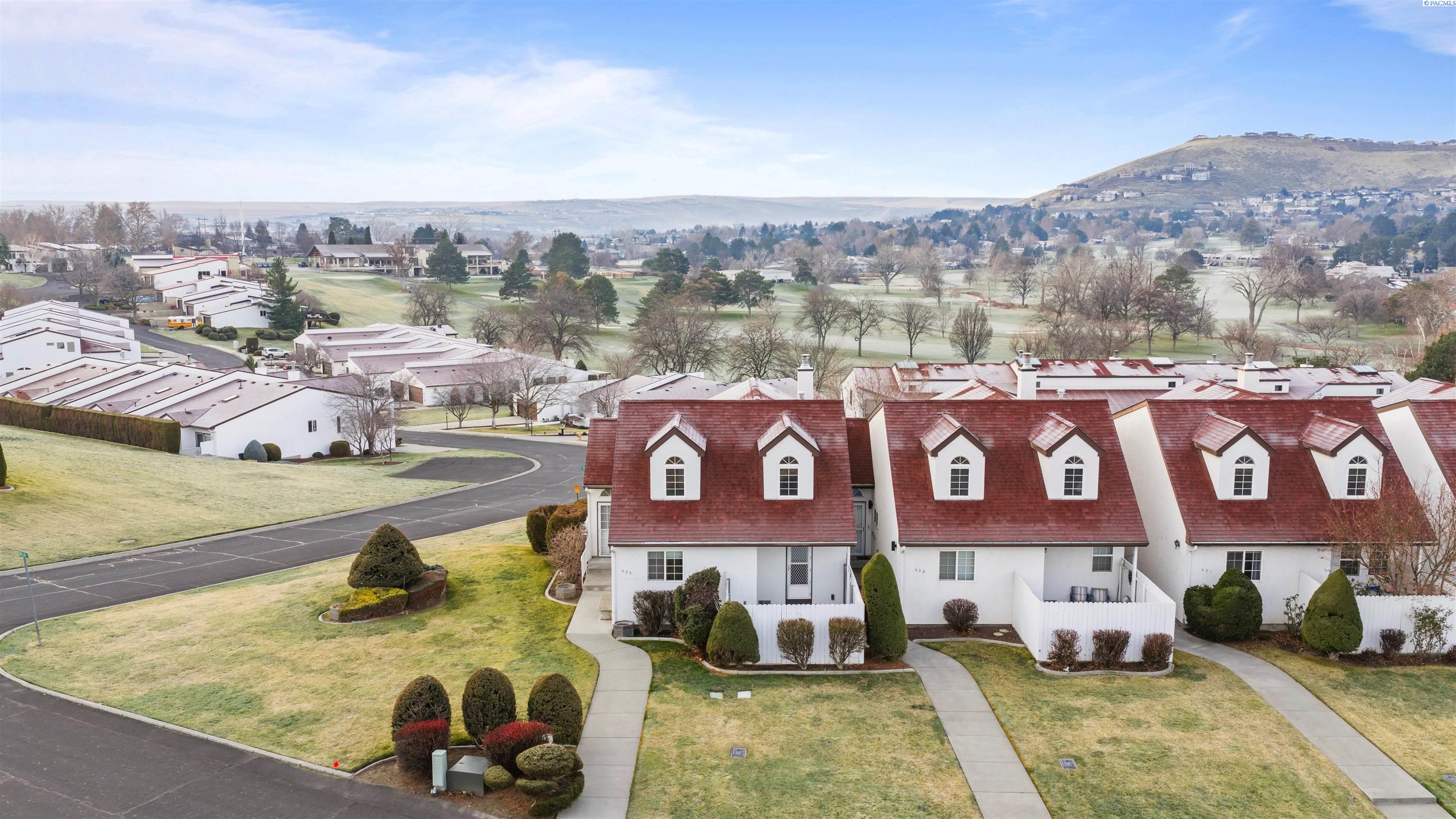 Keep an eye on all the golfing action right from your living room! This updated Meadow Springs TownHome features unobstructed views of the 18-hole championship golf course, Clubhouse, and the Horse Heaven Hills!! What more could you ask for. Except to be just a short ride from the first tee. And to have your very own golf cart garage. If you are a player or just a spectator, this is the HOME for you. Beautifully refreshed with new, modern lighting and matte black hardware throughout, new countertops, sinks, mirrors and toilets in the bathrooms and newer paint, carpet and furnace. The kitchen boasts a new sink, faucet, newer appliances and a sunset view that can't be matched. With a very open floorplan, soaring ceilings and natural light from every corner, you'll want to spend all your time at home. Or on your balcony with THAT VIEW. This home is move in ready. Offering 3 spacious bedrooms with the primary suite on the main level. And opening up to a private courtyard, where you can sit and enjoy the evenings or add your own private hot tub. Also on the main floor is the kitchen, eating nook, formal dining, living room and half bath. Upstairs you will find an open loft, two additional large bedrooms and another full bathroom. This townhome offers a large amount of additional storage, parking and large garage space downstairs. Experience all that Meadow Springs has to offer. Located next to dining, shopping, and all the outdoor activities that Richland is known for. Come tour this beautiful home today!