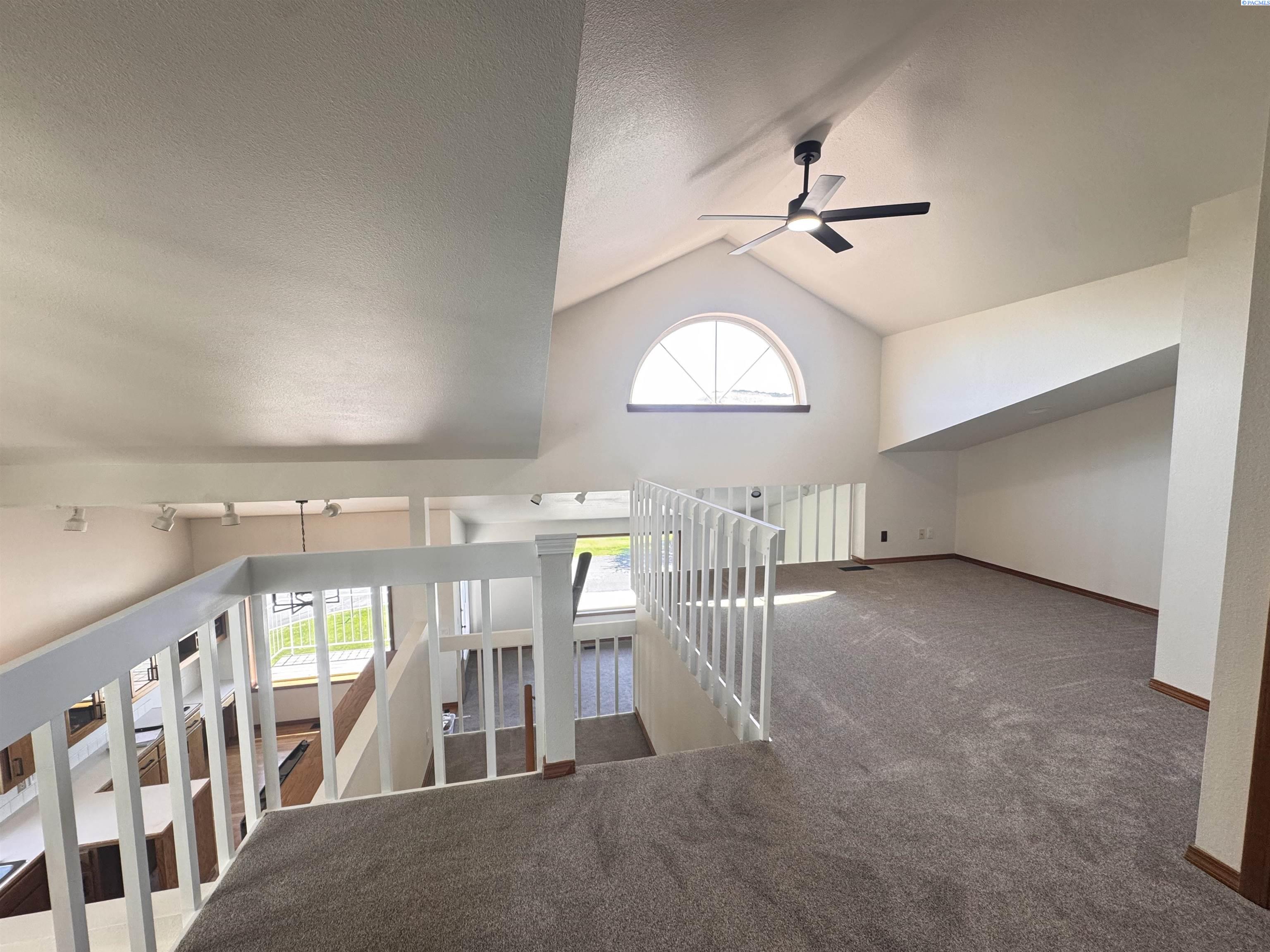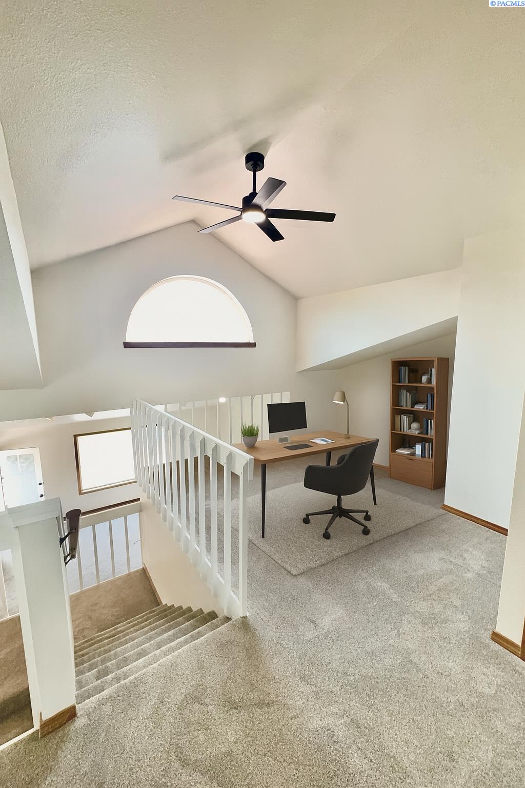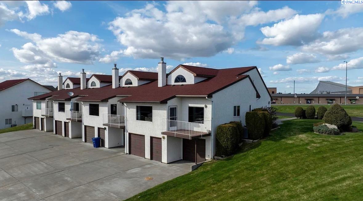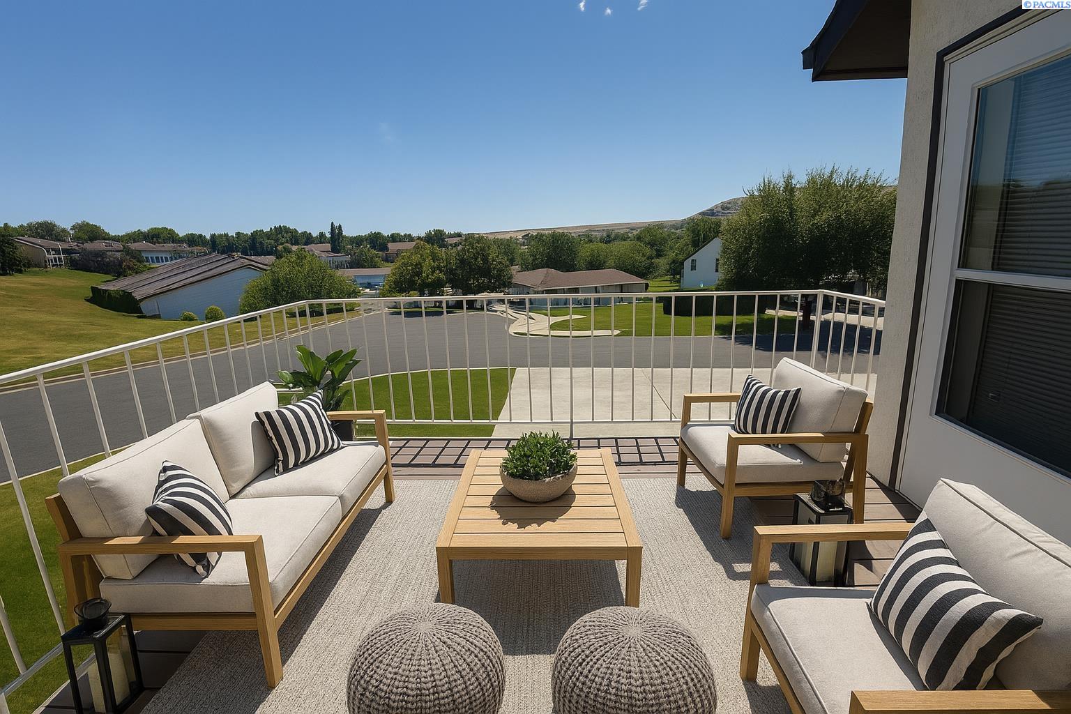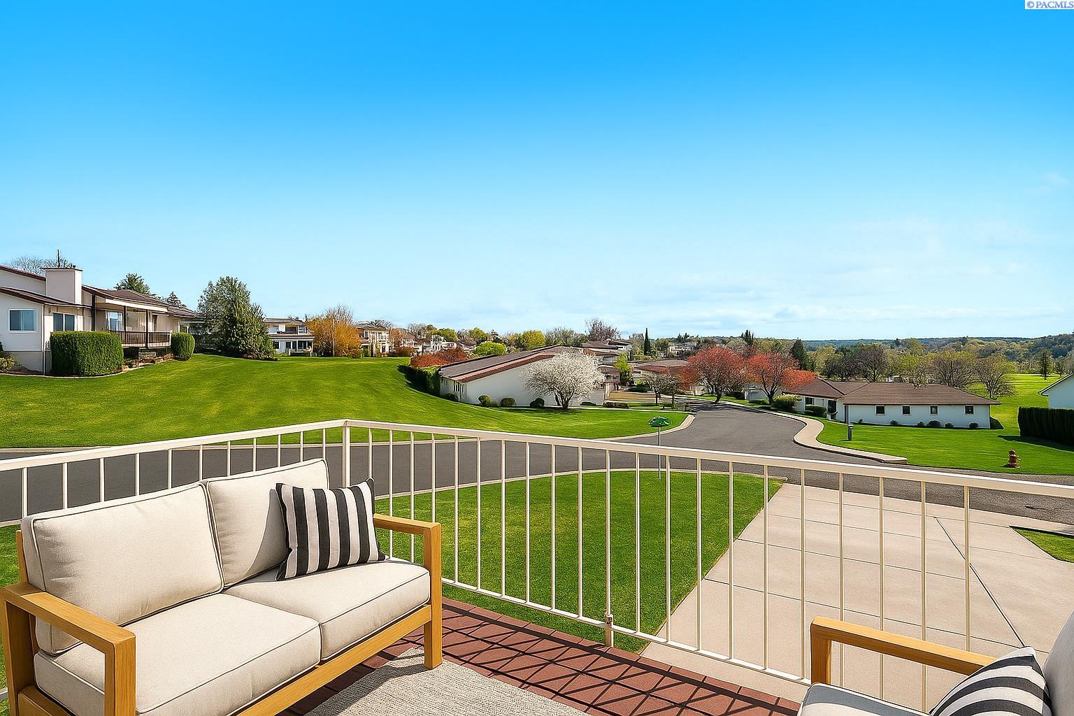 Keep an eye on all the golfing action right from your living room! This updated Meadow Springs TownHome features unobstructed views of the 18-hole championship golf course, Clubhouse, and the Horse Heaven Hills!! What more could you ask for. Except to be just a short ride from the first tee. And to have your very own golf cart garage. If you are a player or just a spectator, this is the HOME for you. Beautifully refreshed with new, modern lighting and matte black hardware throughout, new countertops, sinks, mirrors and toilets in the bathrooms and newer paint, carpet and furnace. The kitchen boasts a new sink, faucet, newer appliances and a sunset view that can't be matched. With a very open floorplan, soaring ceilings and natural light from every corner, you'll want to spend all your time at home. Or on your balcony with THAT VIEW. This home is move in ready. Offering 3 spacious bedrooms with the primary suite on the main level. And opening up to a private courtyard, where you can sit and enjoy the evenings or add your own private hot tub. Also on the main floor is the kitchen, eating nook, formal dining, living room and half bath. Upstairs you will find an open loft, two additional large bedrooms and another full bathroom. This townhome offers a large amount of additional storage, parking and large garage space downstairs. Experience all that Meadow Springs has to offer. Located next to dining, shopping, and all the outdoor activities that Richland is known for. Come tour this beautiful home today!
