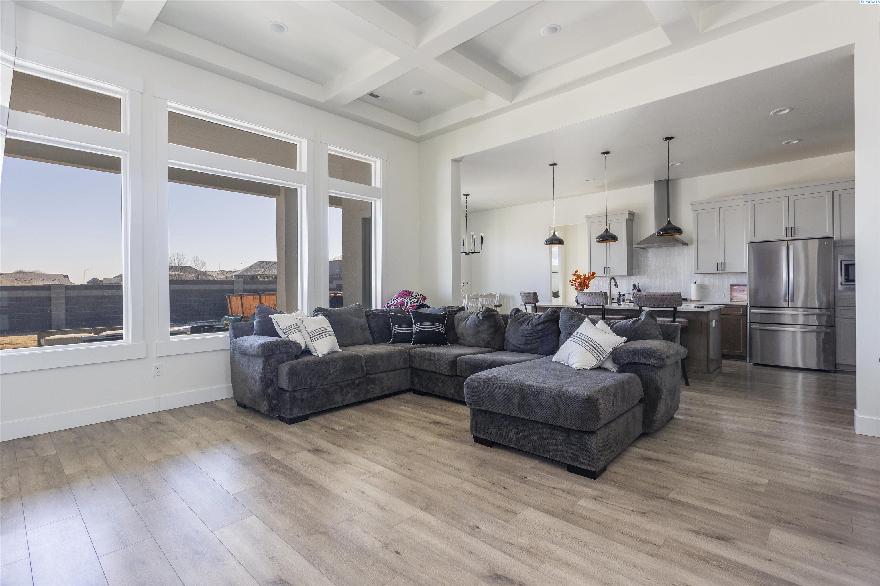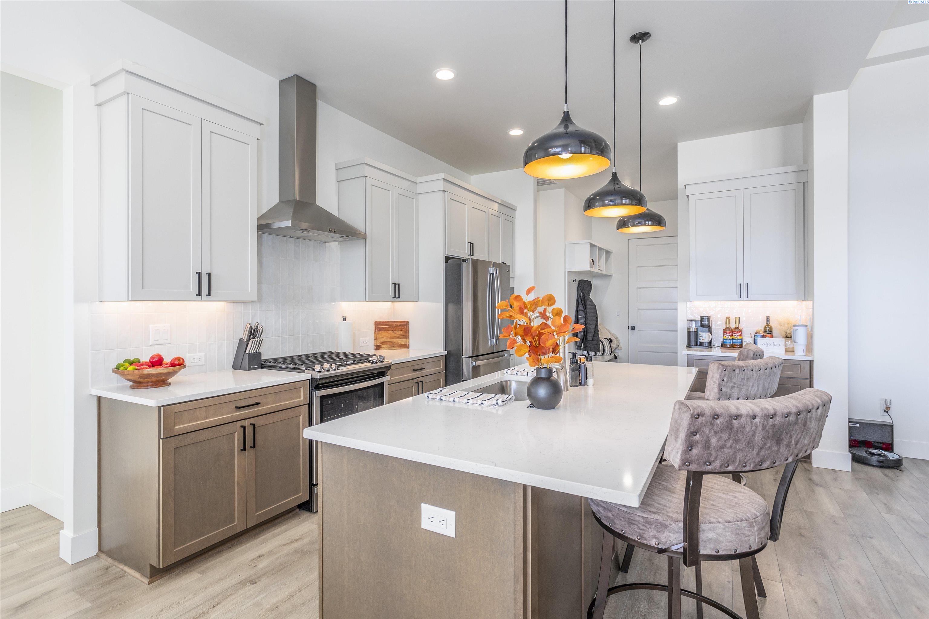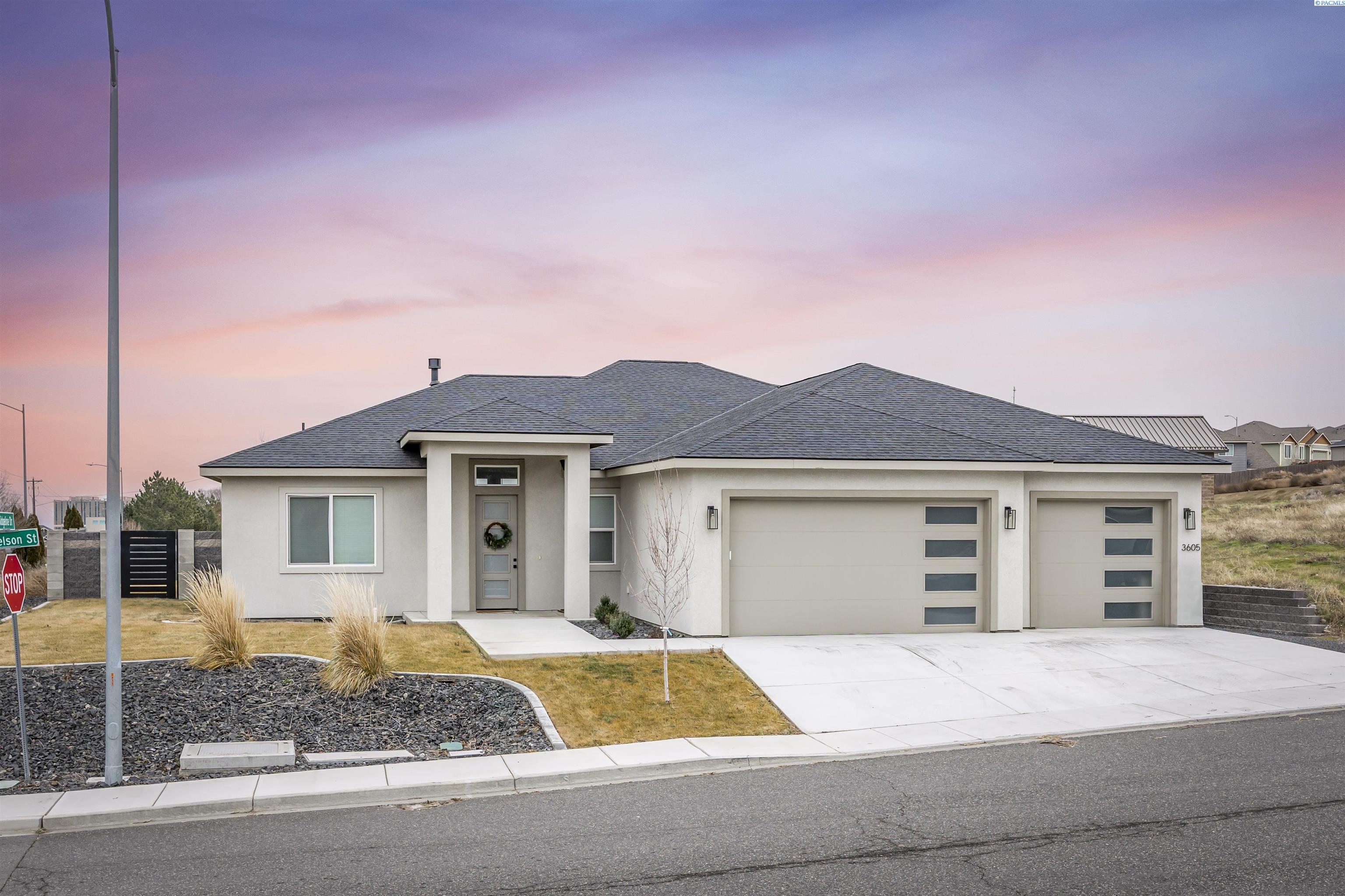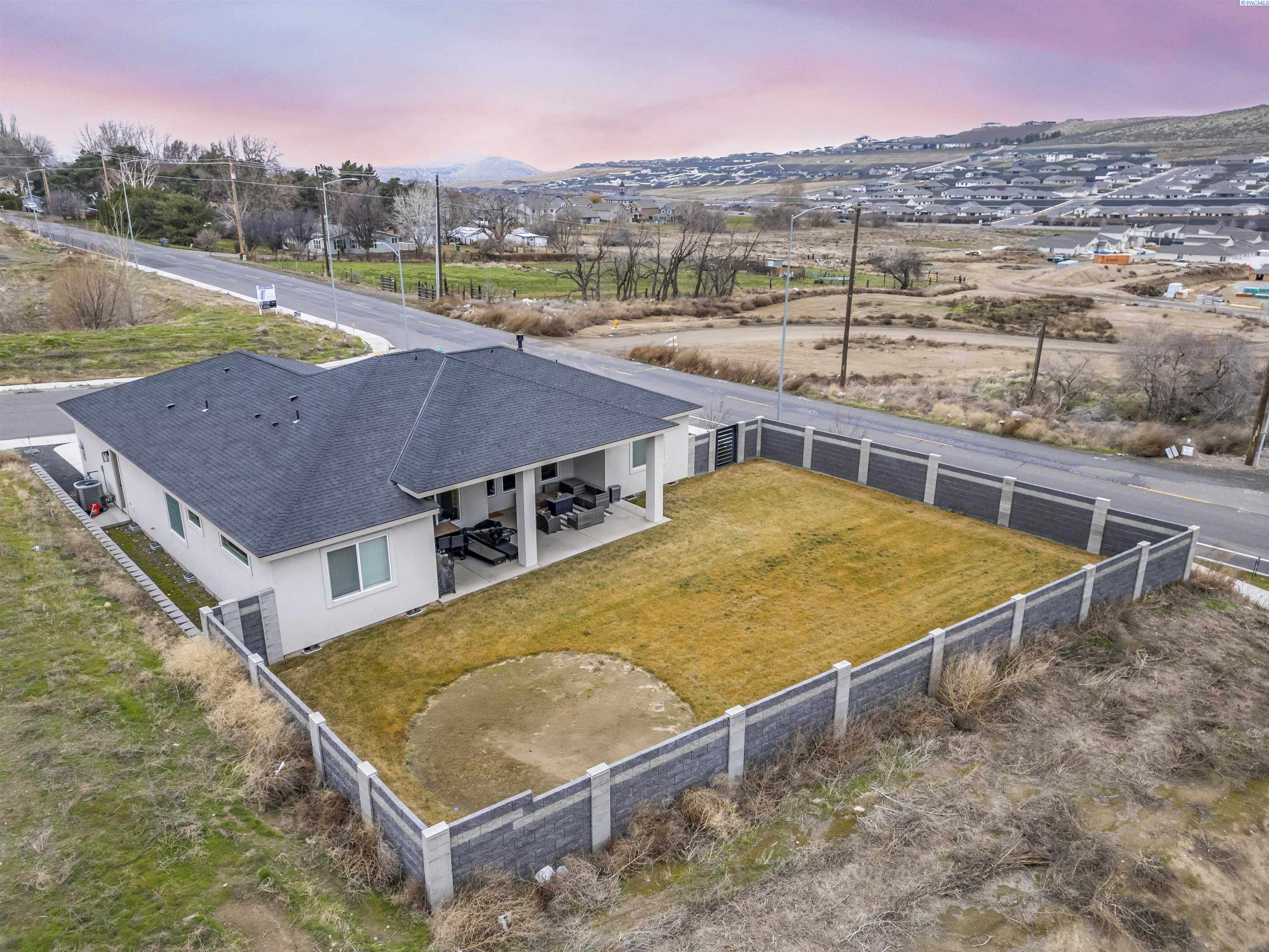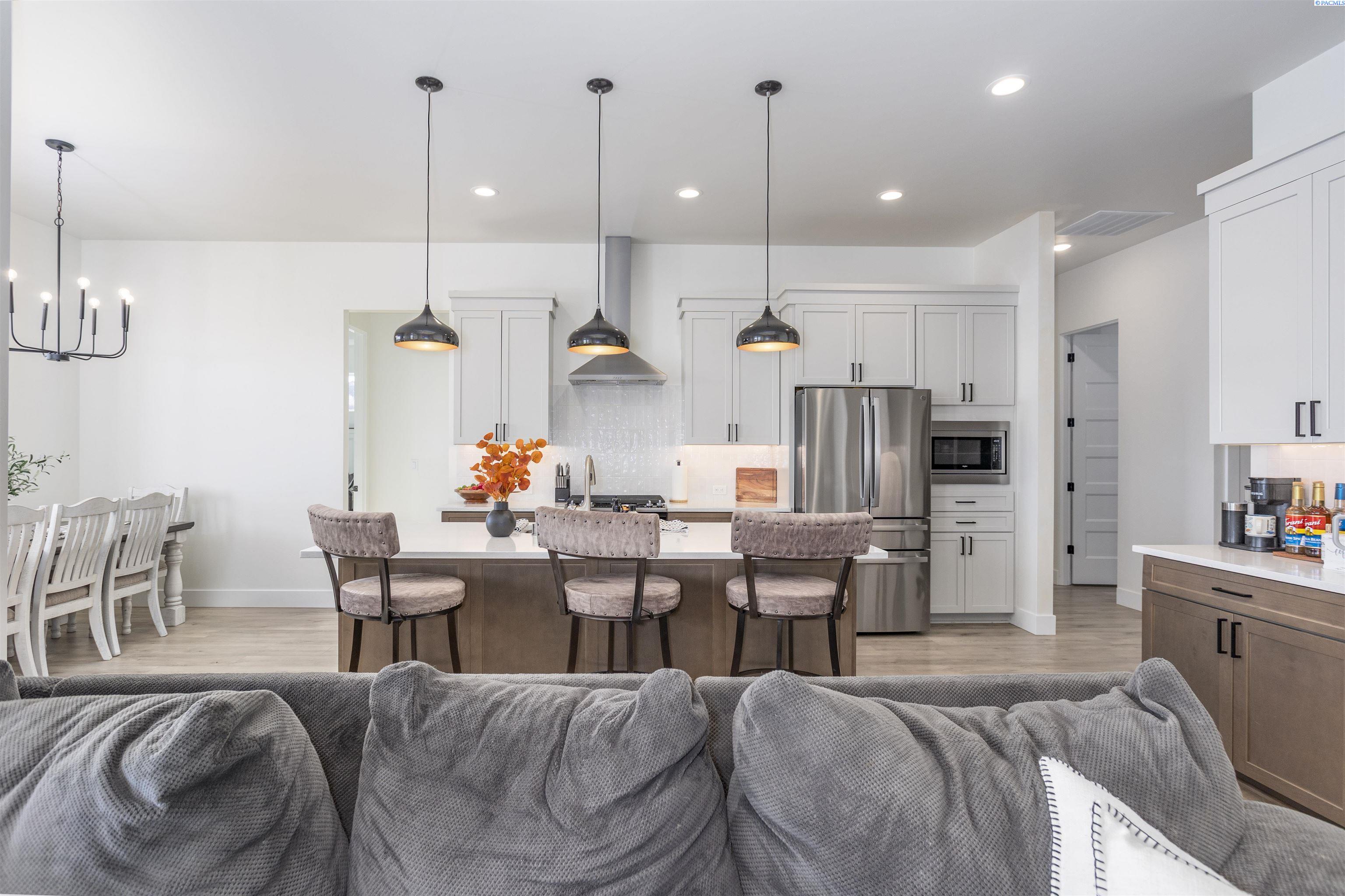MLS# 289877 Nestled in the beautiful South Kennewick neighborhood of Sage Crest, this 2023-built, single-level home is ideally located near schools, parks, shopping, and everything you need for an active lifestyle. The home offers 2,148 sq. ft. of thoughtfully designed living space with 4 bedrooms and 2.5 bathrooms. Step inside to an open and airy great room filled with natural light, featuring laminate wood flooring, detailed ceilings, expansive windows, and a cozy gas fireplace that creates a warm, inviting atmosphere. The chef-inspired kitchen is the heart of the home, showcasing quartz countertops, a stylish tile backsplash, a large island, abundant cabinetry, and an oversized pantryâperfect for entertaining and daily living alike. The adjacent dining area provides a wonderful space for both casual meals and special gatherings. The primary suite is a relaxing retreat, offering a spacious closet and a spa-like ensuite bath with dual vanities, a soaking tub, and an oversized tiled walk-in shower. Three additional bedrooms offer versatility for guests, a home office, or hobbies. Outside, enjoy a generous .30-acre lot designed for outdoor living, complete with block fencing, a covered patio, and plenty of room to play, garden, or unwind. The 3-car garage provides excellent storage and space for projects or recreational gear. Ideally located near Sage Crest Elementary and less than a mile from Southridge High School, this home also offers quick access to shopping, dining, parks, sports facilities, golf, medical services, and the freeway. This move-in-ready home truly has it allâmodern design, functional space, and an unbeatable location.