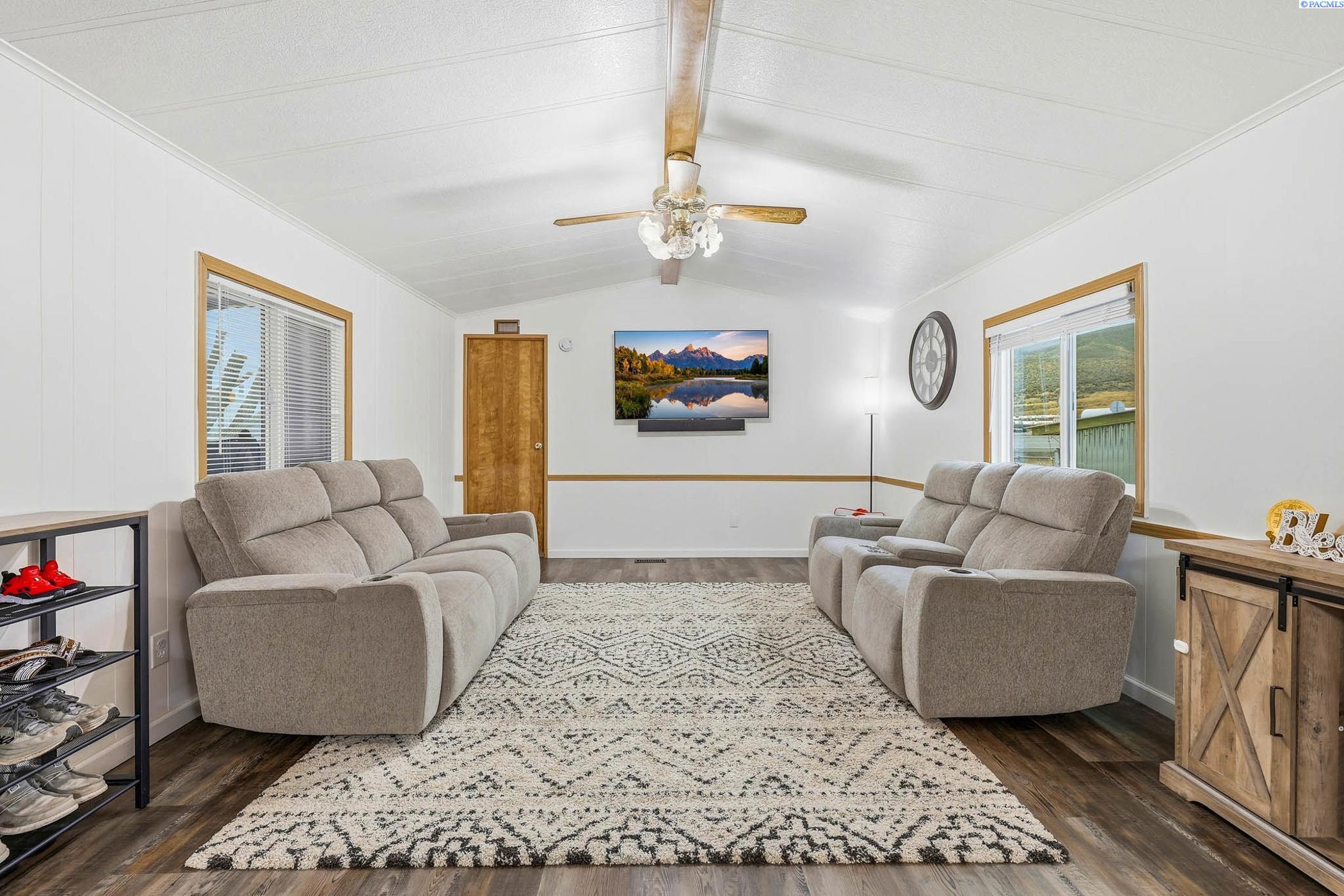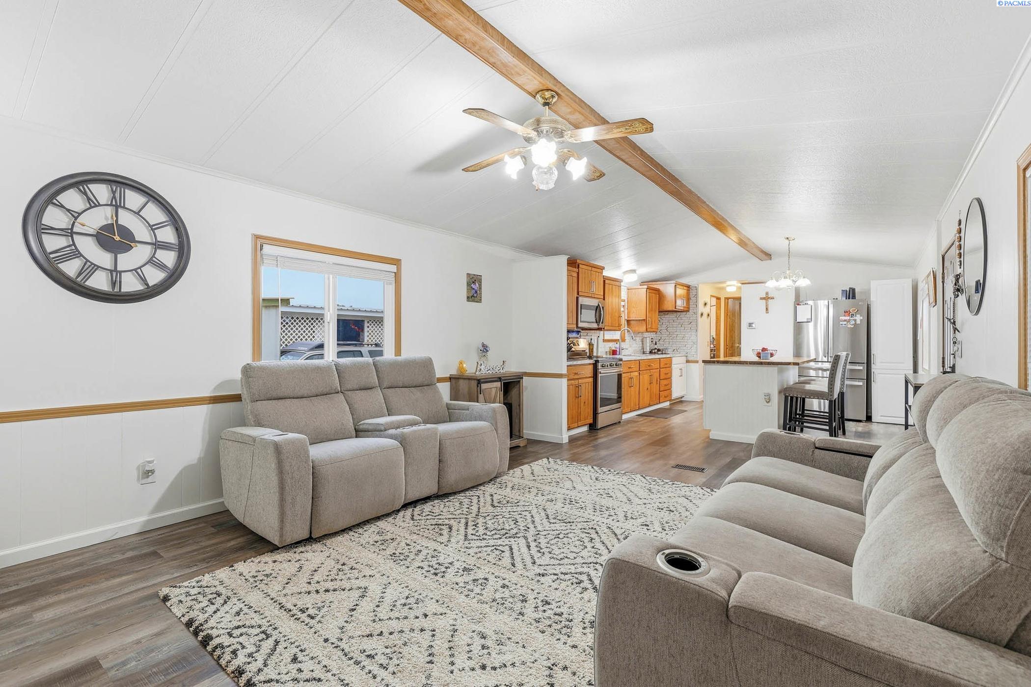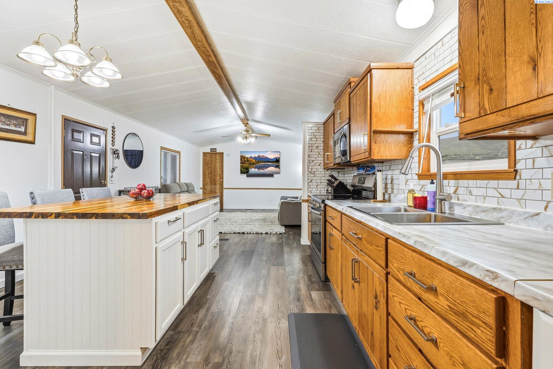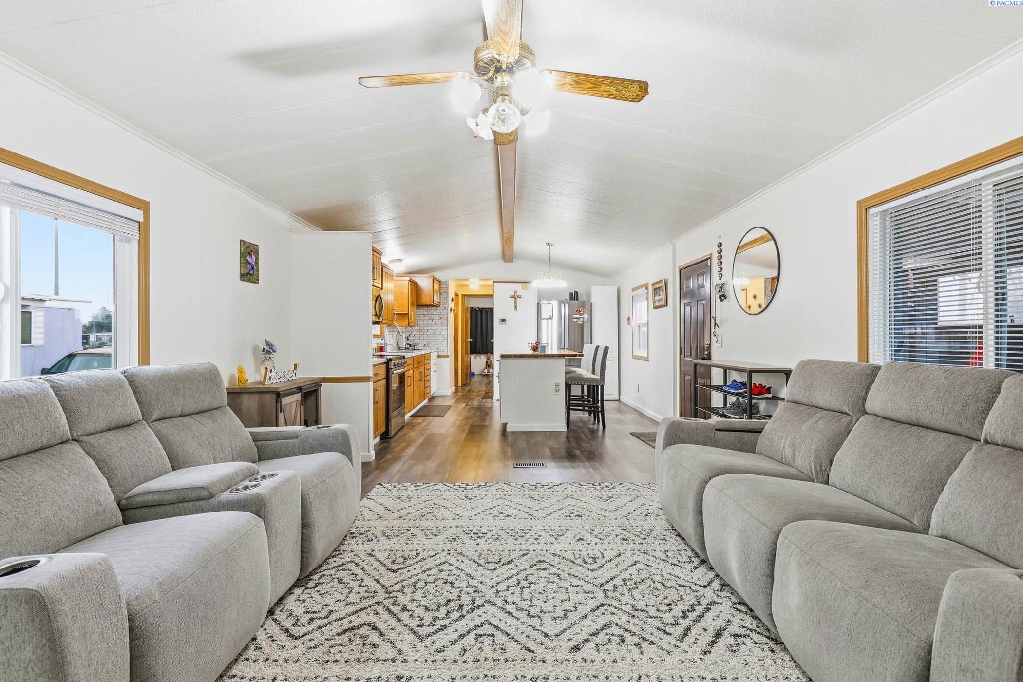 MLS# 289946 Move-in ready and beautifully updated manufactured home located in Foothills Estates in Prosser. This thoughtfully remodeled home features fresh interior paint, luxury vinyl plank flooring and an open-concept kitchen and living area designed for everyday comfort. The kitchen offers a new island, updated countertops, backsplash, sink, revised layout and custom real-wood cabinetry. Both bathrooms have been updated, the roof was replaced in 2024 and a new furnace was installed in 2023, providing peace of mind for the next owner.