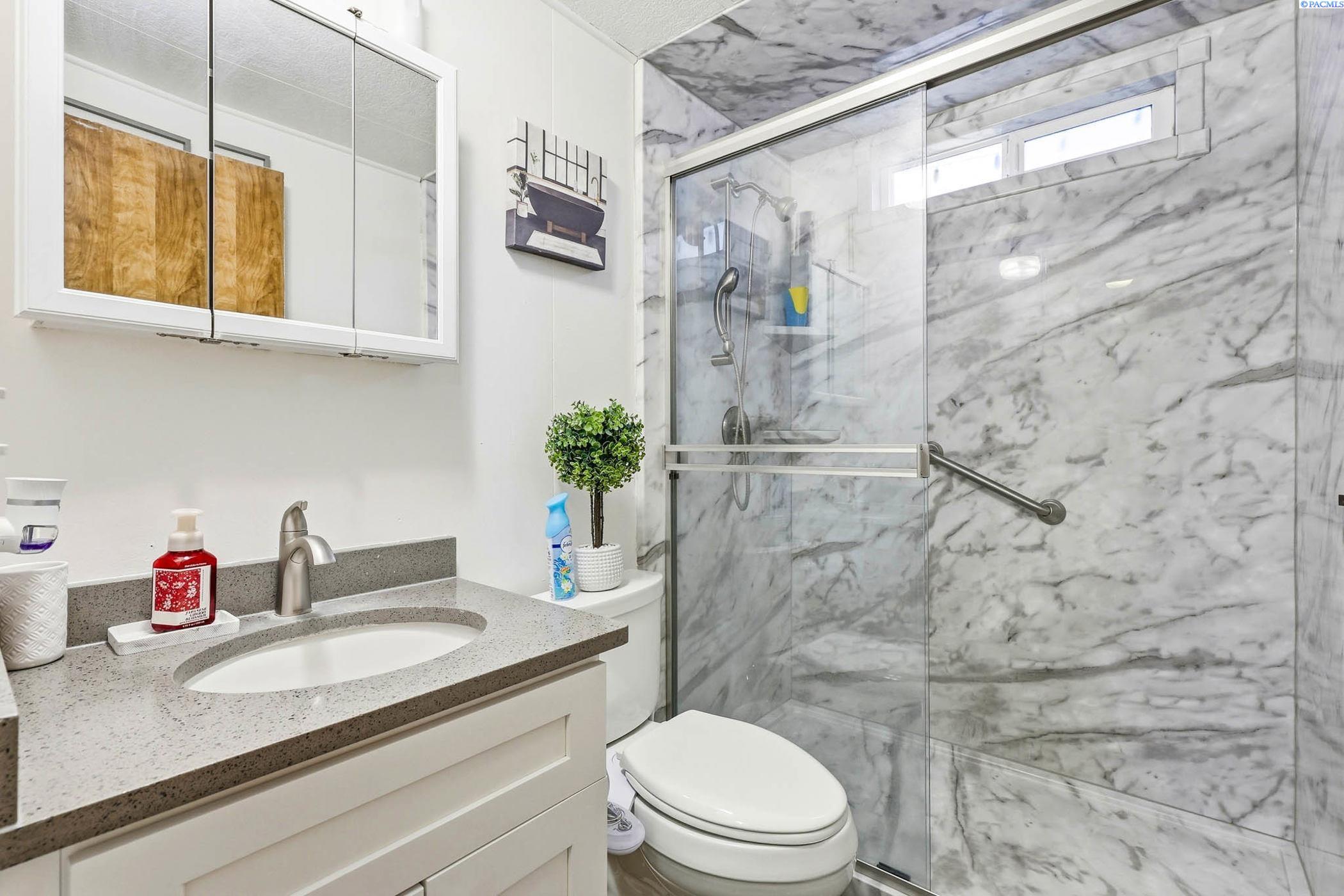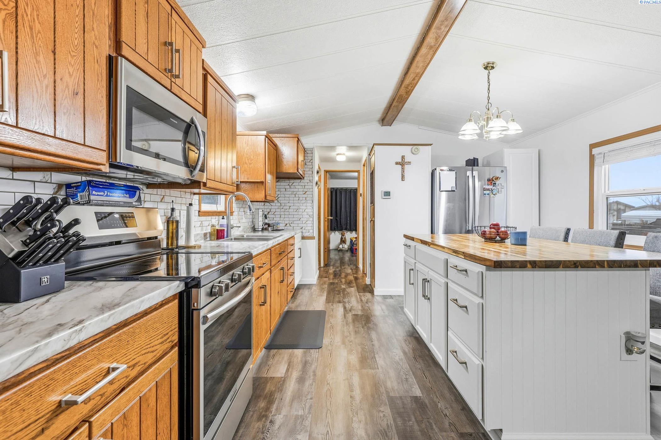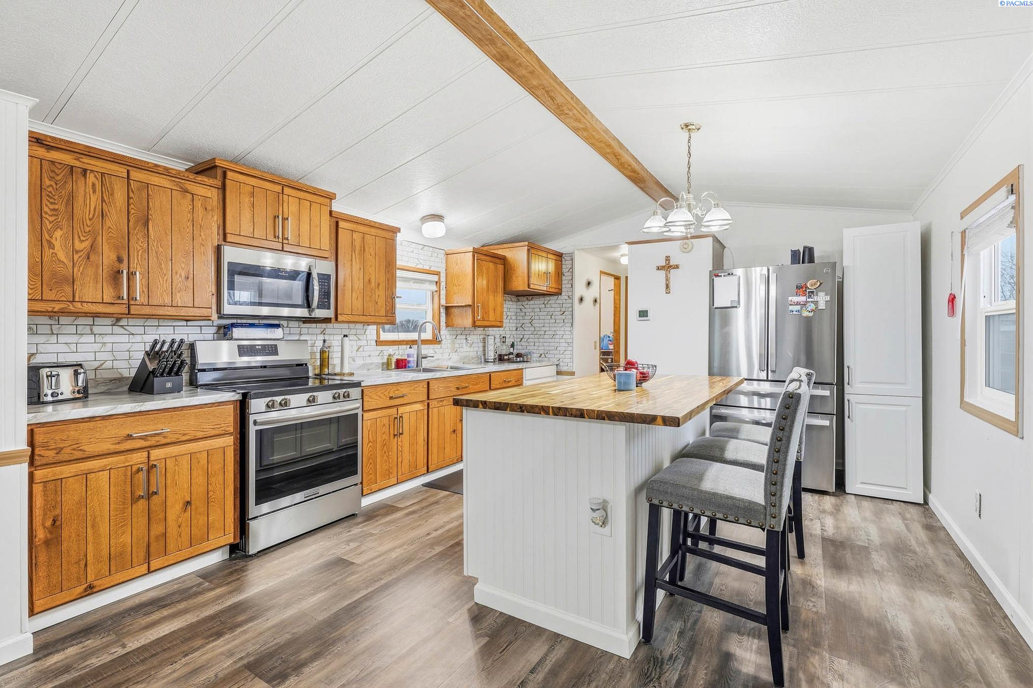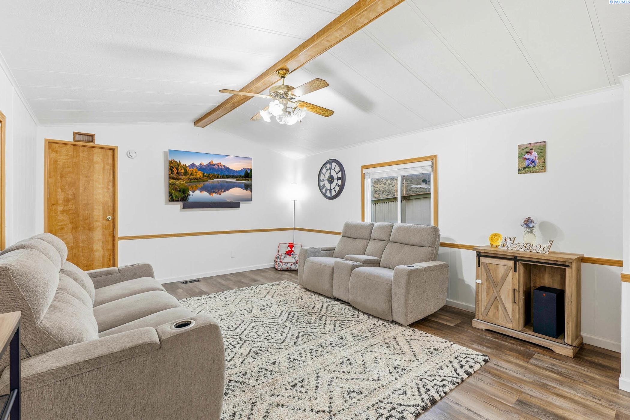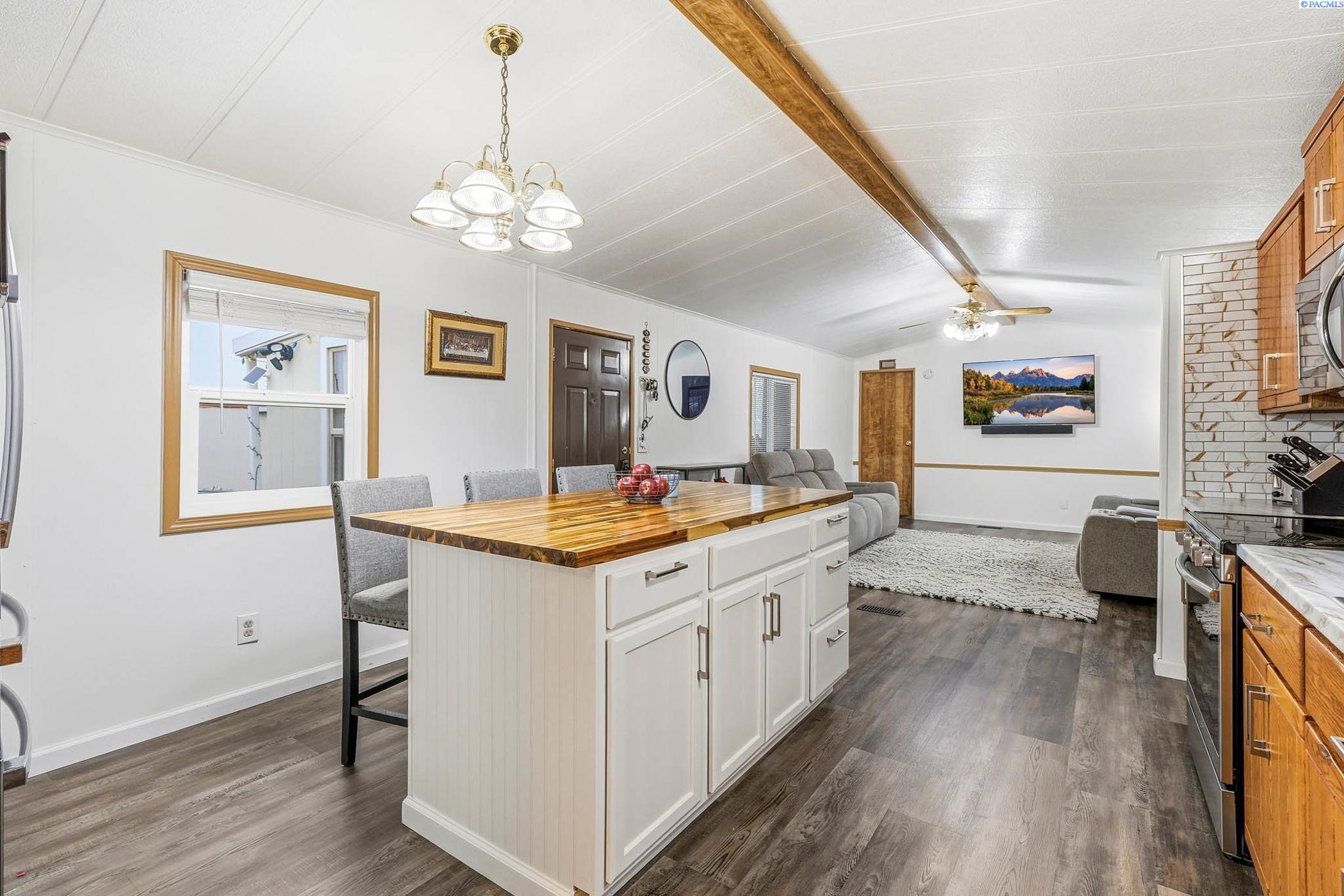 MLS# 289946 Move-in ready and beautifully updated manufactured home located in Foothills Estates in Prosser. This thoughtfully remodeled home features fresh interior paint, luxury vinyl plank flooring and an open-concept kitchen and living area designed for everyday comfort. The kitchen offers a new island, updated countertops, backsplash, sink, revised layout and custom real-wood cabinetry. Both bathrooms have been updated, the roof was replaced in 2024 and a new furnace was installed in 2023, providing peace of mind for the next owner.