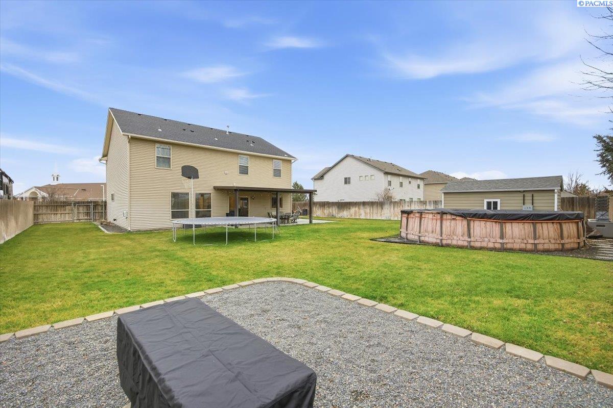 MLS# 289967 Welcome to this well maintained, centrally located and loved 2670 square foot home in an established neighborhood. Close to schools, parks and shopping. The moment you step inside you will feel the warmth and comfort of home. There are 4 bedrooms with a Den/office as well as a formal dining area that can be used for additional space or game area.... whatever you choose! The kitchen is open to the great room area with Granite countertops, dark cabinets and a nice sized updated pantry as well as a newer Microwave and dishwasher. This space is great for entertaining. Upstairs homes the bedrooms, updated laundry room and main bathroom. The Master suite is just that. Double doors and plenty of space to have all the things. Large walk-in closet with its own window is located thru the large bathroom. The home has updated waterproof laminate in the laundry room, office and downstairs. Outside is a 10,000 gallon above ground pool with 100lb sand filter and 1HP motor with electrical controls for on/off auto operation. There is a Firepit area and the back patio awning was added in 2023. There is a 10x18 shed that was done in 2020 with a 60-amp sub panel and equipped with lights and power. Gutters and fascia were done in 2023 and a NEW roof was done in 2025 as well as the RV parking/driveway extension. The 3rd bay of the garage has attic access with lighting. It's now set up as a home gym and has plenty of space for whatever you imagine it to be. You won't want to miss all this home has to offer!! Call your agent today!!