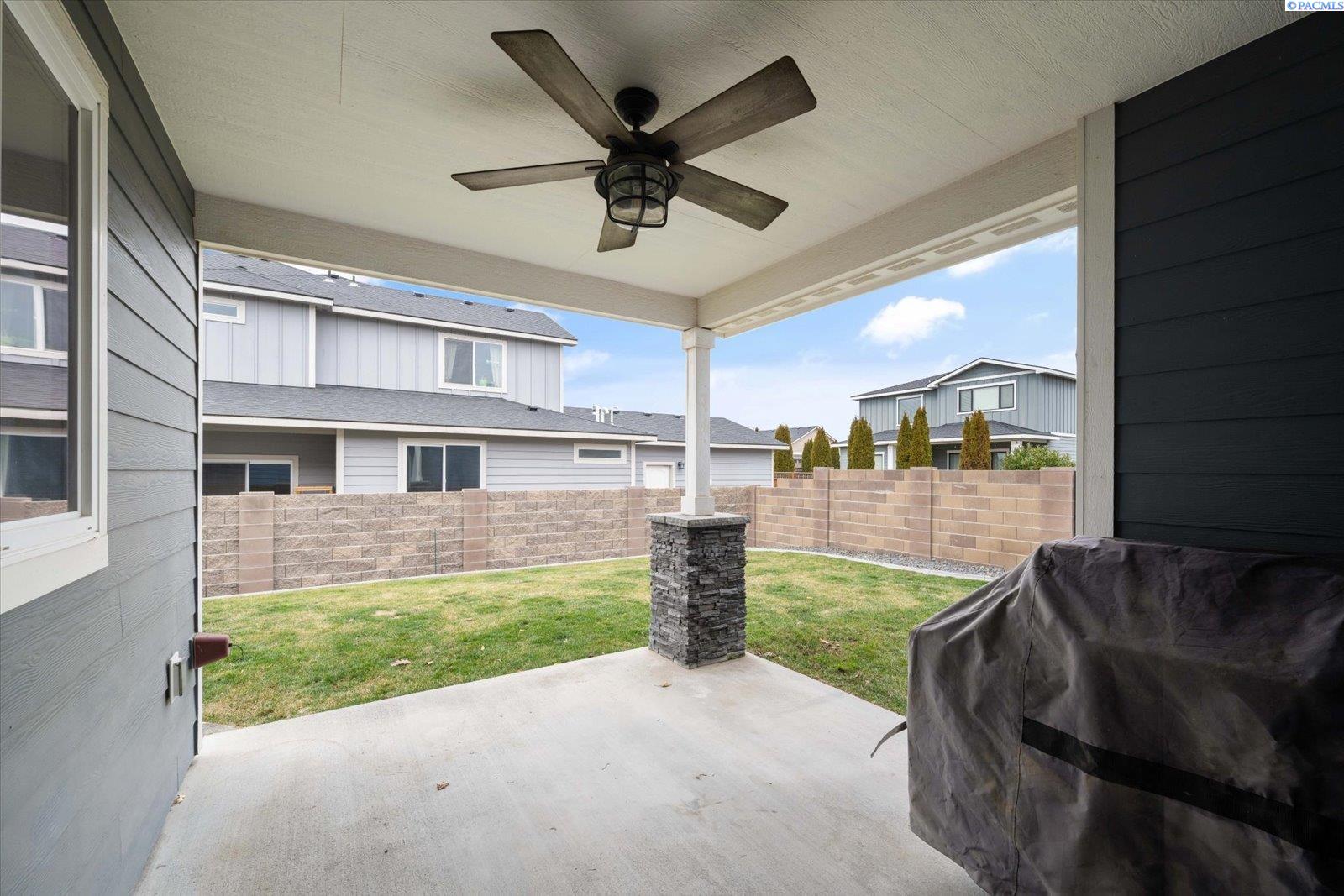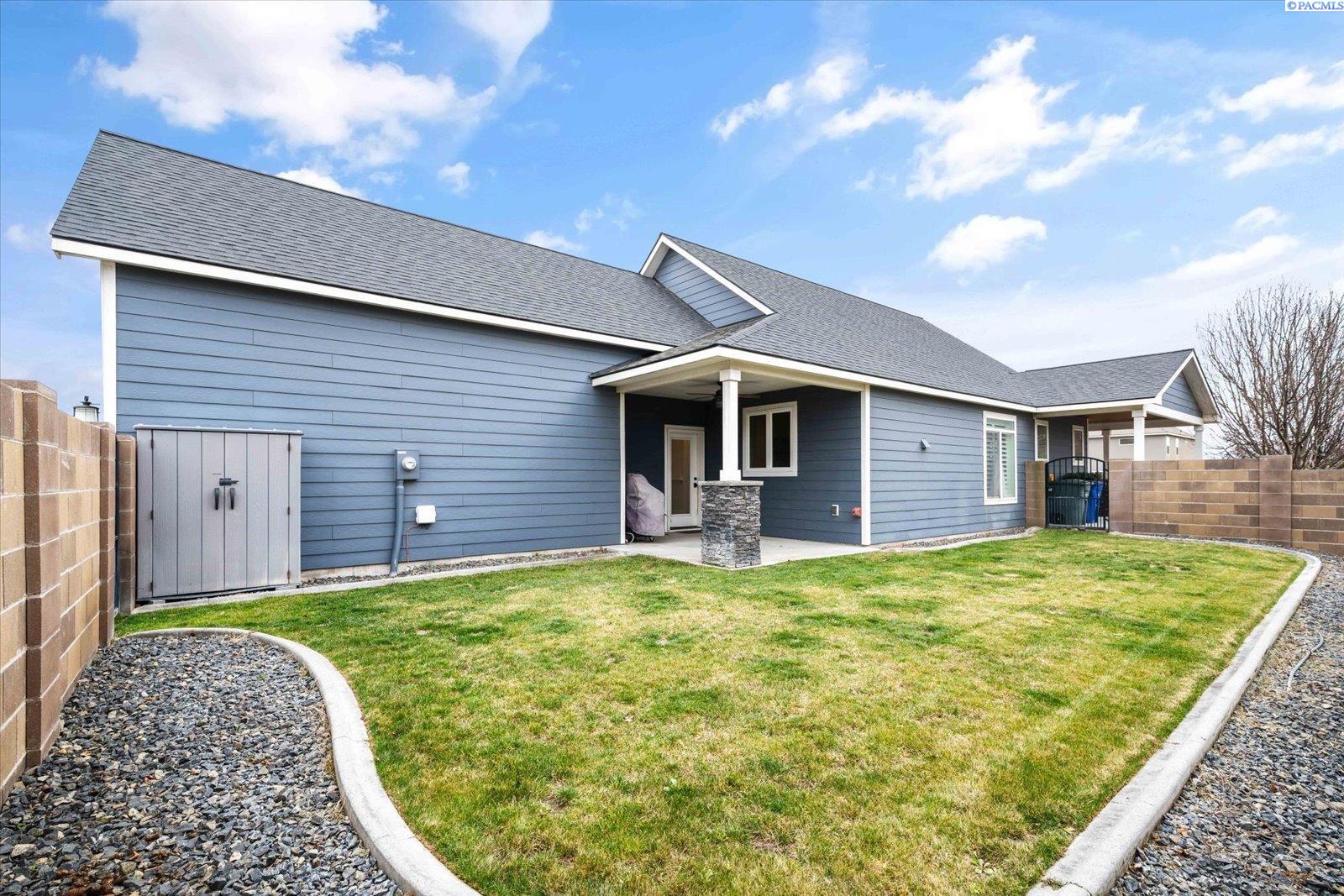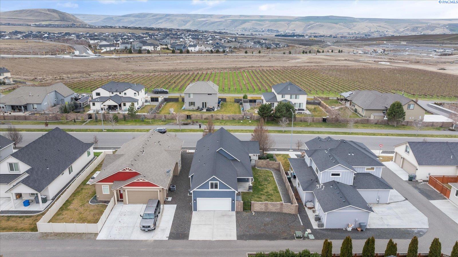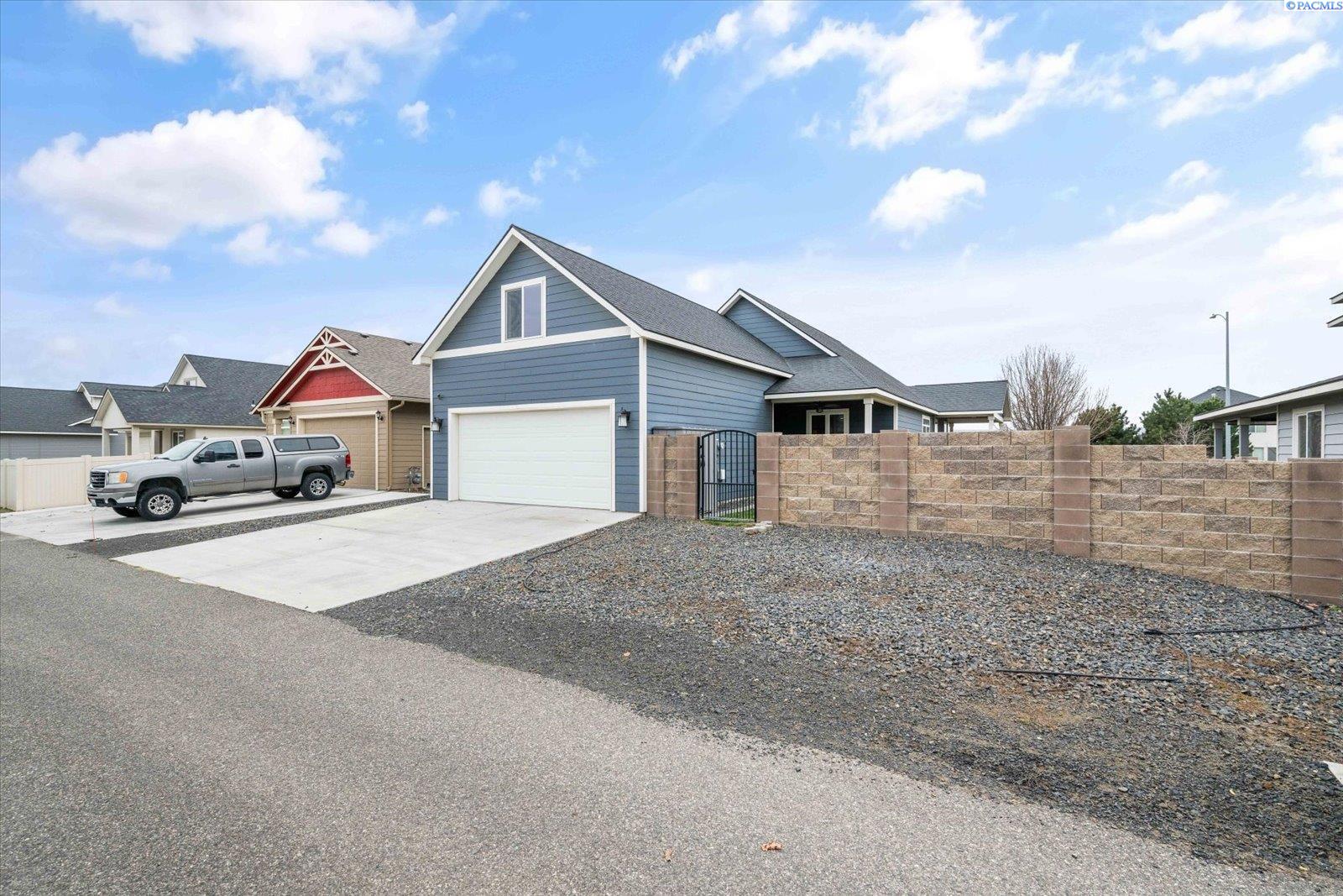 MLS# 290040 Gorgeous custom-built home in highly sought-after Badger Mountain South, surrounded by vineyards and just moments from the community park and the Country Mercantile. This thoughtfully designed 3-bedroom, 2-bath home offers an additional spacious bonus room over the garage, perfect for a home office, media room, or guest retreat. From the moment you arrive, the curb appeal sets the tone with a tongue-and-groove American Nut Brown soffit covered porch and charming shutters. Inside, the home is filled with upscale finishes, including luxury vinyl plank flooring throughout the main level, a large walk-in pantry, and carefully selected upgrades at every turn. The kitchen is a true showstopper, featuring a large center island, quartz countertops, farmhouse sink, classic subway tile backsplash, and custom white cabinetry, creating a space that feels both timeless and inviting, ideal for everyday living and entertaining. This Energy Star Certified home offers efficiency and comfort with Tech Shield roof sheathing and a tankless water heater, combining modern performance with long-term savings. Step outside to enjoy the covered back patio, thoughtfully enclosed by a block wall fence for enhanced privacy, durability, and low maintenance. The backyard is perfectly suited for relaxing evenings, outdoor dining, or quiet mornings with coffee. Beautifully built, energy efficient, and set in one of the most desirable locations in the area, this home delivers comfort, quality, and lifestyle all in one exceptional package.