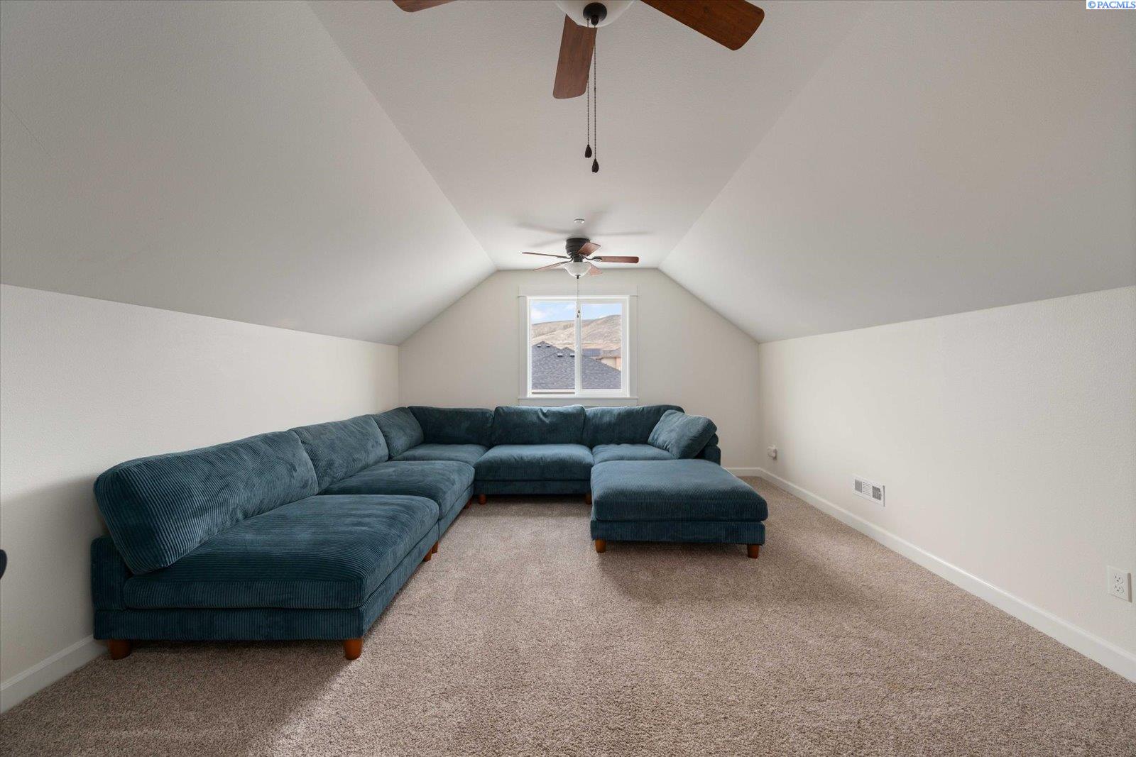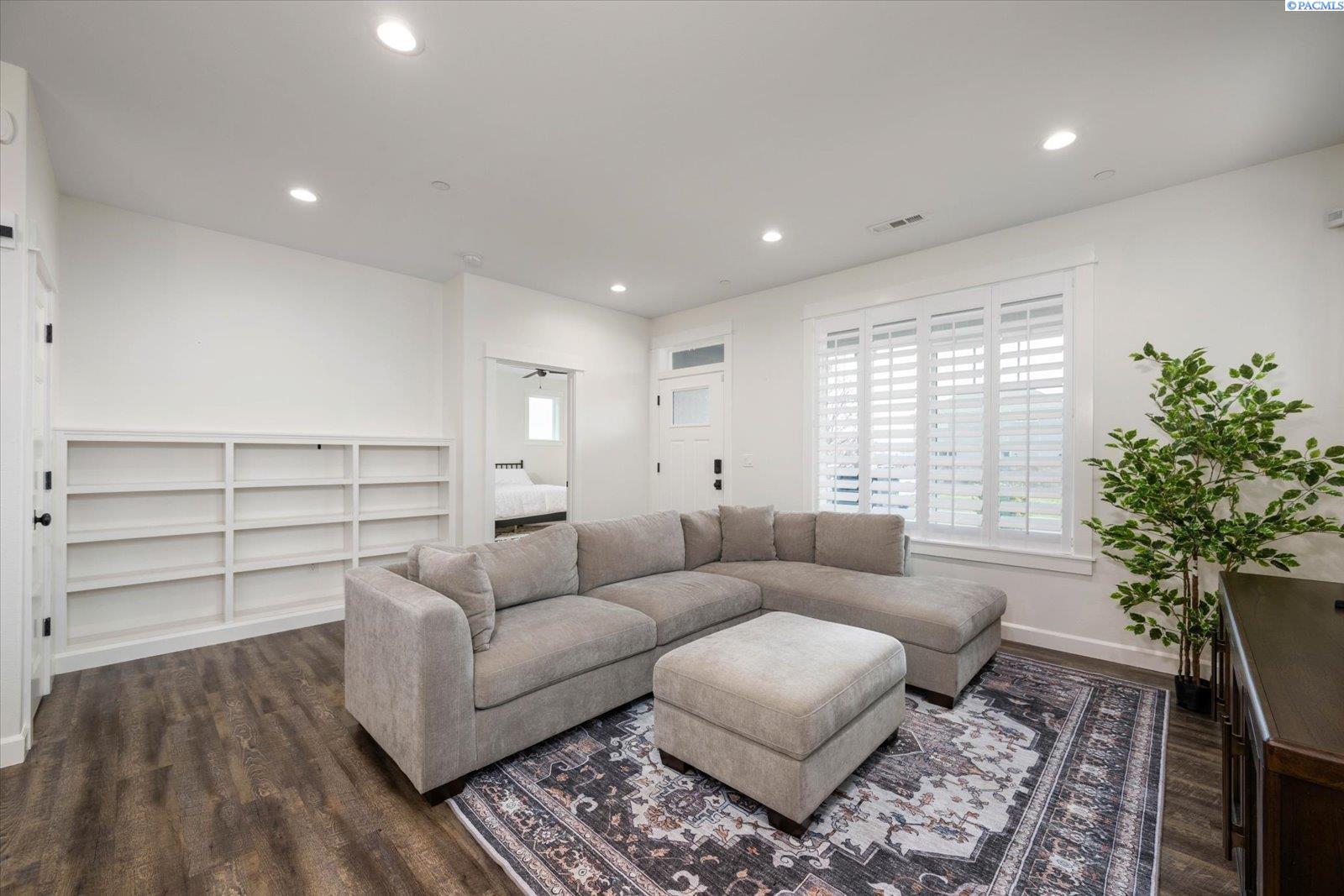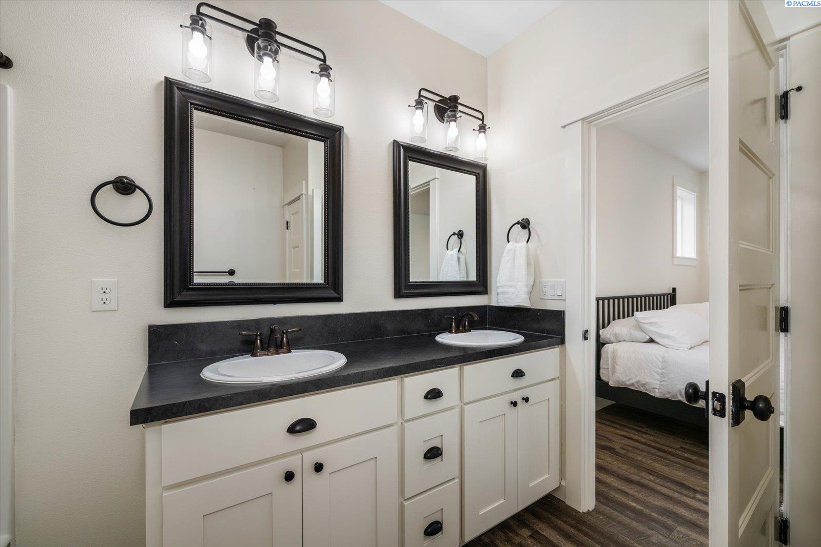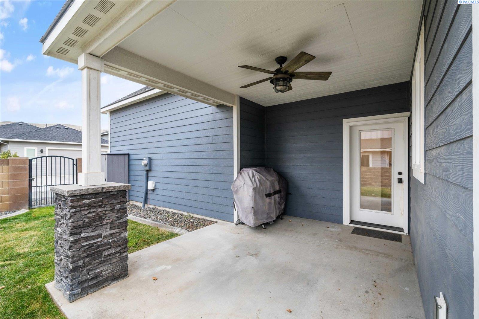MLS# 290040 Gorgeous custom-built home in highly sought-after Badger Mountain South, surrounded by vineyards and just moments from the community park and the Country Mercantile. This thoughtfully designed 3-bedroom, 2-bath home offers an additional spacious bonus room over the garage, perfect for a home office, media room, or guest retreat. From the moment you arrive, the curb appeal sets the tone with a tongue-and-groove American Nut Brown soffit covered porch and charming shutters. Inside, the home is filled with upscale finishes, including luxury vinyl plank flooring throughout the main level, a large walk-in pantry, and carefully selected upgrades at every turn. The kitchen is a true showstopper, featuring a large center island, quartz countertops, farmhouse sink, classic subway tile backsplash, and custom white cabinetry, creating a space that feels both timeless and inviting, ideal for everyday living and entertaining. This Energy Star Certified home offers efficiency and comfort with Tech Shield roof sheathing and a tankless water heater, combining modern performance with long-term savings. Step outside to enjoy the covered back patio, thoughtfully enclosed by a block wall fence for enhanced privacy, durability, and low maintenance. The backyard is perfectly suited for relaxing evenings, outdoor dining, or quiet mornings with coffee. Beautifully built, energy efficient, and set in one of the most desirable locations in the area, this home delivers comfort, quality, and lifestyle all in one exceptional package.