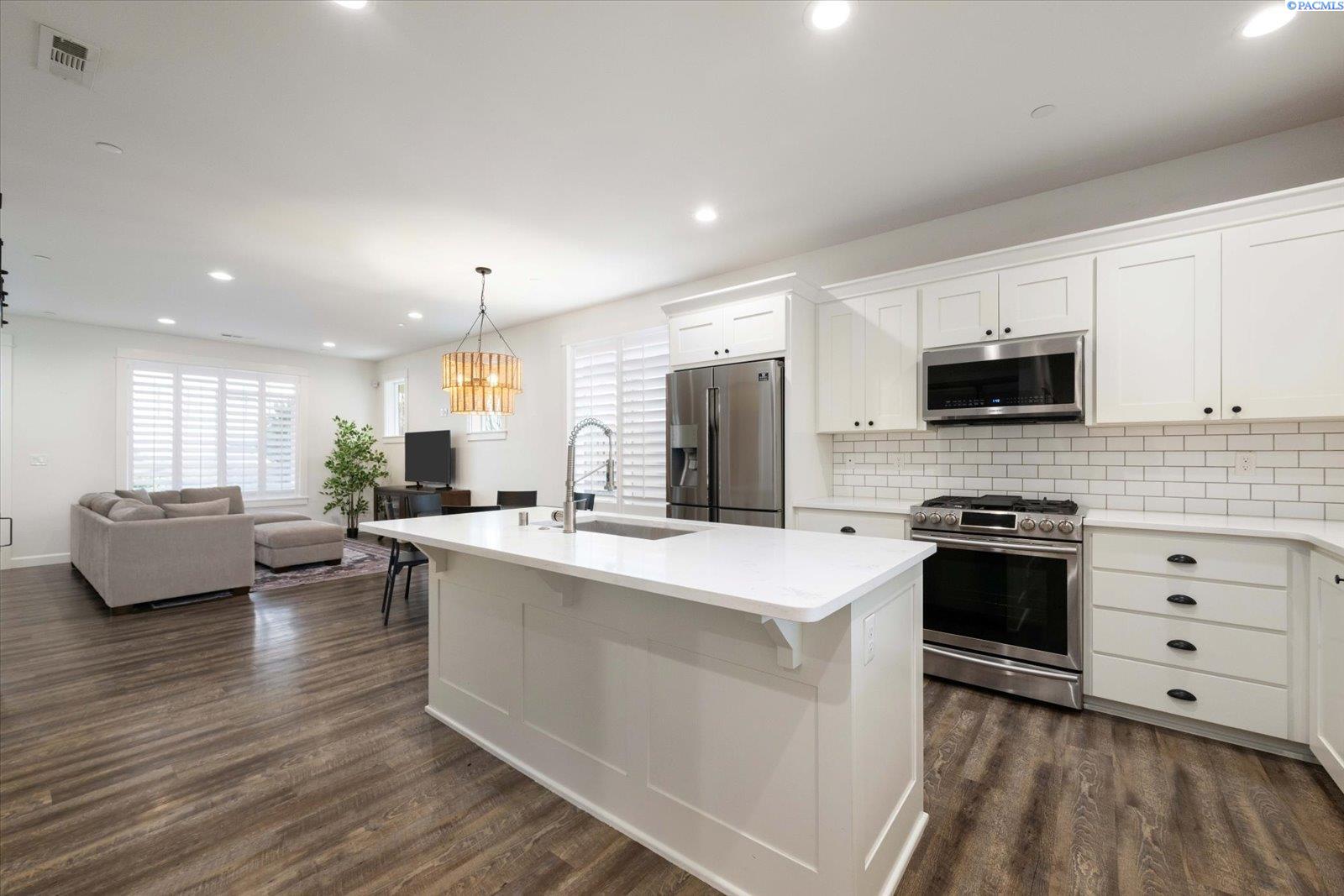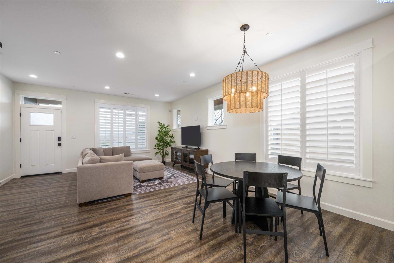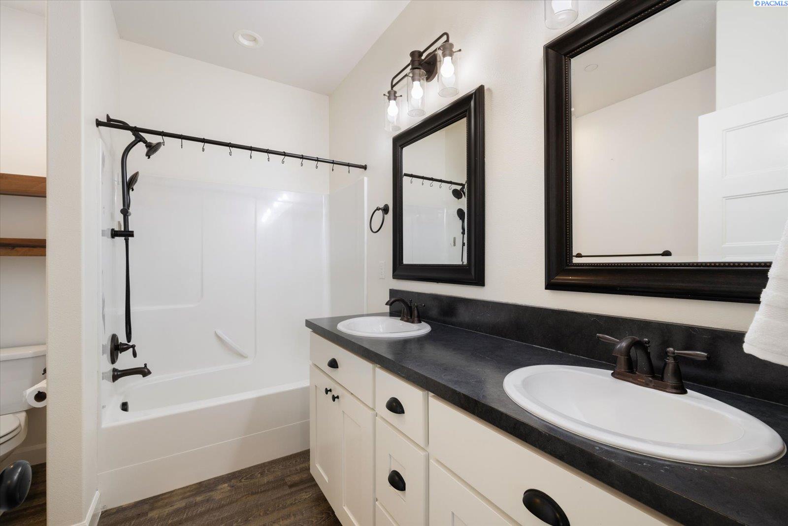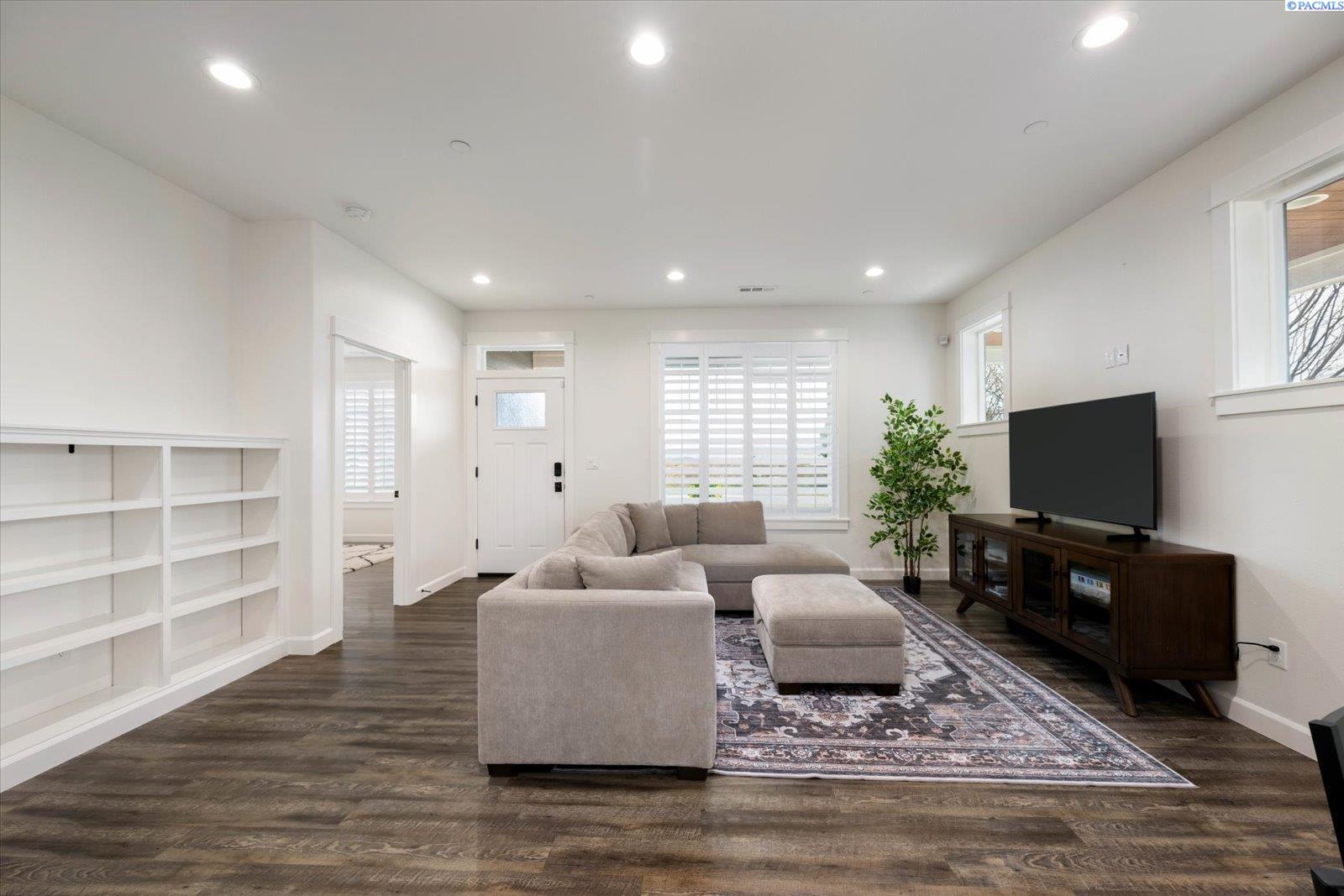 MLS# 290040 Gorgeous custom-built home in highly sought-after Badger Mountain South, surrounded by vineyards and just moments from the community park and the Country Mercantile. This thoughtfully designed 3-bedroom, 2-bath home offers an additional spacious bonus room over the garage, perfect for a home office, media room, or guest retreat. From the moment you arrive, the curb appeal sets the tone with a tongue-and-groove American Nut Brown soffit covered porch and charming shutters. Inside, the home is filled with upscale finishes, including luxury vinyl plank flooring throughout the main level, a large walk-in pantry, and carefully selected upgrades at every turn. The kitchen is a true showstopper, featuring a large center island, quartz countertops, farmhouse sink, classic subway tile backsplash, and custom white cabinetry, creating a space that feels both timeless and inviting, ideal for everyday living and entertaining. This Energy Star Certified home offers efficiency and comfort with Tech Shield roof sheathing and a tankless water heater, combining modern performance with long-term savings. Step outside to enjoy the covered back patio, thoughtfully enclosed by a block wall fence for enhanced privacy, durability, and low maintenance. The backyard is perfectly suited for relaxing evenings, outdoor dining, or quiet mornings with coffee. Beautifully built, energy efficient, and set in one of the most desirable locations in the area, this home delivers comfort, quality, and lifestyle all in one exceptional package.