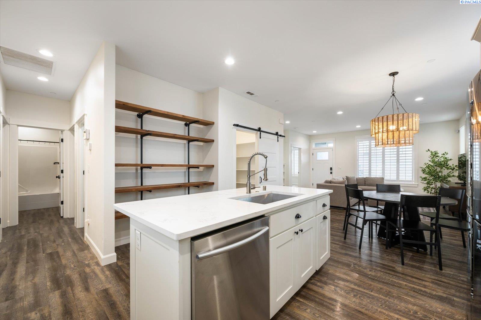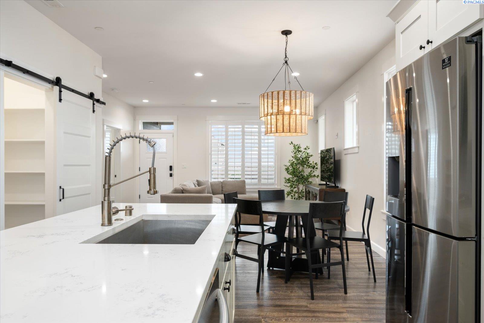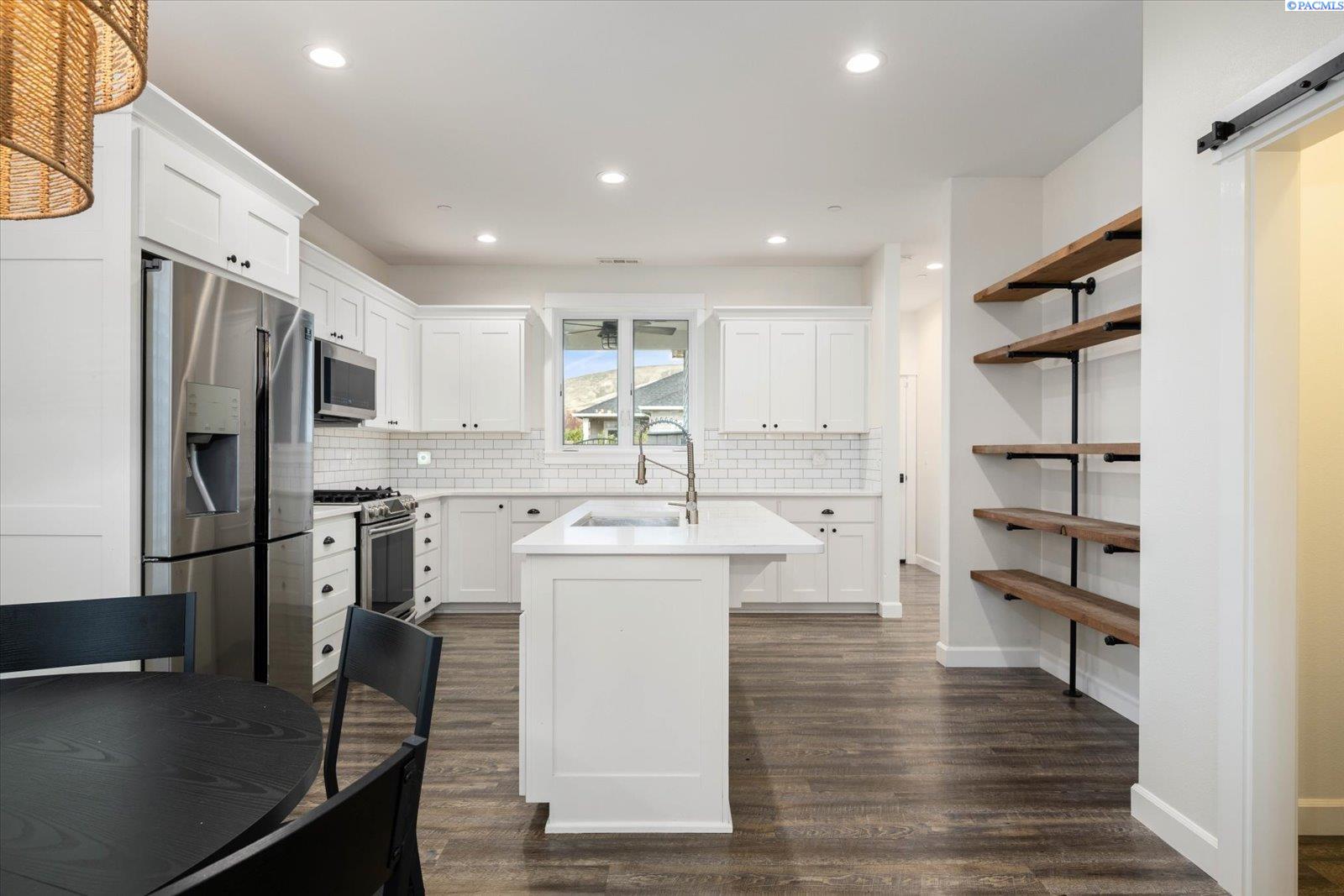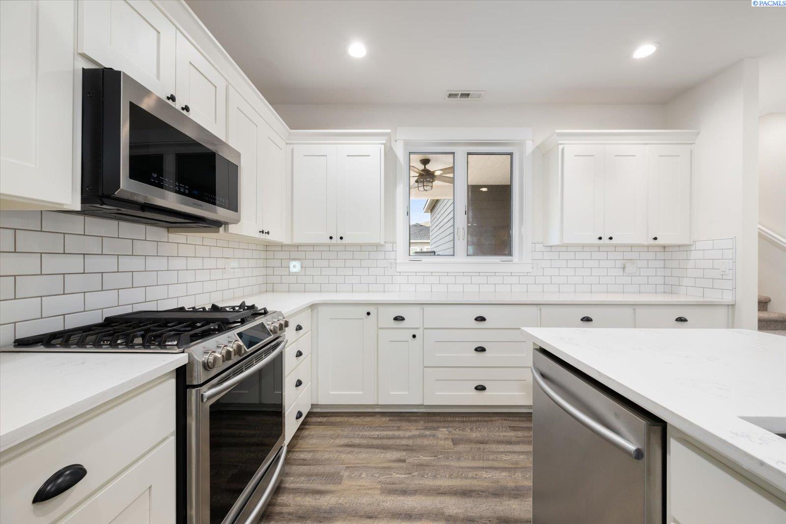 MLS# 290040 Gorgeous custom-built home in highly sought-after Badger Mountain South, surrounded by vineyards and just moments from the community park and the Country Mercantile. This thoughtfully designed 3-bedroom, 2-bath home offers an additional spacious bonus room over the garage, perfect for a home office, media room, or guest retreat. From the moment you arrive, the curb appeal sets the tone with a tongue-and-groove American Nut Brown soffit covered porch and charming shutters. Inside, the home is filled with upscale finishes, including luxury vinyl plank flooring throughout the main level, a large walk-in pantry, and carefully selected upgrades at every turn. The kitchen is a true showstopper, featuring a large center island, quartz countertops, farmhouse sink, classic subway tile backsplash, and custom white cabinetry, creating a space that feels both timeless and inviting, ideal for everyday living and entertaining. This Energy Star Certified home offers efficiency and comfort with Tech Shield roof sheathing and a tankless water heater, combining modern performance with long-term savings. Step outside to enjoy the covered back patio, thoughtfully enclosed by a block wall fence for enhanced privacy, durability, and low maintenance. The backyard is perfectly suited for relaxing evenings, outdoor dining, or quiet mornings with coffee. Beautifully built, energy efficient, and set in one of the most desirable locations in the area, this home delivers comfort, quality, and lifestyle all in one exceptional package.