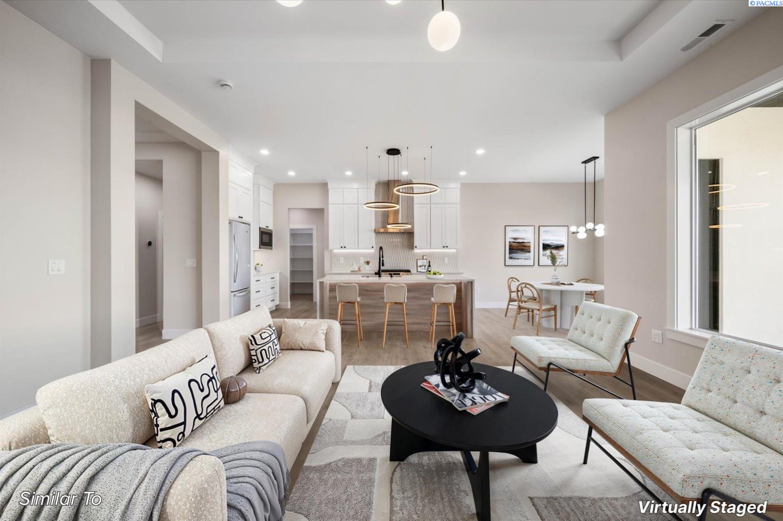 Welcome to South Orchard and Viktory Homes...where everyday life feels elevated. Set in one of South Richlandâs most desirable and thoughtfully planned communities, this Viktory Homes residence offers a lifestyle defined by comfort, connection, and effortless luxury. From the moment you arrive, thereâs a sense of calm...wide streets, nearby trails, and a neighborhood designed for living well. Inside, the home opens with soaring ceilings and natural light that pours through expansive windows, creating a bright, welcoming atmosphere that instantly feels like home. The open layout is designed for how people actually live and spaces that flow easily from one moment to the next, whether youâre hosting friends, enjoying a quiet evening in, or simply starting your day. At the heart of the home, the chef-inspired kitchen becomes the gathering place. With premium appliances, abundant cabinetry, beautiful finishes, and a statement island, itâs a space made for connection; morning coffee, shared meals, and celebrations big and small. Just beyond, the living area offers warmth and comfort with a fireplace and walls of windows that frame peaceful views and bring the outdoors in. The primary suite is thoughtfully positioned as a private retreat, offering a true escape at the end of the day. The spa-like bathroom features a soaking tub, walk-in shower, and elegant finishes, while the generous walk-in closet adds both function and ease. Additional bedrooms provide flexibility for guests, creative space, or everyday living needs and is designed to adapt as life evolves. One of the most special features of this home is what lies beyond it. Backing to green space, youâll enjoy open views, added privacy, and the rare luxury of no backyard neighborsâperfect for quiet mornings and peaceful evenings. Living in South Orchard means being moments from Badger Mountain trails, wineries, parks, top-rated schools, and the growing amenities of Badger Mountain Southâall while enjoying a neighborhood that feels connected yet serene. This is more than a home. Itâs where lifestyle, location, and thoughtful design come togetherâcrafted with care by Viktory Homes. *Photos are of a previously built home. Finishes will vary.
