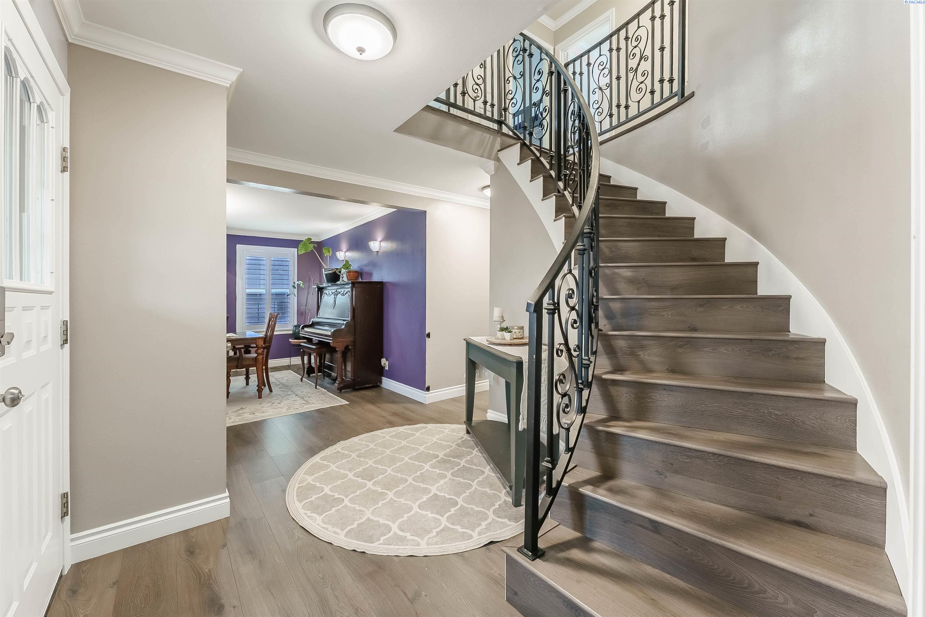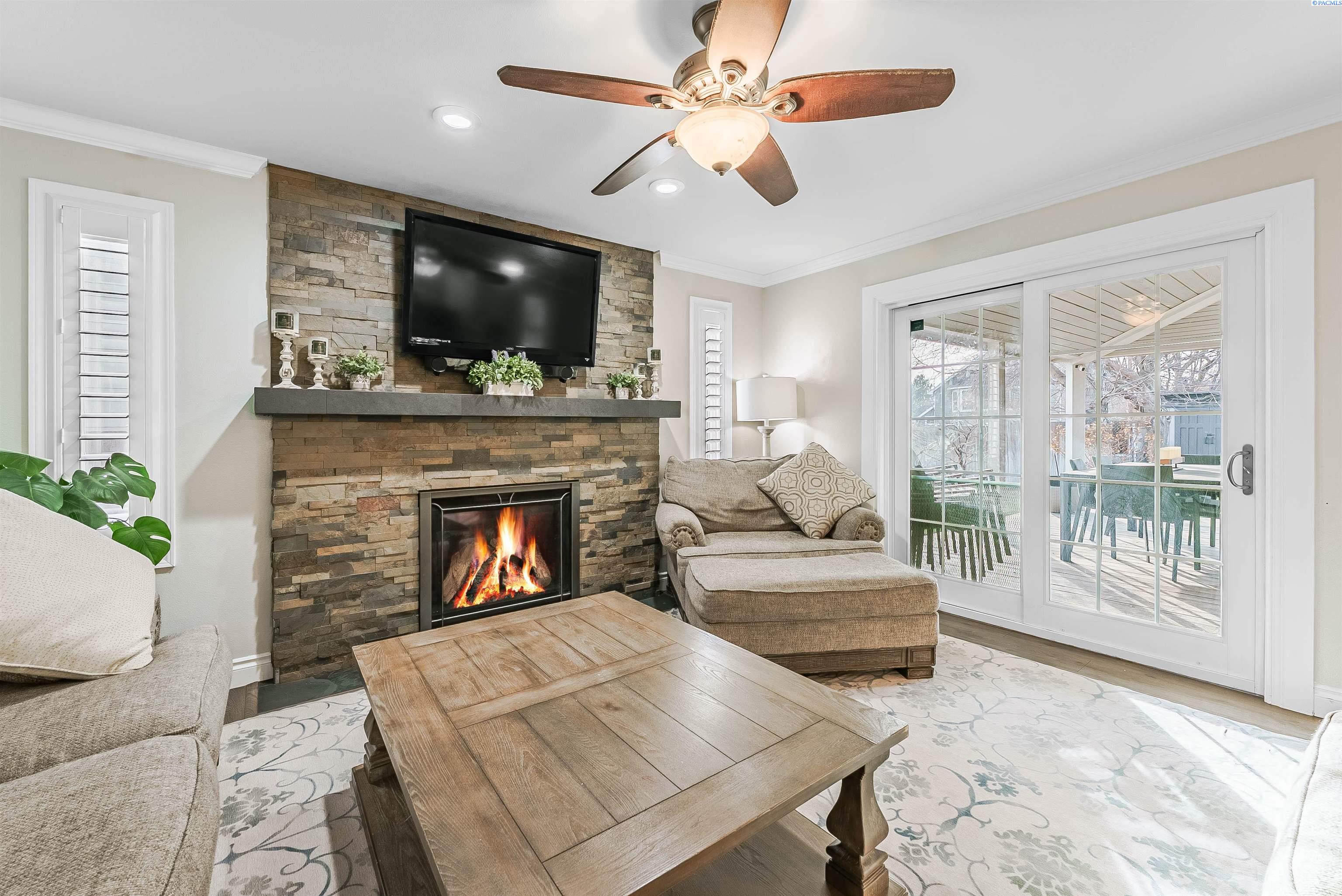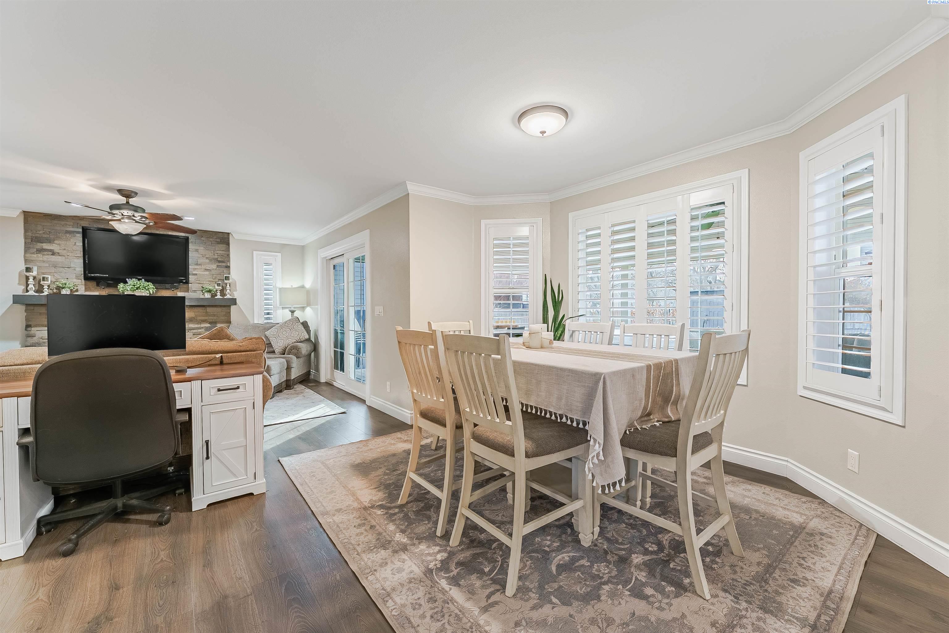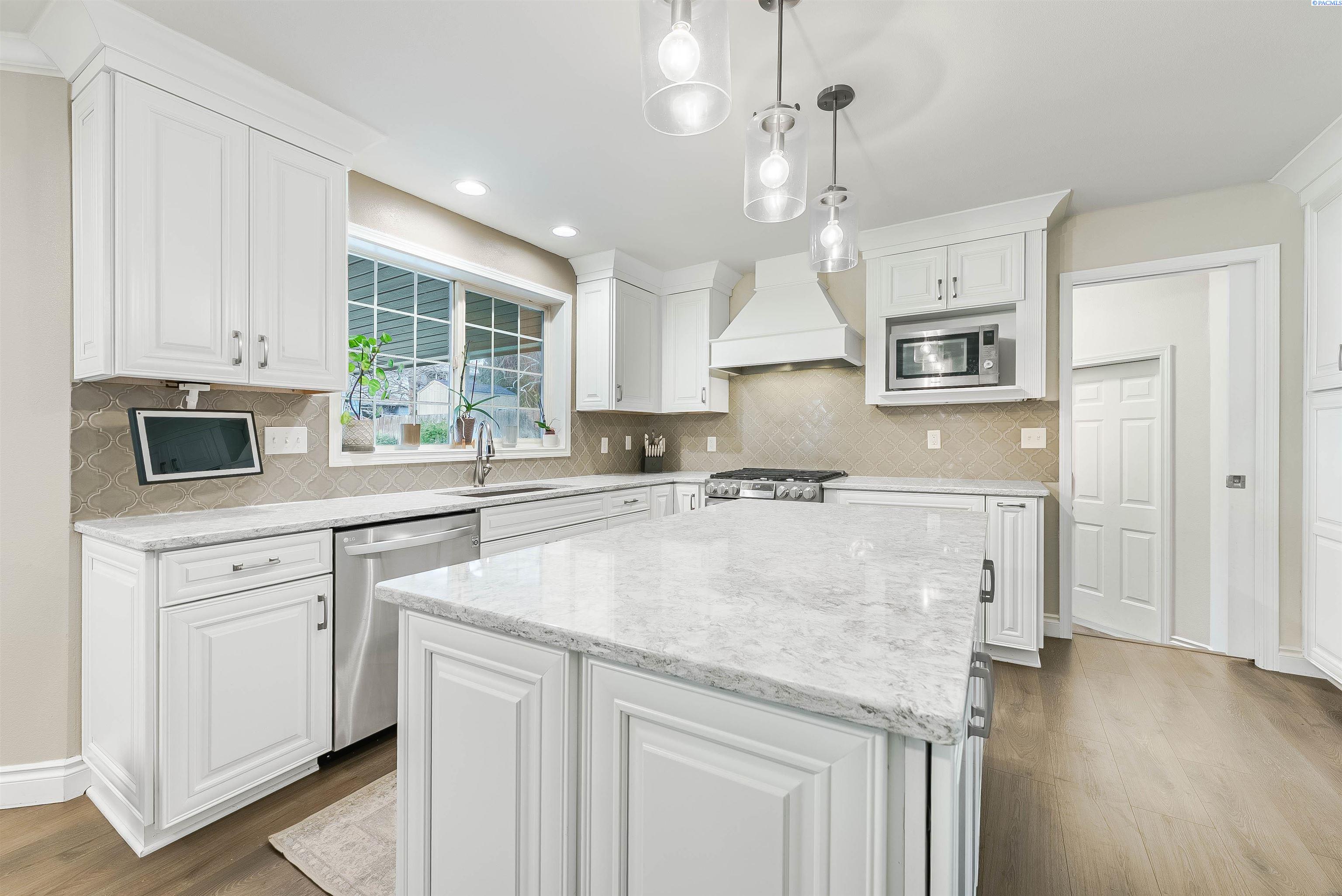 MLS# 290150 Tucked within the coveted Willowbrook division of South Richland, this four-bedroom, three-bath home feels intentionally designed for a life well livedâelegant yet unfussy, polished yet warm.From the moment you step inside, the home reveals a thoughtful evolution of upgrades that blend beauty with longevity. In 2020, the exterior was completely renewed with all-new siding, a composite roof backed by a 50-year transferable warranty, and a fully covered patio and deckâplumbed for natural gas, accented with recessed lighting, and cooled by an outdoor ceiling fan. Itâs a space made for slow mornings, long dinners, and conversations that linger.By 2021, the heart of the home gained soul: a gas fireplace wrapped in stone, anchoring the living space with quiet drama, and a dual-fuel natural gas range with double ovens that makes both everyday cooking and holiday hosting feel indulgent.In 2022, the interior was completely refinedâluxury vinyl flooring throughout, fresh paint from walls to ceilings, a full kitchen remodel with quartz countertops and custom cabinetry, new dishwasher, interior doors, crown molding, and substantial baseboards, plus wrought-iron stair railings that add architectural grace. That same year brought a new forced-gas heating and HVAC system, ensuring comfort in every season.Recent additions include a 75-gallon gas water heater (2023), whole-house luxury window shutters (2023), and a Level II EV charging station in the garage (2024)âmodern conveniences that quietly elevate daily life.Outside, the backyard is both practical and playful: a dedicated dog run, tool shed, and a childrenâs play area, with ample room left to imagine a pool, hot tub, or garden retreat of your own creation.This is a home that has been loved deliberatelyâwhere evenings glow a little softer, weekends feel unhurried, and every upgrade tells a story of care, foresight, and style.