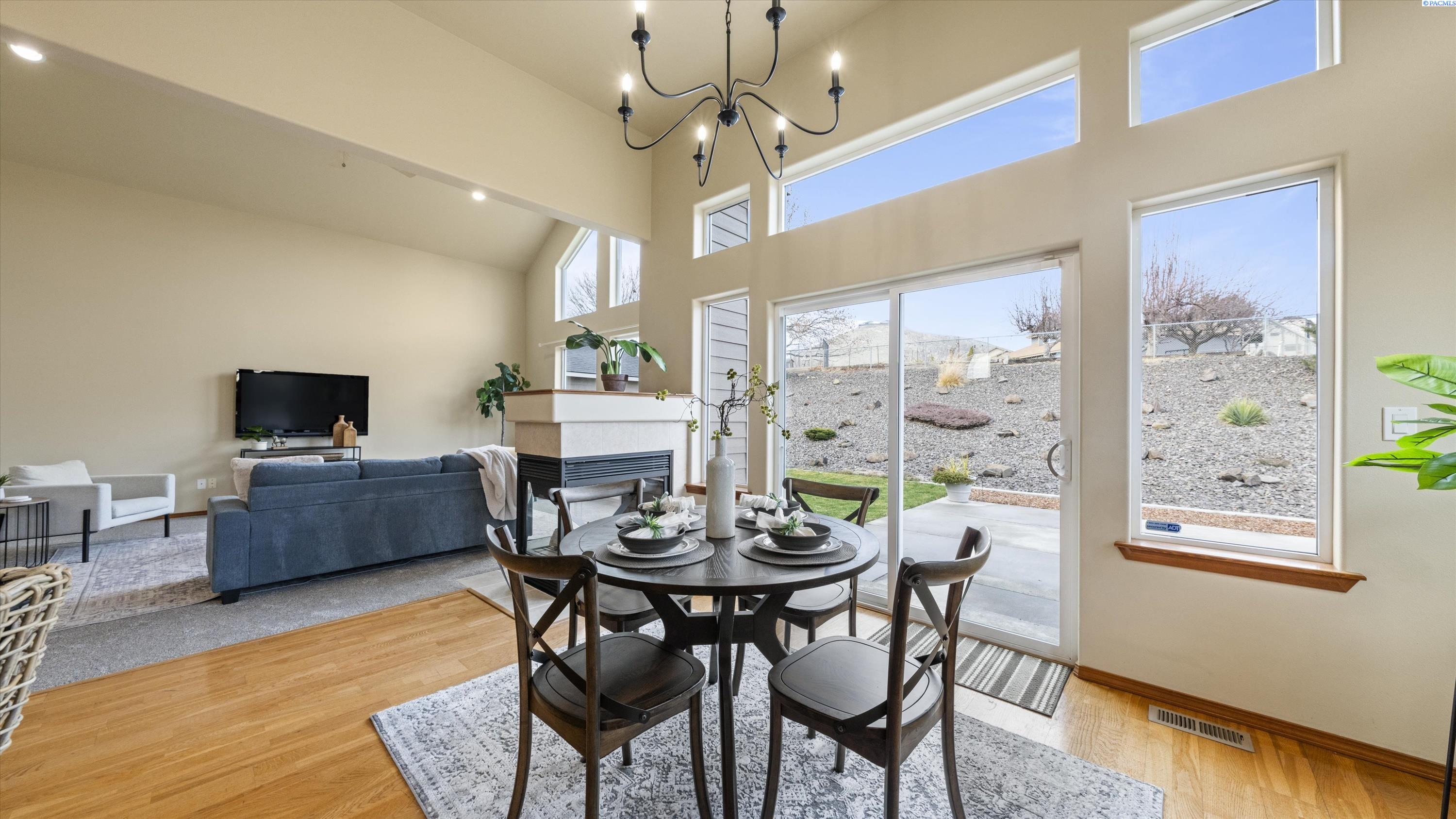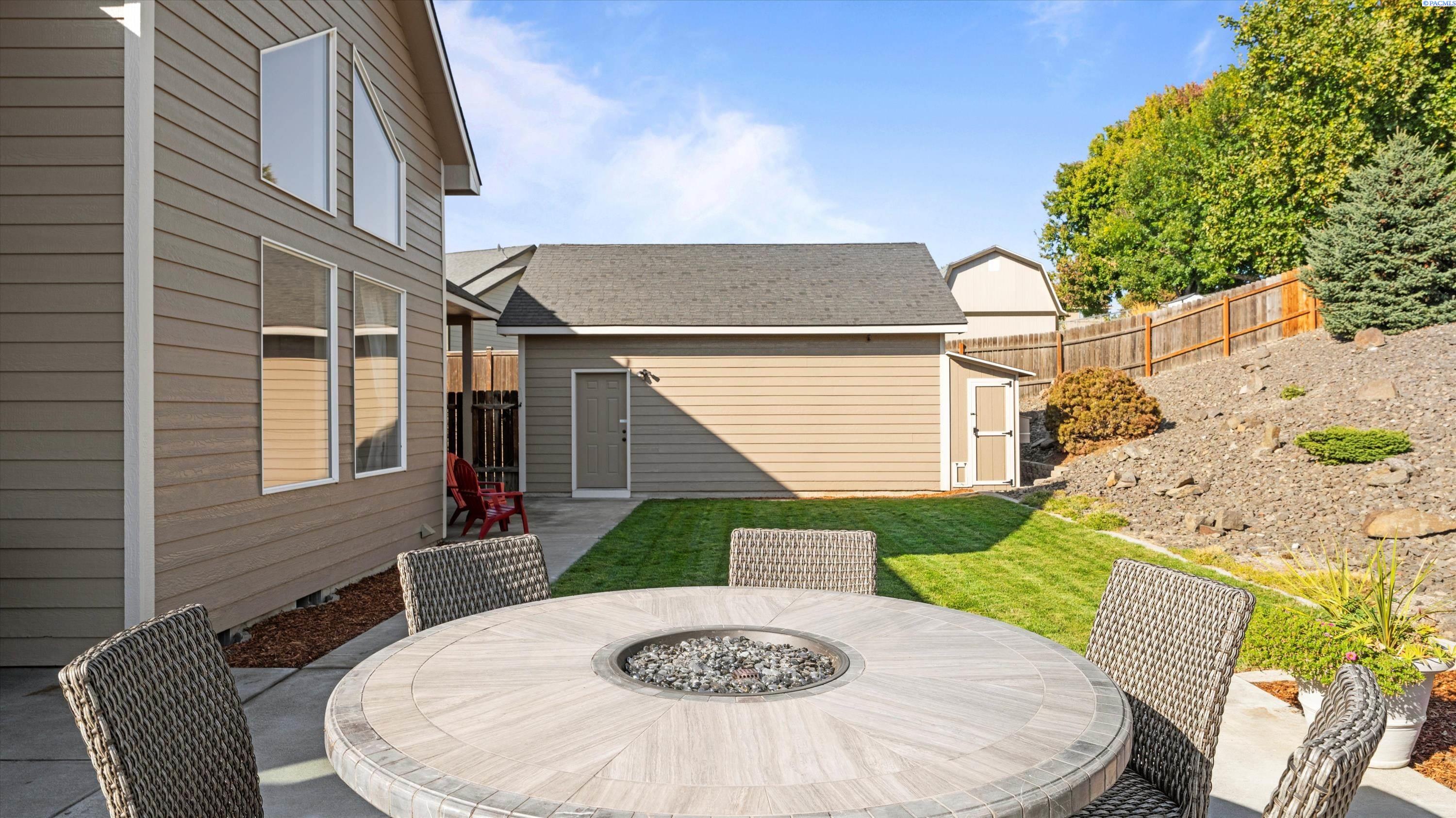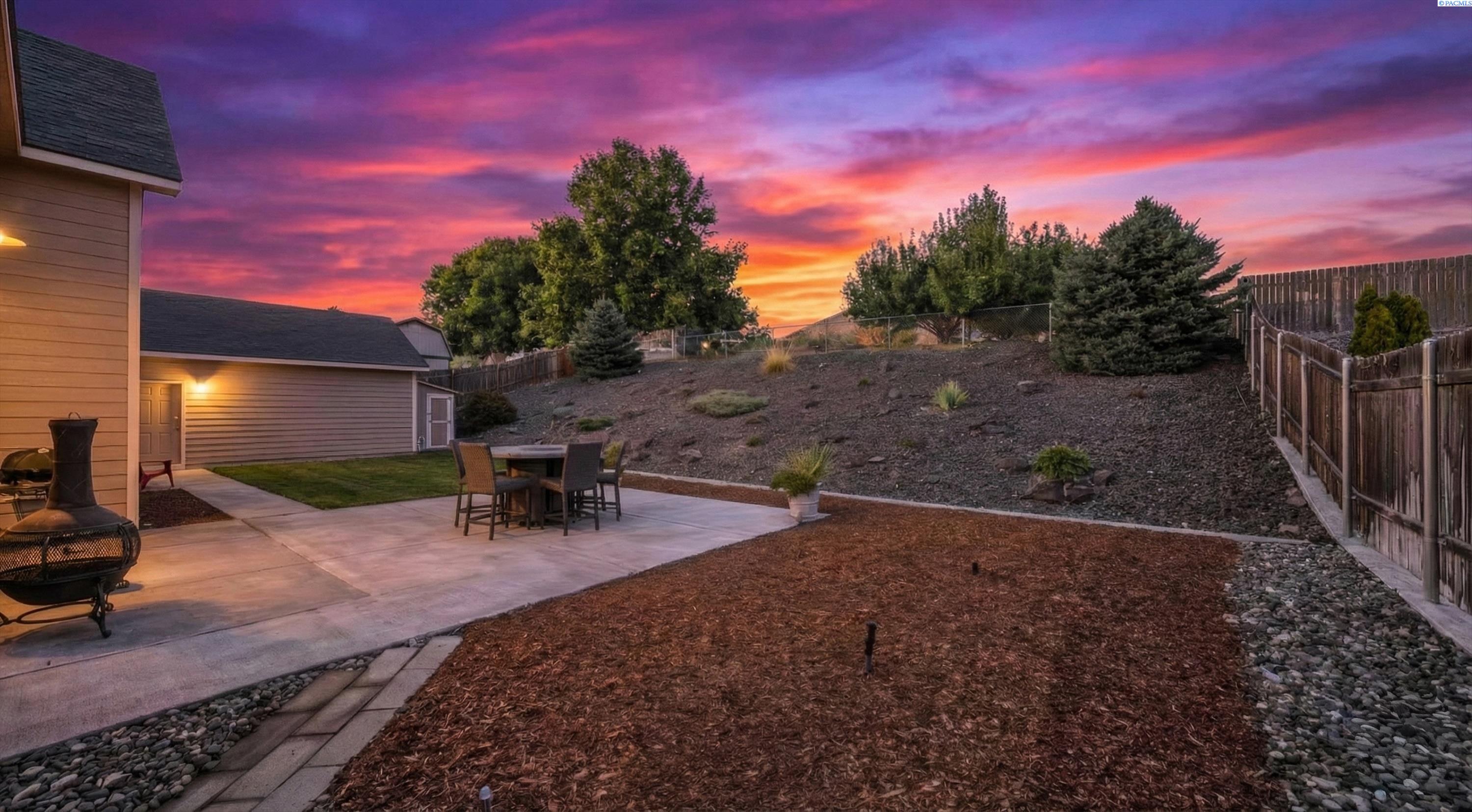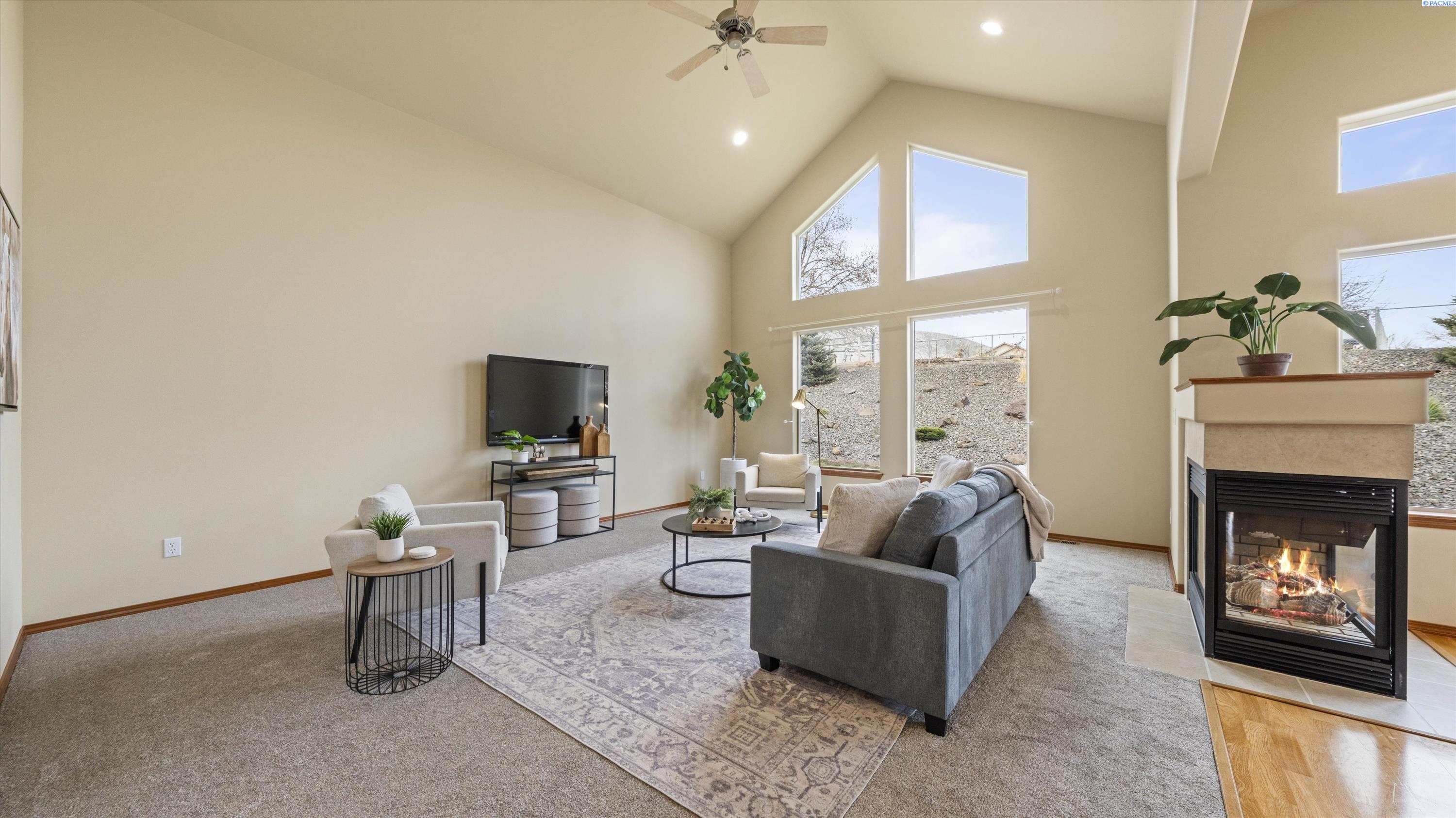 MLS# 290156 South Richland location, multi-suite layout, shop + garage capacity, and sunset views: a combination thatâs hard to beat. Set on over a half-acre in Meadow Parke Estates, this nearly 2,900 sq ft home offers a rare blend of space and flexibility. The main level features soaring ceilings, a living room, a dedicated office with French doors, powder bath, and a vaulted-ceiling great room filled with natural light, anchored by a double-sided fireplace connecting the kitchen and dining area. The kitchen is designed for gathering and hosting, featuring a large island with seating, generous cabinetry and pantry storage, a large stainless steel sink, and a gas cooktop. The main-floor primary suite includes an oversized walk-in closet and a spacious bathroom with a double vanity, soaking tub, separate shower, and private water closet. Upstairs adds versatility with a junior suite featuring its own ¾ bath, plus two additional bedrooms separated by a full bathroom. In total, the home offers 4 bedrooms, an office, 3.5 bathrooms, main-floor laundry, and two distinct living spaces - creating natural separation and modern household functionality. Outside, the property continues to impress with a fully finished attached 3-car garage with storage, an extended driveway with RV parking, and direct access to a temperature-controlled 20Ã24 shop and RV sewer output. The fenced and landscaped backyard includes two patios for outdoor living, a greenhouse-ready platform with water and electrical service, and a finished 4Ã8 shed tucked behind the shop. Sunset and territorial views can be enjoyed from multiple vantage points, and recent updates include brand new exterior paint and new carpet. Conveniently located near outdoor recreation, schools, grocery stores, restaurants, and I-82 commuter access, homes offering this level of care, square footage, flexibility, and shop + garage + parking capacity in South Richland are rare. A must-see, schedule your private tour today! (HOA = $300/year and includes road mainentance including snow removal!)