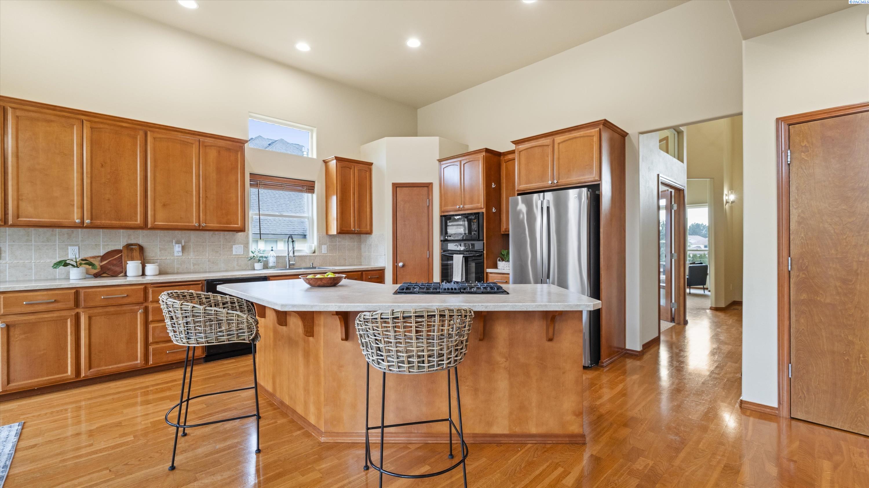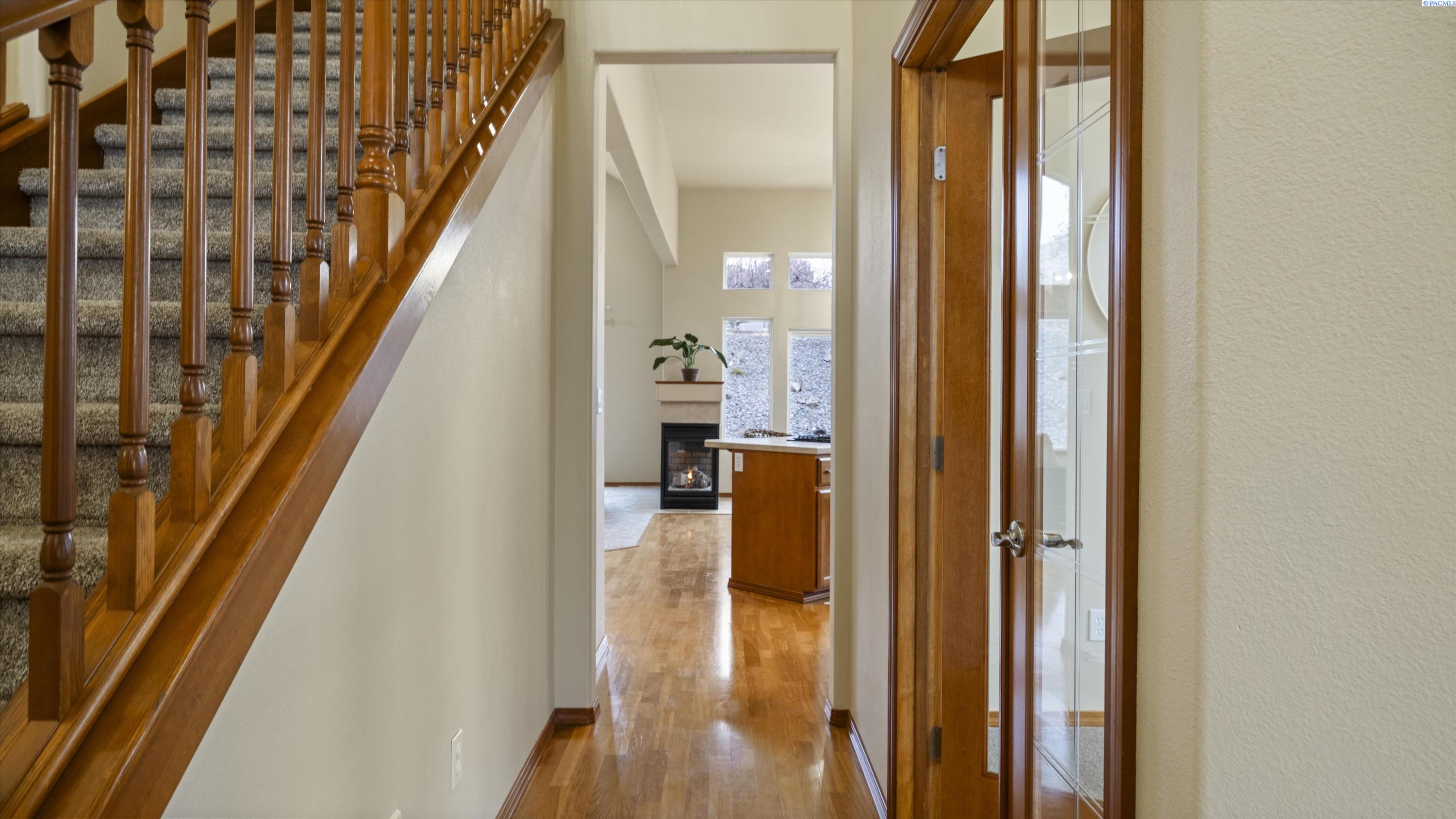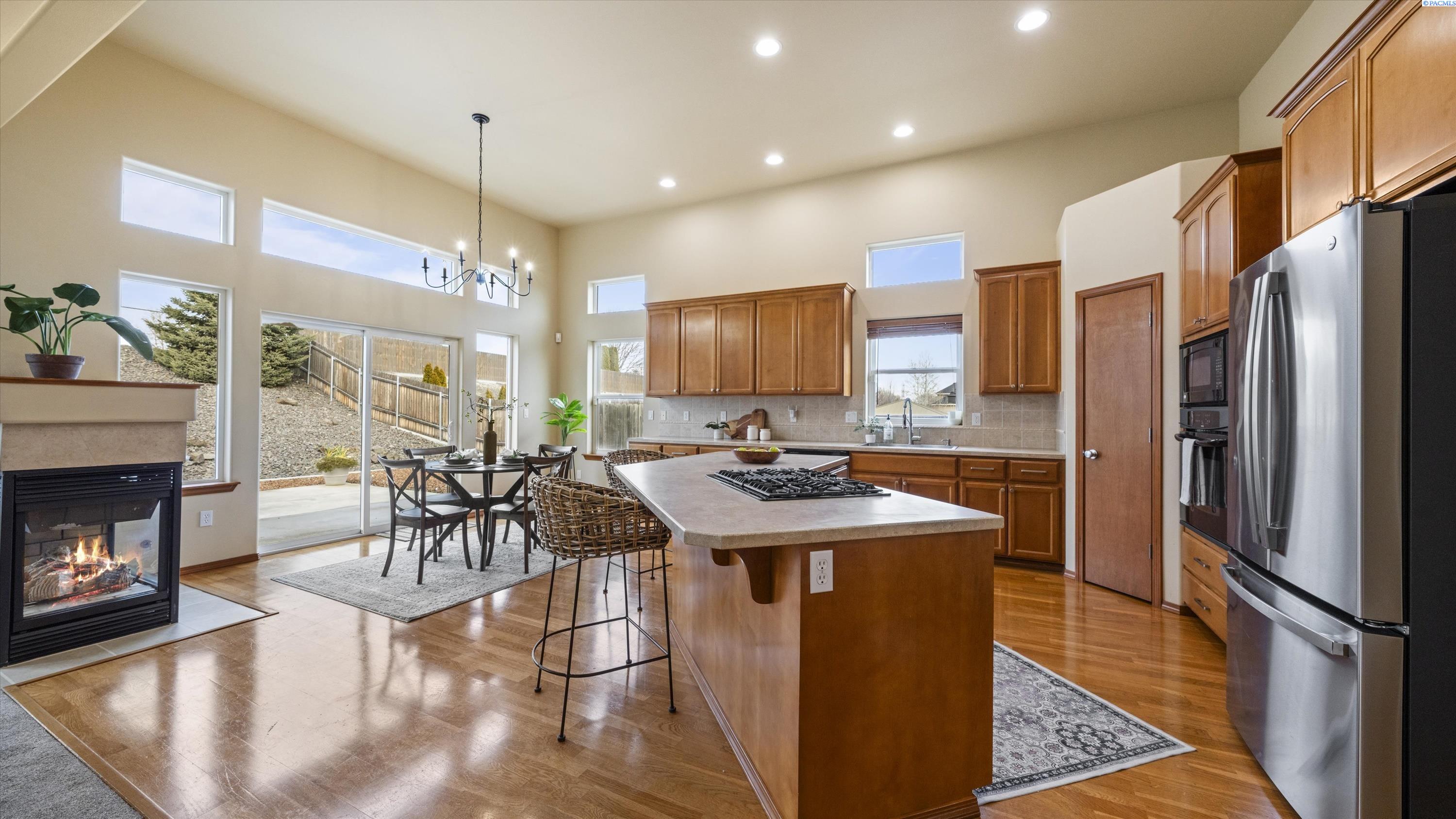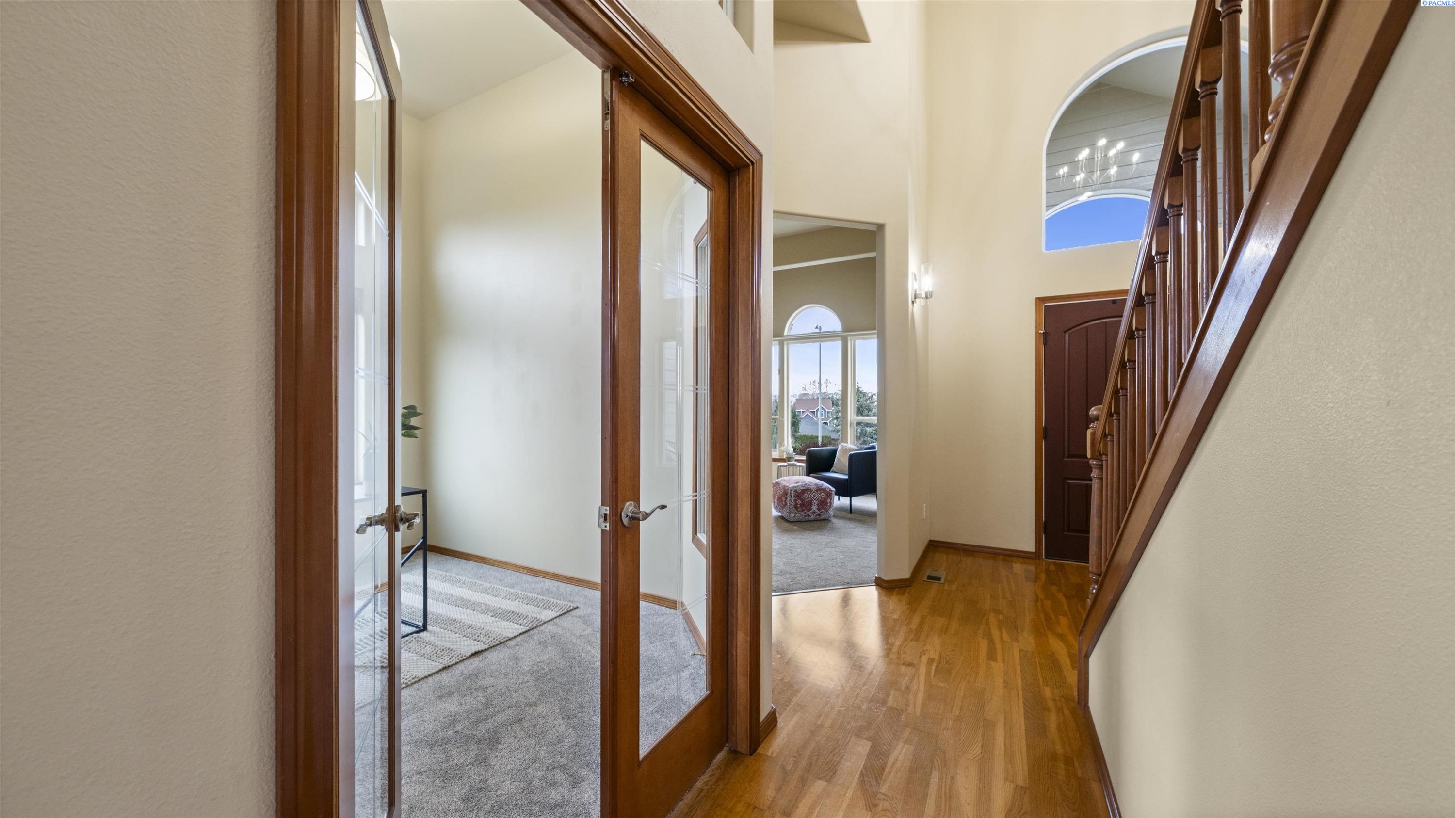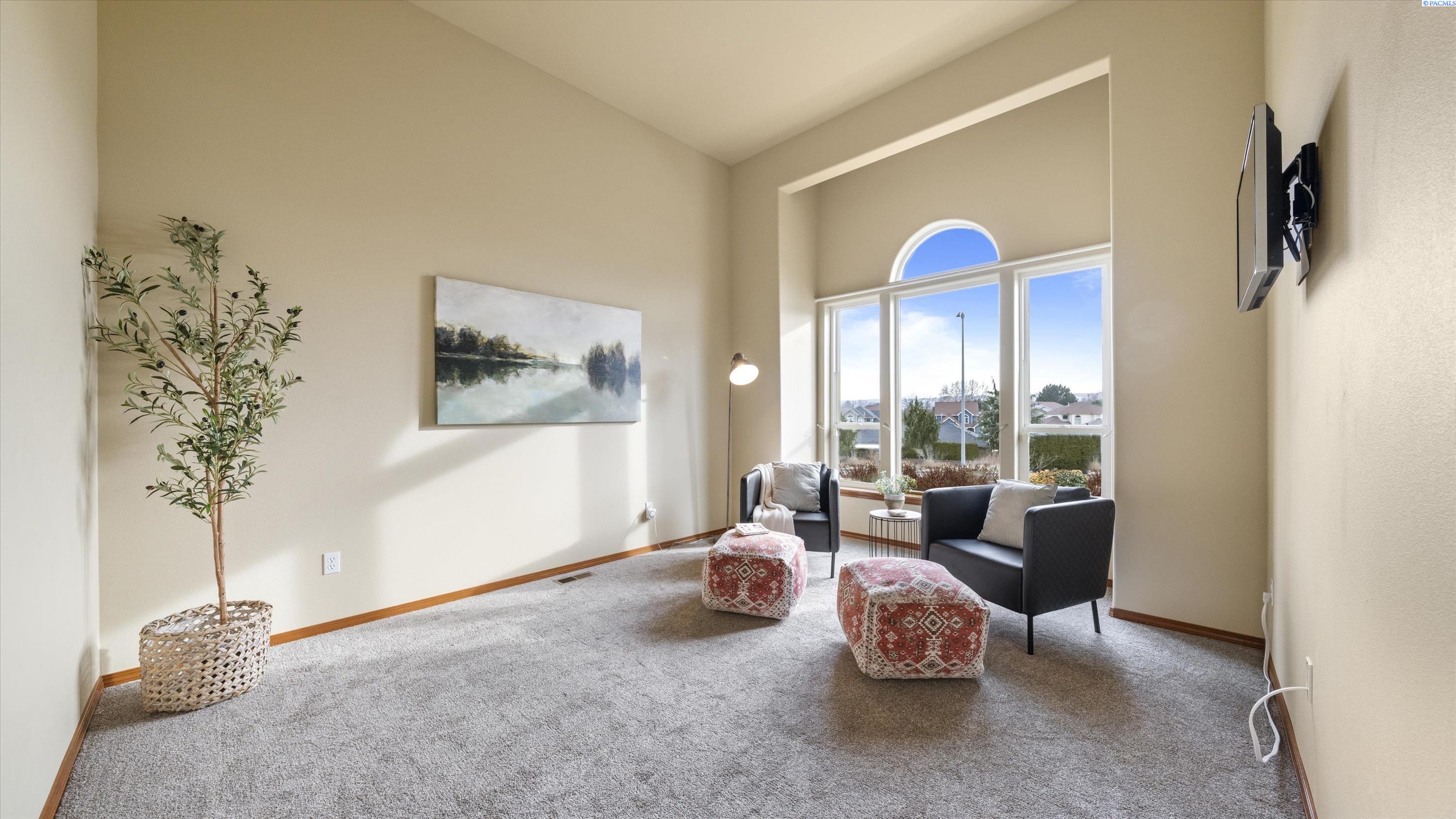 MLS# 290156 South Richland location, multi-suite layout, shop + garage capacity, and sunset views: a combination thatâs hard to beat. Set on over a half-acre in Meadow Parke Estates, this nearly 2,900 sq ft home offers a rare blend of space and flexibility. The main level features soaring ceilings, a living room, a dedicated office with French doors, powder bath, and a vaulted-ceiling great room filled with natural light, anchored by a double-sided fireplace connecting the kitchen and dining area. The kitchen is designed for gathering and hosting, featuring a large island with seating, generous cabinetry and pantry storage, a large stainless steel sink, and a gas cooktop. The main-floor primary suite includes an oversized walk-in closet and a spacious bathroom with a double vanity, soaking tub, separate shower, and private water closet. Upstairs adds versatility with a junior suite featuring its own ¾ bath, plus two additional bedrooms separated by a full bathroom. In total, the home offers 4 bedrooms, an office, 3.5 bathrooms, main-floor laundry, and two distinct living spaces - creating natural separation and modern household functionality. Outside, the property continues to impress with a fully finished attached 3-car garage with storage, an extended driveway with RV parking, and direct access to a temperature-controlled 20Ã24 shop and RV sewer output. The fenced and landscaped backyard includes two patios for outdoor living, a greenhouse-ready platform with water and electrical service, and a finished 4Ã8 shed tucked behind the shop. Sunset and territorial views can be enjoyed from multiple vantage points, and recent updates include brand new exterior paint and new carpet. Conveniently located near outdoor recreation, schools, grocery stores, restaurants, and I-82 commuter access, homes offering this level of care, square footage, flexibility, and shop + garage + parking capacity in South Richland are rare. A must-see, schedule your private tour today! (HOA = $300/year and includes road mainentance including snow removal!)