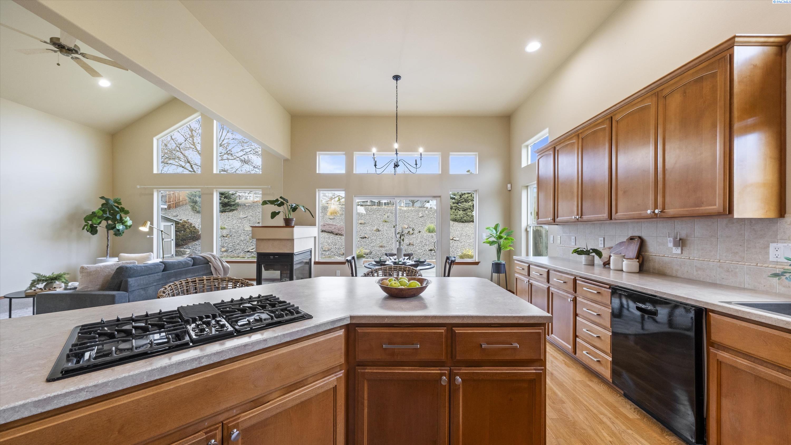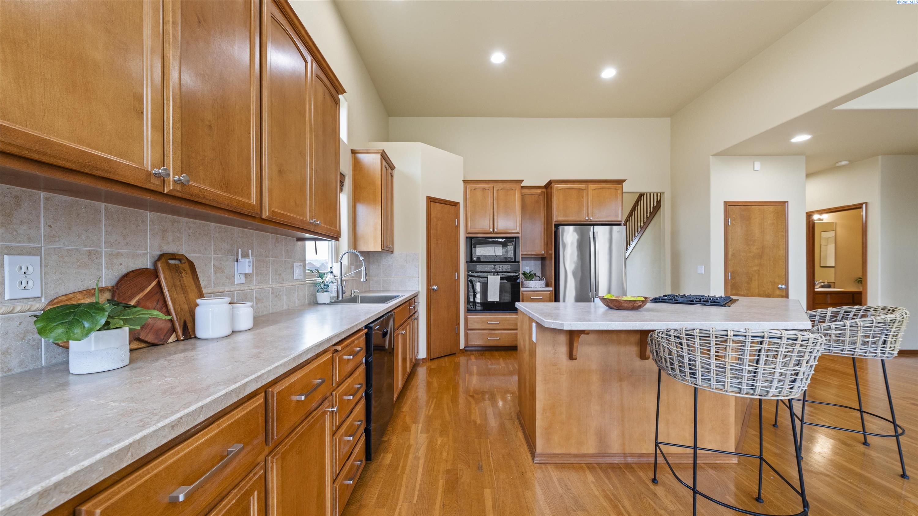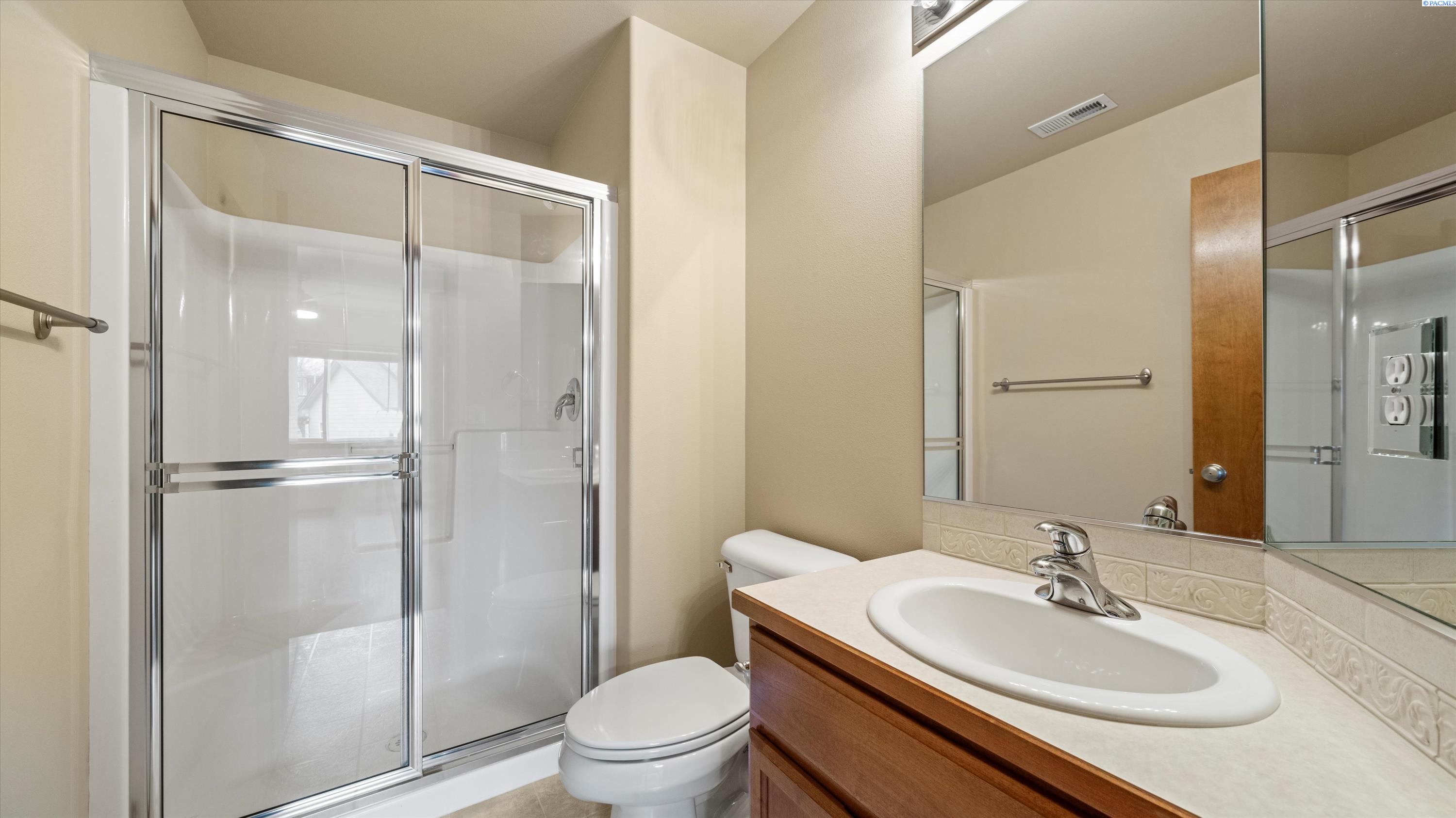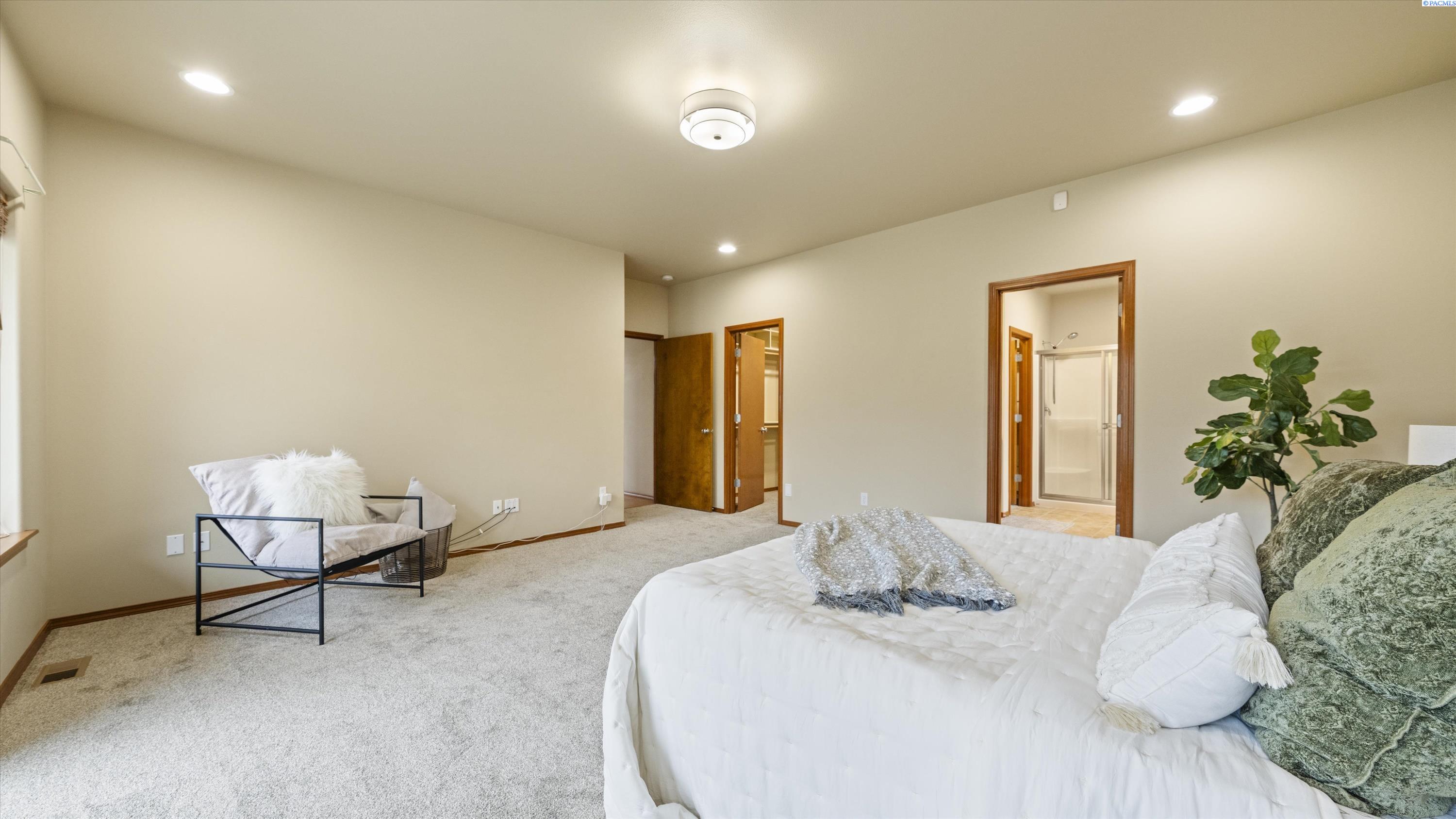 MLS# 290156 South Richland location, multi-suite layout, shop + garage capacity, and sunset views: a combination thatâs hard to beat. Set on over a half-acre in Meadow Parke Estates, this nearly 2,900 sq ft home offers a rare blend of space and flexibility. The main level features soaring ceilings, a living room, a dedicated office with French doors, powder bath, and a vaulted-ceiling great room filled with natural light, anchored by a double-sided fireplace connecting the kitchen and dining area. The kitchen is designed for gathering and hosting, featuring a large island with seating, generous cabinetry and pantry storage, a large stainless steel sink, and a gas cooktop. The main-floor primary suite includes an oversized walk-in closet and a spacious bathroom with a double vanity, soaking tub, separate shower, and private water closet. Upstairs adds versatility with a junior suite featuring its own ¾ bath, plus two additional bedrooms separated by a full bathroom. In total, the home offers 4 bedrooms, an office, 3.5 bathrooms, main-floor laundry, and two distinct living spaces - creating natural separation and modern household functionality. Outside, the property continues to impress with a fully finished attached 3-car garage with storage, an extended driveway with RV parking, and direct access to a temperature-controlled 20Ã24 shop and RV sewer output. The fenced and landscaped backyard includes two patios for outdoor living, a greenhouse-ready platform with water and electrical service, and a finished 4Ã8 shed tucked behind the shop. Sunset and territorial views can be enjoyed from multiple vantage points, and recent updates include brand new exterior paint and new carpet. Conveniently located near outdoor recreation, schools, grocery stores, restaurants, and I-82 commuter access, homes offering this level of care, square footage, flexibility, and shop + garage + parking capacity in South Richland are rare. A must-see, schedule your private tour today! (HOA = $300/year and includes road mainentance including snow removal!)