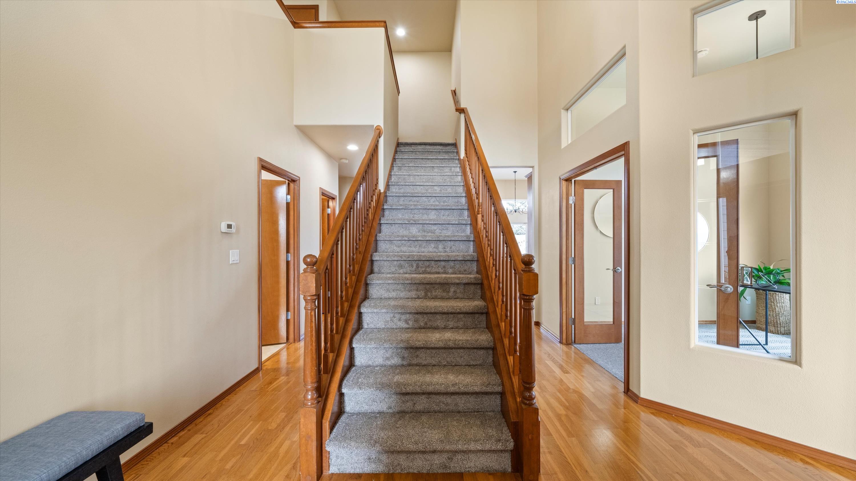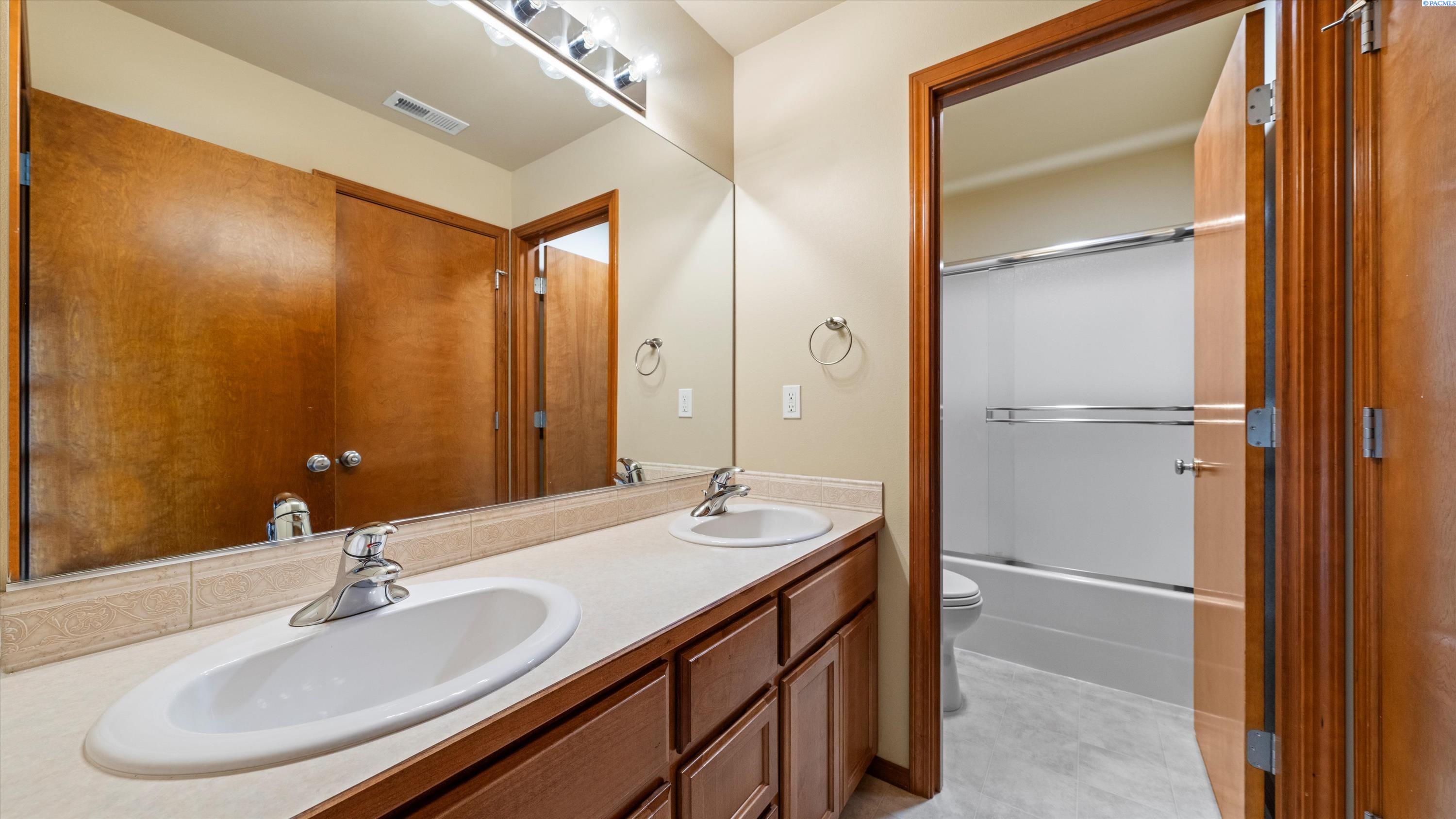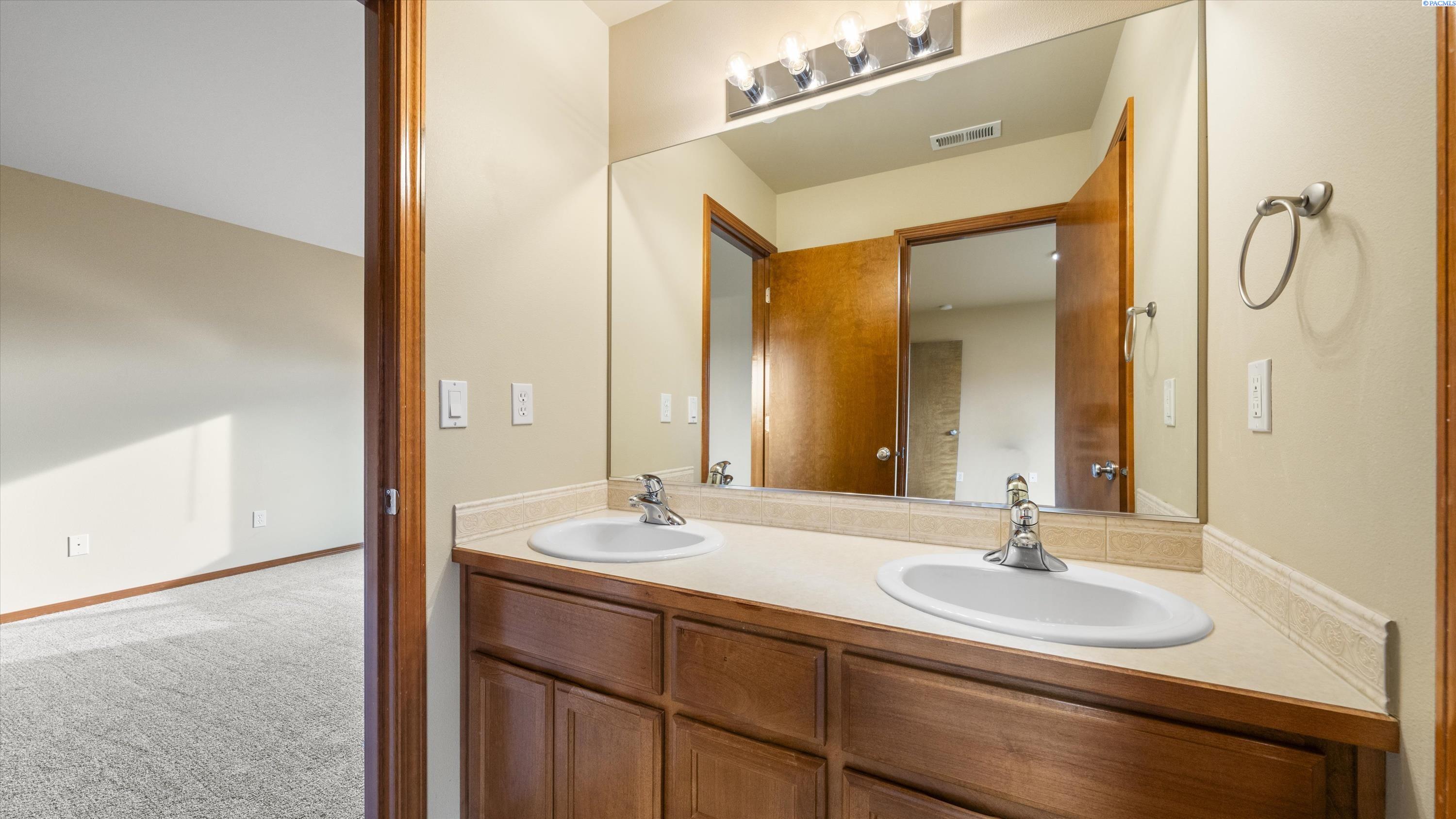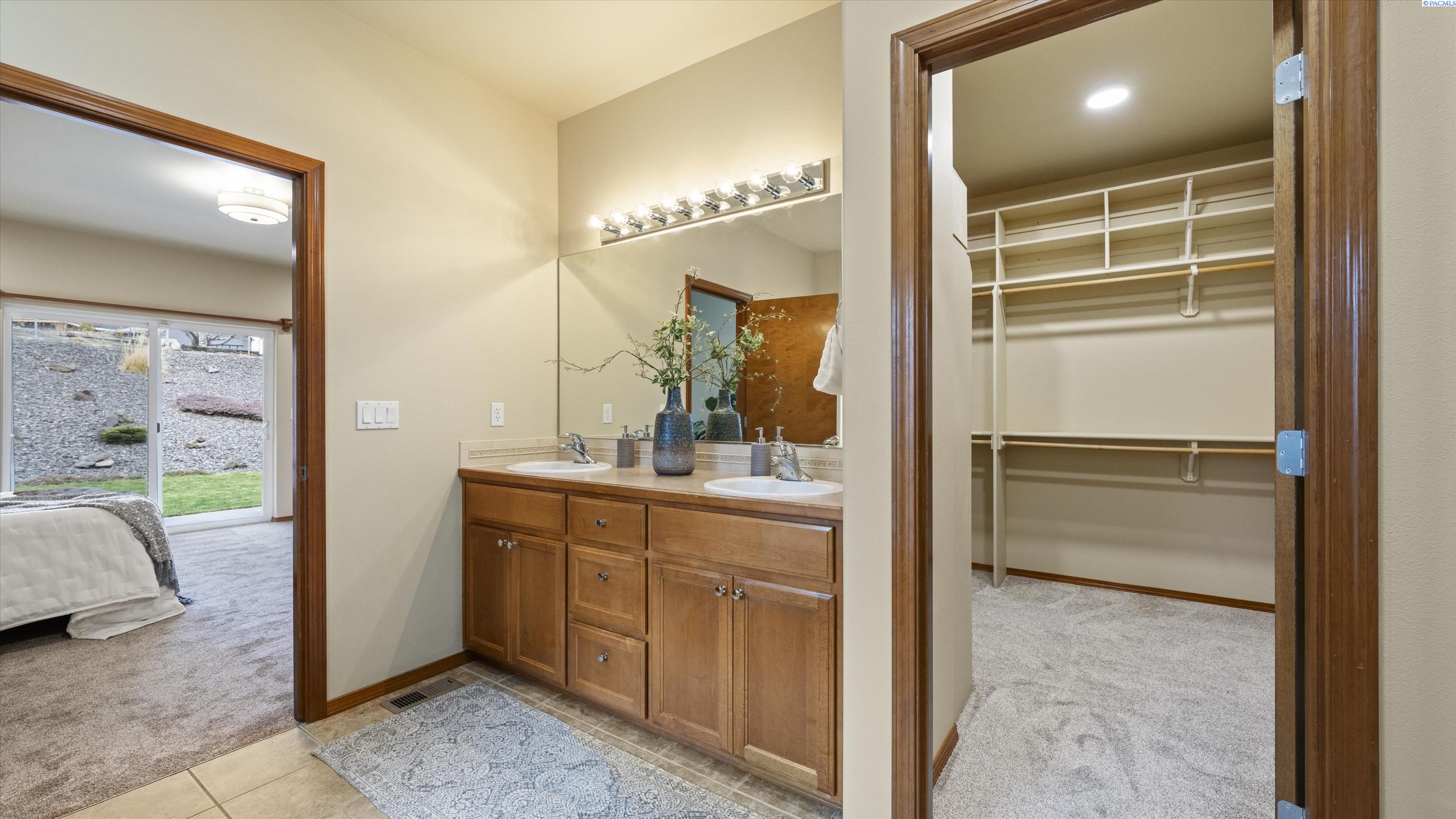MLS# 290156 South Richland location, multi-suite layout, shop + garage capacity, and sunset views: a combination thatâs hard to beat. Set on over a half-acre in Meadow Parke Estates, this nearly 2,900 sq ft home offers a rare blend of space and flexibility. The main level features soaring ceilings, a living room, a dedicated office with French doors, powder bath, and a vaulted-ceiling great room filled with natural light, anchored by a double-sided fireplace connecting the kitchen and dining area. The kitchen is designed for gathering and hosting, featuring a large island with seating, generous cabinetry and pantry storage, a large stainless steel sink, and a gas cooktop. The main-floor primary suite includes an oversized walk-in closet and a spacious bathroom with a double vanity, soaking tub, separate shower, and private water closet. Upstairs adds versatility with a junior suite featuring its own ¾ bath, plus two additional bedrooms separated by a full bathroom. In total, the home offers 4 bedrooms, an office, 3.5 bathrooms, main-floor laundry, and two distinct living spaces - creating natural separation and modern household functionality. Outside, the property continues to impress with a fully finished attached 3-car garage with storage, an extended driveway with RV parking, and direct access to a temperature-controlled 20Ã24 shop and RV sewer output. The fenced and landscaped backyard includes two patios for outdoor living, a greenhouse-ready platform with water and electrical service, and a finished 4Ã8 shed tucked behind the shop. Sunset and territorial views can be enjoyed from multiple vantage points, and recent updates include brand new exterior paint and new carpet. Conveniently located near outdoor recreation, schools, grocery stores, restaurants, and I-82 commuter access, homes offering this level of care, square footage, flexibility, and shop + garage + parking capacity in South Richland are rare. A must-see, schedule your private tour today! (HOA = $300/year and includes road mainentance including snow removal!)