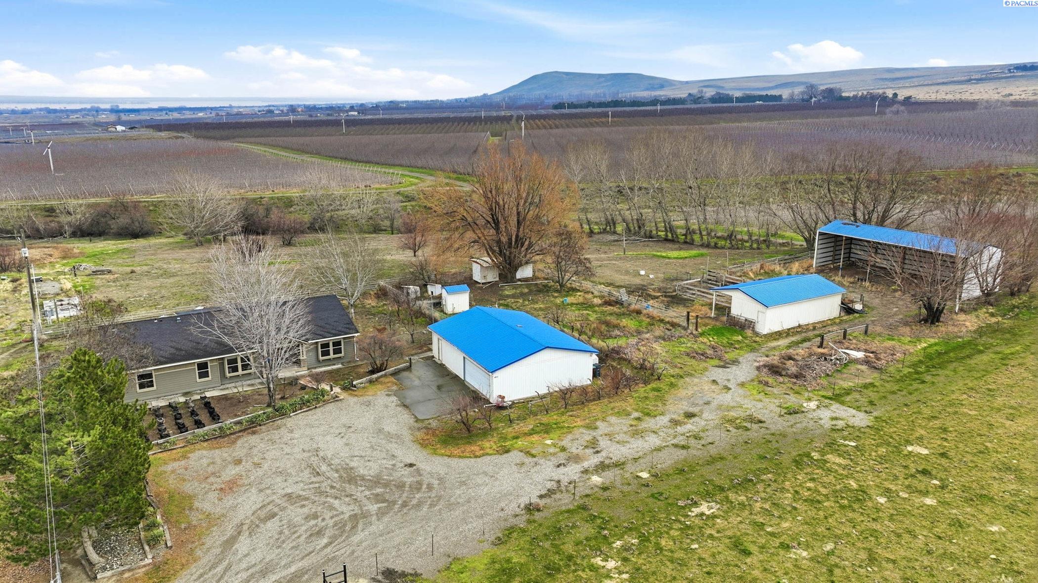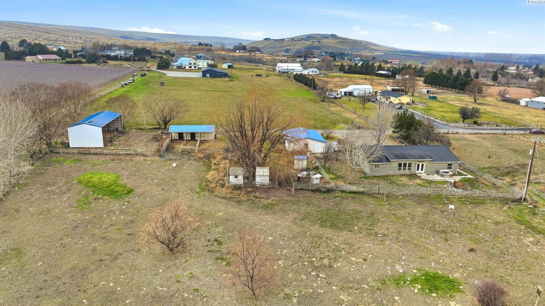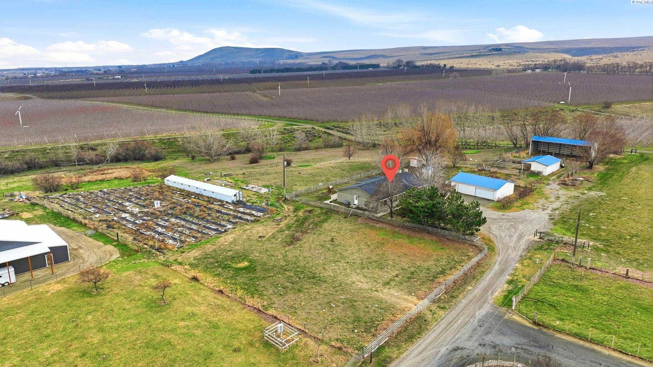MLS# 290160 This country home sits on 5.03 fully irrigated acres. Fenced with detached garage/shop and additional out buildings. Pasture, coop, livestock area and huge views. The 2560sqft offers 4 spacious bedrooms each with oversize closets and 3 full bathrooms. The master suite is huge with large walk-in closet, soaking tub, step-in shower, plenty of cabinetry and double vanity. The roomy kitchen with it's work island, pantry, breakfast bar & coffee bar is open to the living and dining spaces. The laundry/utility room has storage cabinetry, wash sink and exterior access. Fresh interior paint, great floor plan and acreage offer a wonderful rural living opportunity.