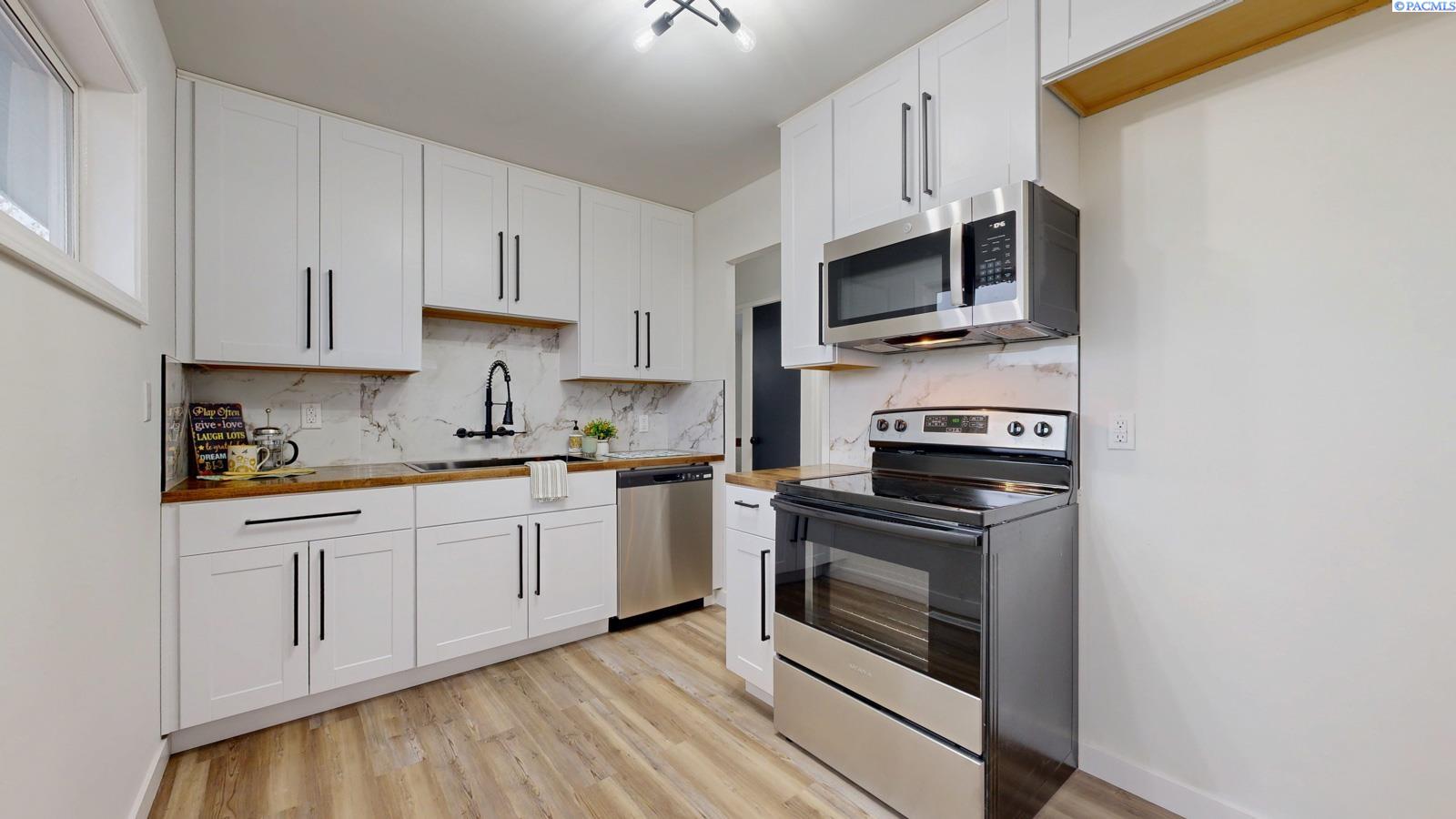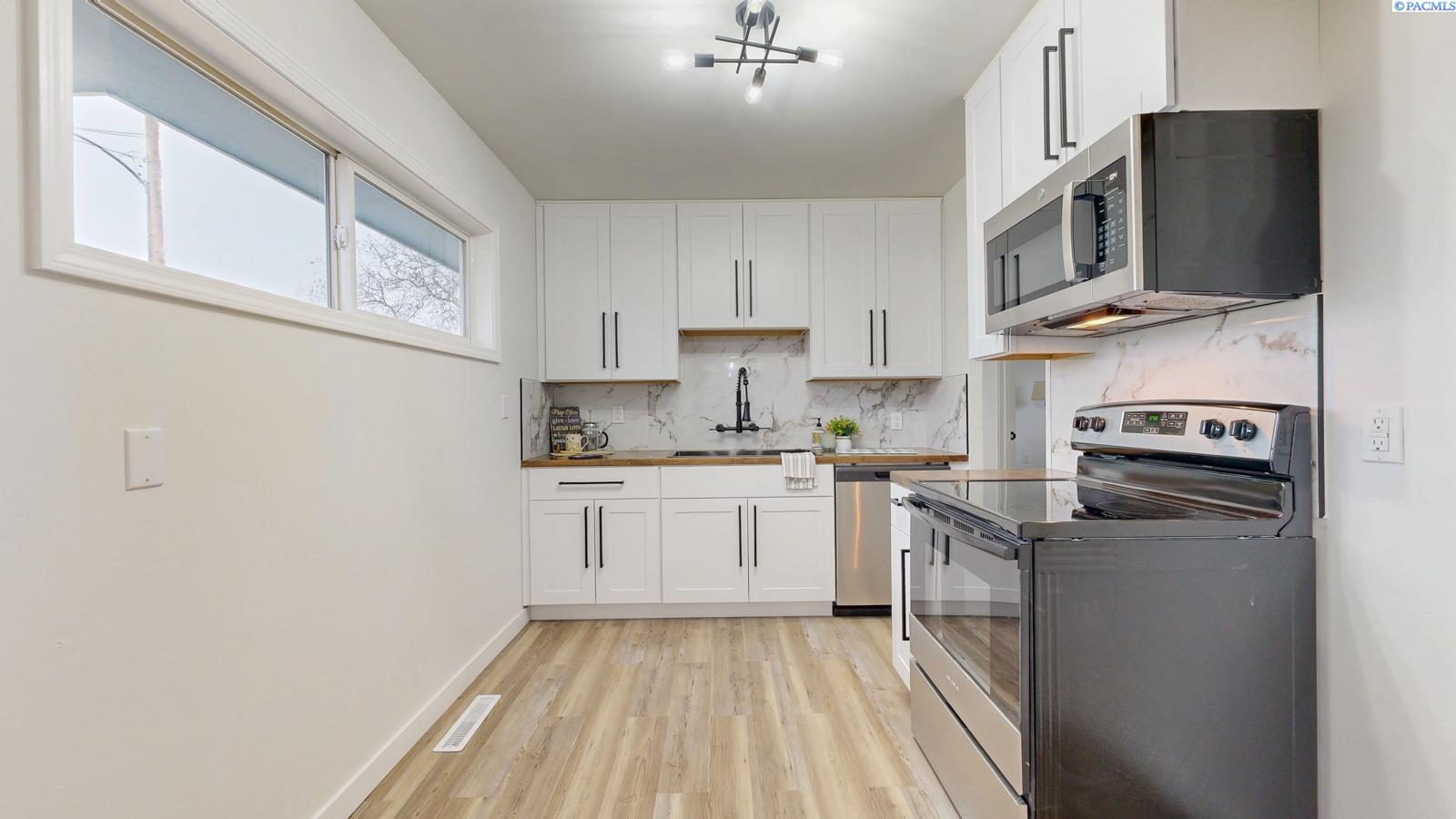 MLS# 290185 Completely refreshed and ready to welcome you home! This super cute 3 BR 1 BA rambler in Central Richland is truly move-in ready. New roof, new AC, and new kitchen and bath! Fresh paint inside and out gives the home a bright, modern feel, and the covered front porch adds a cozy spot to relax. Inside, youâll find hard-surface flooring in the main living areas and comfortable carpet in the bedrooms. The bright living room and dining room combo feels open and inviting, while the kitchen adds plenty of personality with butcher block counters, a full backsplash, and stainless-steel appliances. A spacious laundry room and convenient mud room add everyday functionality. Out back, enjoy a large, fully fenced yard with a generous patio, perfect for relaxing or entertaining, plus a storage shed for extra space. All of this in a great location close to highway access, schools, shopping, and dining. A well-updated home with big charmâcome take a look!