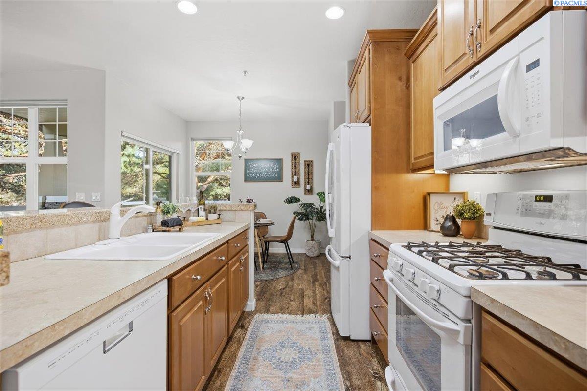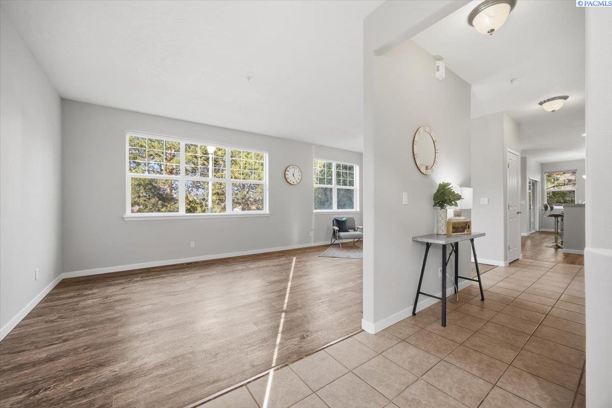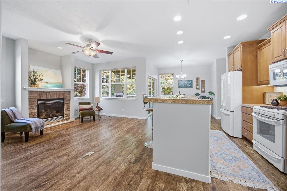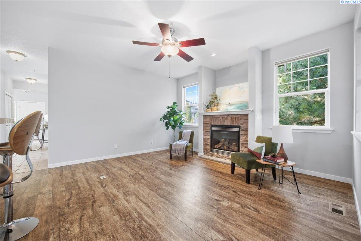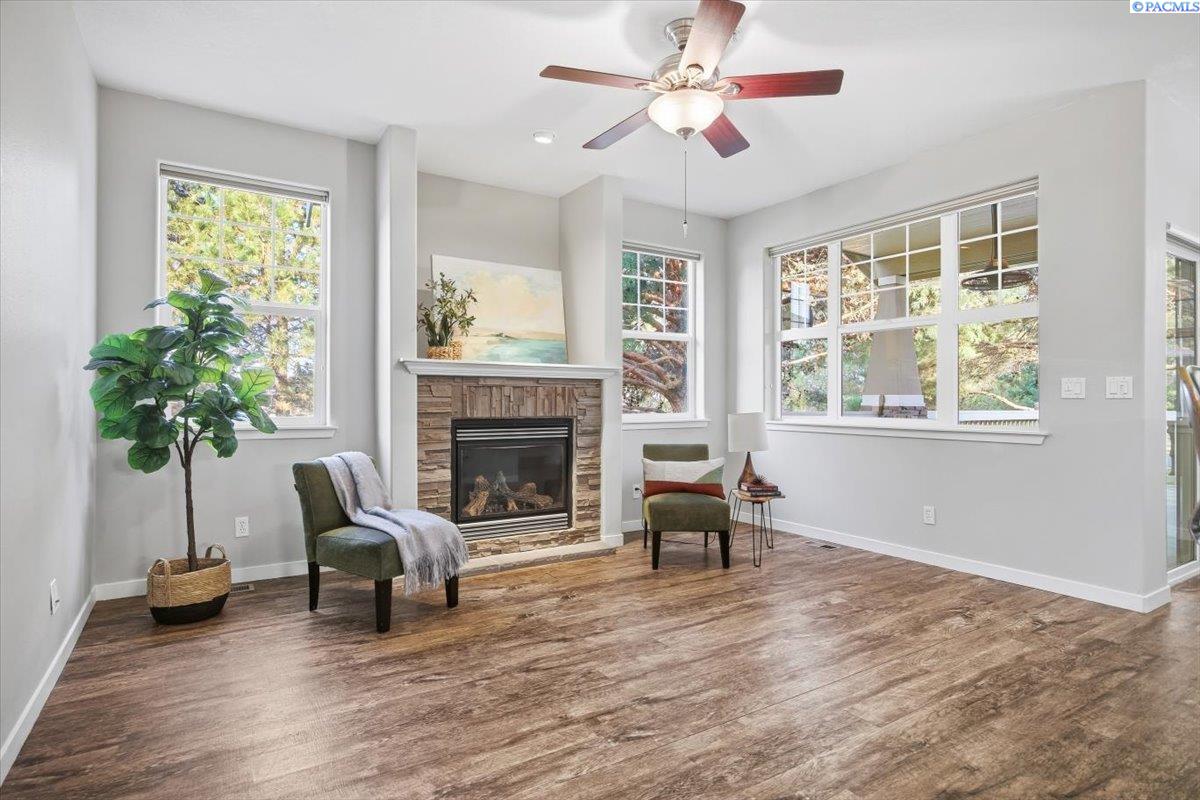 MLS# 290213 Welcome to one of the most spacious homes in this well-established 55+ community, offering 1,906 square feet of comfortable living space in a quiet Kennewick location close to shopping, dining, and everyday conveniences.This home features generously sized rooms, including two spacious bedrooms plus a den that can easily function as a home office, guest room, or hobby space. This great floor plan provides two separate living areas, allowing excellent versatility for entertaining or relaxing. There are many bonus features in this home like a nice size pantry, Vinyl Plank floor that is easy to keep clean, and a gas fireplace for warmth and charm. The primary suite includes a spacious bathroom with dual sinks, a walk-in shower, and a separate soaking tub. The home is accessible, and the laundry room includes a utility sink for added convenience.Outdoor living is a standout with both covered and open deck and patio areas, ideal for enjoying the surrounding wooded feel. Located near the back of the community, this home offers added privacy with less direct exposure to neighboring homes.A unique opportunity to own a spacious, well-laid-out home in a desirable 55+ setting with a peaceful atmosphere and easy access to the heart of Kennewick.