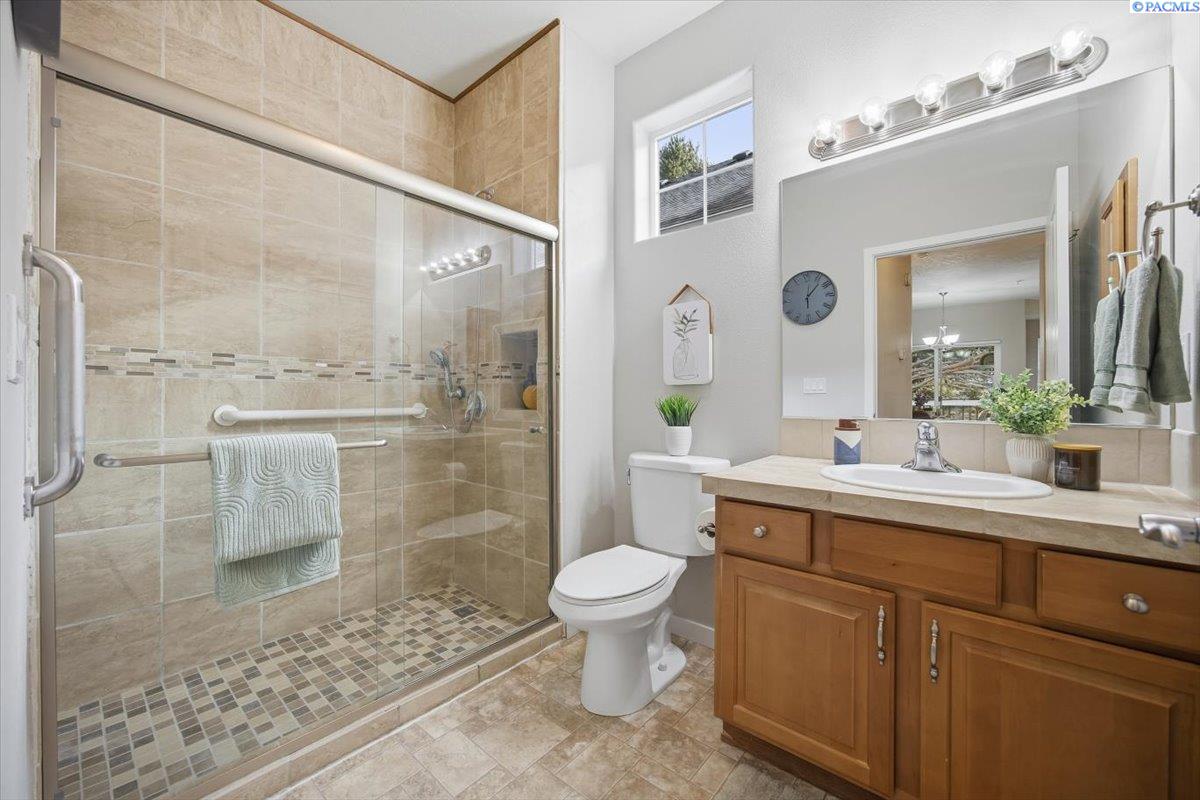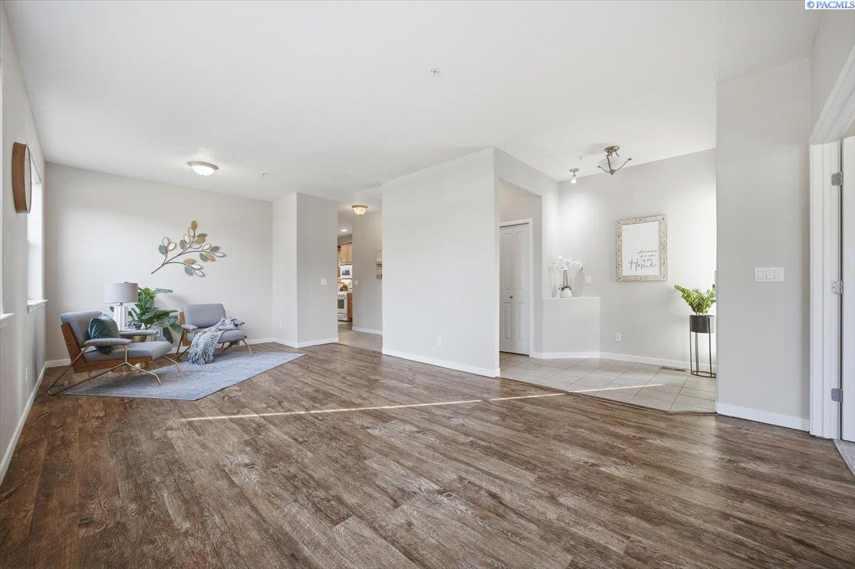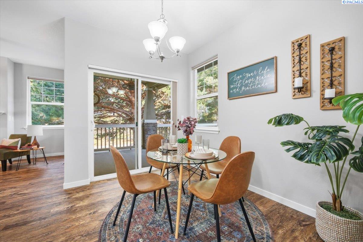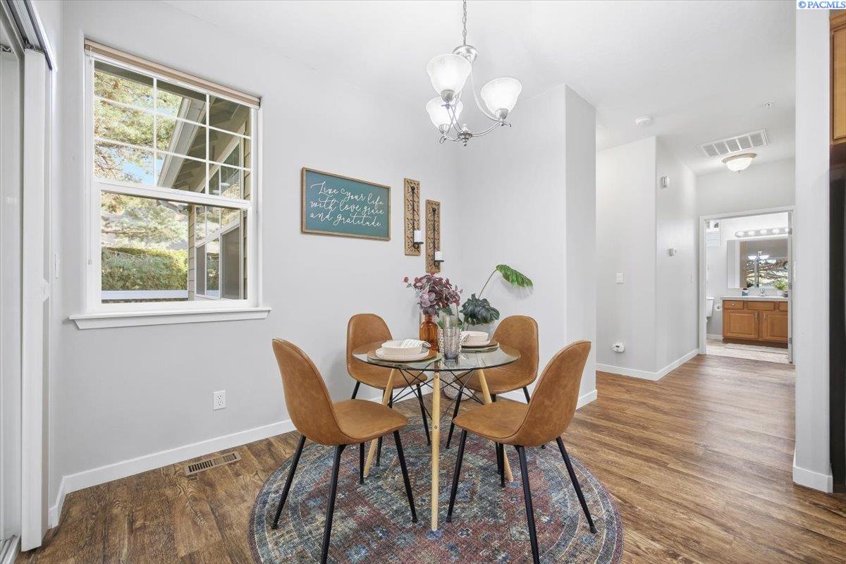 MLS# 290213 Welcome to one of the most spacious homes in this well-established 55+ community, offering 1,906 square feet of comfortable living space in a quiet Kennewick location close to shopping, dining, and everyday conveniences.This home features generously sized rooms, including two spacious bedrooms plus a den that can easily function as a home office, guest room, or hobby space. This great floor plan provides two separate living areas, allowing excellent versatility for entertaining or relaxing. There are many bonus features in this home like a nice size pantry, Vinyl Plank floor that is easy to keep clean, and a gas fireplace for warmth and charm. The primary suite includes a spacious bathroom with dual sinks, a walk-in shower, and a separate soaking tub. The home is accessible, and the laundry room includes a utility sink for added convenience.Outdoor living is a standout with both covered and open deck and patio areas, ideal for enjoying the surrounding wooded feel. Located near the back of the community, this home offers added privacy with less direct exposure to neighboring homes.A unique opportunity to own a spacious, well-laid-out home in a desirable 55+ setting with a peaceful atmosphere and easy access to the heart of Kennewick.