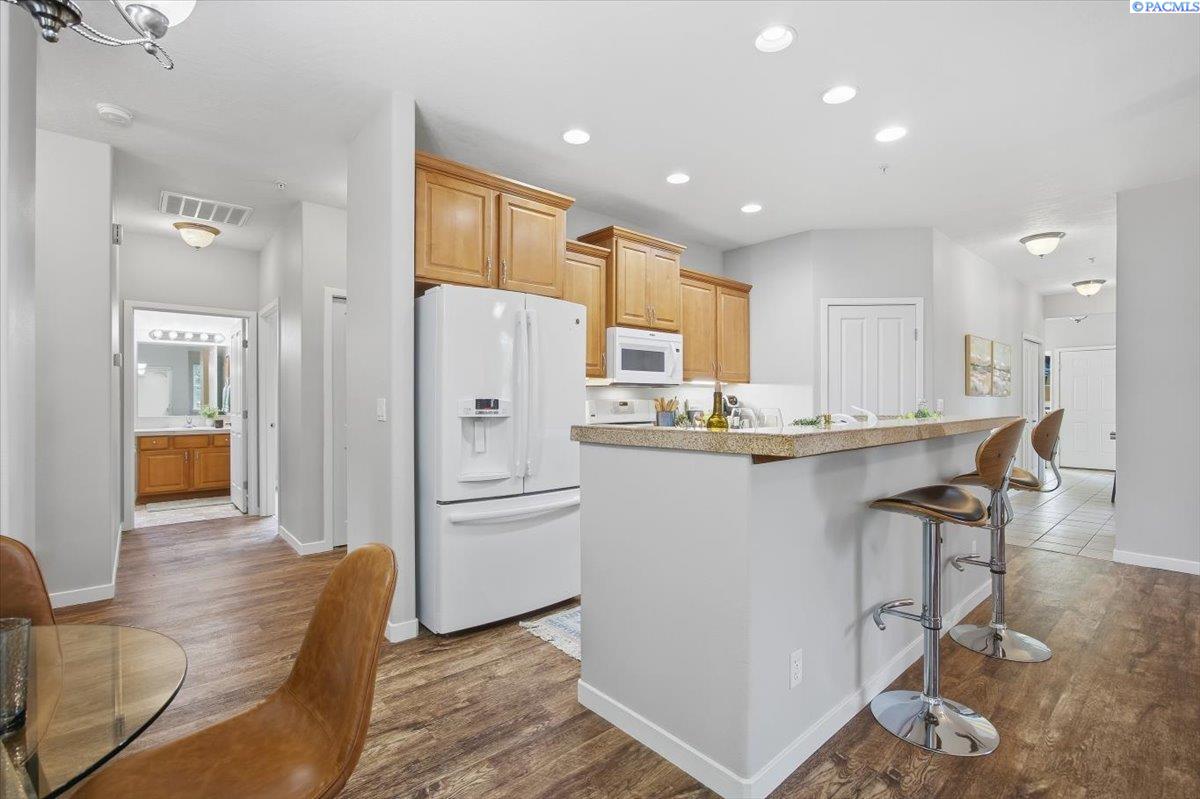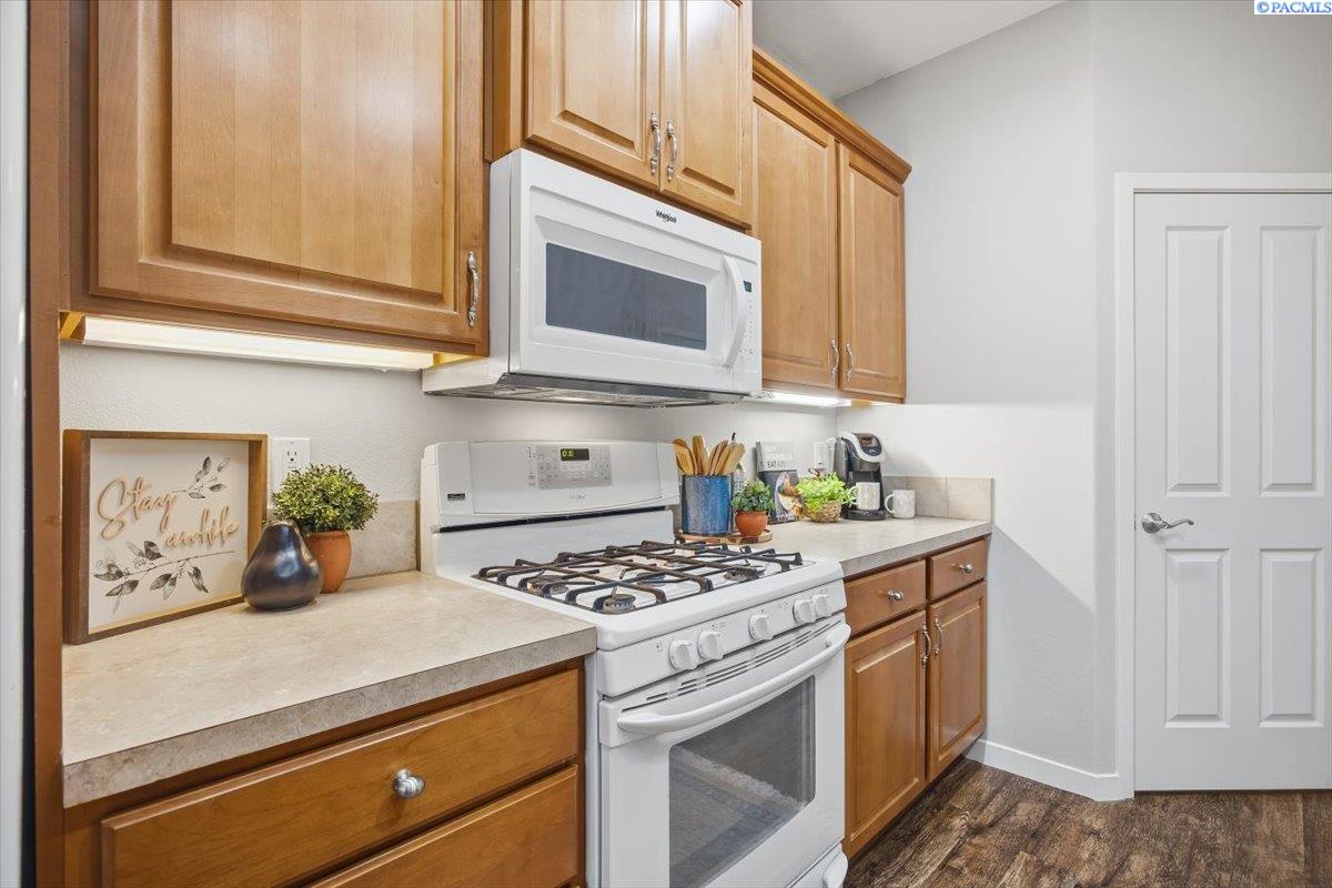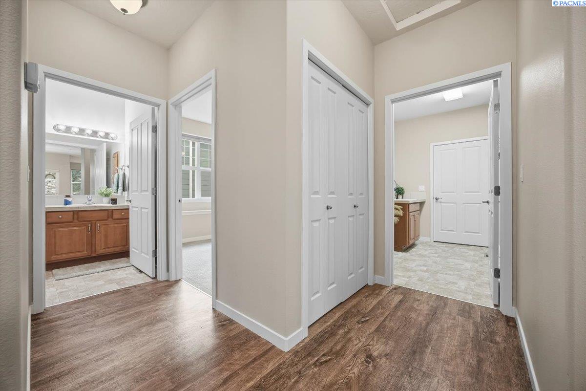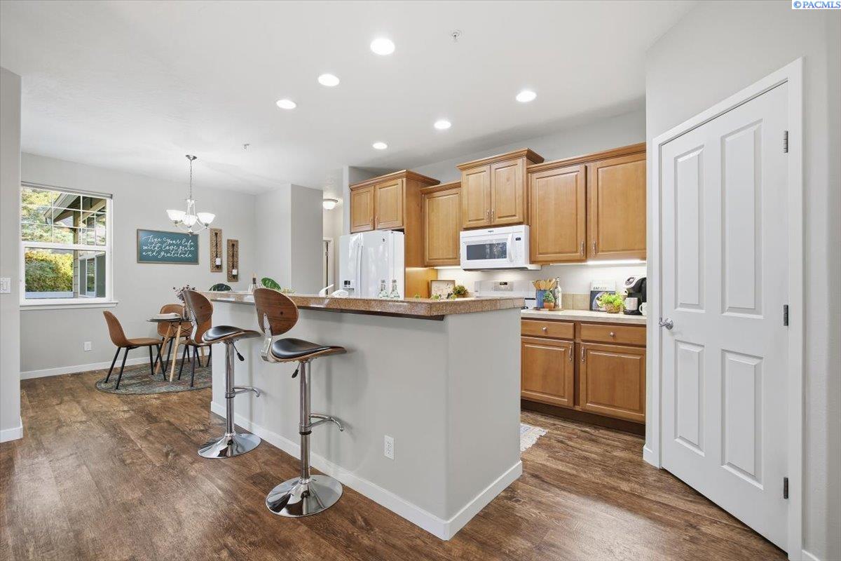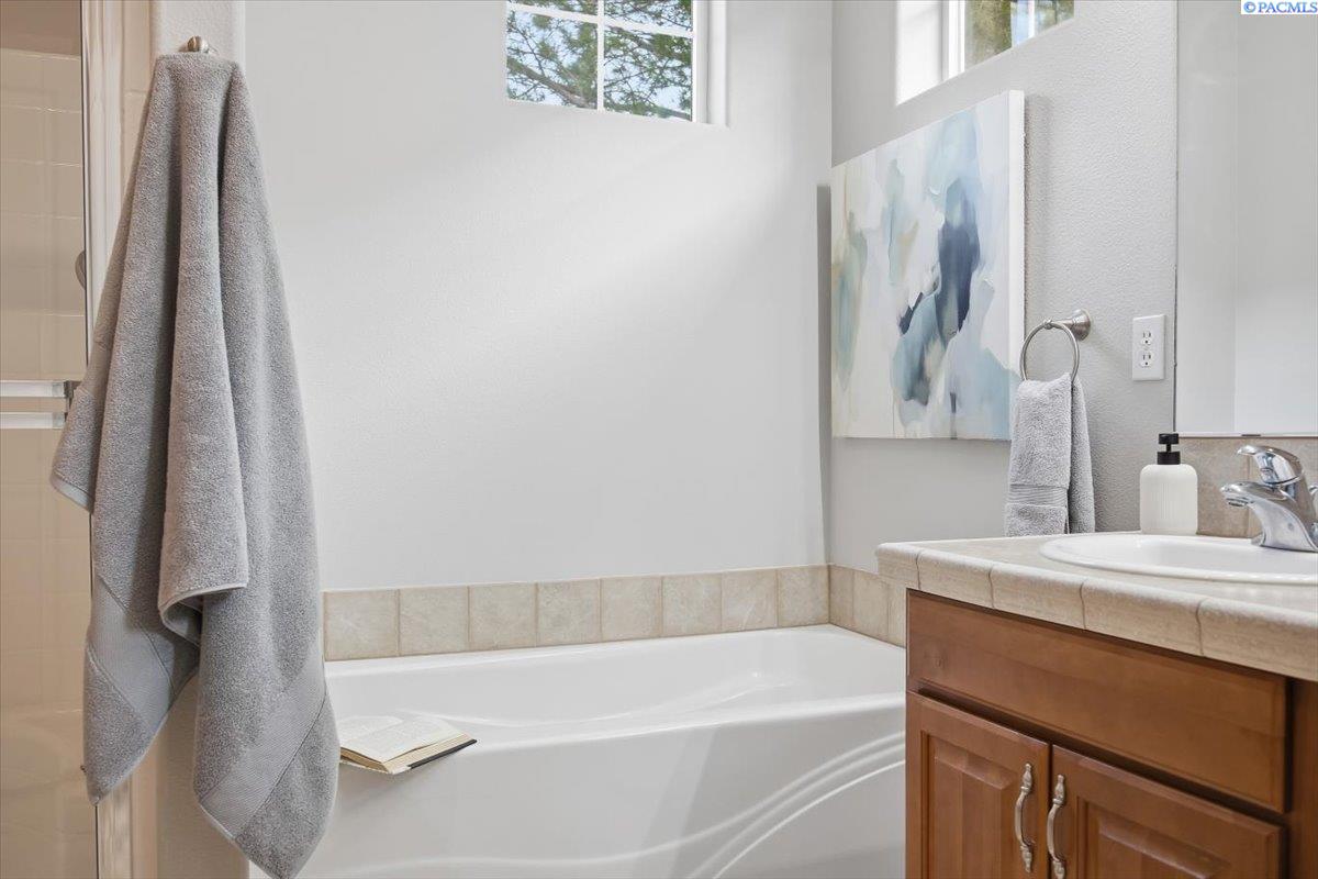 MLS# 290213 Welcome to one of the most spacious homes in this well-established 55+ community, offering 1,906 square feet of comfortable living space in a quiet Kennewick location close to shopping, dining, and everyday conveniences.This home features generously sized rooms, including two spacious bedrooms plus a den that can easily function as a home office, guest room, or hobby space. This great floor plan provides two separate living areas, allowing excellent versatility for entertaining or relaxing. There are many bonus features in this home like a nice size pantry, Vinyl Plank floor that is easy to keep clean, and a gas fireplace for warmth and charm. The primary suite includes a spacious bathroom with dual sinks, a walk-in shower, and a separate soaking tub. The home is accessible, and the laundry room includes a utility sink for added convenience.Outdoor living is a standout with both covered and open deck and patio areas, ideal for enjoying the surrounding wooded feel. Located near the back of the community, this home offers added privacy with less direct exposure to neighboring homes.A unique opportunity to own a spacious, well-laid-out home in a desirable 55+ setting with a peaceful atmosphere and easy access to the heart of Kennewick.