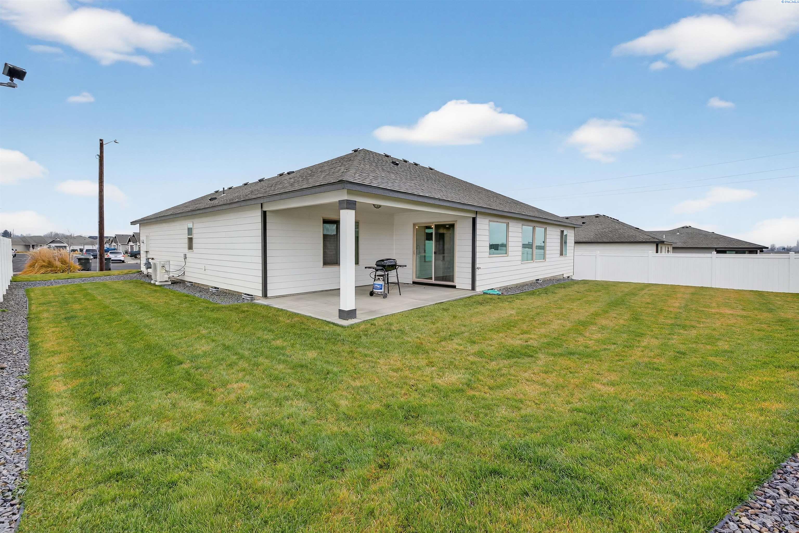 MLS# 290228 Welcome to this like-new 2024-built home in desirable Grandview, WA, offering 1,659 square feet of thoughtfully designed living space. This beautiful home features 3 spacious bedrooms plus a versatile den?perfect for a home office, playroom, or guest space?and 2 bathrooms. You will love the open-concept layout, ideal for both everyday living and entertaining, highlighted by nice upgrades and modern finishes throughout. The primary suite is a true retreat, complete with a walk-in closet, a walk in shower and a dual vanity. Step outside to a covered patio overlooking a fully landscaped and fenced yard, ready for relaxing or hosting gatherings. A 2-car garage adds convenience, while quick freeway access makes commuting a breeze. Stylish, functional, and move-in ready?this home truly checks all the boxes. Don't miss the opportunity to call this home!