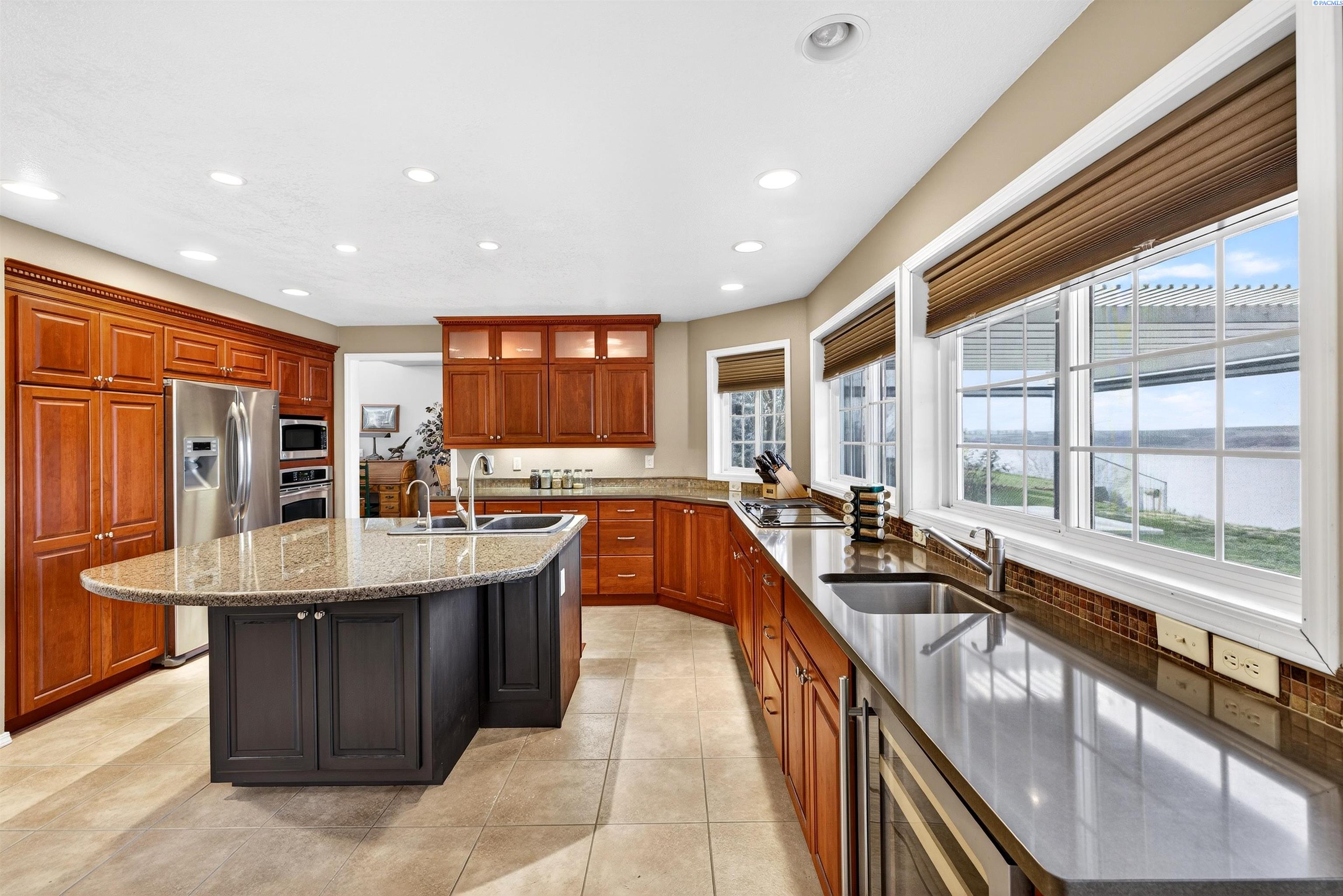MLS# 290234 A rare waterfront home with shop right on the Snake River! This two story home stand out withs space, functionality, and major upgrades that a set it apart from anything else on the market. Offering five bedrooms, three bathrooms, a three car garage, and a large 1800 square foot/ 60x30 drive through style shop, this property delivers the lifestyle and flexibility buyers are searching for. Inside, the home is designed for both everyday living and entertaining. The kitchen anchors the main living space with a large granite island, quartz countertops, a walk in pantry, and an open connection to the family room. From here, the home flows seamlessly outdoors to a patio with pergola, creating the perfect extension of the living space for gatherings or quiet moments. The primary suite is a true retreat, featuring a generous layout with space for an office, exercise area, or private sitting room, along with dual walk in closets. Recent improvements include a new roof with transferable warranty, new whole house HVAC system, vinyl windows, and a newly paved driveway, offering modern efficiency and peace of mind. Set on a generous .67 acre waterfront lot, the home enjoys 180 views of the Snake River, Strawberry Island, and the orchards beyond. Wildlife sightings are a regular part of daily life, with deer, turkey, bald eagles, and seasonal waterfowl enhancing the natural setting. The yard is beautifully landscaped providing a serene backdrop to enjoy morning coffee or evening sunsets. In addition to the attached garage, the insulated drive through shop is ideal for hobbyists, storage, or workspace, complete with custom cabinetry, extensive counter space, and a pellet stove for a year round comfort. Located just minutes from Hood Park, the public boat launch, picnic areas, and RV Park. This property offers and exceptional blend of waterfront living, convenience, and privacy. This is a standout riverfront home that combines thoughtful updates, expansive views, and versatile spaces in a truly special setting.
