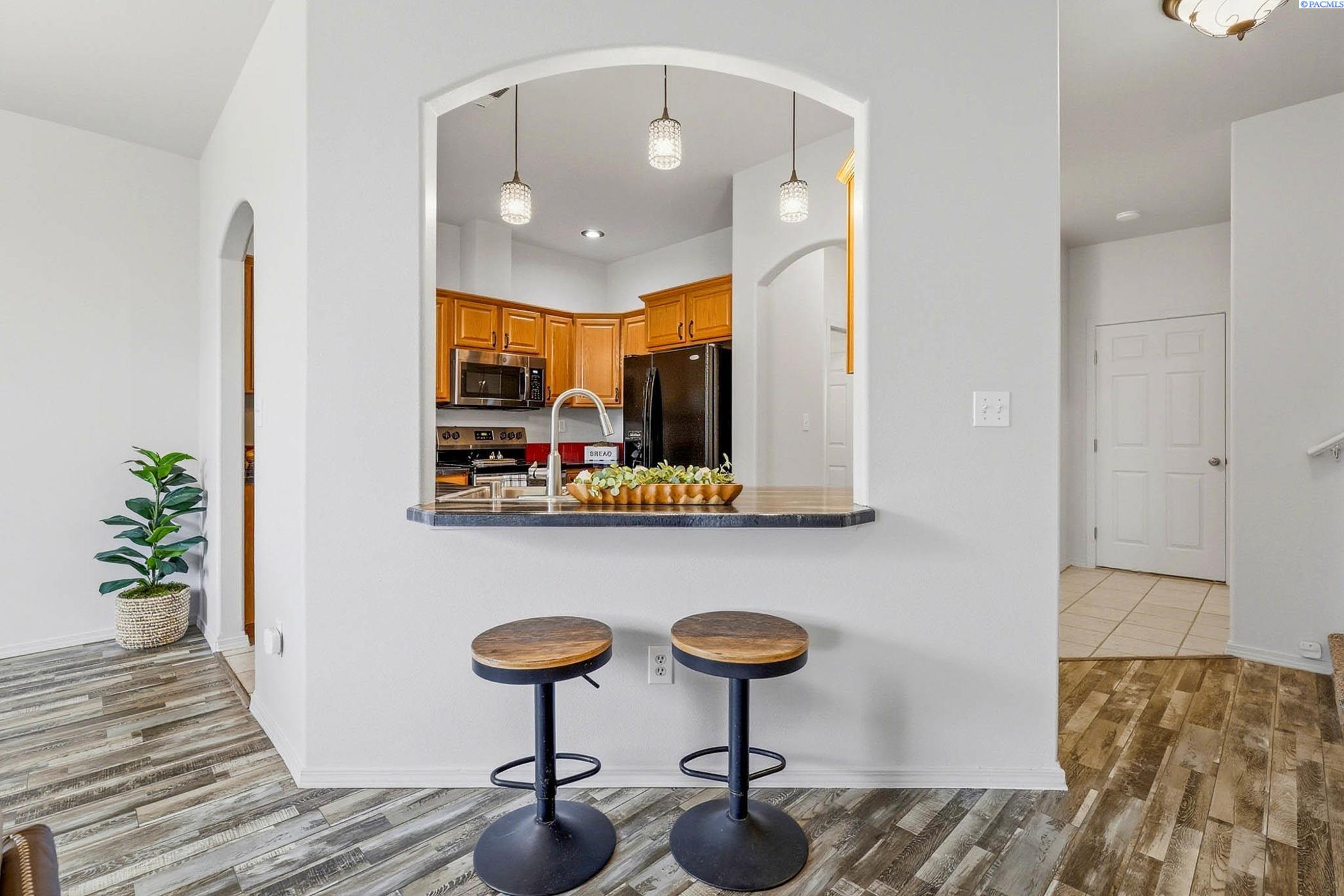MLS 290283 An inviting and well appointed townhouse offering comfort, style and exceptionally low maintenance living in a desirable West Pasco neighborhood. This 2 bedroom, 2.5 bath townhome shines with major recent updates, including a brand-new HVAC system installed in July 2025 and a freshly painted interior completed in January 2026, giving the home a crisp, move-in-ready feel. Inside, enjoy an open floor plan accented by soaring 9-foot ceilings, a cozy gas fireplace, ceiling fans and slider to covered patio. The kitchen features warm oak cabinetry, creative epoxy countertops and a full suite of stainless-steel appliances perfect for both everyday living and entertaining. A convenient laundry room just off the attached one-car garage adds to the homeâs smart, functional layout. Step outside to your private patio, ideal for morning coffee or evening relaxation, while appreciating the benefits of low HOA dues and a fantastic, well-kept community. Perfect for first time home buyers, traveler who wants a maintainable hub and down-sizers who want to enjoy life without a high mortgage. Donât miss your chance to enjoy affordable easy living in one of Pascoâs most convenient neighborhoods. Schedule your showing today!