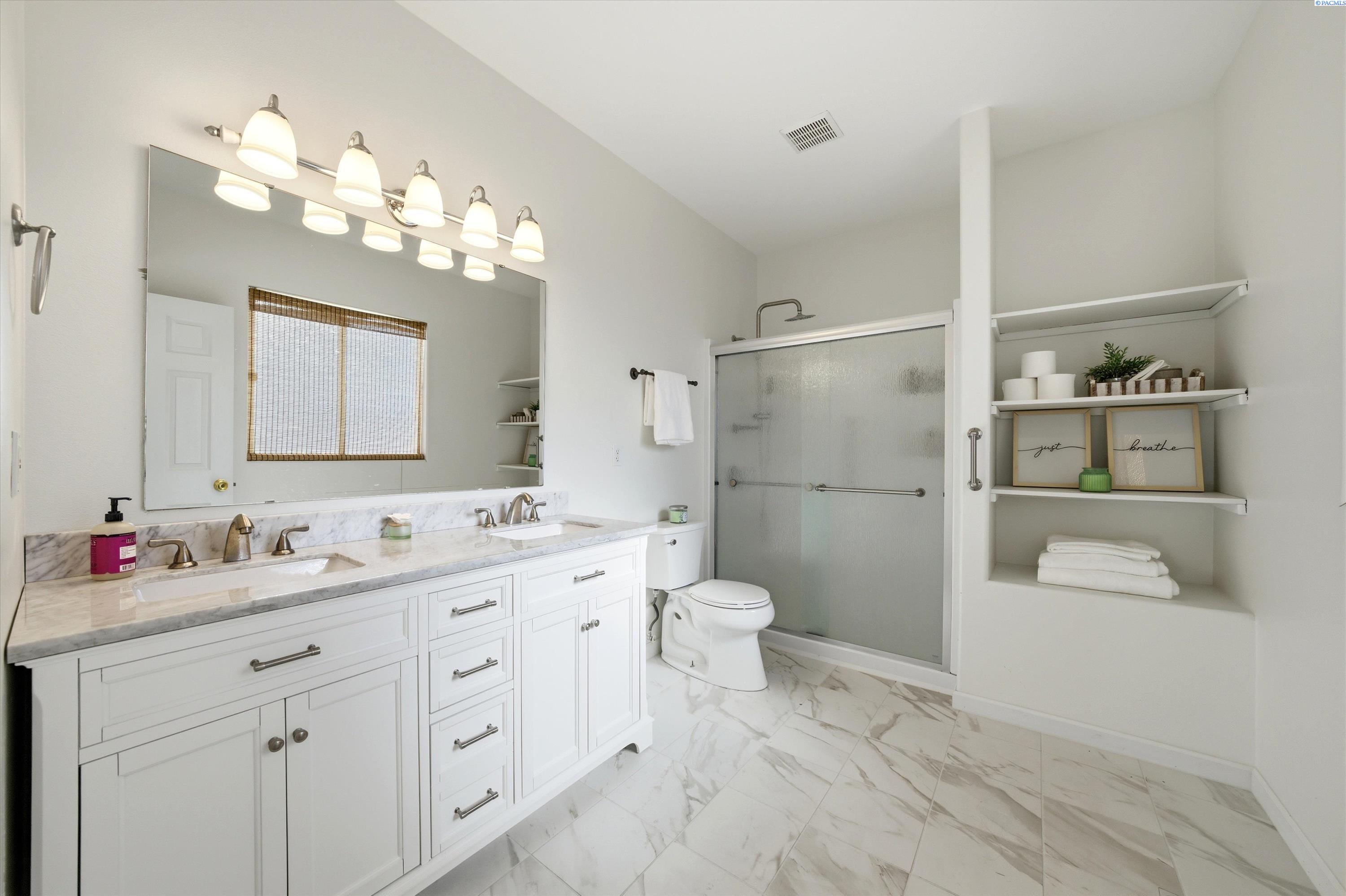 Welcome to this beautifully maintained 3-bedroom, 2-bath home in the Creekstone neighborhood of Kennewick! With 1,392 sq. ft. of comfortable living space, this charming home blends modern updates with a warm, inviting feel. Step inside to an open, light-filled layout featuring a spacious living area ideal for relaxing or entertaining. The thoughtfully updated bathrooms showcase fresh finishes and contemporary style.The nearly new roof offers peace of mind and long-term value, making this home truly move-in ready. The kitchen features ample cabinetry, great counter space, and a functional layout that flows seamlessly to the dining area and backyardâperfect for summer BBQs or quiet evenings under the stars. The primary suite includes a private bath and generous closet space, while two additional bedrooms offer flexibility for guests, a home office, or hobbies. Situated in the desirable Creekstone community, youâll enjoy tree-lined streets, nearby parks, walking paths, and convenient access to shopping, and restaurants. The backyard provides the ideal canvasâwhether you envision a garden, play area, or peaceful retreat. Donât miss your chance to own a beautifully updated home in one of Kennewickâs most inviting neighborhoods. Schedule your tour today!