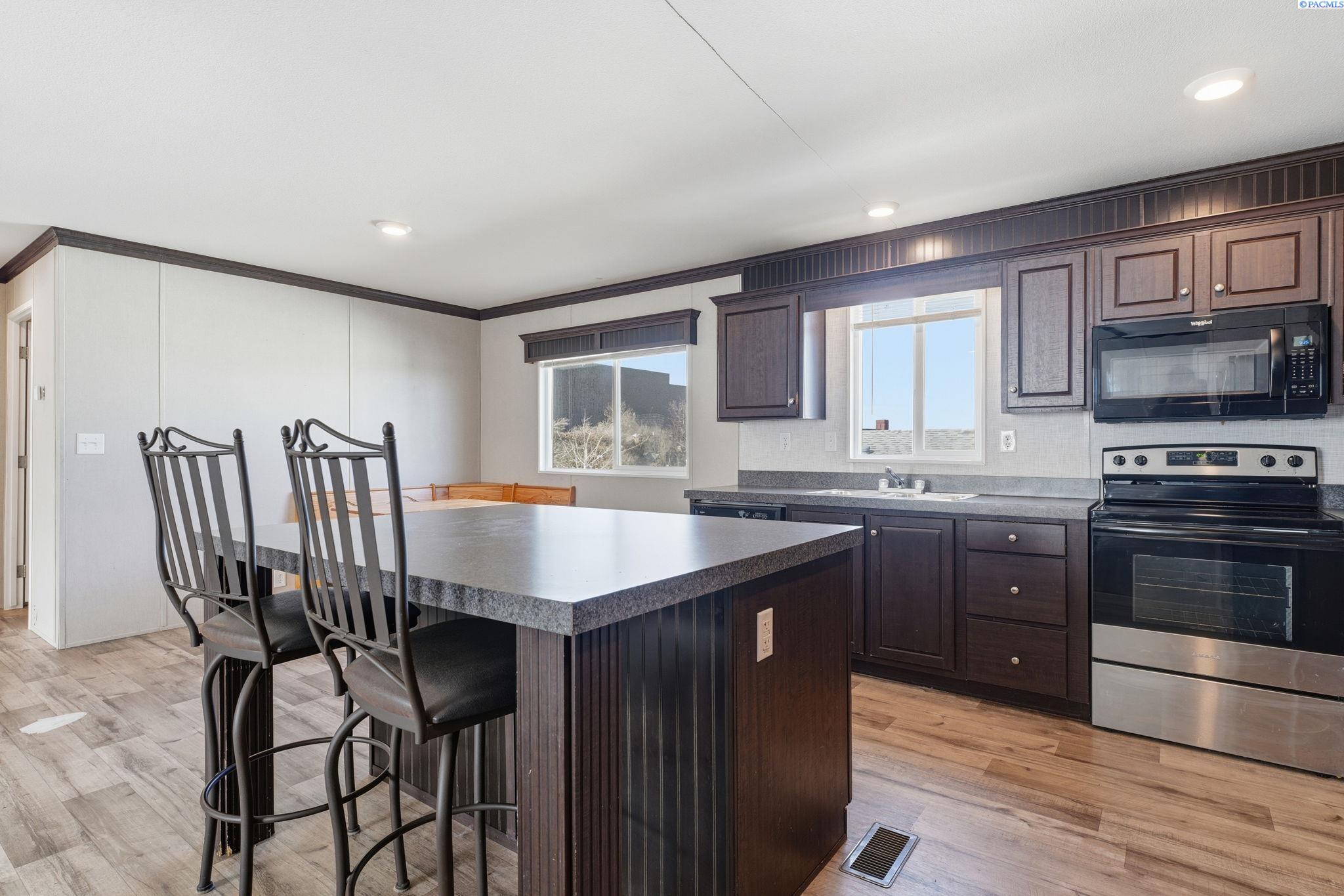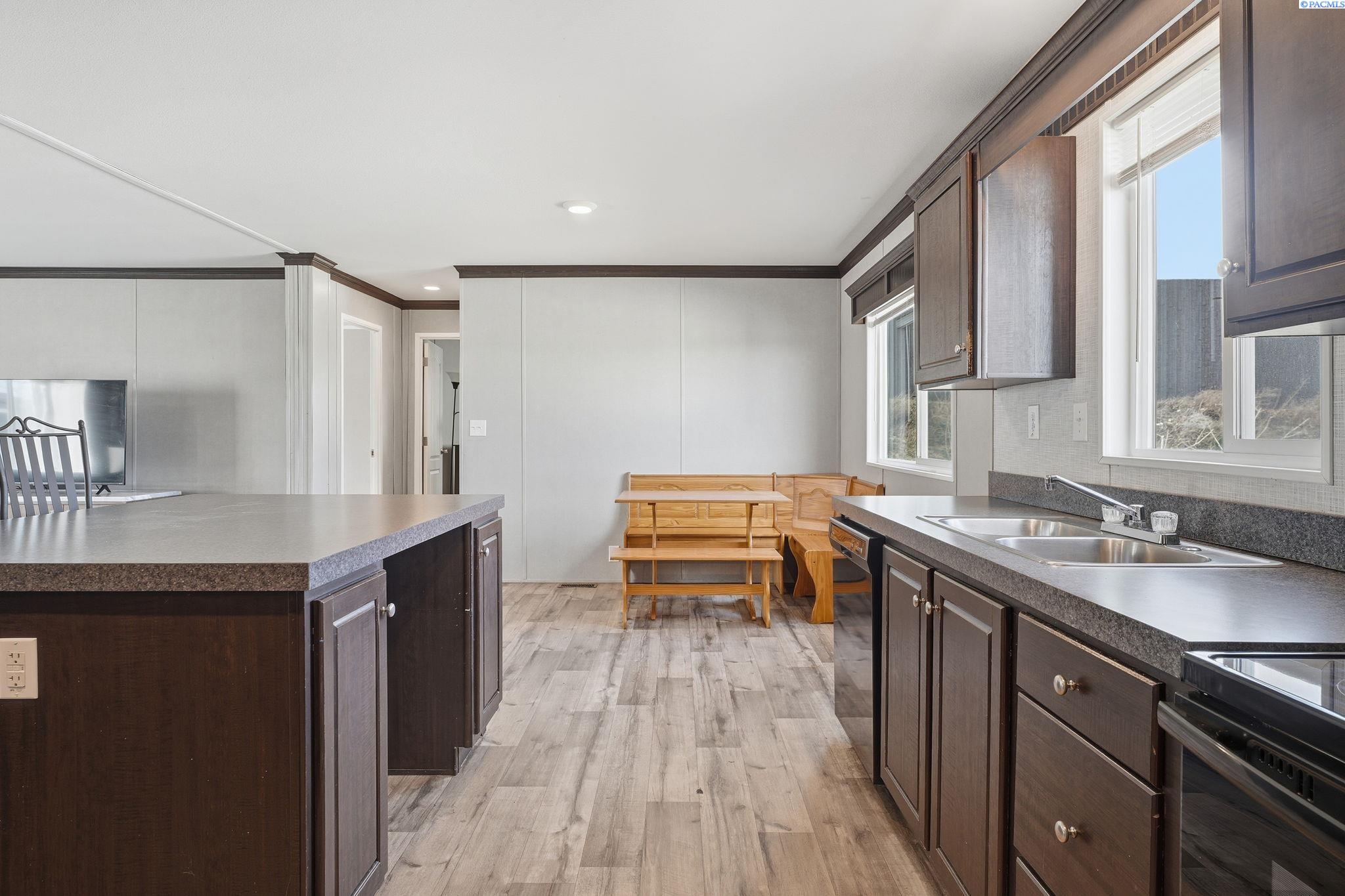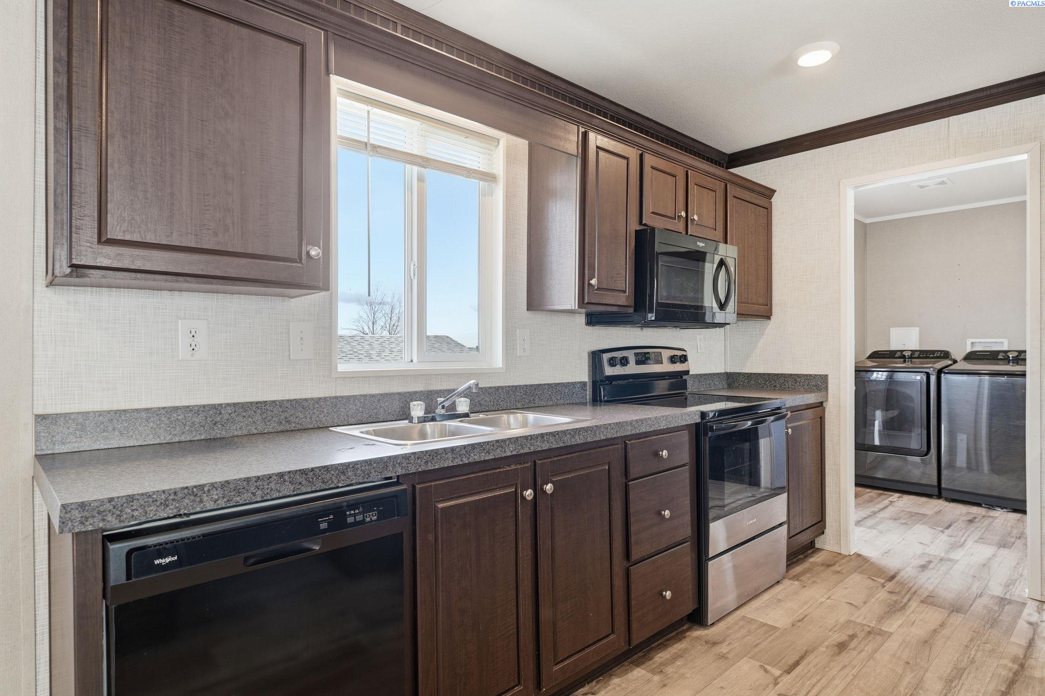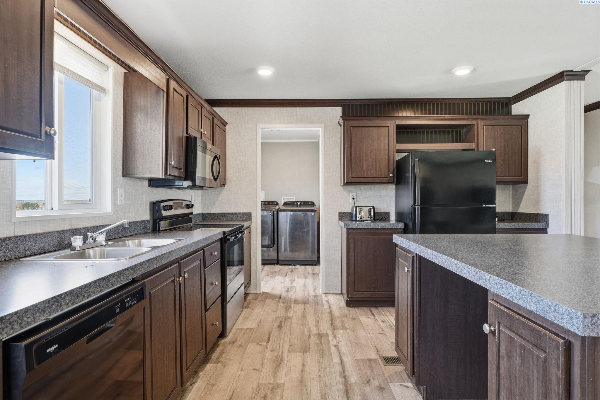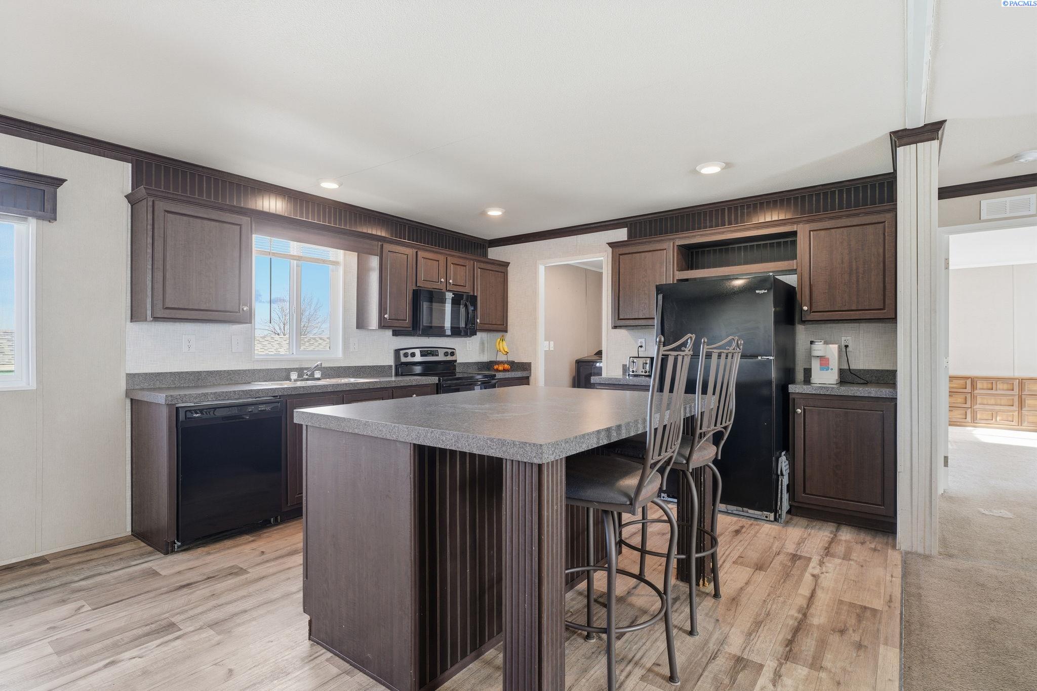 MLS# 290440 Welcome home to this beautifully maintained 3-bedroom, 2-bath manufactured home, built in 2019 and located in a welcoming, well-kept community. Designed with comfort and functionality in mind, the open-concept living space is perfect for both everyday living and entertaining.The kitchen is a standout, featuring a large island, ample cabinetry, and a separate laundry room with an expansive pantry area, offering excellent storage and organization. The split-bedroom floor plan provides privacy and flexibility, with two spacious bedroomsâeach with walk-in closets and a full bathâsituated on one side of the home. On the opposite end, the primary suite offers a peaceful retreat complete with a walk-in closet and private en-suite bathroom.Enjoy community amenities including an in-ground pool, perfect for cooling off during warm summer months. Conveniently located near shopping, parks, and freeway access, this home combines modern living with everyday convenience.