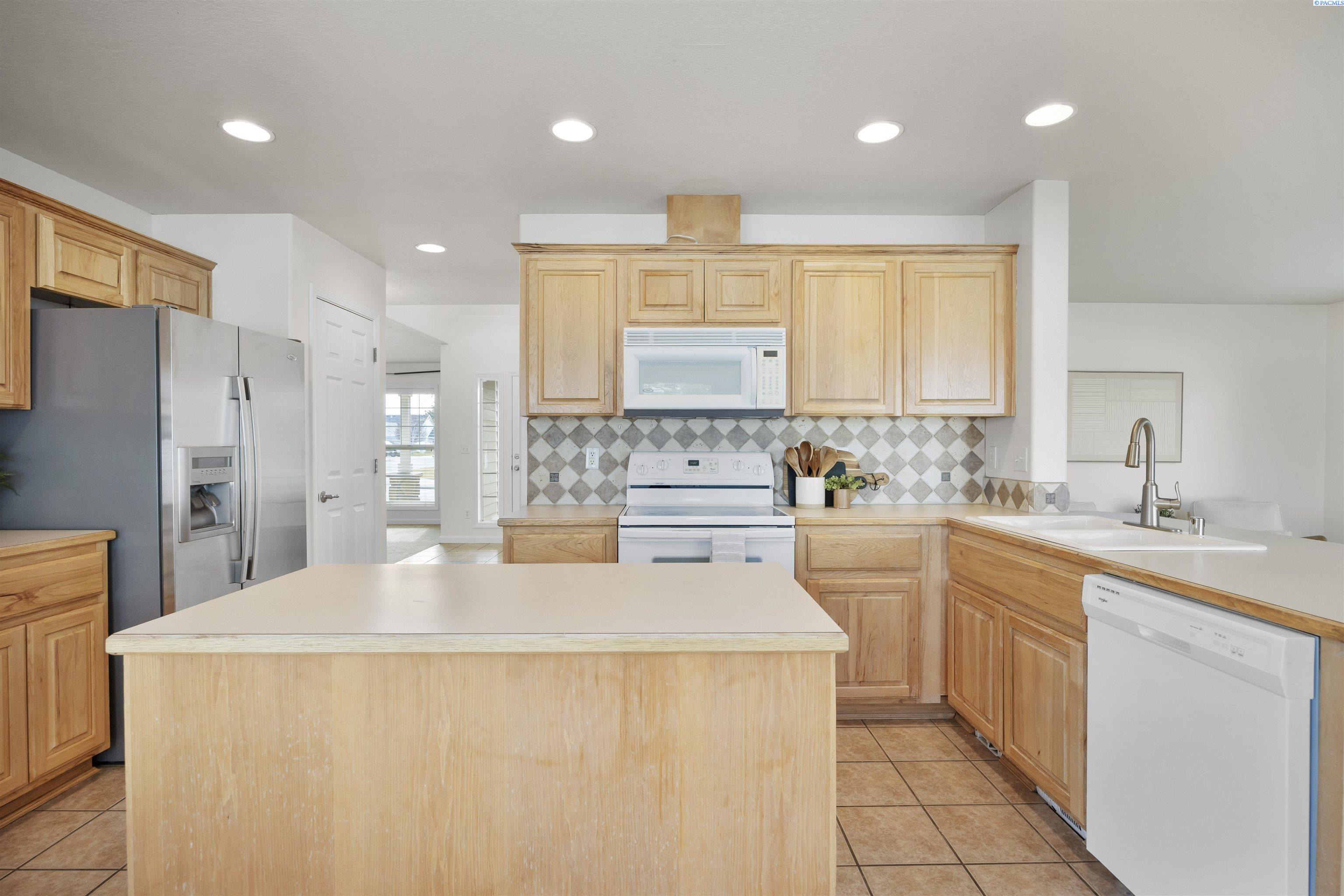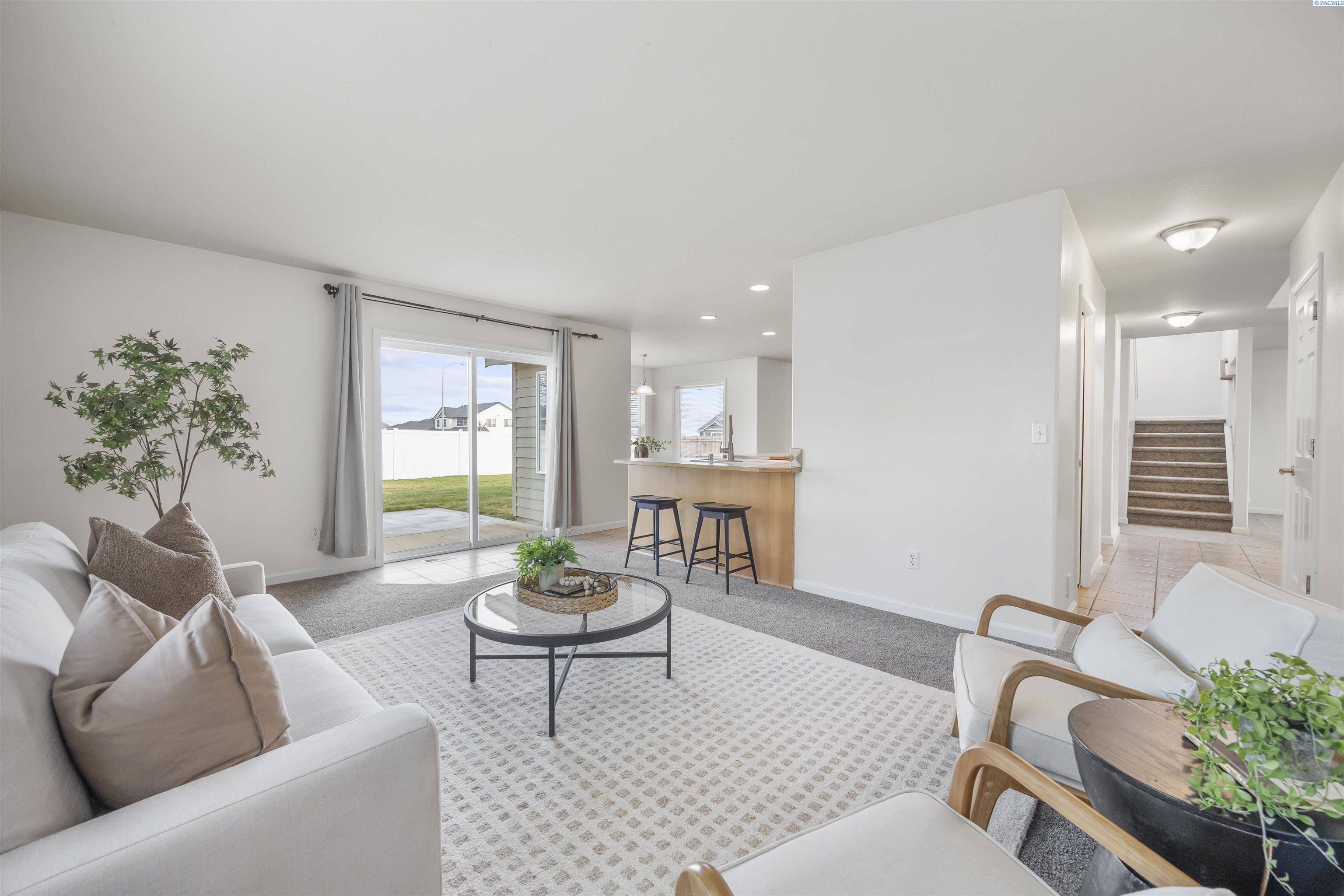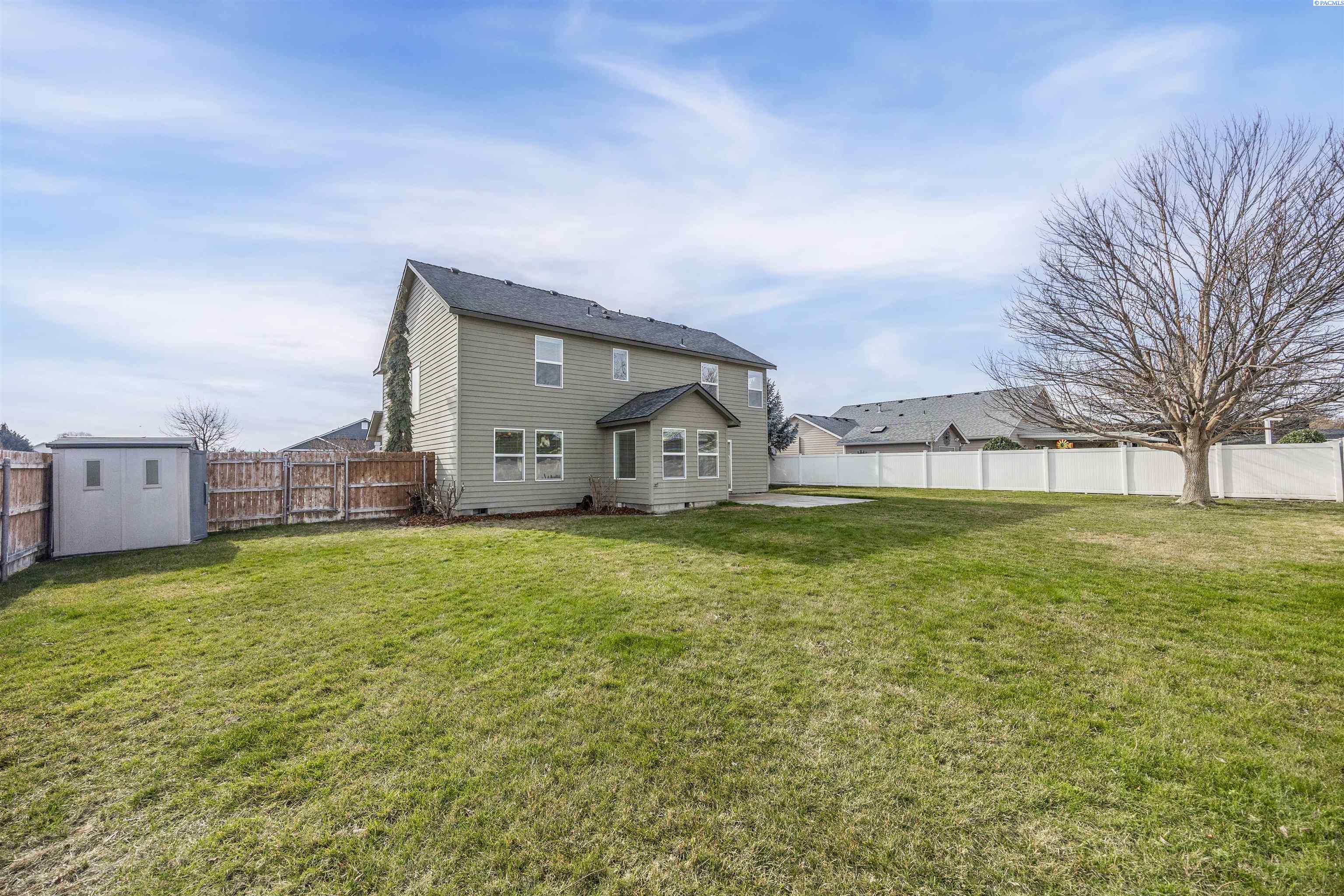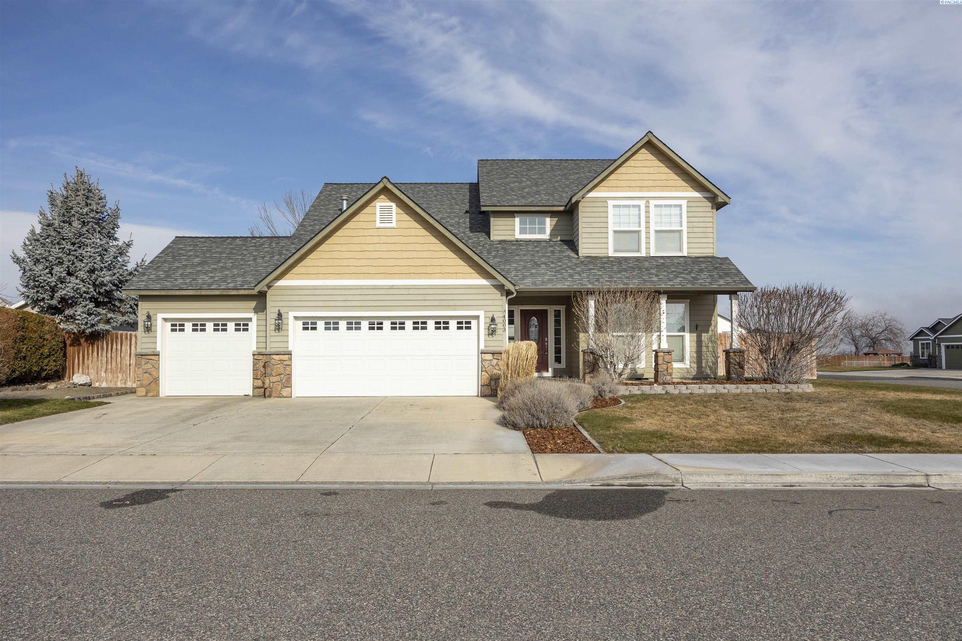 MLS# 290481 Nestled on a spacious ¼-acre corner lot in Desert Estates in West Pasco, this beautiful two-story home offers space, comfort, and an excellent location. Featuring 2,146 sq ft of living space with 3 bedrooms and 2.5 bathrooms, the home has been refreshed with new interior paint and newer carpet. Step inside to soaring ceilings in the foyer that create a grand first impression. The kitchen comes fully equipped with all appliances and features an island, a breakfast bar, abundant wood cabinetry, tile backsplash, tile flooring, and ample workspace for meal prep. Enjoy both a breakfast nook and a formal dining room, which could easily serve as a home office. The home also offers a formal living room and a separate family room, providing plenty of flexible living space. Upstairs, a loft area overlooks the vaulted foyer. The primary suite features a vaulted ceiling, ceiling fan, generous closet space, and a private ensuite bath complete with a jetted tub, separate shower, and dual-sink vanity. Outside, youâll appreciate the great curb appeal, mature landscaping, and welcoming covered front porch. The fully fenced backyard offers an open patio, shade trees, and plenty of room to play or entertain. An attached three-car garage provides excellent storage and workspace for hobbies or projects. Ideally located near Burden Blvd amenities, parks, schools, a sports complex, and convenient access to Road 68 and the highway for commutersâthis home is perfectly situated for an active lifestyle.