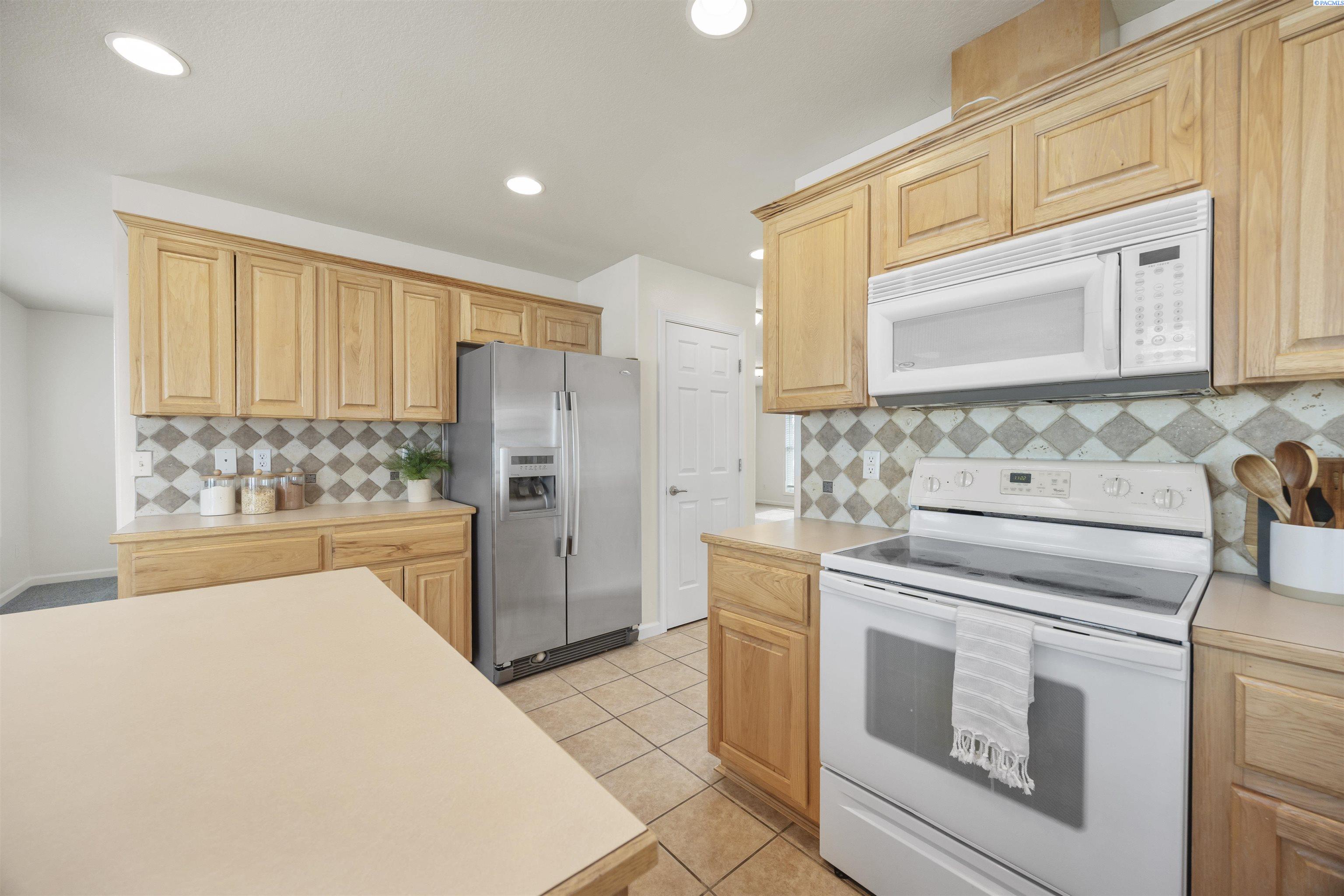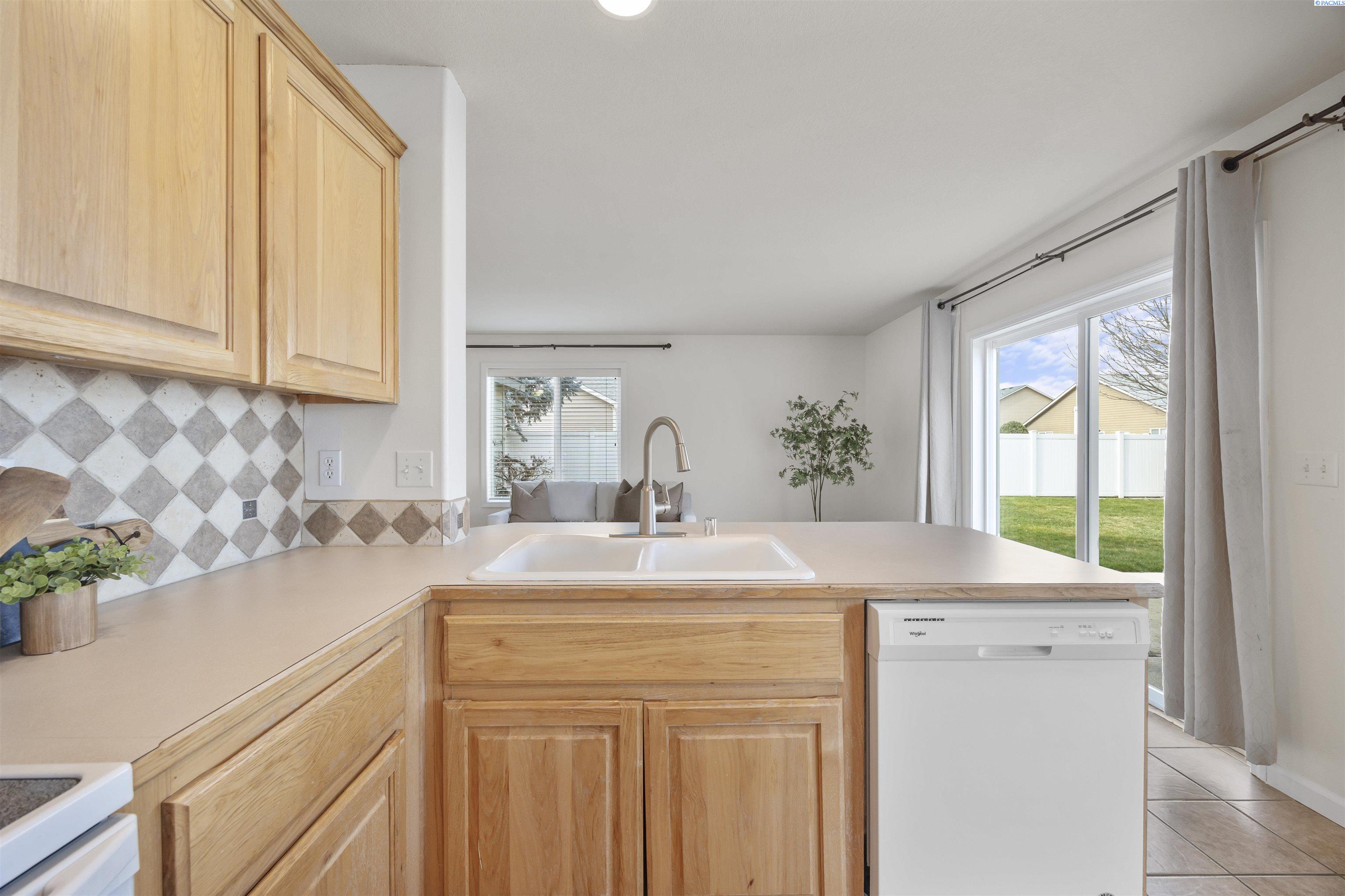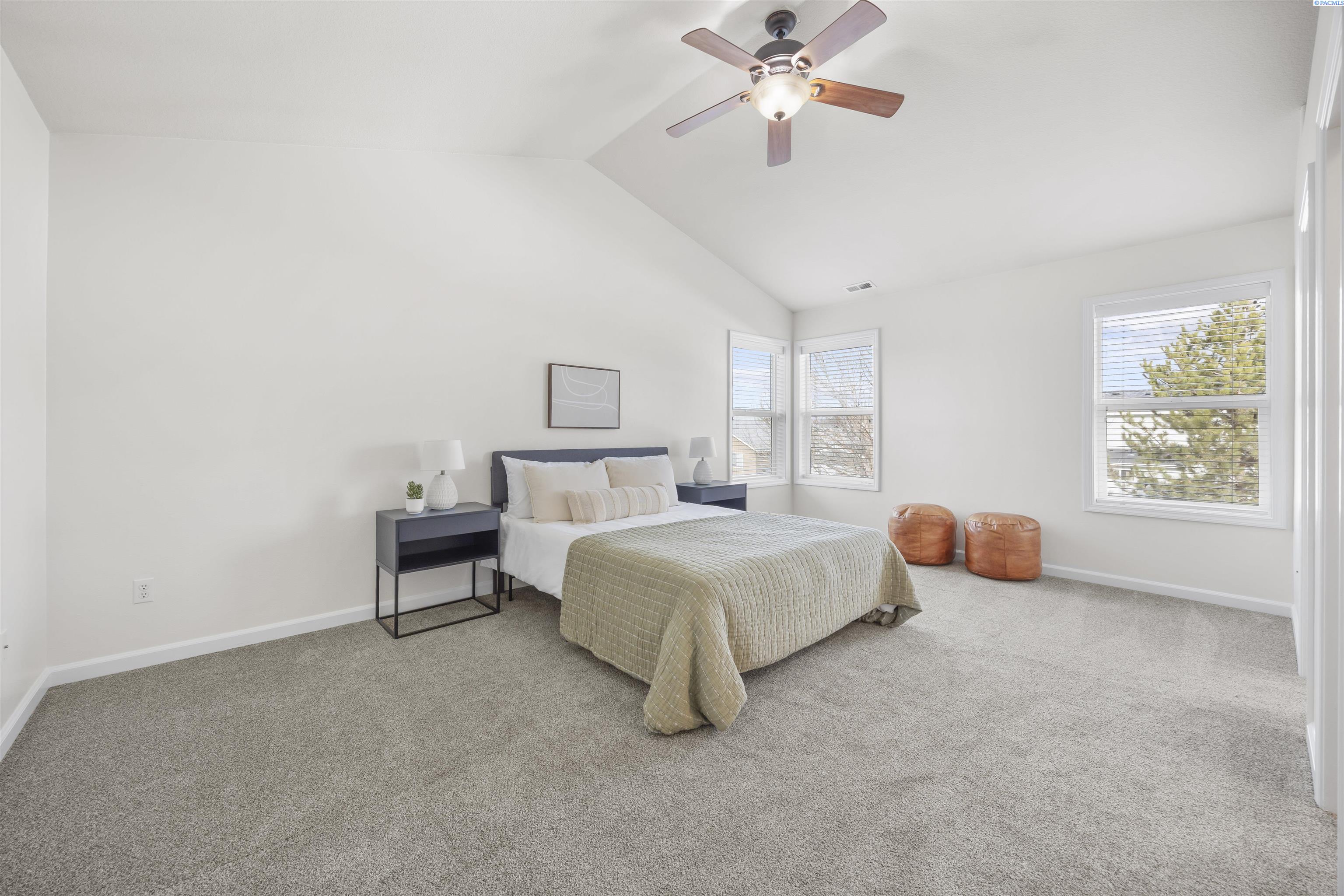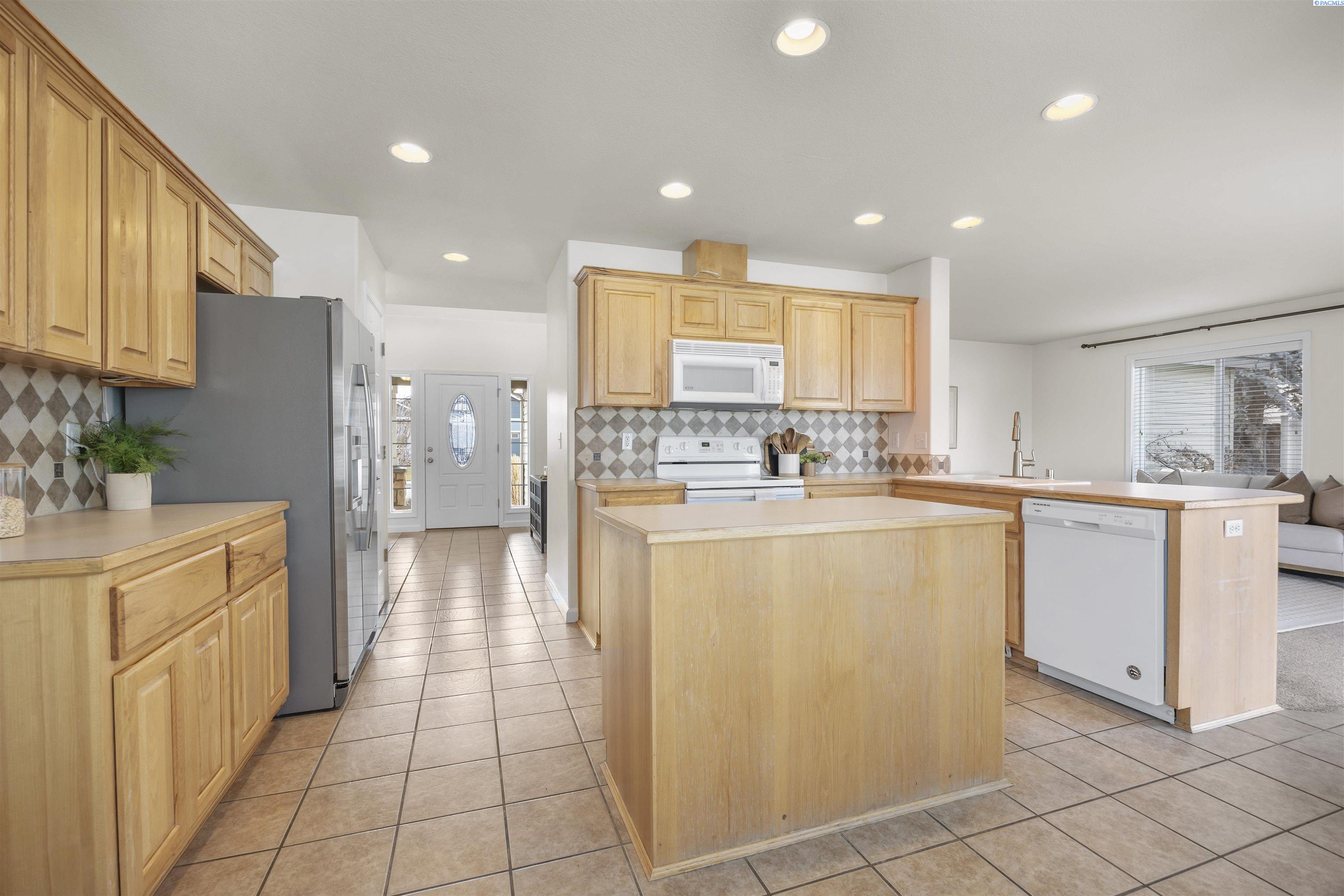 MLS# 290481 Nestled on a spacious ¼-acre corner lot in Desert Estates in West Pasco, this beautiful two-story home offers space, comfort, and an excellent location. Featuring 2,146 sq ft of living space with 3 bedrooms and 2.5 bathrooms, the home has been refreshed with new interior paint and newer carpet. Step inside to soaring ceilings in the foyer that create a grand first impression. The kitchen comes fully equipped with all appliances and features an island, a breakfast bar, abundant wood cabinetry, tile backsplash, tile flooring, and ample workspace for meal prep. Enjoy both a breakfast nook and a formal dining room, which could easily serve as a home office. The home also offers a formal living room and a separate family room, providing plenty of flexible living space. Upstairs, a loft area overlooks the vaulted foyer. The primary suite features a vaulted ceiling, ceiling fan, generous closet space, and a private ensuite bath complete with a jetted tub, separate shower, and dual-sink vanity. Outside, youâll appreciate the great curb appeal, mature landscaping, and welcoming covered front porch. The fully fenced backyard offers an open patio, shade trees, and plenty of room to play or entertain. An attached three-car garage provides excellent storage and workspace for hobbies or projects. Ideally located near Burden Blvd amenities, parks, schools, a sports complex, and convenient access to Road 68 and the highway for commutersâthis home is perfectly situated for an active lifestyle.