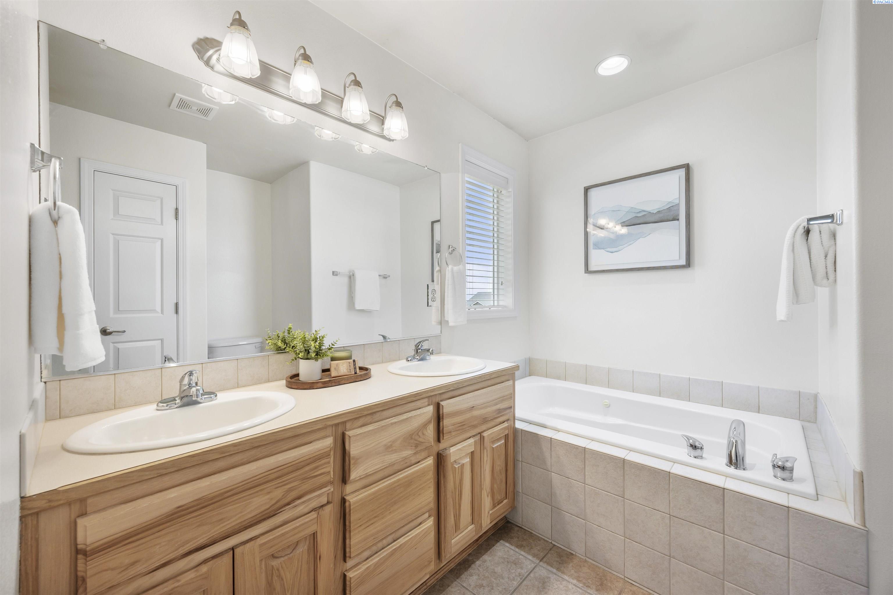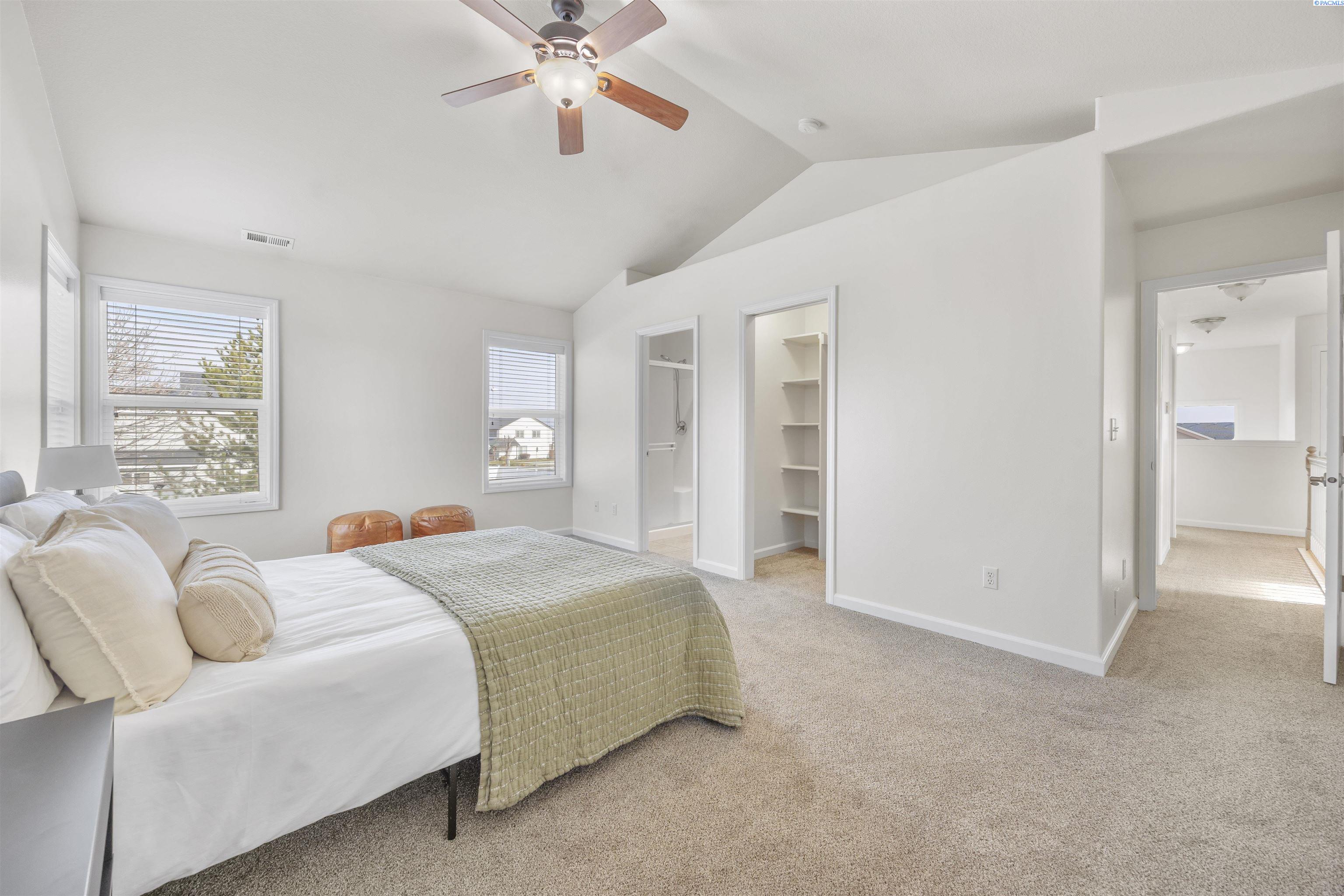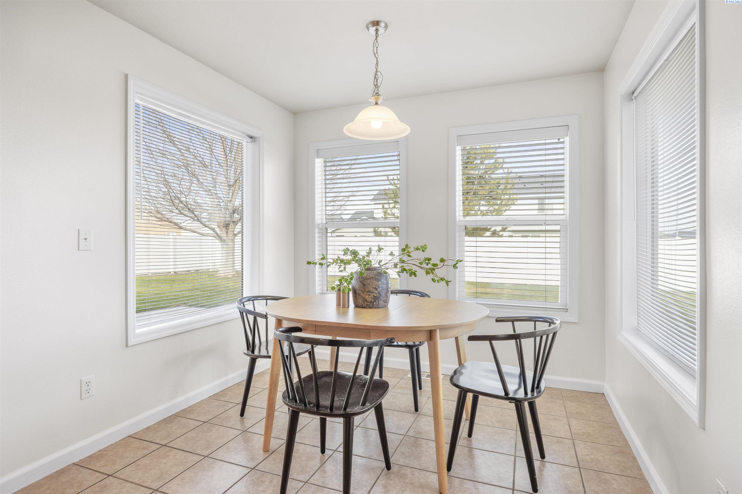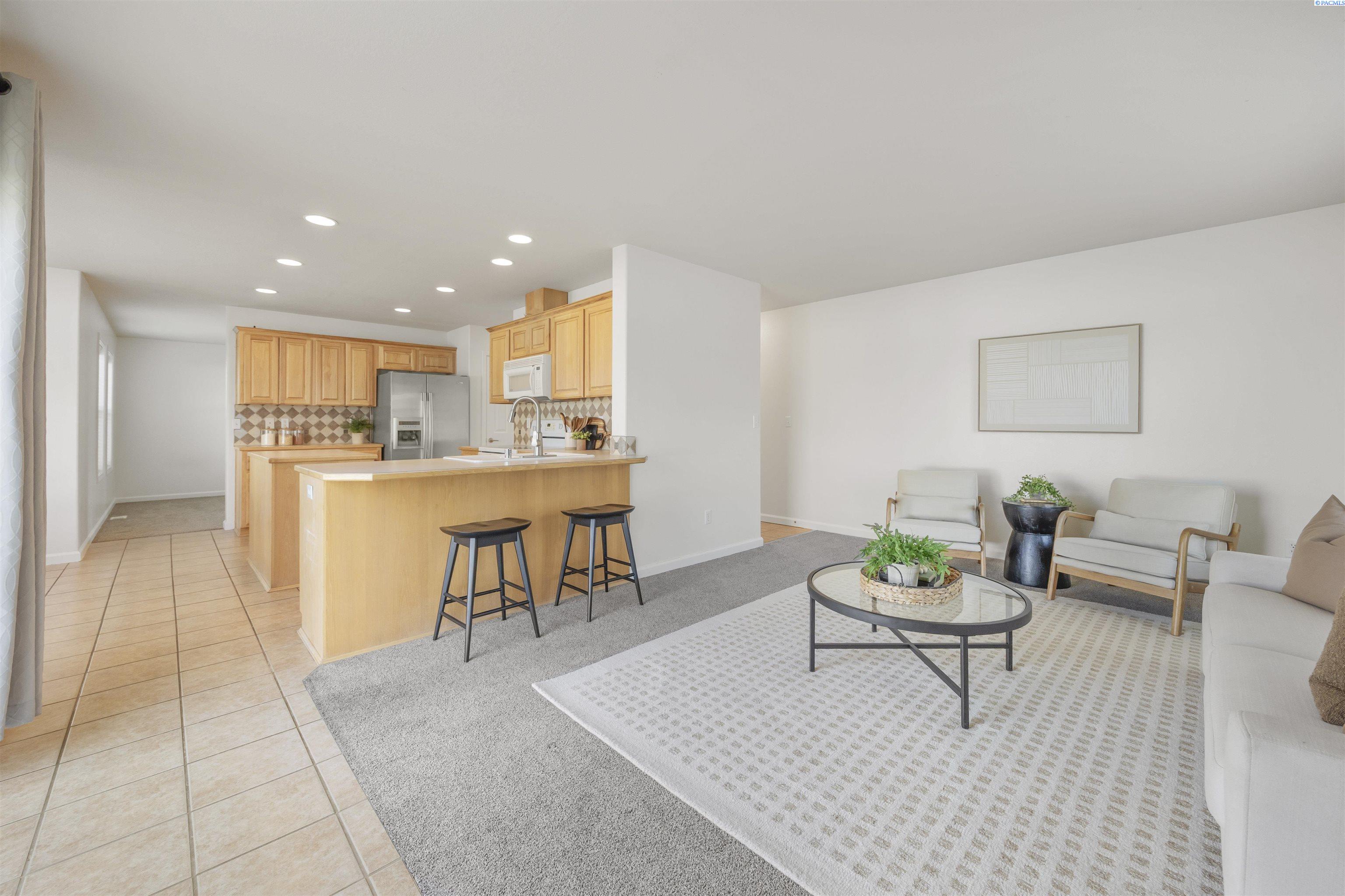 MLS# 290481 Nestled on a spacious ¼-acre corner lot in Desert Estates in West Pasco, this beautiful two-story home offers space, comfort, and an excellent location. Featuring 2,146 sq ft of living space with 3 bedrooms and 2.5 bathrooms, the home has been refreshed with new interior paint and newer carpet. Step inside to soaring ceilings in the foyer that create a grand first impression. The kitchen comes fully equipped with all appliances and features an island, a breakfast bar, abundant wood cabinetry, tile backsplash, tile flooring, and ample workspace for meal prep. Enjoy both a breakfast nook and a formal dining room, which could easily serve as a home office. The home also offers a formal living room and a separate family room, providing plenty of flexible living space. Upstairs, a loft area overlooks the vaulted foyer. The primary suite features a vaulted ceiling, ceiling fan, generous closet space, and a private ensuite bath complete with a jetted tub, separate shower, and dual-sink vanity. Outside, youâll appreciate the great curb appeal, mature landscaping, and welcoming covered front porch. The fully fenced backyard offers an open patio, shade trees, and plenty of room to play or entertain. An attached three-car garage provides excellent storage and workspace for hobbies or projects. Ideally located near Burden Blvd amenities, parks, schools, a sports complex, and convenient access to Road 68 and the highway for commutersâthis home is perfectly situated for an active lifestyle.