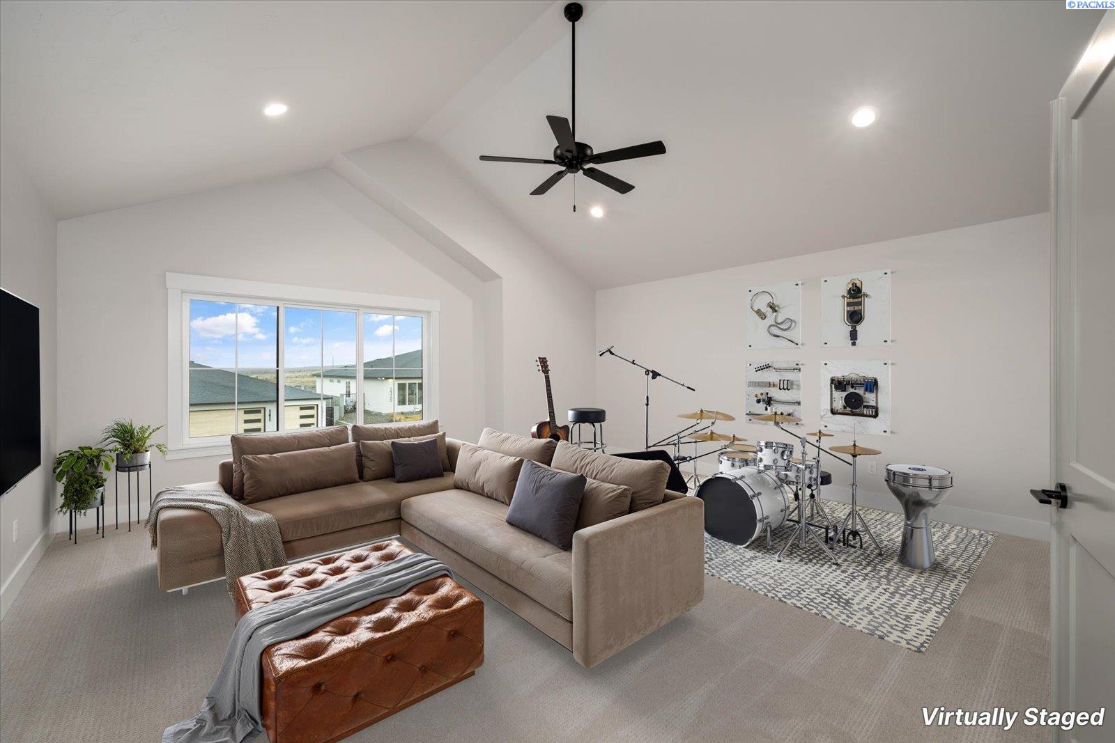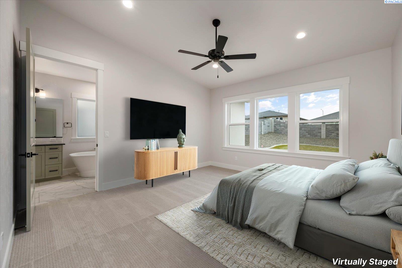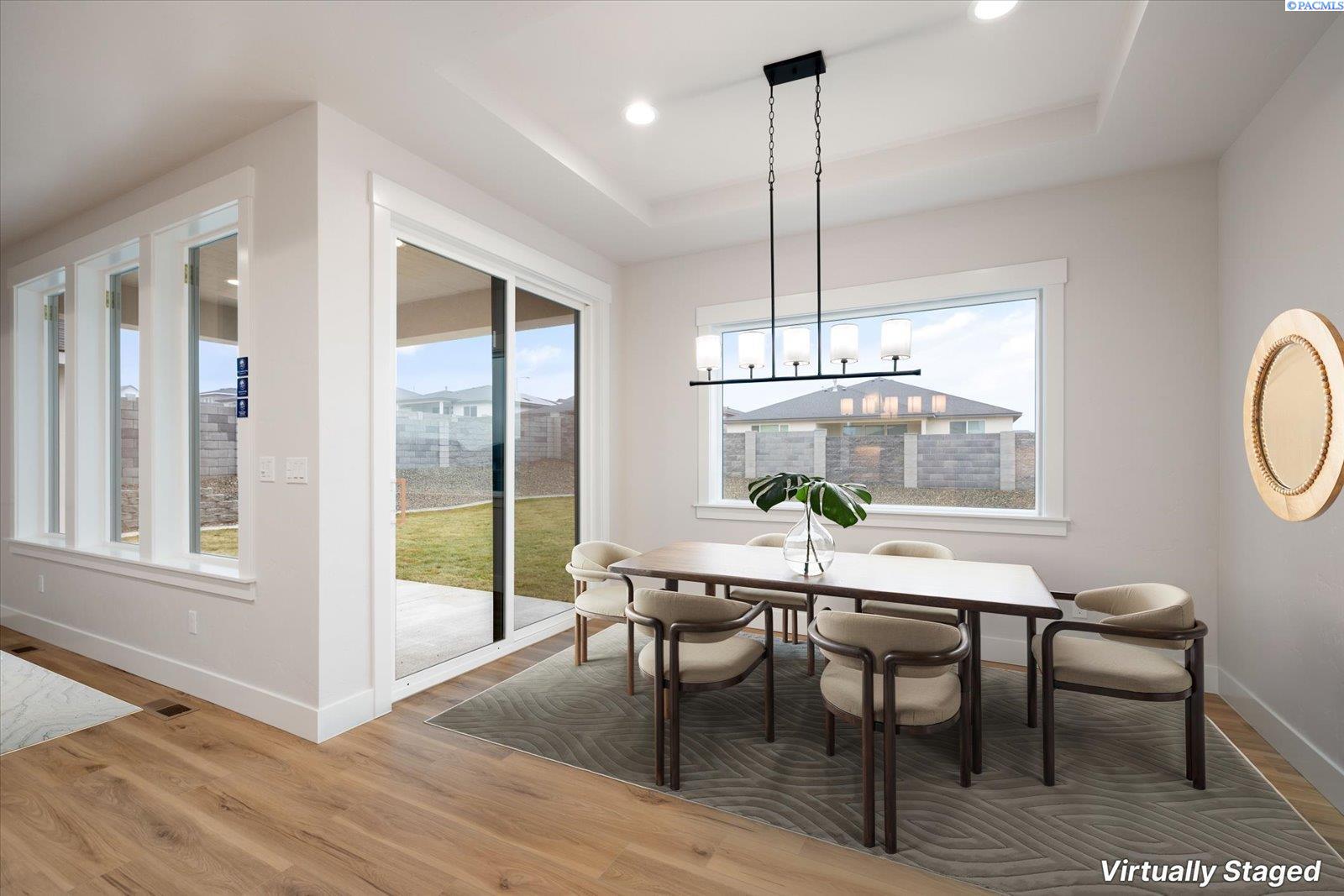 MLS# 290499 The Trenton, brought to you exclusively by Riverwood Homes, is a two-story home with 3,430 sq ft, 5 bedrooms and 4 bathrooms.This floor plan features a den/living room, walk-in pantry, a bonus room/ theater room, a downstairs master suite, a guest suite bedroomwith an adjacent full bathroom. Other features include, Custom Cabinets with soft close drawers, stainless steel appliances, Granite/quartz countertops in kitchen and bathrooms, Tile flooring in laundry room and bathrooms and tile walls in master shower. Large utilityroom, ceiling fans in master bedroom and family room; pre-wired on patio, Full wood wrapped windows inside the house, Hand-texturedwalls (Santa Fe style) with square corners, fireplace with stone or tile surround/hearth and mantle The 3-car garage provides plenty ofparking and storage space and a EV plug for electric vehicles. Front and back yard landscaping including sprinkler system, sod, shrubs,one tree, concrete curbing, and decorative rock AND BLOCK WALL FENCING W/GATE. Lots of storage and closet space throughout.Other things to note; this home is an Energy Star Certified. Directions: The easiest way to find our new community is to simply type,Siena Hills - Richland, WA, Cortona Way, Richland, WA, into Google Maps!