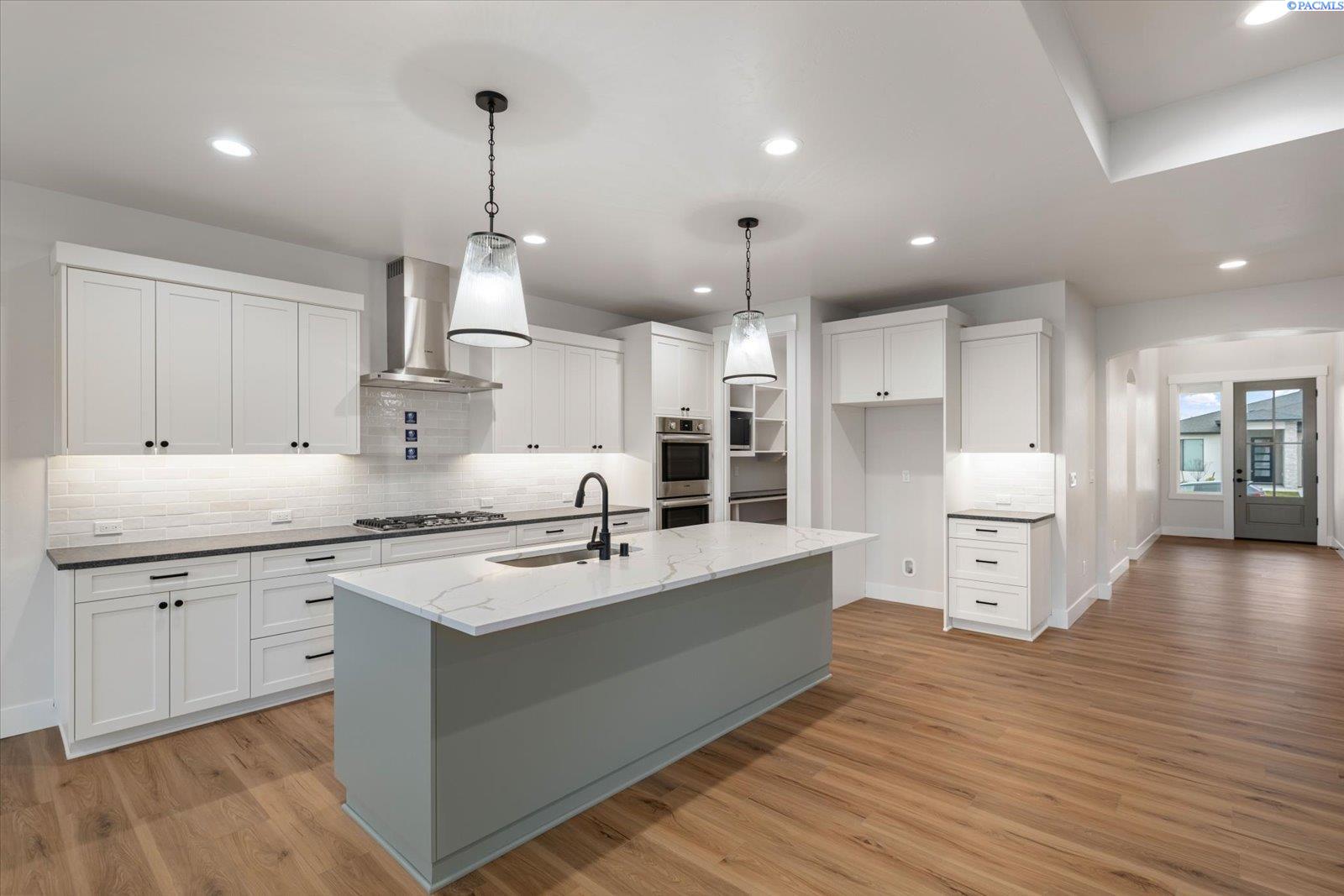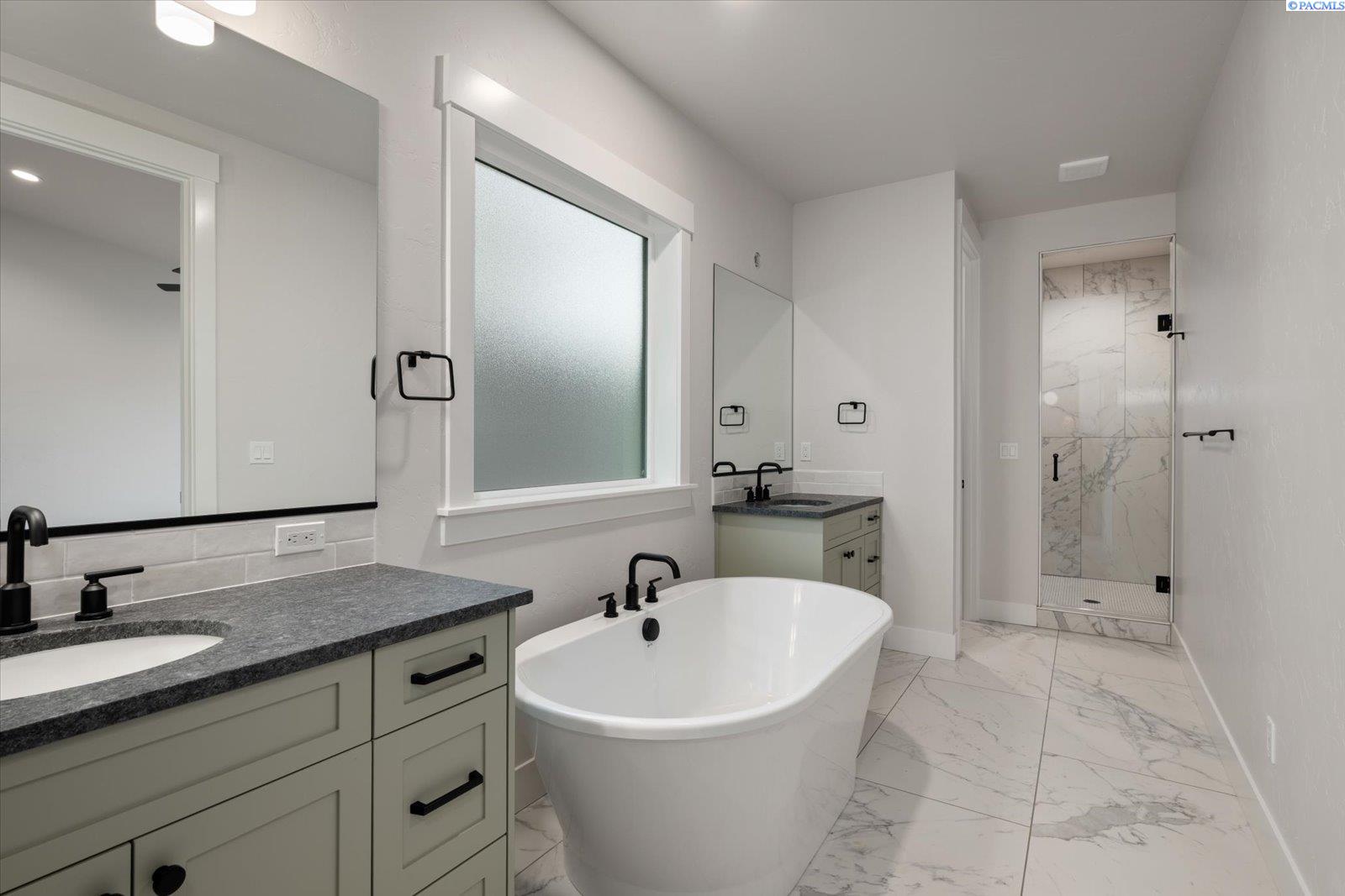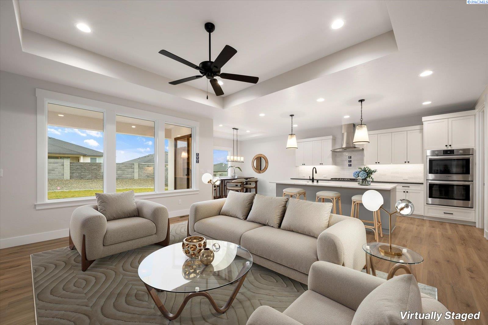 MLS# 290499 The Trenton, brought to you exclusively by Riverwood Homes, is a two-story home with 3,430 sq ft, 5 bedrooms and 4 bathrooms.This floor plan features a den/living room, walk-in pantry, a bonus room/ theater room, a downstairs master suite, a guest suite bedroomwith an adjacent full bathroom. Other features include, Custom Cabinets with soft close drawers, stainless steel appliances, Granite/quartz countertops in kitchen and bathrooms, Tile flooring in laundry room and bathrooms and tile walls in master shower. Large utilityroom, ceiling fans in master bedroom and family room; pre-wired on patio, Full wood wrapped windows inside the house, Hand-texturedwalls (Santa Fe style) with square corners, fireplace with stone or tile surround/hearth and mantle The 3-car garage provides plenty ofparking and storage space and a EV plug for electric vehicles. Front and back yard landscaping including sprinkler system, sod, shrubs,one tree, concrete curbing, and decorative rock AND BLOCK WALL FENCING W/GATE. Lots of storage and closet space throughout.Other things to note; this home is an Energy Star Certified. Directions: The easiest way to find our new community is to simply type,Siena Hills - Richland, WA, Cortona Way, Richland, WA, into Google Maps!