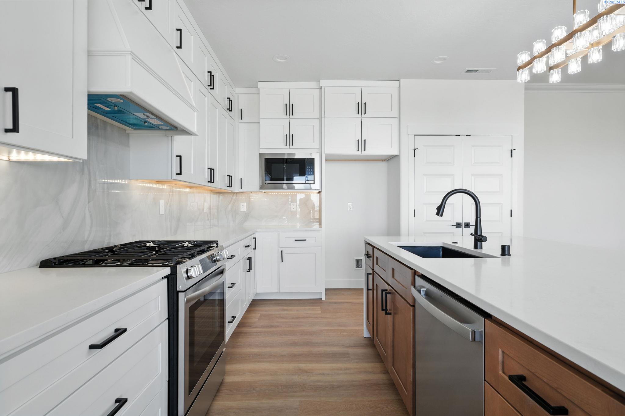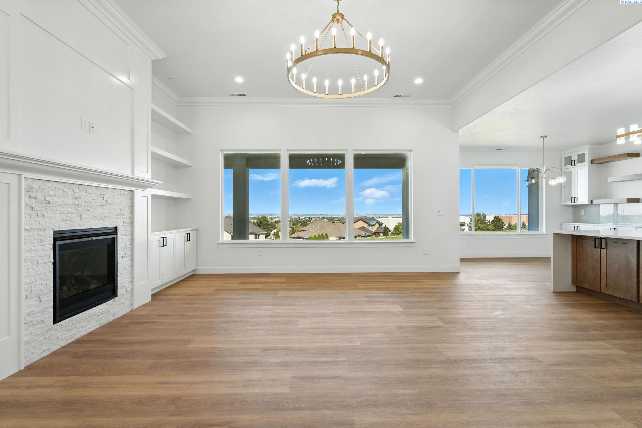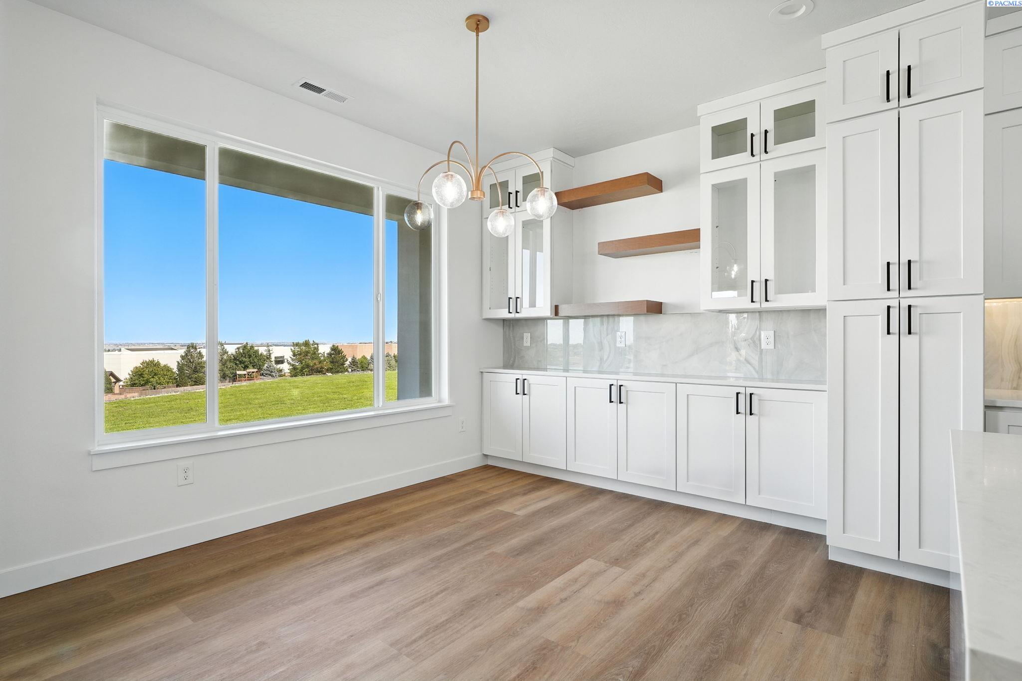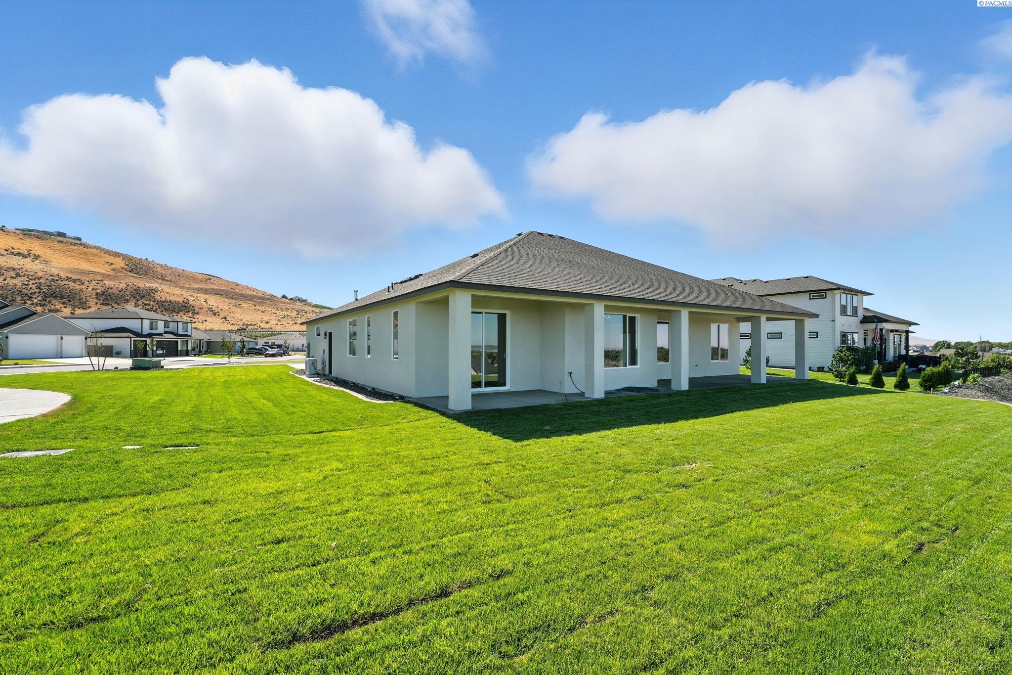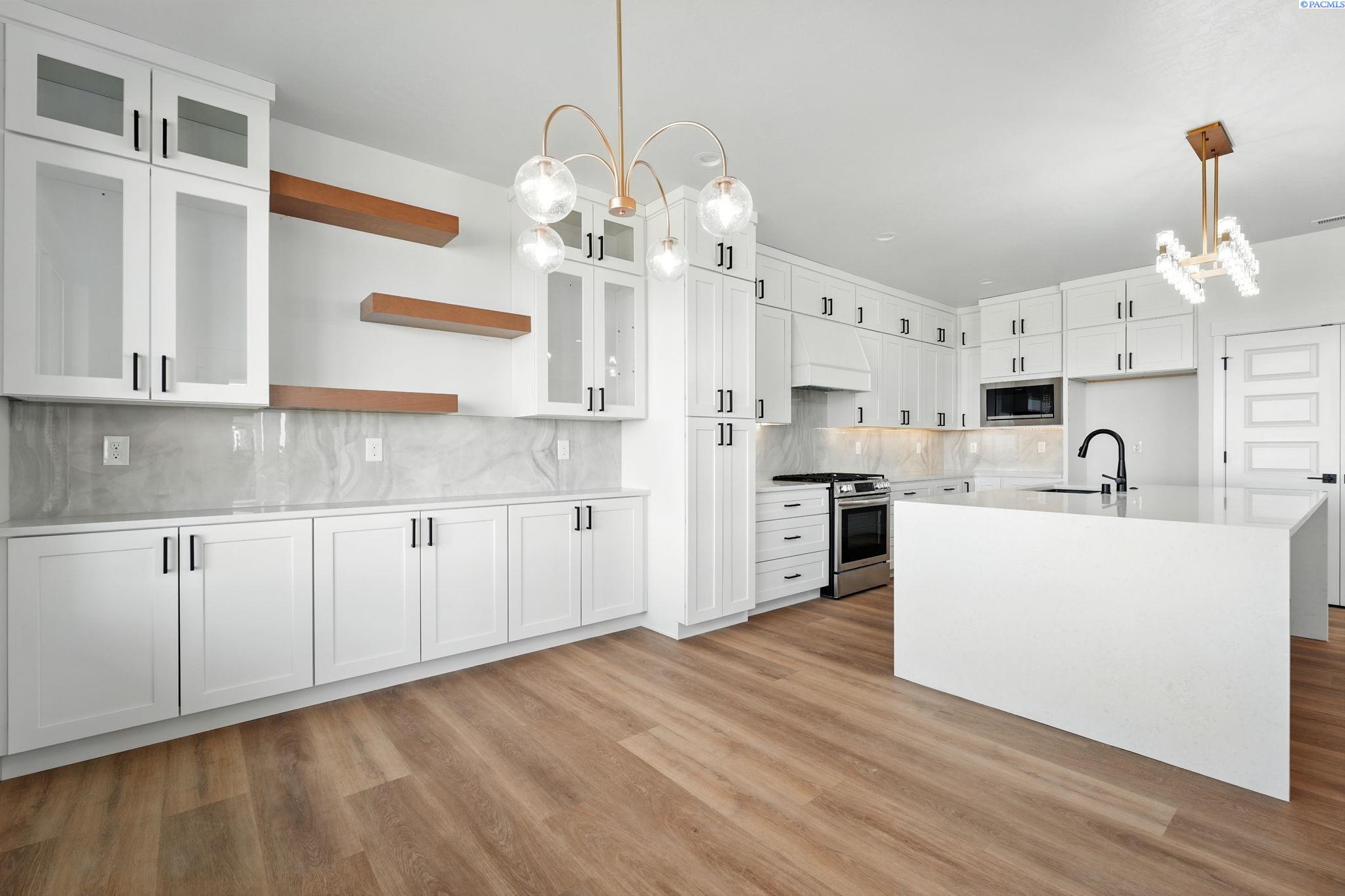 MLS# 286596 Beautiful New 1-story 4-bdrm 2-bath 3-car garage 2038 sf home with gorgeous views on a large lot with a private drive off the cul-de-sac in popular White Bluffs neighborhood! Elegant and light filled home with great combination of beauty, functionality and attention to details. Large living room with 11-foot ceilings is highlighted with the white stone trimmed fireplace with practical build-ins for your entertainment components and decor. Oversized kitchen features abundance of cabinets, - beautiful mixture of natural and white wood - oversized quartz waterfall island with the cabinets on both sides, gas range, and pantry. Gorgeous dining room with additional cabinets, decorative shelving and a door leading to large covered patio - all ready for your entertainment and enjoyment. Spacious master retreat is highlighted with the door to separate private covered patio, large double vanity, soaker tub, large tiled walk-in shower, and spacious walk-in closet with built-ins.Itâs a split bedroom design, 2 additional bedrooms are on the other side of the home and the 4th bedroom/den is closer to the entry. Mud room/ utility room has a boot/ coat bench, sink and storage cabinets and is located close to the kitchen.This home has LVP flooring throughout, no carpets, easy maintenance and friendly for people with allergies. One of the main highlight of the home is spectacular lighting fixtures- very elegant and classy! Oversized driveway and 3 car garage gives ample space for parking. Large yard with captivating views and two covered patios are ready for your enjoyment!