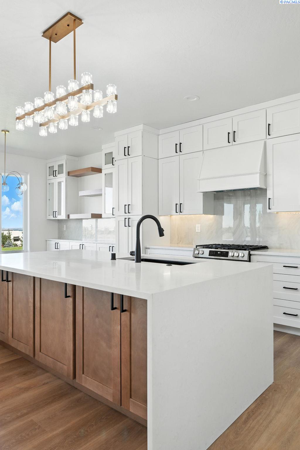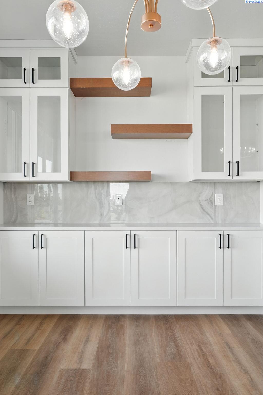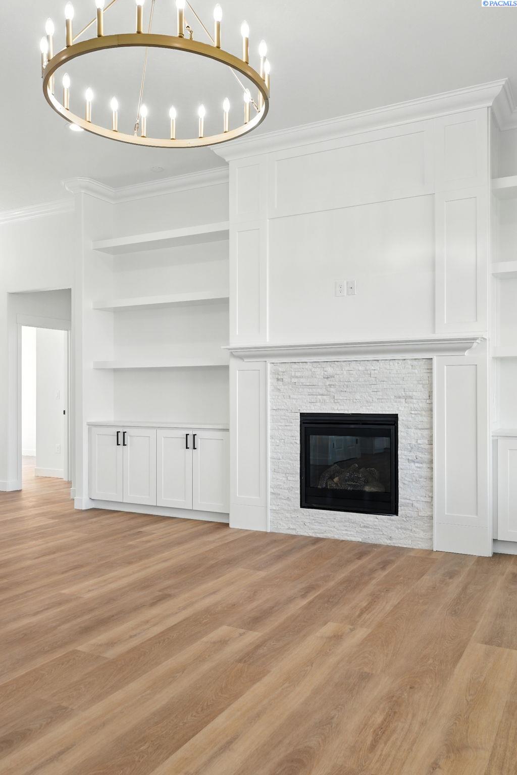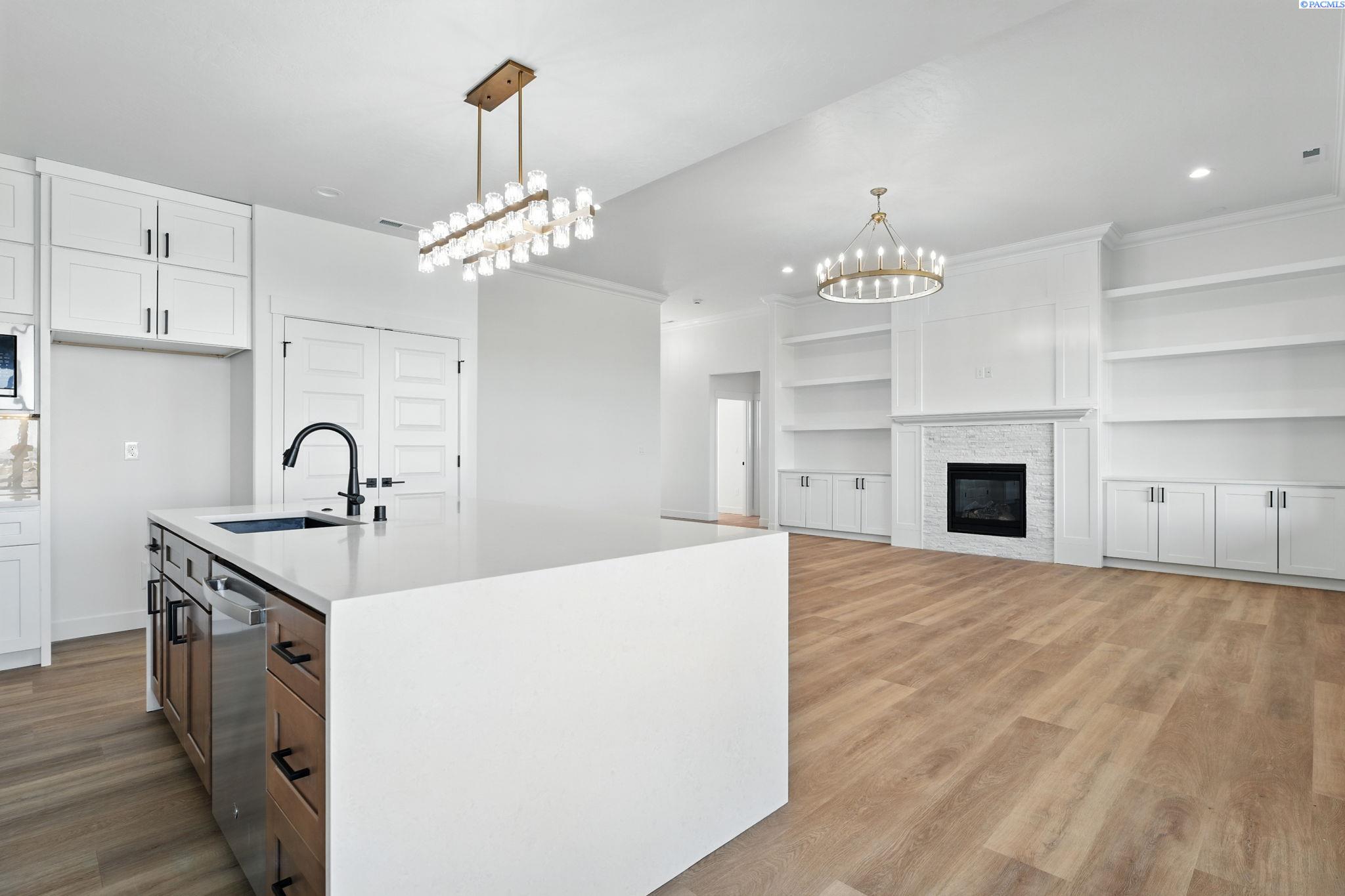 MLS# 286596 Beautiful New 1-story 4-bdrm 2-bath 3-car garage 2038 sf home with gorgeous views on a large lot with a private drive off the cul-de-sac in popular White Bluffs neighborhood! Elegant and light filled home with great combination of beauty, functionality and attention to details. Large living room with 11-foot ceilings is highlighted with the white stone trimmed fireplace with practical build-ins for your entertainment components and decor. Oversized kitchen features abundance of cabinets, - beautiful mixture of natural and white wood - oversized quartz waterfall island with the cabinets on both sides, gas range, and pantry. Gorgeous dining room with additional cabinets, decorative shelving and a door leading to large covered patio - all ready for your entertainment and enjoyment. Spacious master retreat is highlighted with the door to separate private covered patio, large double vanity, soaker tub, large tiled walk-in shower, and spacious walk-in closet with built-ins.Itâs a split bedroom design, 2 additional bedrooms are on the other side of the home and the 4th bedroom/den is closer to the entry. Mud room/ utility room has a boot/ coat bench, sink and storage cabinets and is located close to the kitchen.This home has LVP flooring throughout, no carpets, easy maintenance and friendly for people with allergies. One of the main highlight of the home is spectacular lighting fixtures- very elegant and classy! Oversized driveway and 3 car garage gives ample space for parking. Large yard with captivating views and two covered patios are ready for your enjoyment!
