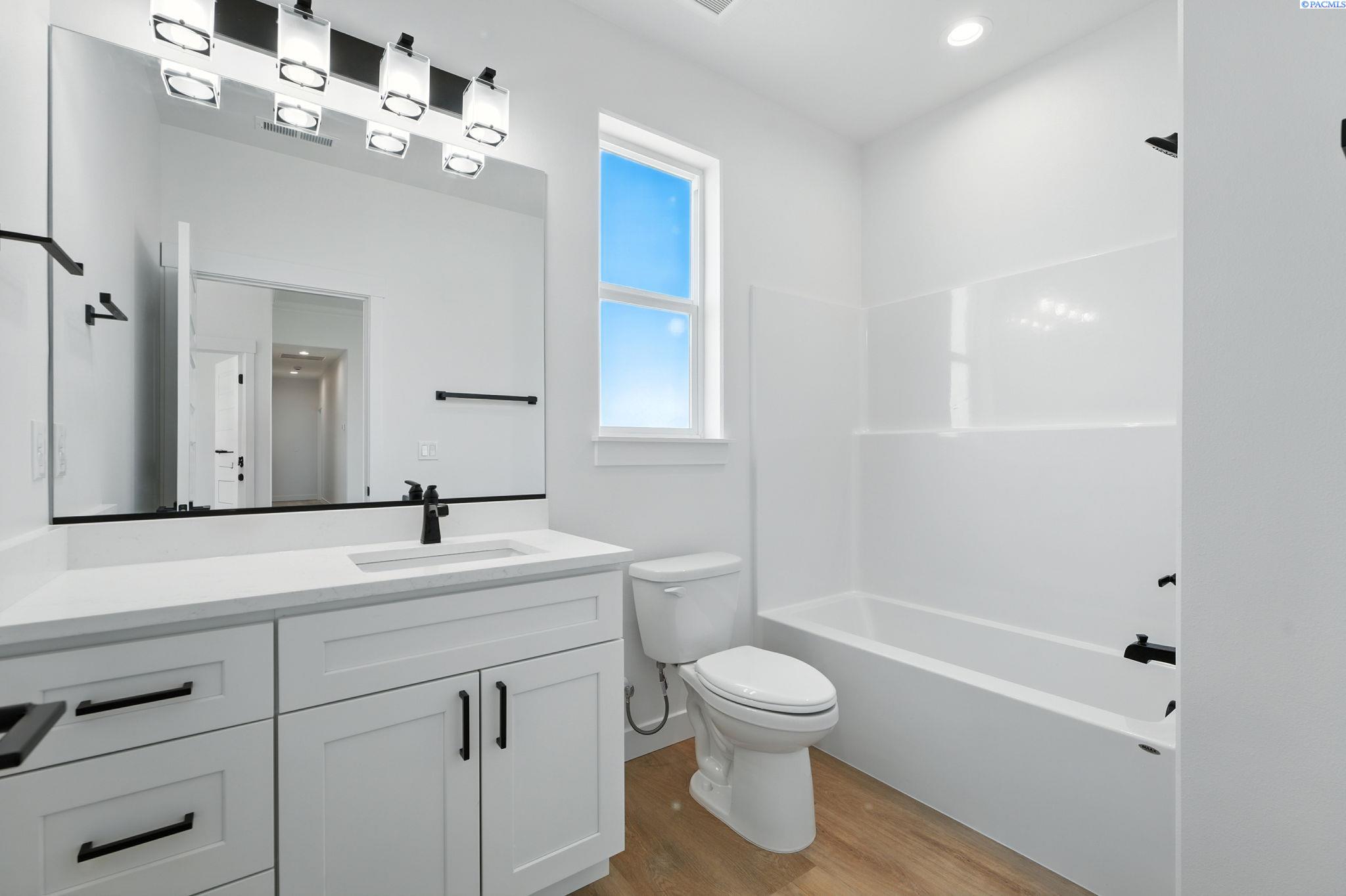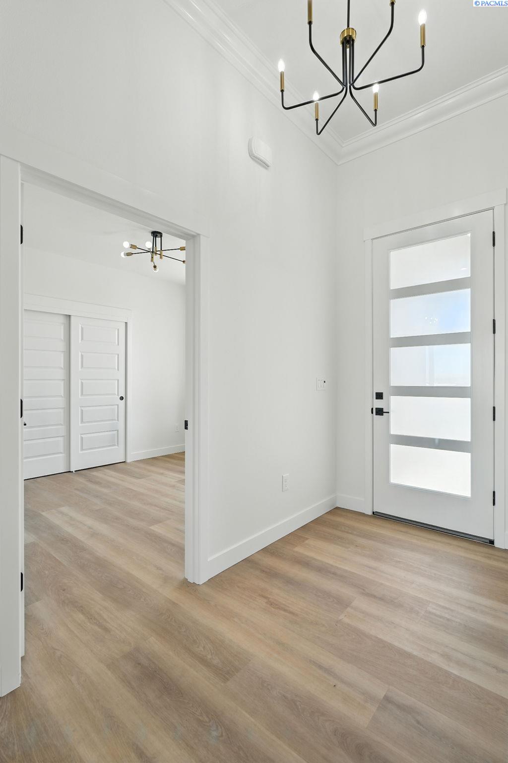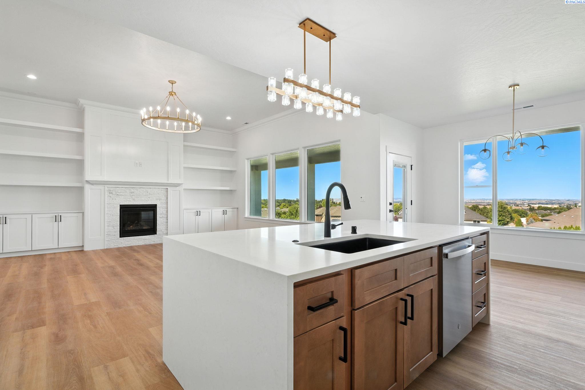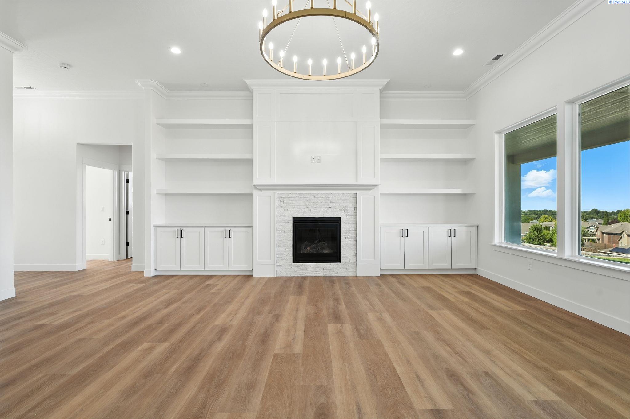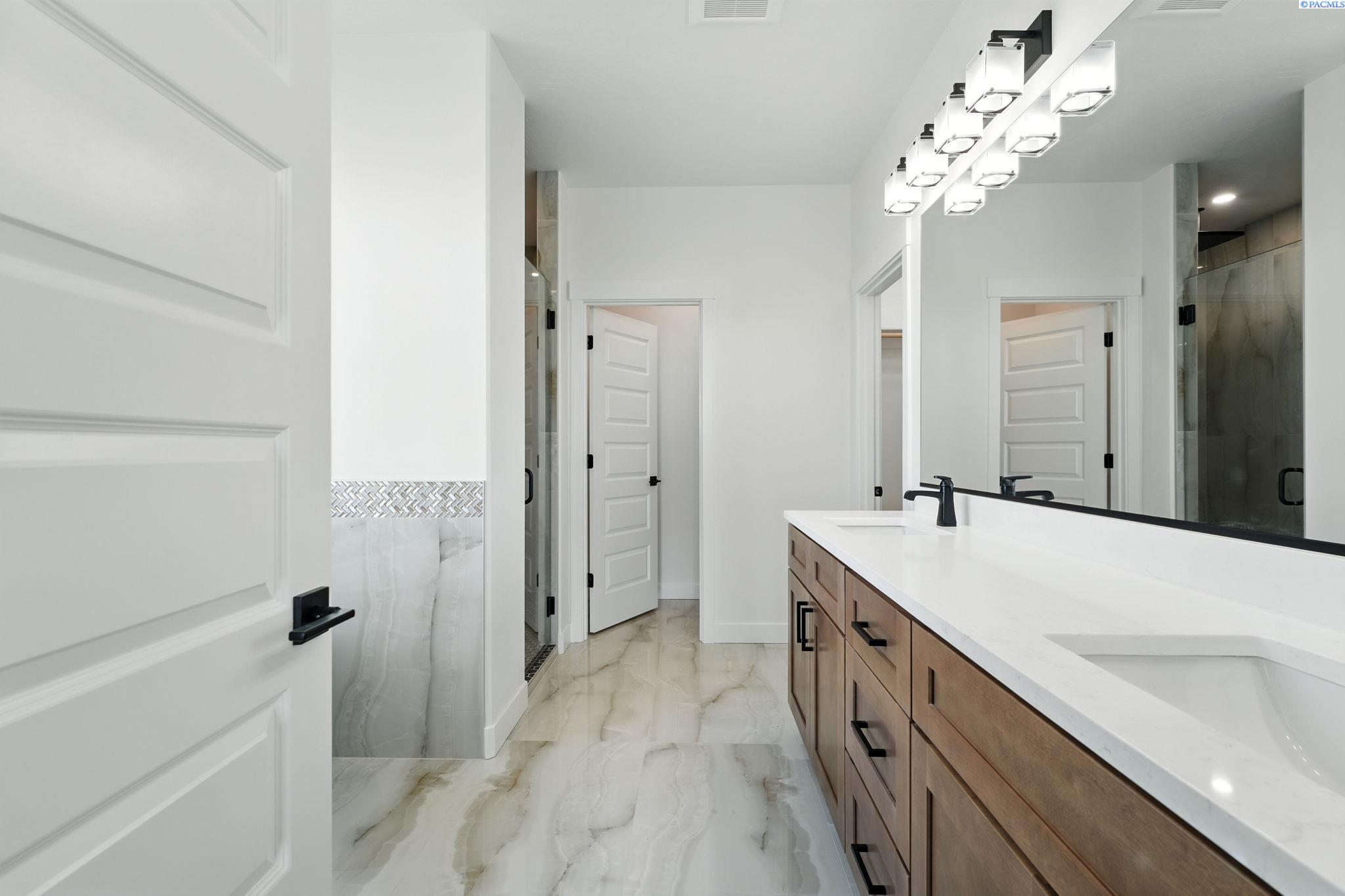 MLS# 286596 Beautiful New 1-story 4-bdrm 2-bath 3-car garage 2038 sf home with gorgeous views on a large lot with a private drive off the cul-de-sac in popular White Bluffs neighborhood! Elegant and light filled home with great combination of beauty, functionality and attention to details. Large living room with 11-foot ceilings is highlighted with the white stone trimmed fireplace with practical build-ins for your entertainment components and decor. Oversized kitchen features abundance of cabinets, - beautiful mixture of natural and white wood - oversized quartz waterfall island with the cabinets on both sides, gas range, and pantry. Gorgeous dining room with additional cabinets, decorative shelving and a door leading to large covered patio - all ready for your entertainment and enjoyment. Spacious master retreat is highlighted with the door to separate private covered patio, large double vanity, soaker tub, large tiled walk-in shower, and spacious walk-in closet with built-ins.Itâs a split bedroom design, 2 additional bedrooms are on the other side of the home and the 4th bedroom/den is closer to the entry. Mud room/ utility room has a boot/ coat bench, sink and storage cabinets and is located close to the kitchen.This home has LVP flooring throughout, no carpets, easy maintenance and friendly for people with allergies. One of the main highlight of the home is spectacular lighting fixtures- very elegant and classy! Oversized driveway and 3 car garage gives ample space for parking. Large yard with captivating views and two covered patios are ready for your enjoyment!