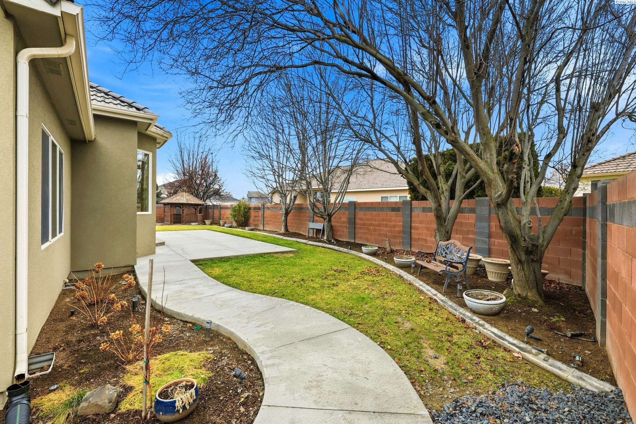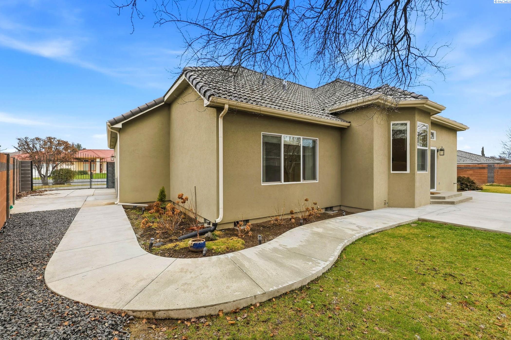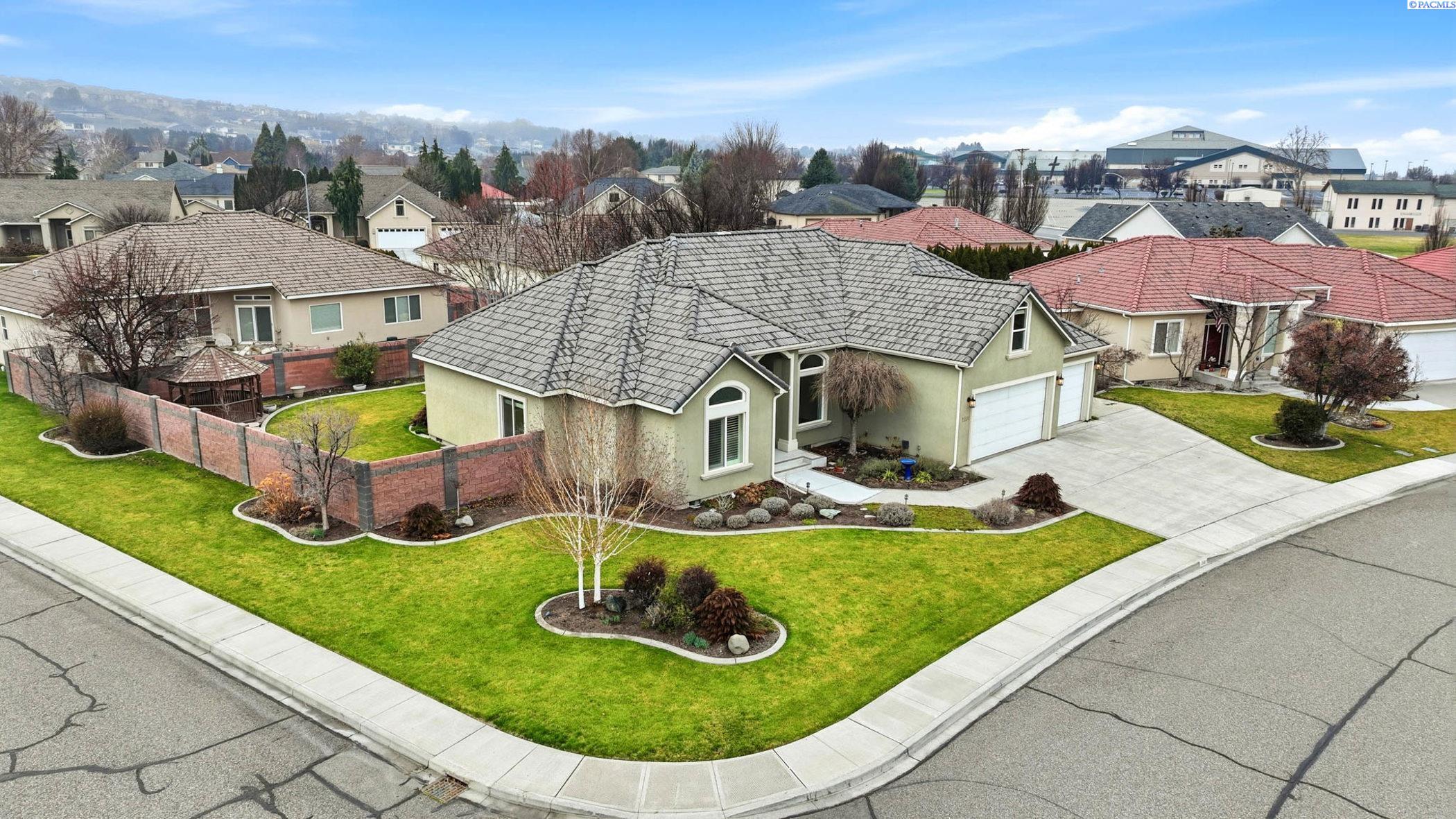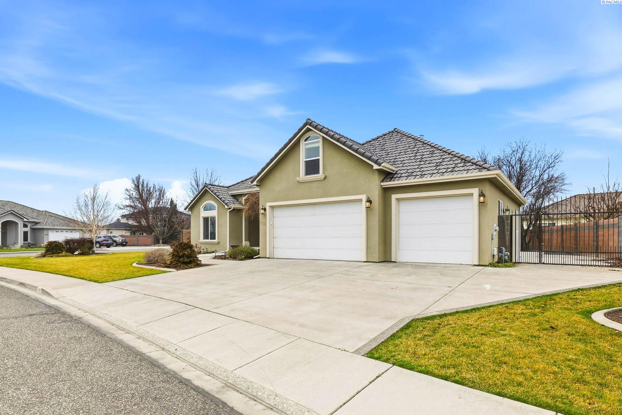 MLS# 290517 Tucked away on a quiet cul-de-sac in South Richland, this beautifully updated corner-lot home offers a welcoming blend of open space, privacy, and thoughtful upgrades. Two separate bedroom wings keep the primary suite private and create a comfortable retreat within the home, while multiple bonus spaces add flexibility for everyday living and special occasions alike. Inside, 12-foot ceilings with oversized crown molding create an airy, elegant feel, complemented by a formal dining room and open living areas perfect for gathering with family and friends. The kitchen features new stainless steel appliances (including an impressive refrigerator with a Beverage Center), abundant cabinet space, and generous seating with both a breakfast area and bar seating. Wooden plantation shutters, new lighting fixtures, and fresh interior paint add warmth and brightness throughout. Both full bathrooms areupgraded with bidets featuring heated seats, adding an extra touch of comfort.A main-floor office with built-in shelving provides a quiet, functional place to work or unwind, while the bonus room above the garage offers versatilityâperfect for a craft room, media space, or guest retreatâwith convenient access to a 3/4 bath at the base of the stairs. Outside, the home continues to shine with an expanded concrete patio ideal for summer evenings and a curved walkway tied into the side storage pad, creating extended space for a trailer or RV, complete with a 30-amp RV hookup. Just minutes from Badger Mountain hiking trails, shopping, and restaurants, this home offers peaceful cul-de-sac living with a low annual HOA in one of South Richlandâs most desirable neighborhoods.