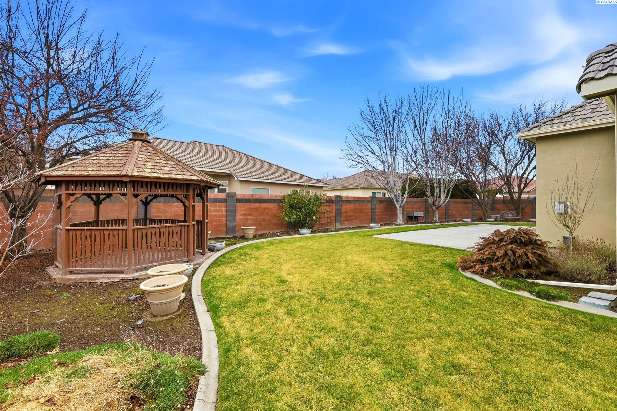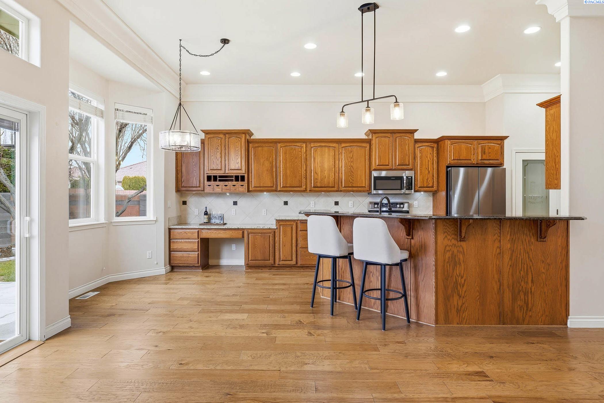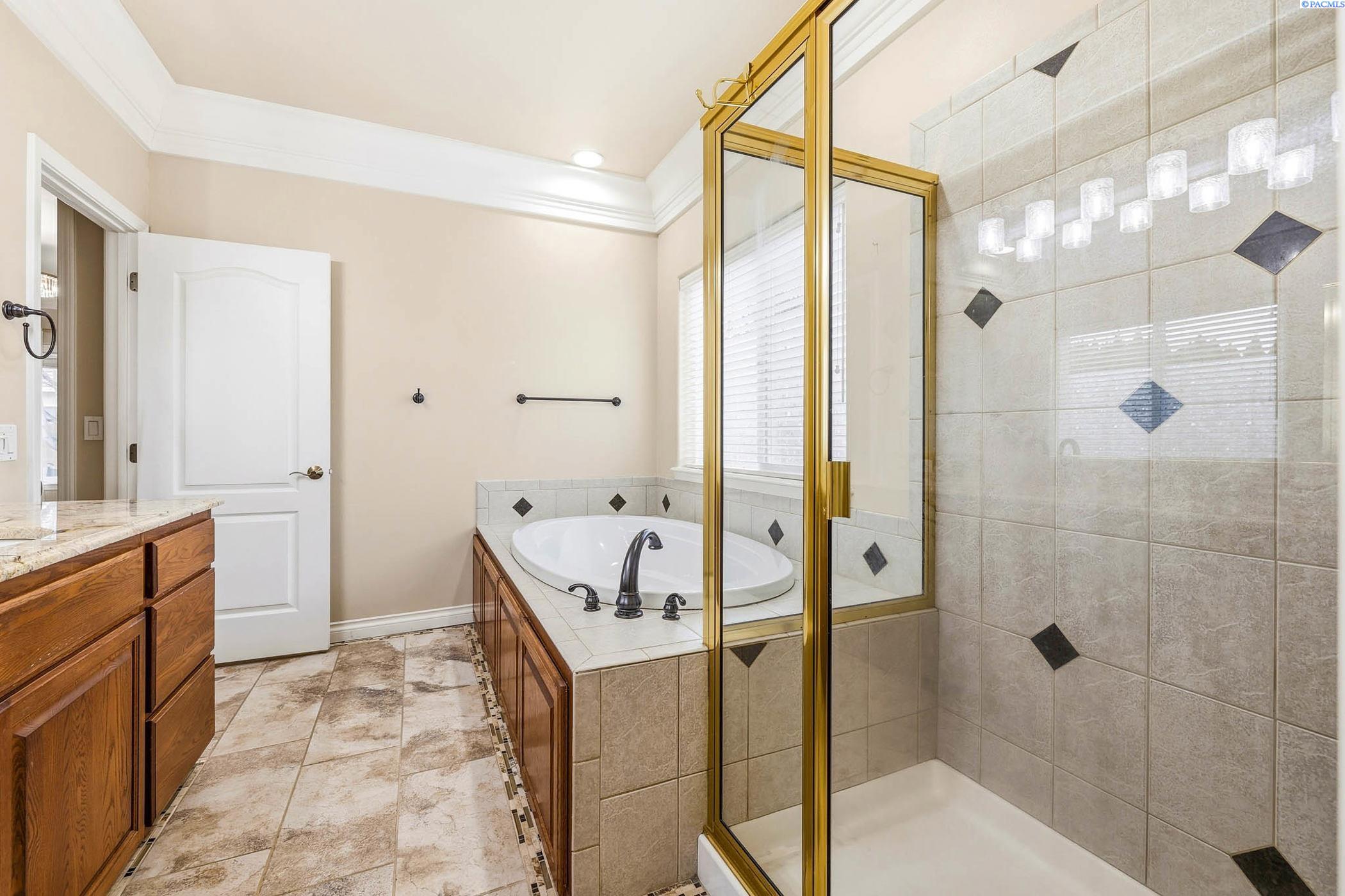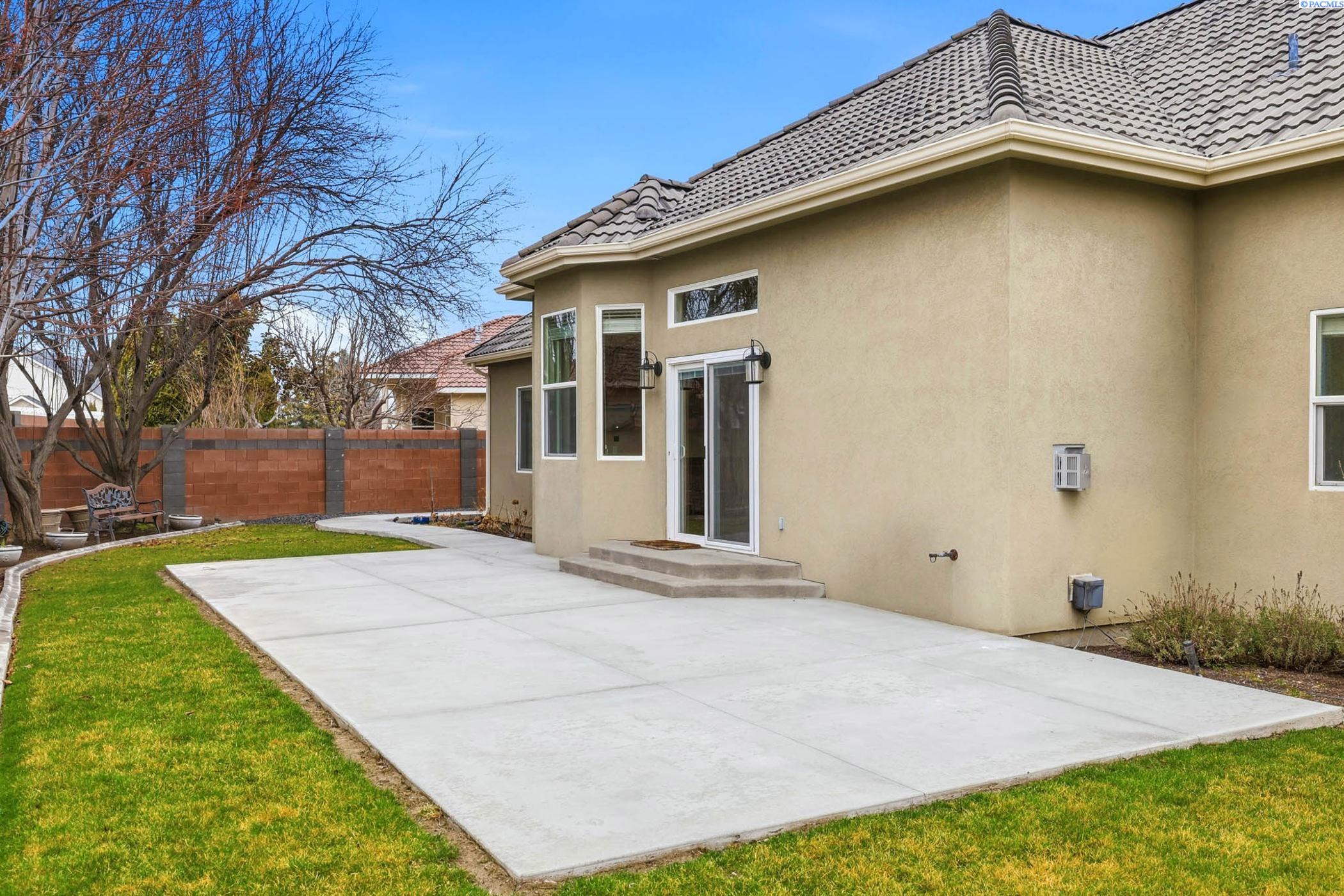 MLS# 290517 Tucked away on a quiet cul-de-sac in South Richland, this beautifully updated corner-lot home offers a welcoming blend of open space, privacy, and thoughtful upgrades. Two separate bedroom wings keep the primary suite private and create a comfortable retreat within the home, while multiple bonus spaces add flexibility for everyday living and special occasions alike. Inside, 12-foot ceilings with oversized crown molding create an airy, elegant feel, complemented by a formal dining room and open living areas perfect for gathering with family and friends. The kitchen features new stainless steel appliances (including an impressive refrigerator with a Beverage Center), abundant cabinet space, and generous seating with both a breakfast area and bar seating. Wooden plantation shutters, new lighting fixtures, and fresh interior paint add warmth and brightness throughout. Both full bathrooms areupgraded with bidets featuring heated seats, adding an extra touch of comfort.A main-floor office with built-in shelving provides a quiet, functional place to work or unwind, while the bonus room above the garage offers versatilityâperfect for a craft room, media space, or guest retreatâwith convenient access to a 3/4 bath at the base of the stairs. Outside, the home continues to shine with an expanded concrete patio ideal for summer evenings and a curved walkway tied into the side storage pad, creating extended space for a trailer or RV, complete with a 30-amp RV hookup. Just minutes from Badger Mountain hiking trails, shopping, and restaurants, this home offers peaceful cul-de-sac living with a low annual HOA in one of South Richlandâs most desirable neighborhoods.