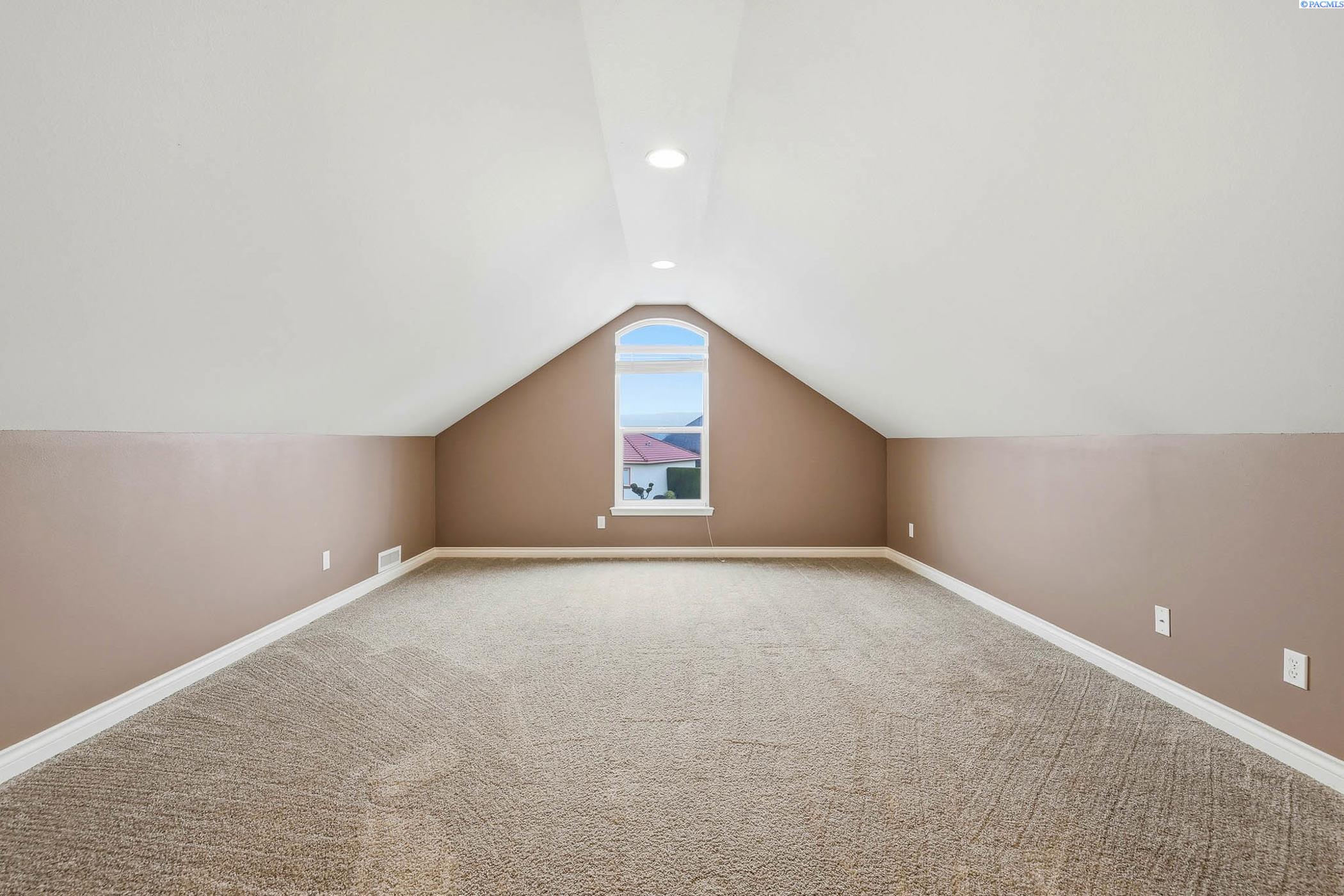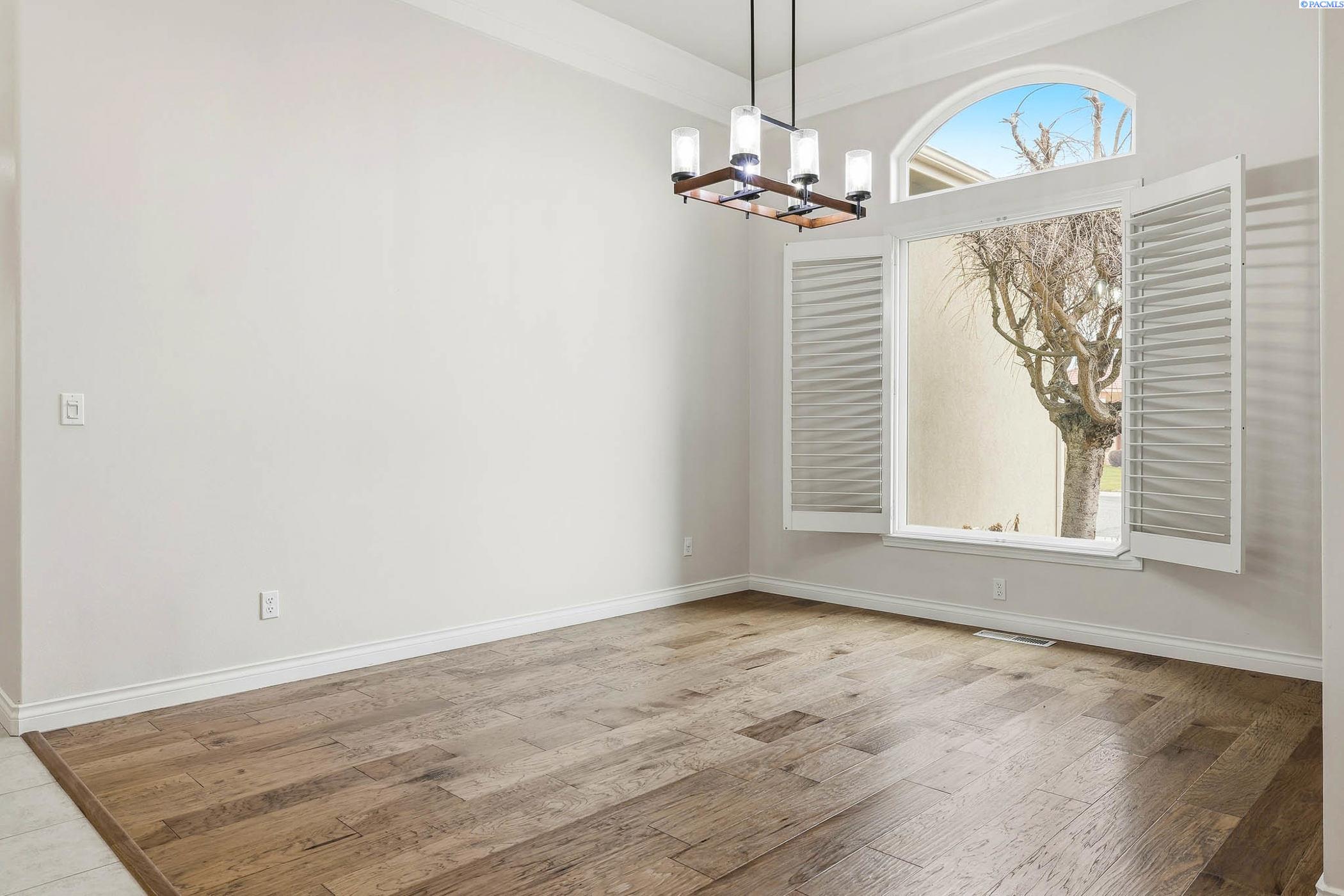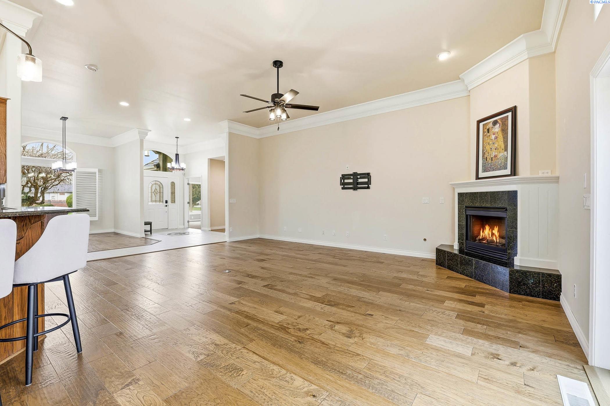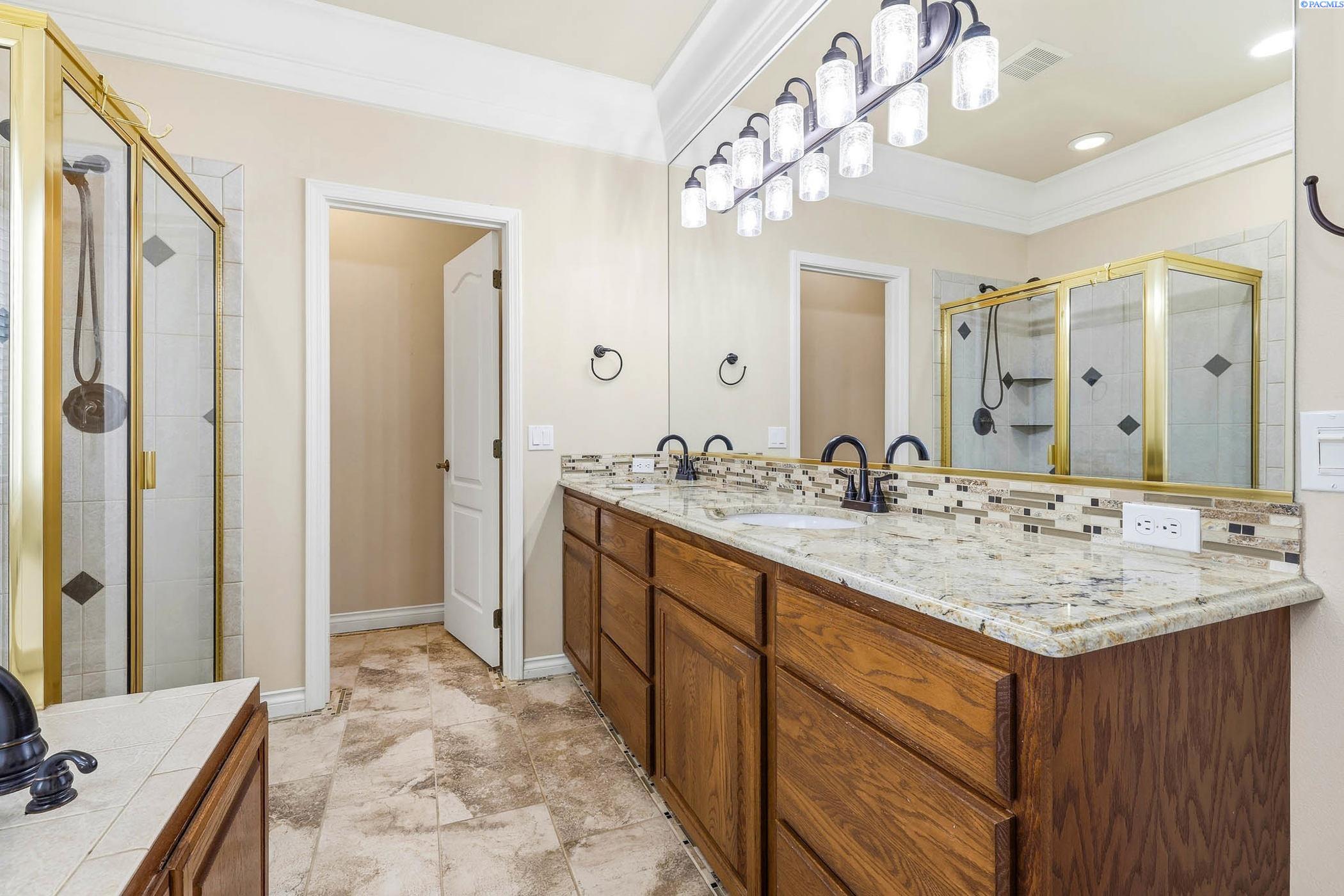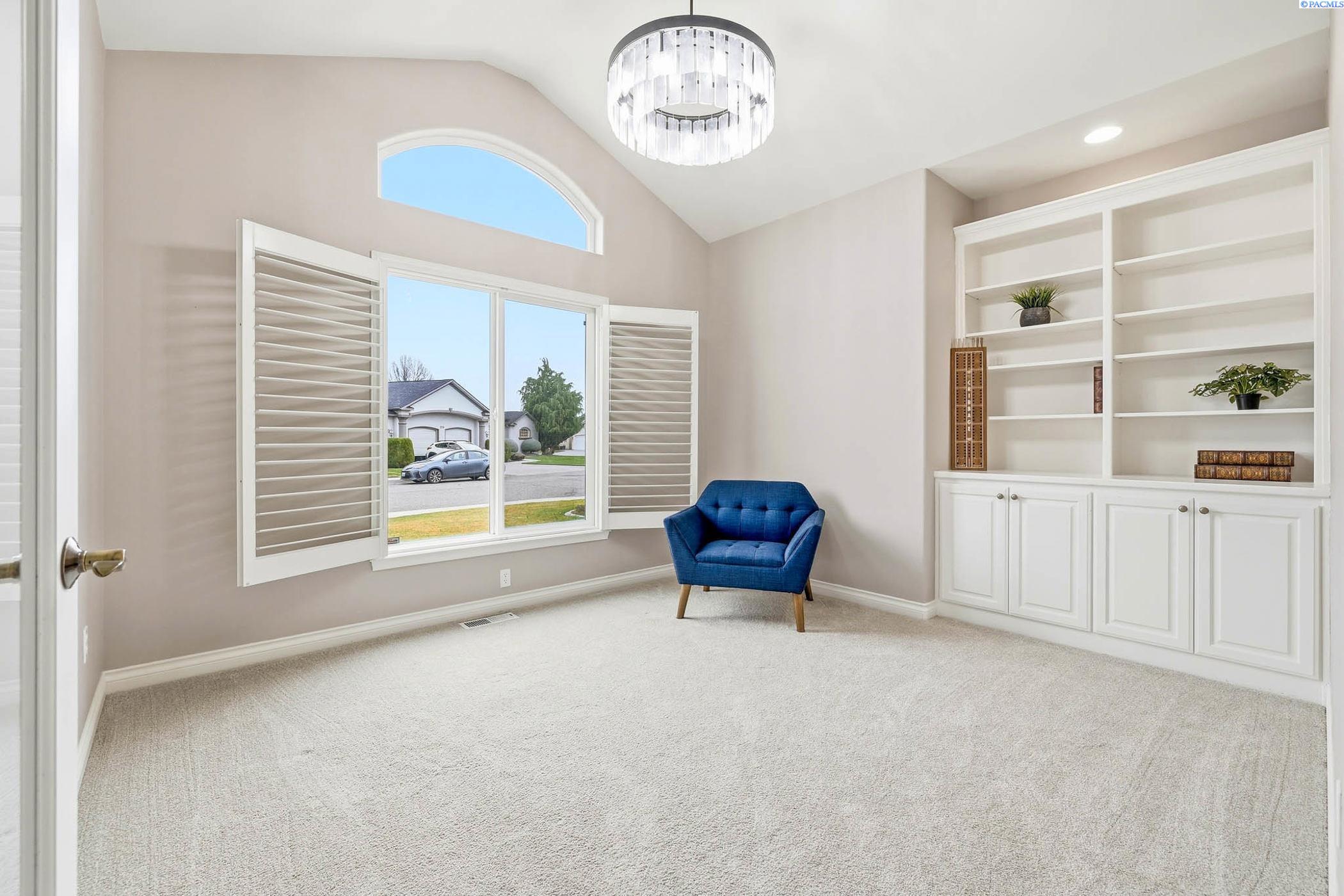MLS# 290517 Tucked away on a quiet cul-de-sac in South Richland, this beautifully updated corner-lot home offers a welcoming blend of open space, privacy, and thoughtful upgrades. Two separate bedroom wings keep the primary suite private and create a comfortable retreat within the home, while multiple bonus spaces add flexibility for everyday living and special occasions alike. Inside, 12-foot ceilings with oversized crown molding create an airy, elegant feel, complemented by a formal dining room and open living areas perfect for gathering with family and friends. The kitchen features new stainless steel appliances (including an impressive refrigerator with a Beverage Center), abundant cabinet space, and generous seating with both a breakfast area and bar seating. Wooden plantation shutters, new lighting fixtures, and fresh interior paint add warmth and brightness throughout. Both full bathrooms areupgraded with bidets featuring heated seats, adding an extra touch of comfort.A main-floor office with built-in shelving provides a quiet, functional place to work or unwind, while the bonus room above the garage offers versatilityâperfect for a craft room, media space, or guest retreatâwith convenient access to a 3/4 bath at the base of the stairs. Outside, the home continues to shine with an expanded concrete patio ideal for summer evenings and a curved walkway tied into the side storage pad, creating extended space for a trailer or RV, complete with a 30-amp RV hookup. Just minutes from Badger Mountain hiking trails, shopping, and restaurants, this home offers peaceful cul-de-sac living with a low annual HOA in one of South Richlandâs most desirable neighborhoods.