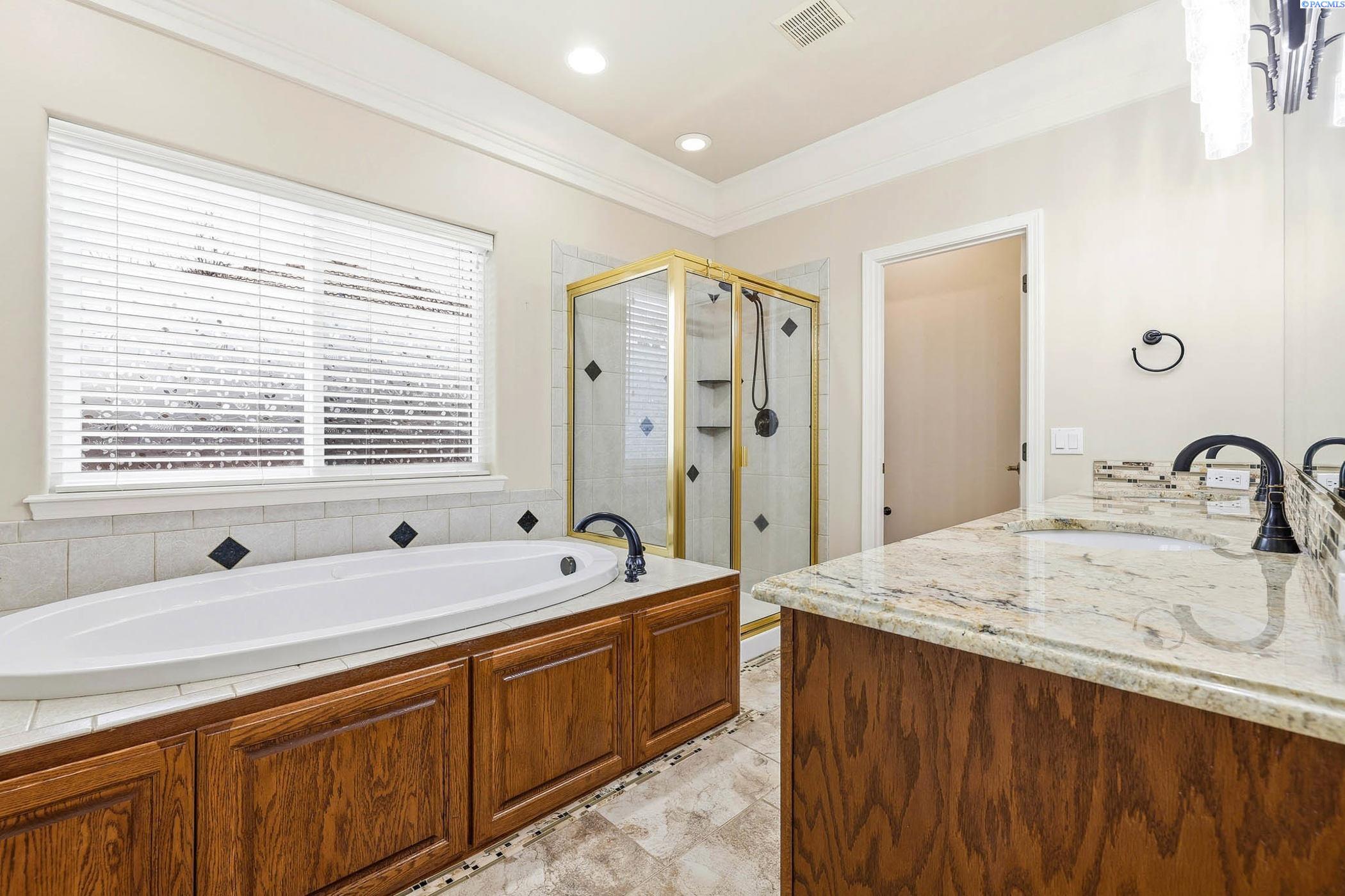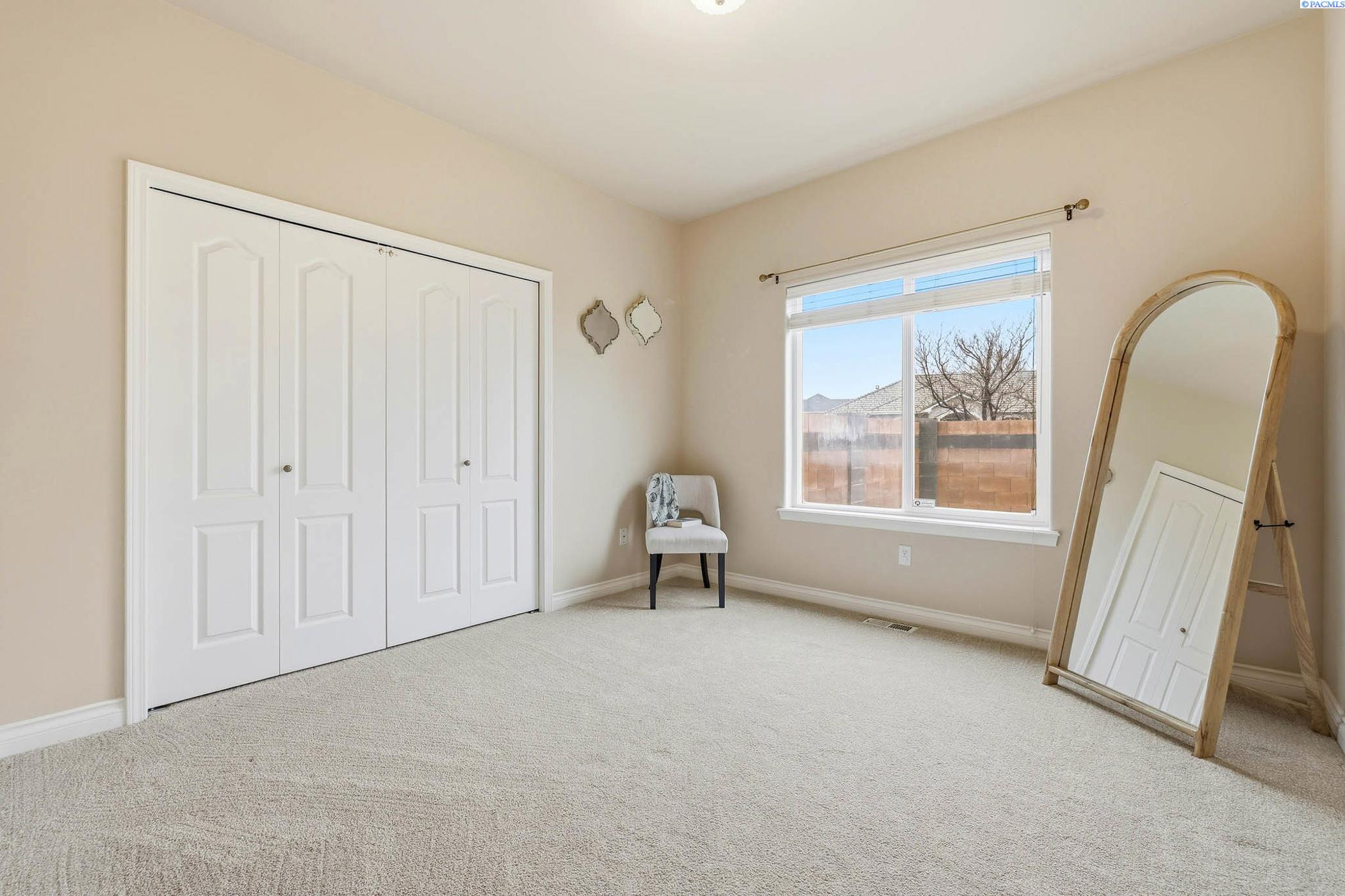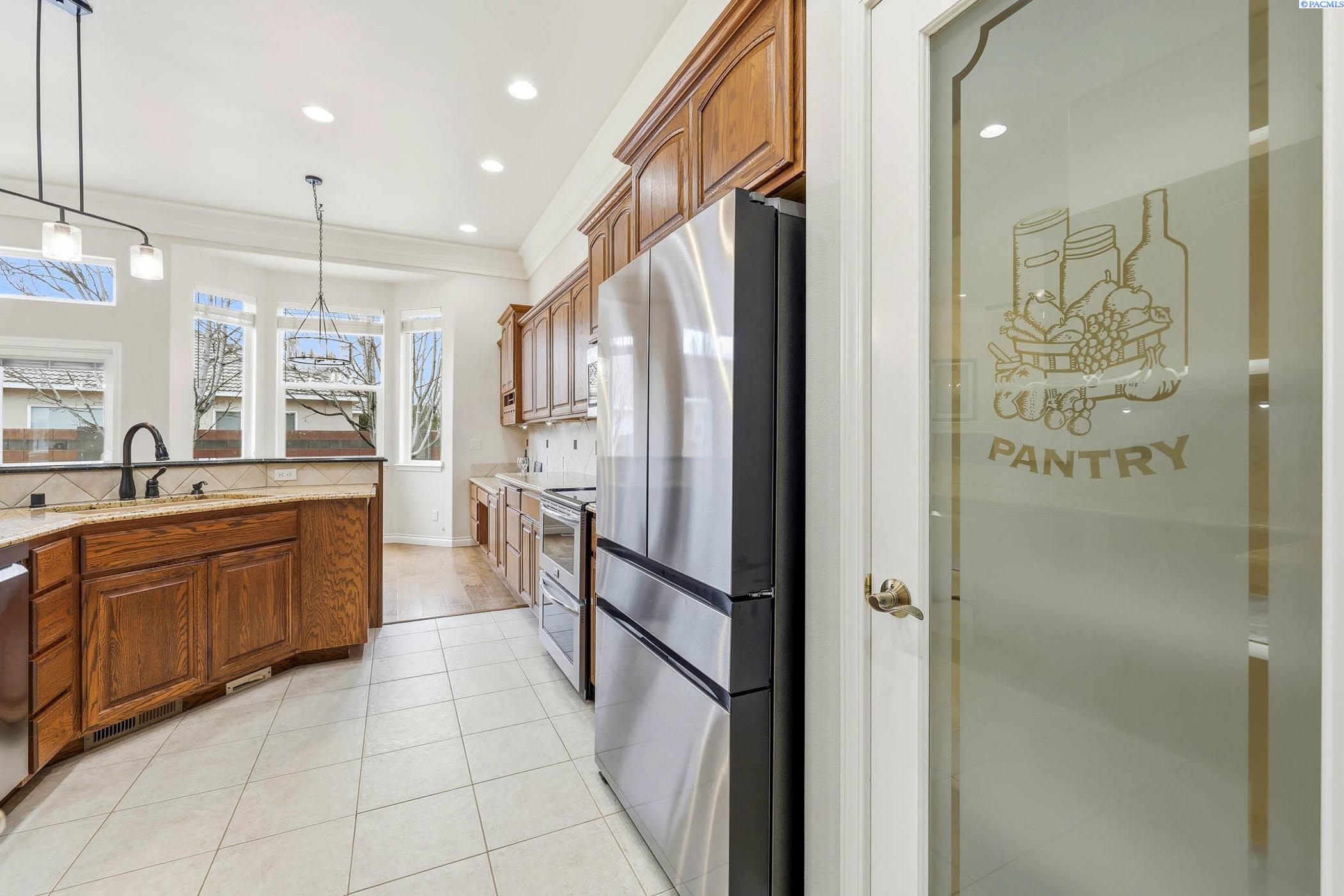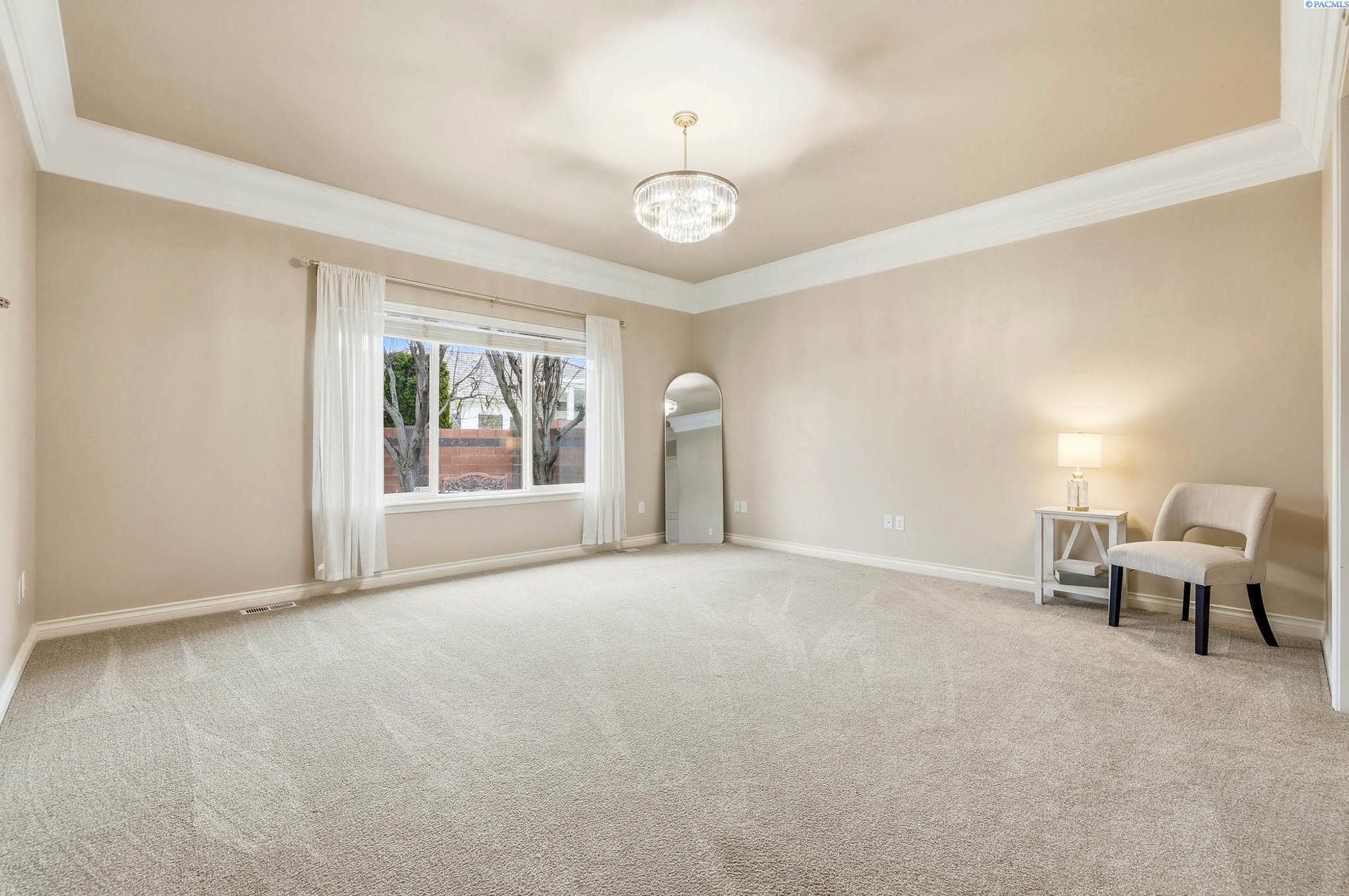 MLS# 290517 Tucked away on a quiet cul-de-sac in South Richland, this beautifully updated corner-lot home offers a welcoming blend of open space, privacy, and thoughtful upgrades. Two separate bedroom wings keep the primary suite private and create a comfortable retreat within the home, while multiple bonus spaces add flexibility for everyday living and special occasions alike. Inside, 12-foot ceilings with oversized crown molding create an airy, elegant feel, complemented by a formal dining room and open living areas perfect for gathering with family and friends. The kitchen features new stainless steel appliances (including an impressive refrigerator with a Beverage Center), abundant cabinet space, and generous seating with both a breakfast area and bar seating. Wooden plantation shutters, new lighting fixtures, and fresh interior paint add warmth and brightness throughout. Both full bathrooms areupgraded with bidets featuring heated seats, adding an extra touch of comfort.A main-floor office with built-in shelving provides a quiet, functional place to work or unwind, while the bonus room above the garage offers versatilityâperfect for a craft room, media space, or guest retreatâwith convenient access to a 3/4 bath at the base of the stairs. Outside, the home continues to shine with an expanded concrete patio ideal for summer evenings and a curved walkway tied into the side storage pad, creating extended space for a trailer or RV, complete with a 30-amp RV hookup. Just minutes from Badger Mountain hiking trails, shopping, and restaurants, this home offers peaceful cul-de-sac living with a low annual HOA in one of South Richlandâs most desirable neighborhoods.
