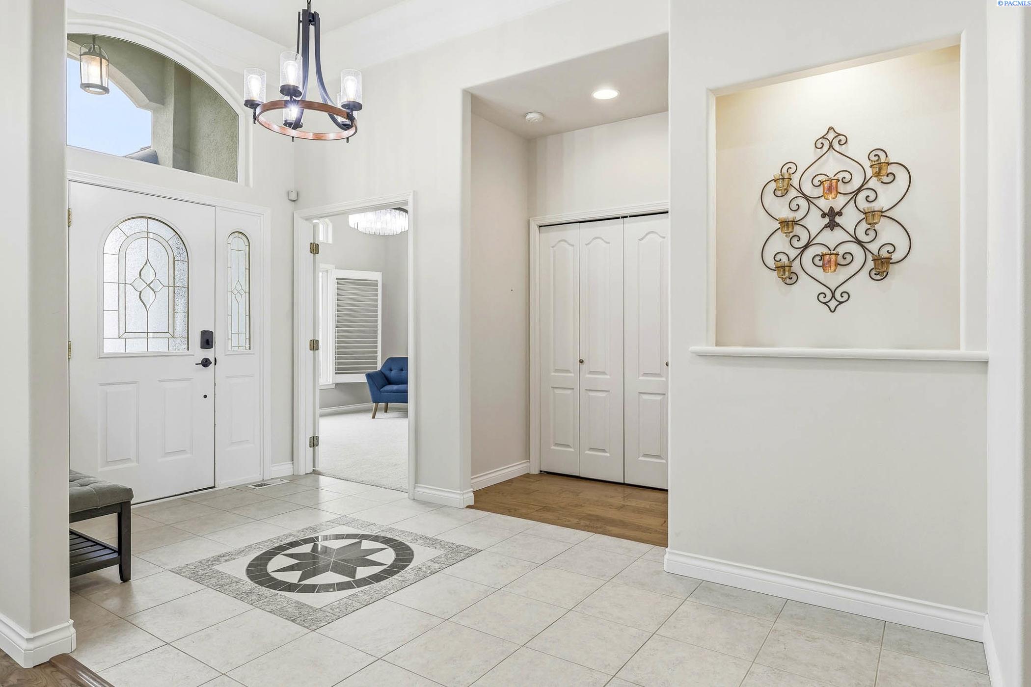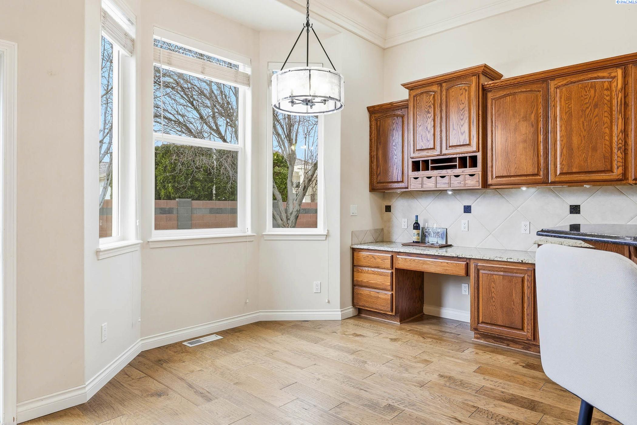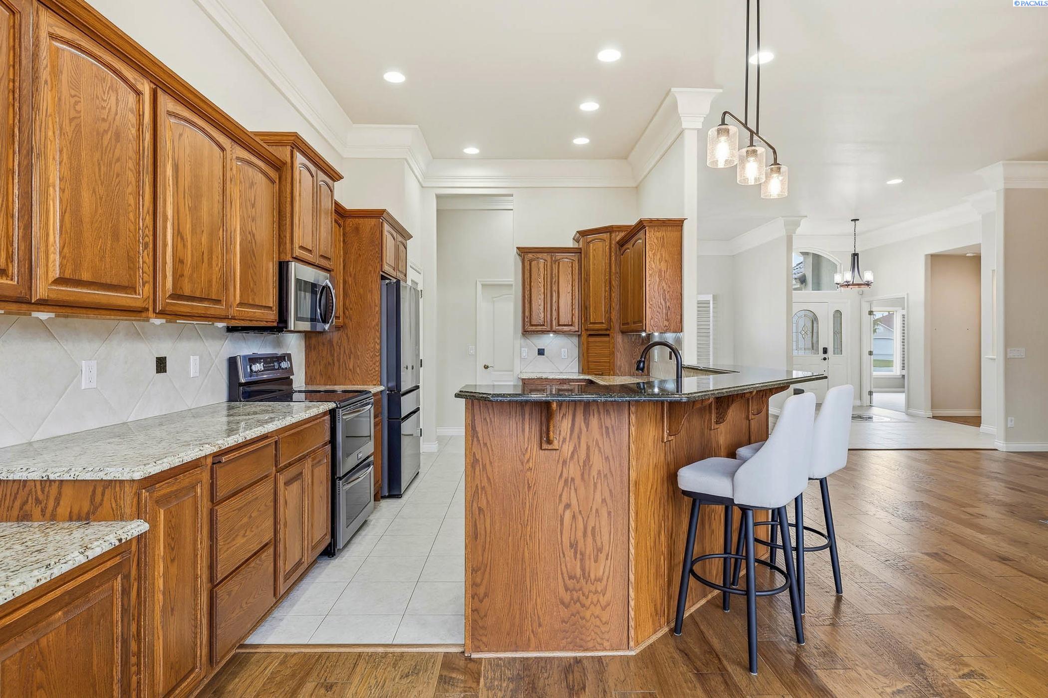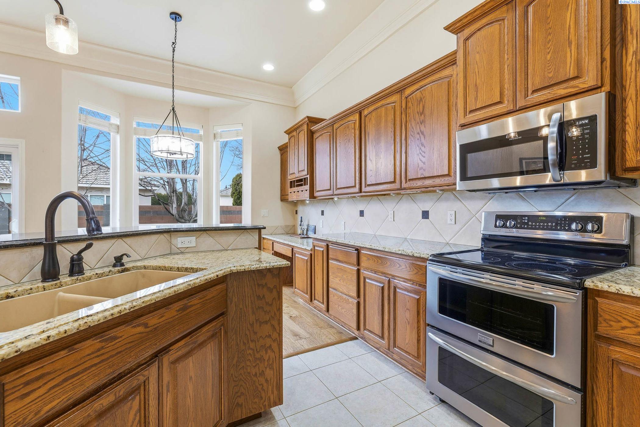 MLS# 290517 Tucked away on a quiet cul-de-sac in South Richland, this beautifully updated corner-lot home offers a welcoming blend of open space, privacy, and thoughtful upgrades. Two separate bedroom wings keep the primary suite private and create a comfortable retreat within the home, while multiple bonus spaces add flexibility for everyday living and special occasions alike. Inside, 12-foot ceilings with oversized crown molding create an airy, elegant feel, complemented by a formal dining room and open living areas perfect for gathering with family and friends. The kitchen features new stainless steel appliances (including an impressive refrigerator with a Beverage Center), abundant cabinet space, and generous seating with both a breakfast area and bar seating. Wooden plantation shutters, new lighting fixtures, and fresh interior paint add warmth and brightness throughout. Both full bathrooms areupgraded with bidets featuring heated seats, adding an extra touch of comfort.A main-floor office with built-in shelving provides a quiet, functional place to work or unwind, while the bonus room above the garage offers versatilityâperfect for a craft room, media space, or guest retreatâwith convenient access to a 3/4 bath at the base of the stairs. Outside, the home continues to shine with an expanded concrete patio ideal for summer evenings and a curved walkway tied into the side storage pad, creating extended space for a trailer or RV, complete with a 30-amp RV hookup. Just minutes from Badger Mountain hiking trails, shopping, and restaurants, this home offers peaceful cul-de-sac living with a low annual HOA in one of South Richlandâs most desirable neighborhoods.