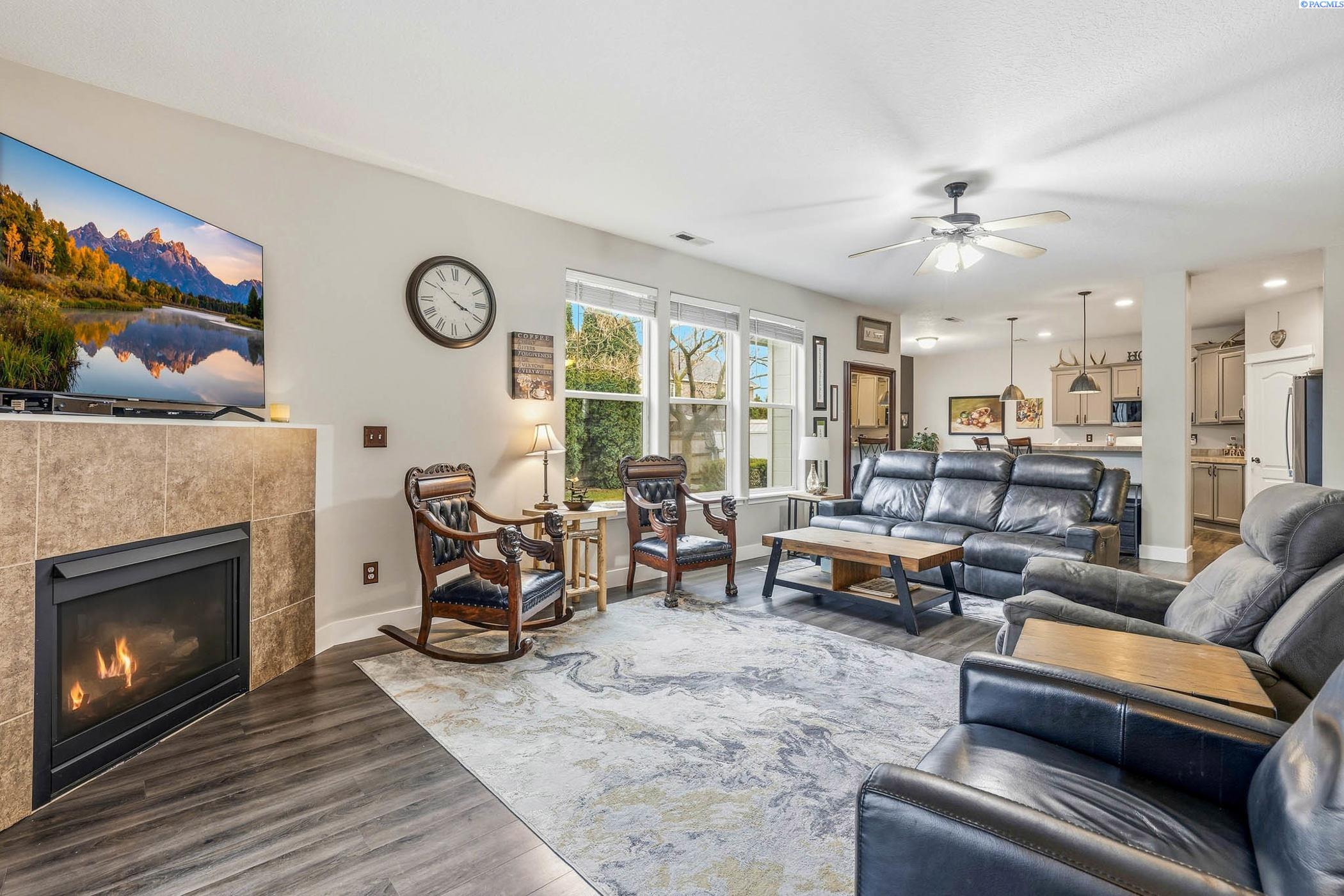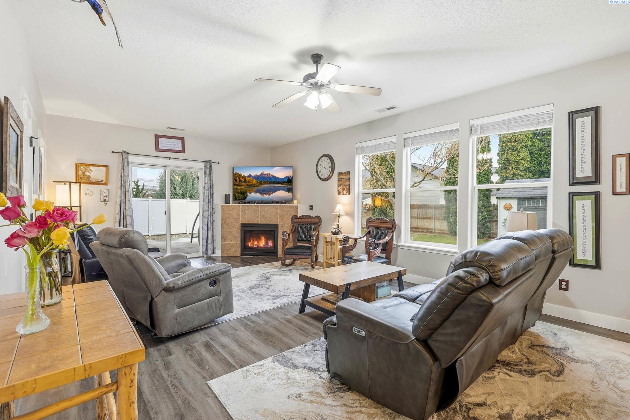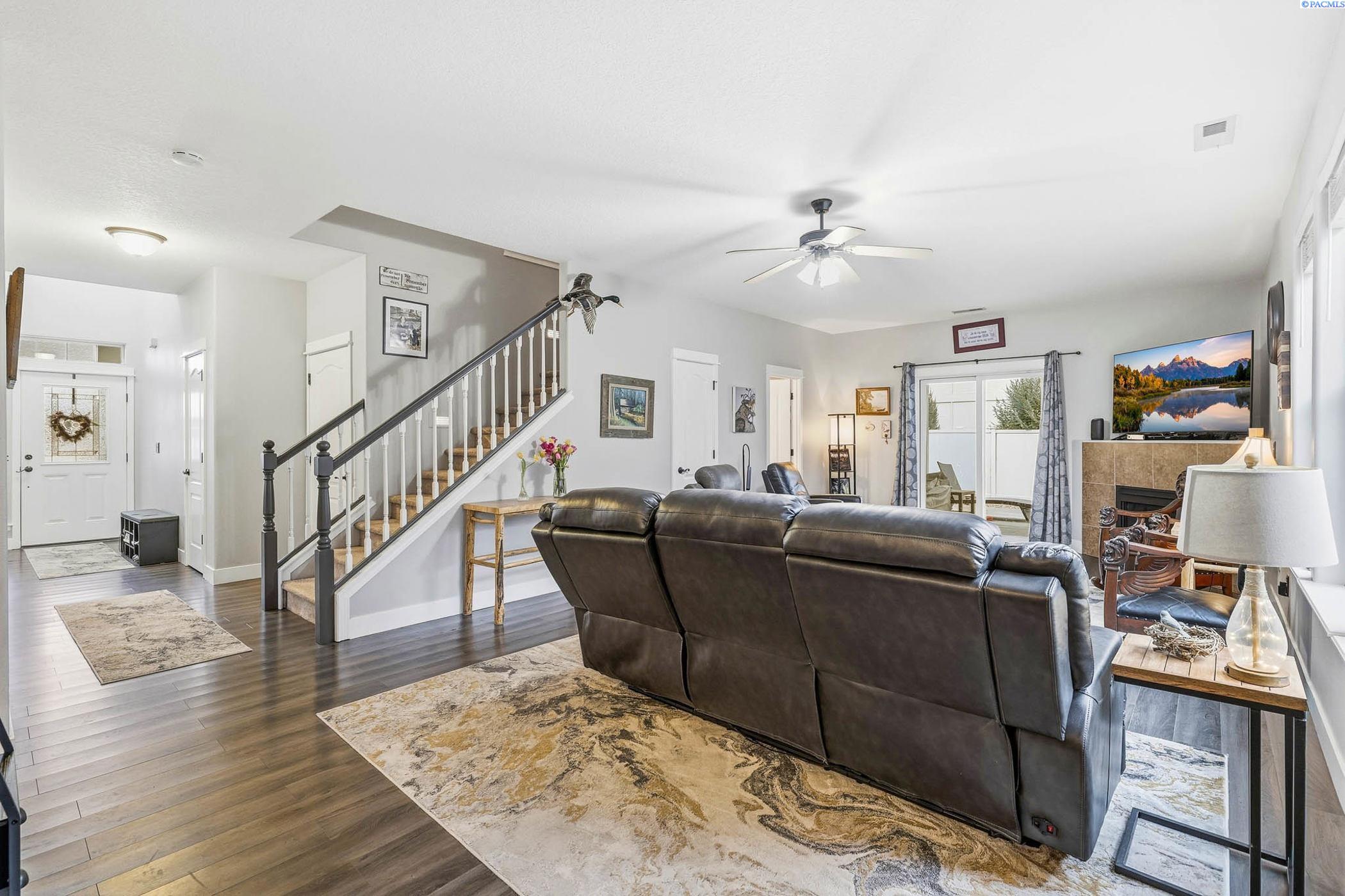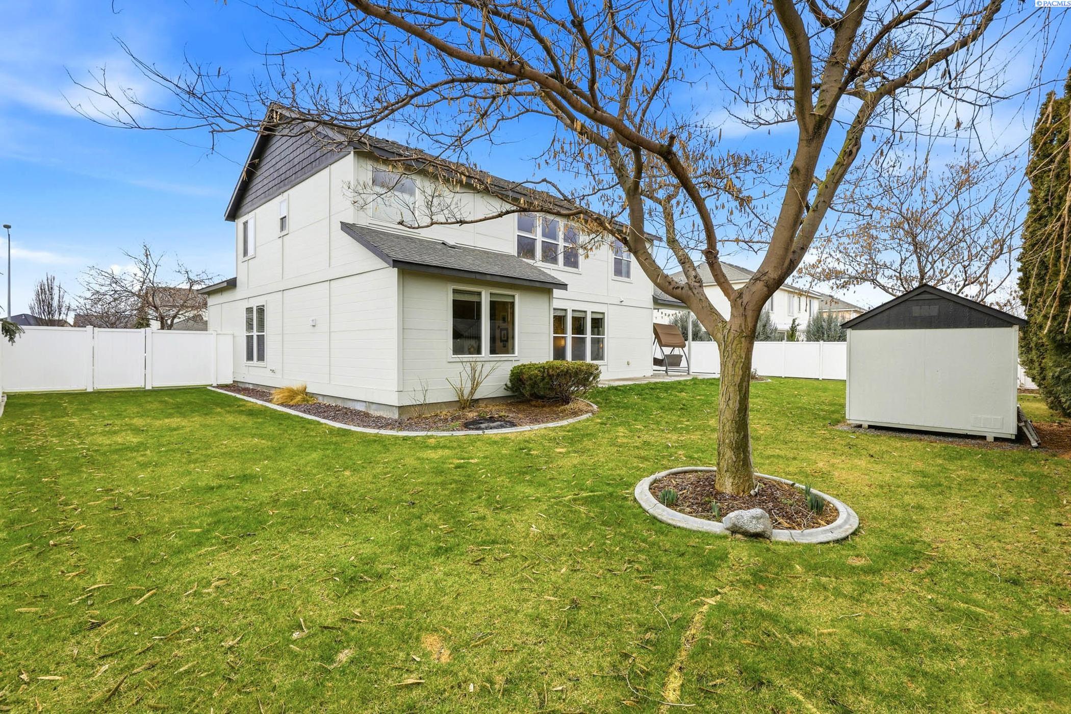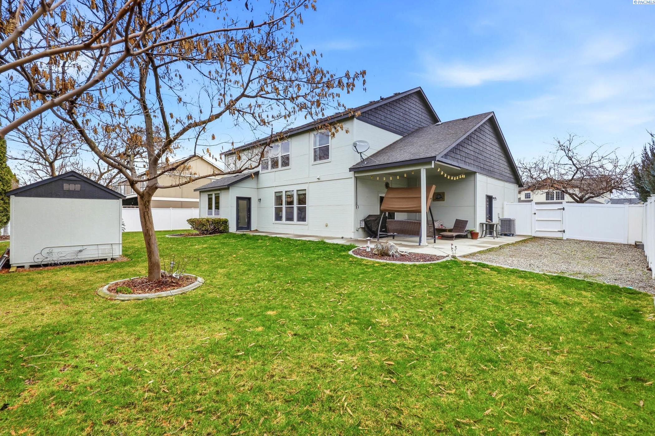 MLS# 290560 Spacious 2-story single-family home offering 2608 sq ft with 4 bedrooms, 3 bathrooms, and a 3-car garage. All bedrooms are located upstairs, each featuring a walk-in closet for excellent storage. The main level show cases newer wood laminate flooring and a bright great room floor plan with a cozy fireplace-making the downstairs ideal for entertaining. The kitchen features tile countertops, a large pantry, a breakfast bar, and new appliances. Retreat to the spa-like primary suite featuring a relaxing garden tub and separate walk-in shower. Additional highlights include a newer heating and cooling system, and interior/exterior paint completed three years ago. Enjoy a private backyard with a covered patio complete with shade blinds and a garden shed for extra storage-perfect for relaxing or hosting gatherings.