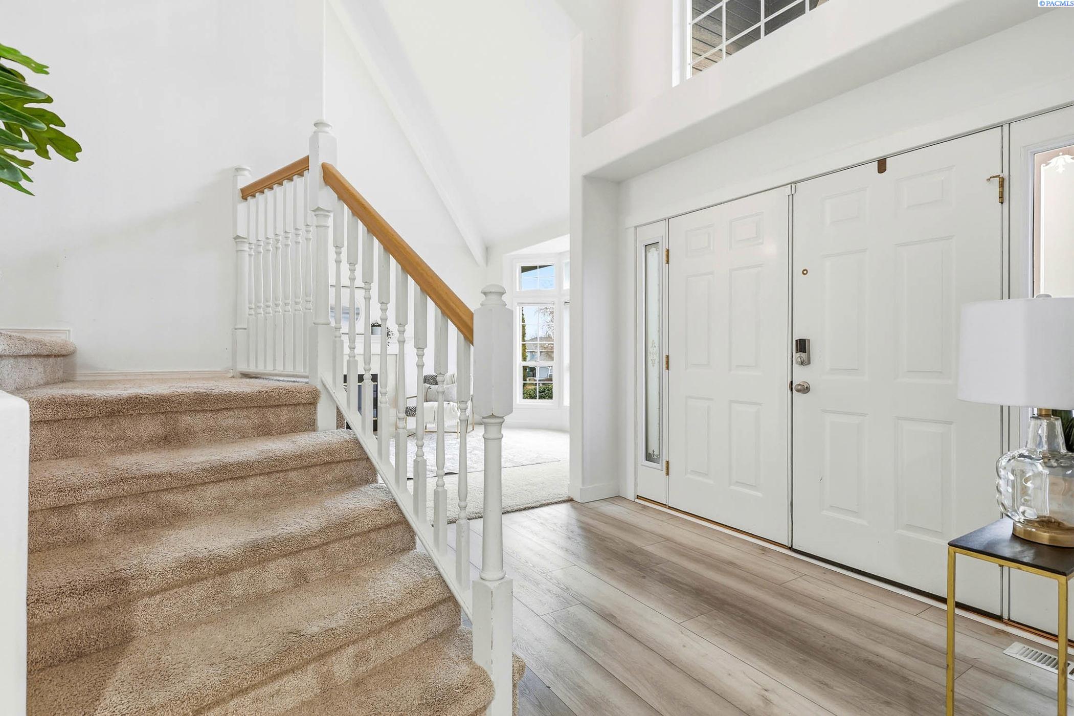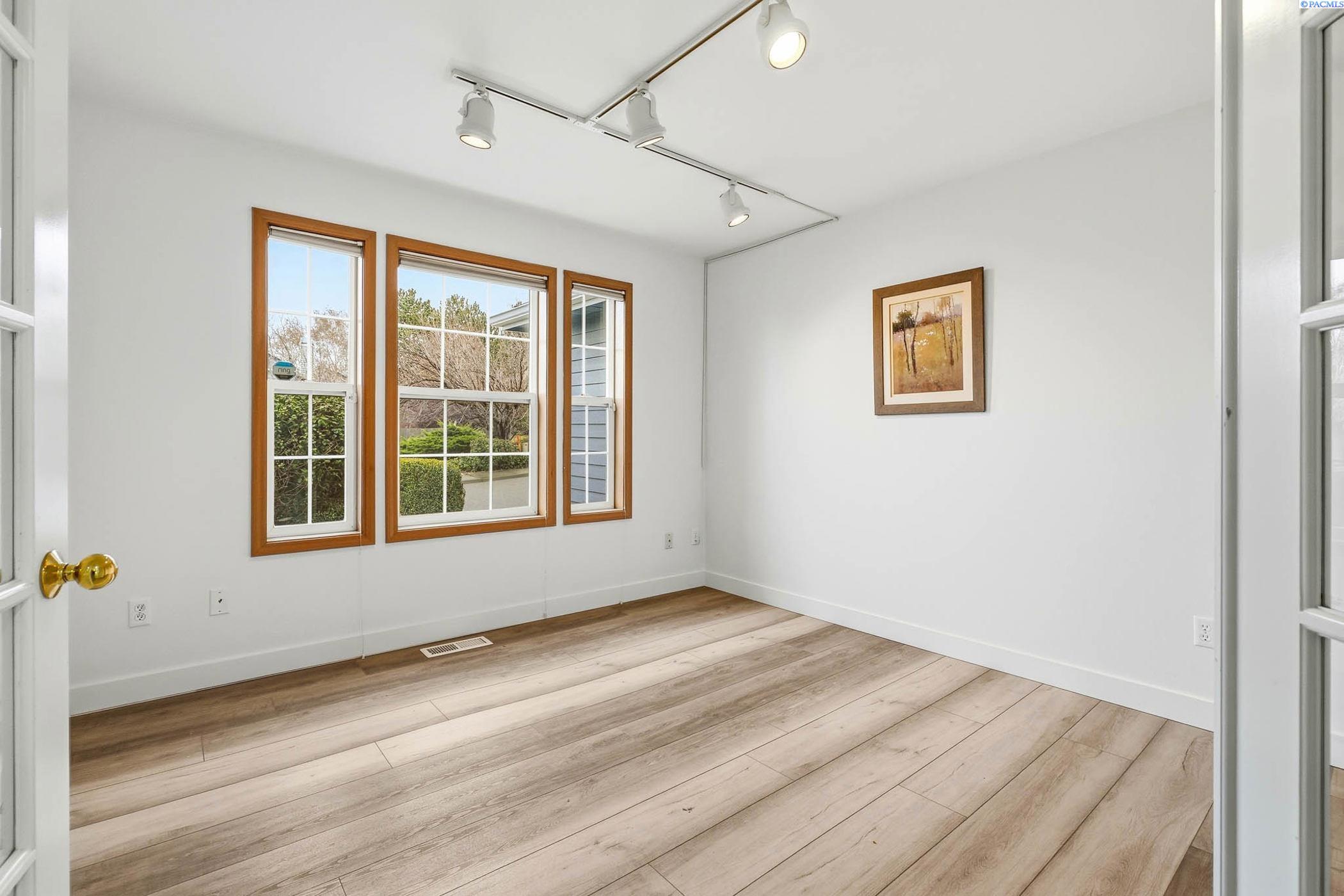 MLS# 290613 Welcome to this beautifully maintained 2,640 sq ft home in the highlysought-after Canyon Lakes golf communityâwhere space, functionality,and an unbeatable backyard setting come together.Built in 1992 and lovingly cared for by only two owners, this homeoffers a rare and special location: the backyard opens directly ontothe sprawling lawns and trees of Canyon Lakes Park. Enjoy theexpansive feel of your yard flowing seamlessly into green space,without the worry of stray golf balls. The park provides pickleballand basketball courts, walking paths, a playground, and wide-openareas to play, relax, bike, or walk the dog.Inside, the layout is both spacious and functional. The main levelfeatures two living areas, formal and informal dining spaces, and adedicated officeâideal for remote work or a quiet retreat. Vaultedceilings add to the open, airy feel.The recently remodeled kitchen shines with new cabinetry, updatedcountertops, and modern lighting. A standout design, thoughtfullyinspired by a formative Parade of Homes experience, is the elevateddishwasher, making loading and unloading more comfortable.Storage is abundant throughout the home, including full wall cabinets,a walk-in pantry with room for small appliances and bulk storage, andadditional under-stair storage accessed through a hidden passagewayâapractical and fun bonus space.Upstairs, all bedrooms are conveniently located on the same level. Thehome features three bedrooms plus a spacious bonus room, providingflexibility for family, guests, hobbies, or a media room. There arethree bathrooms total: two full baths upstairs and a half bath on themain level.Outside, the expansive yard offers multiple seating areas, gardens,and established fruit plants - perfect for entertaining, relaxing, orcultivating your own harvest. The three-car garage provides ample roomfor vehicles, a golf cart, bikes, tools, and storage. A standalonelaundry room adds everyday convenience.This is a rare opportunity to enjoy space, privacy, and communityamenities. On your quiet street with peaceful neighbors, youâll enjoyincredible sunsets from the largest backyard in Kennewick!