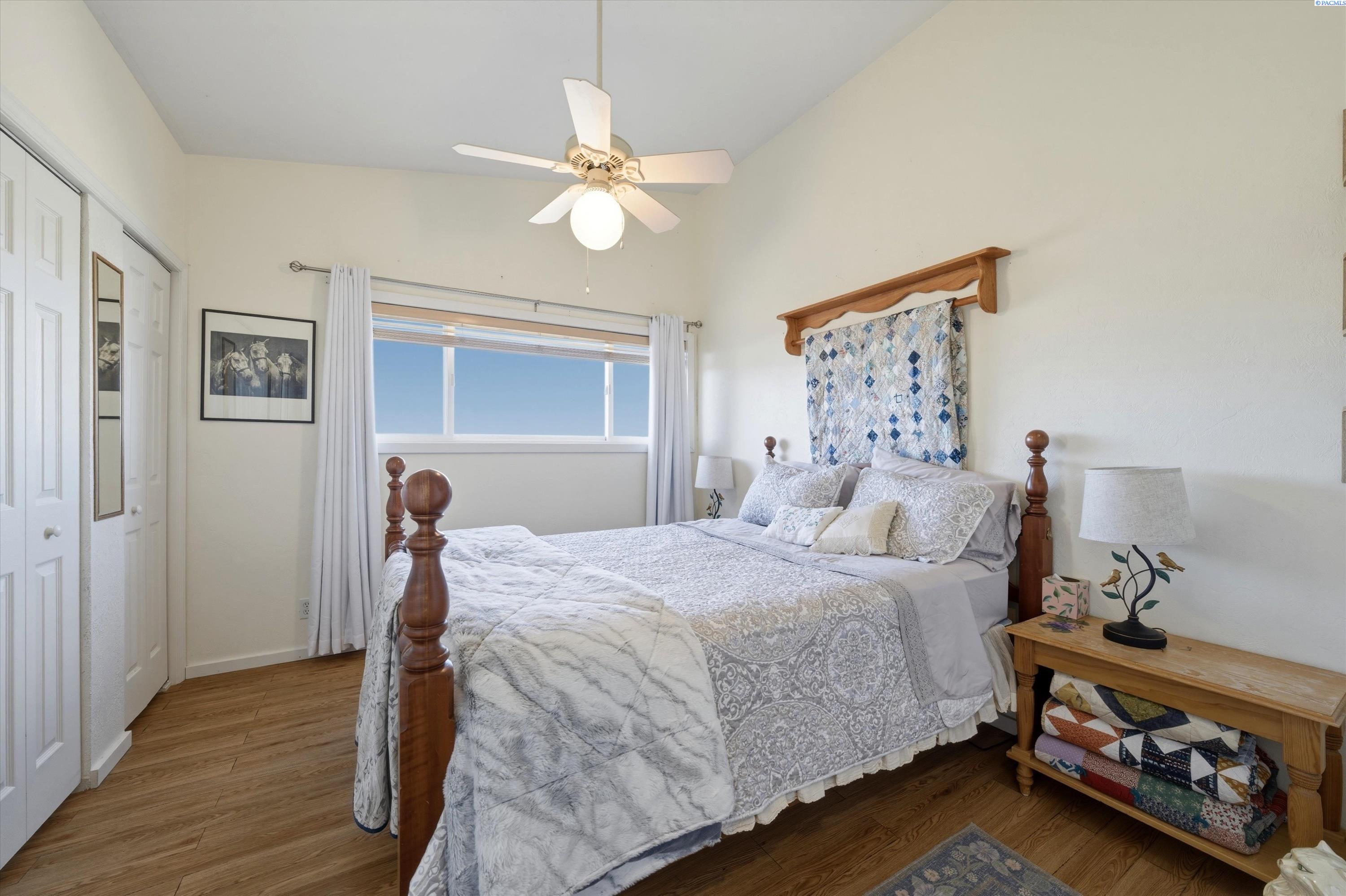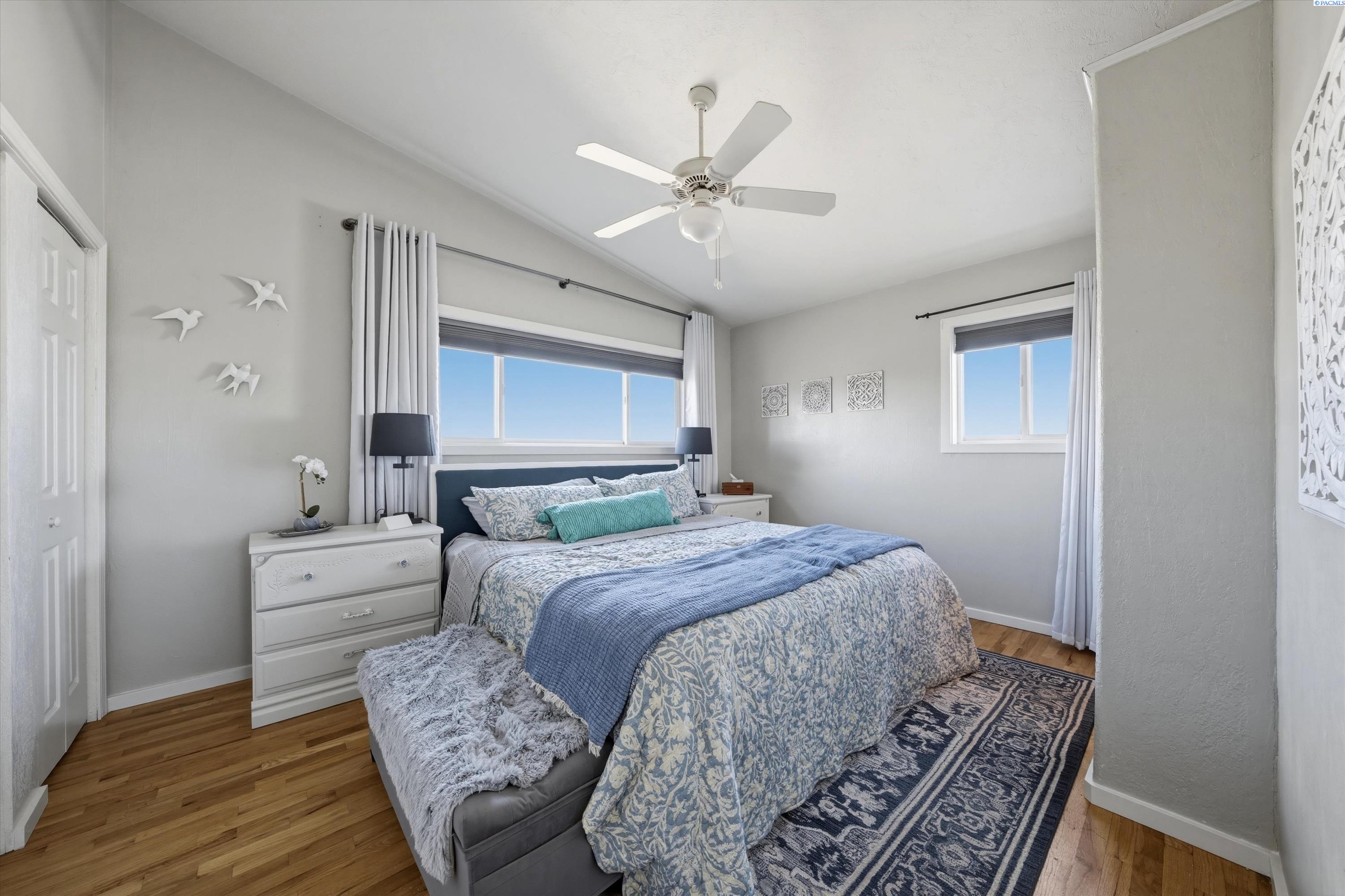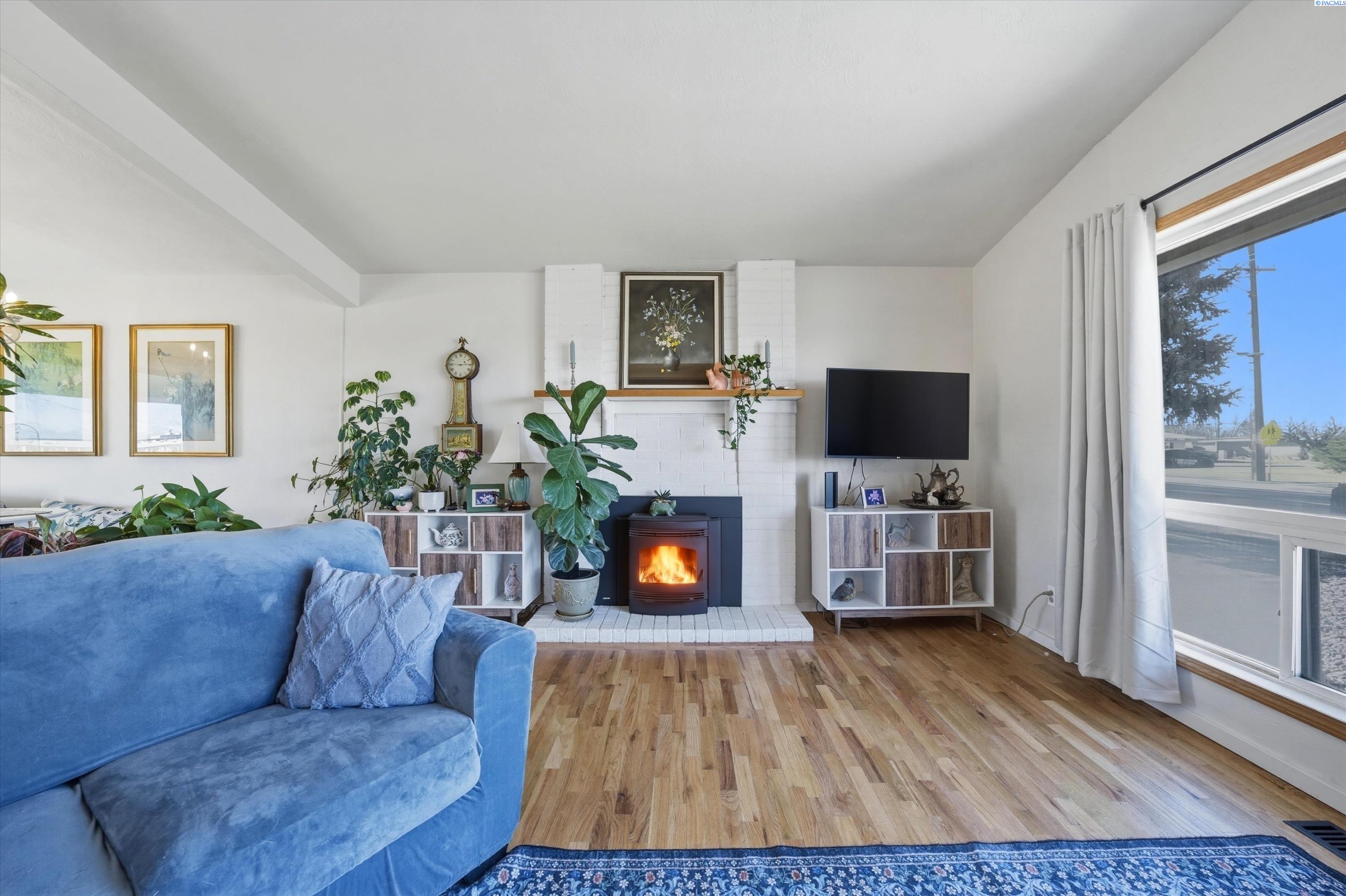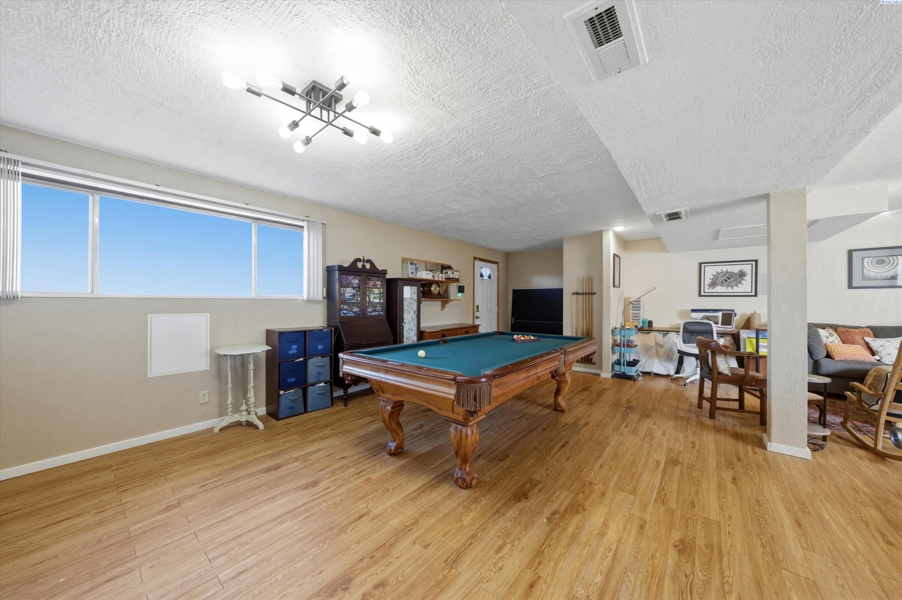 Step into this stylish mid-century tri-level home filled with character and quality updates. Vaulted ceilings on the main level and upstairs create an open, airy feel, while large living room windows bring in natural light. Hardwood floors add warmth and have been refinished in the living room and hallway. The living room also features a cozy pellet stove, perfect for cooler evenings. The kitchen offers newer appliances and professionally painted cabinetry, with the entire interior repainted in 2024. Upstairs youâll find four bedrooms, including a primary suite, plus three additional bedrooms and a full bath all with vaulted ceilings that enhance the sense of space and light. The lower level provides additional living space with a spacious family room, half bath, and laundry area, offering flexibility for guests, hobbies, or a home office setup. Outside, the professionally landscaped front yard was designed with low water usage in mind. The fully fenced backyard sits on a large lot and features irrigation, a large covered deck (installed in 2019), play court, storage shed, and peek-a-boo river views to enjoy from your own backyard retreat. The pool table stays, adding to the fun. Major systems have been updated for peace of mind, including an air handler and heat pump (2018) and a water heater (2024). A unique property that blends mid-century charm, modern updates, and functional living, all on a spacious lot with backyard river glimpses.