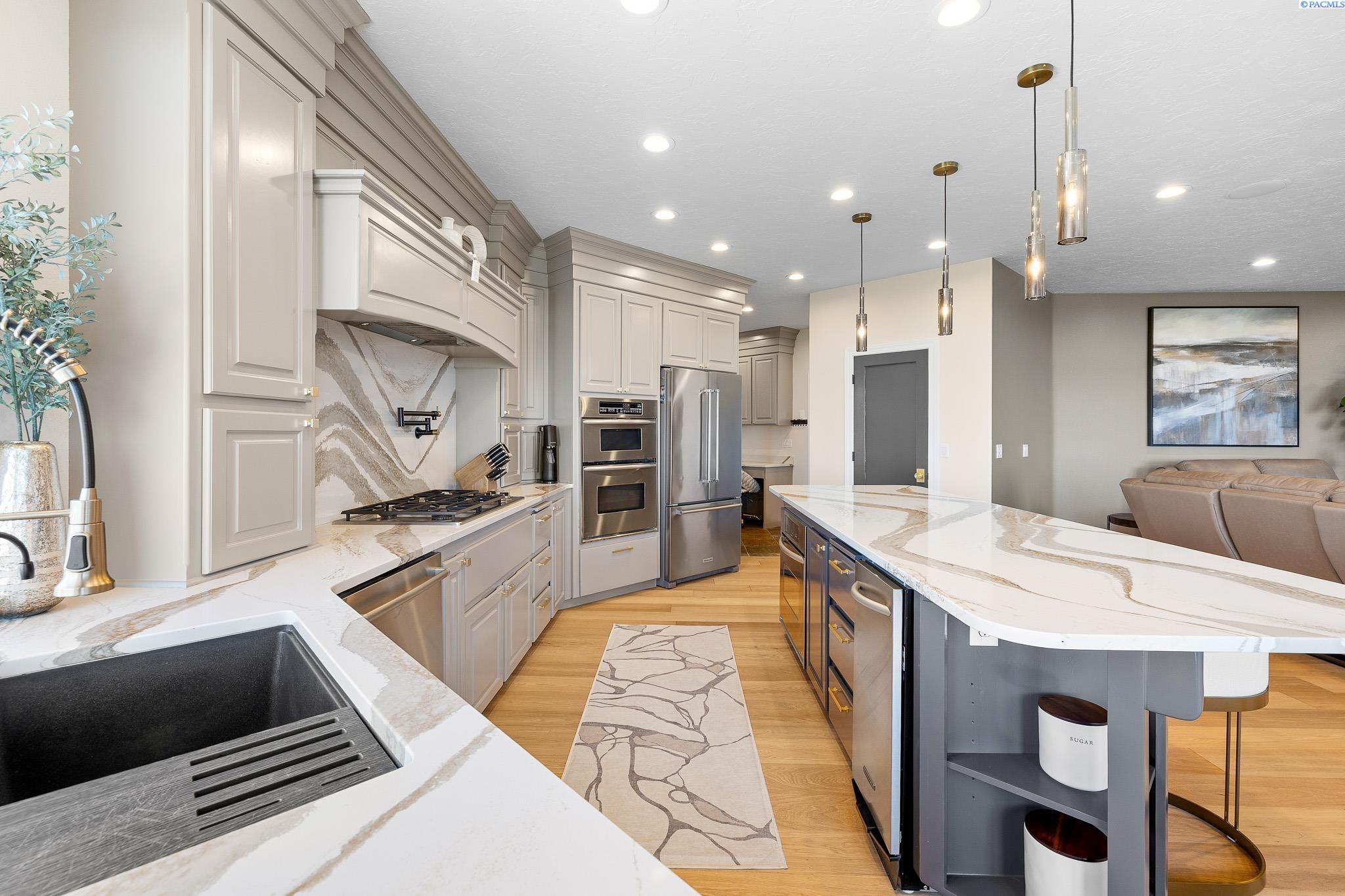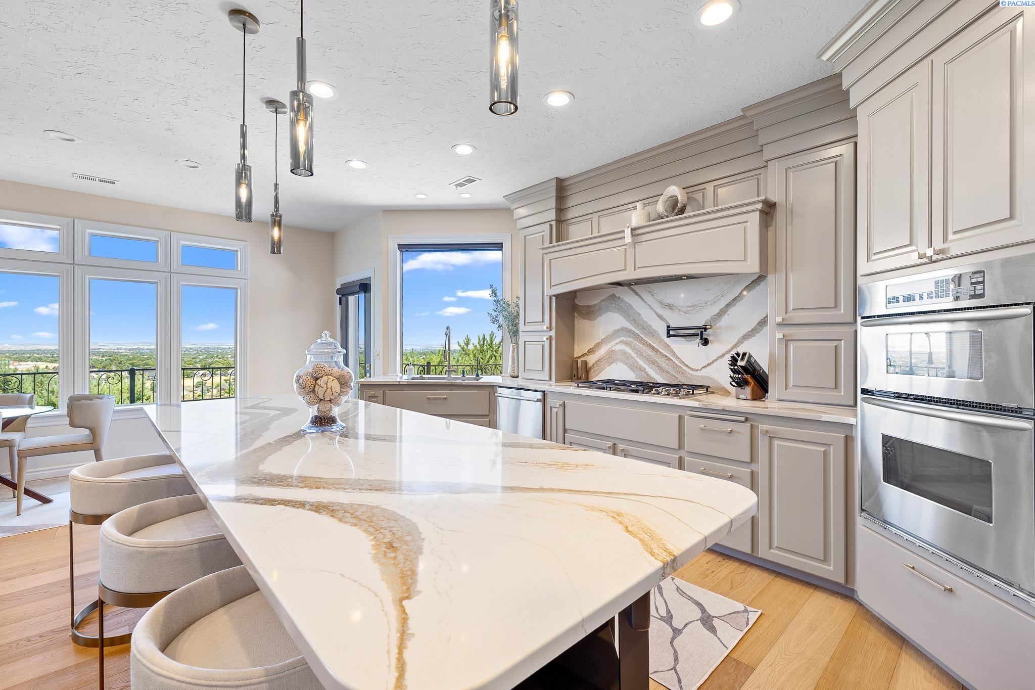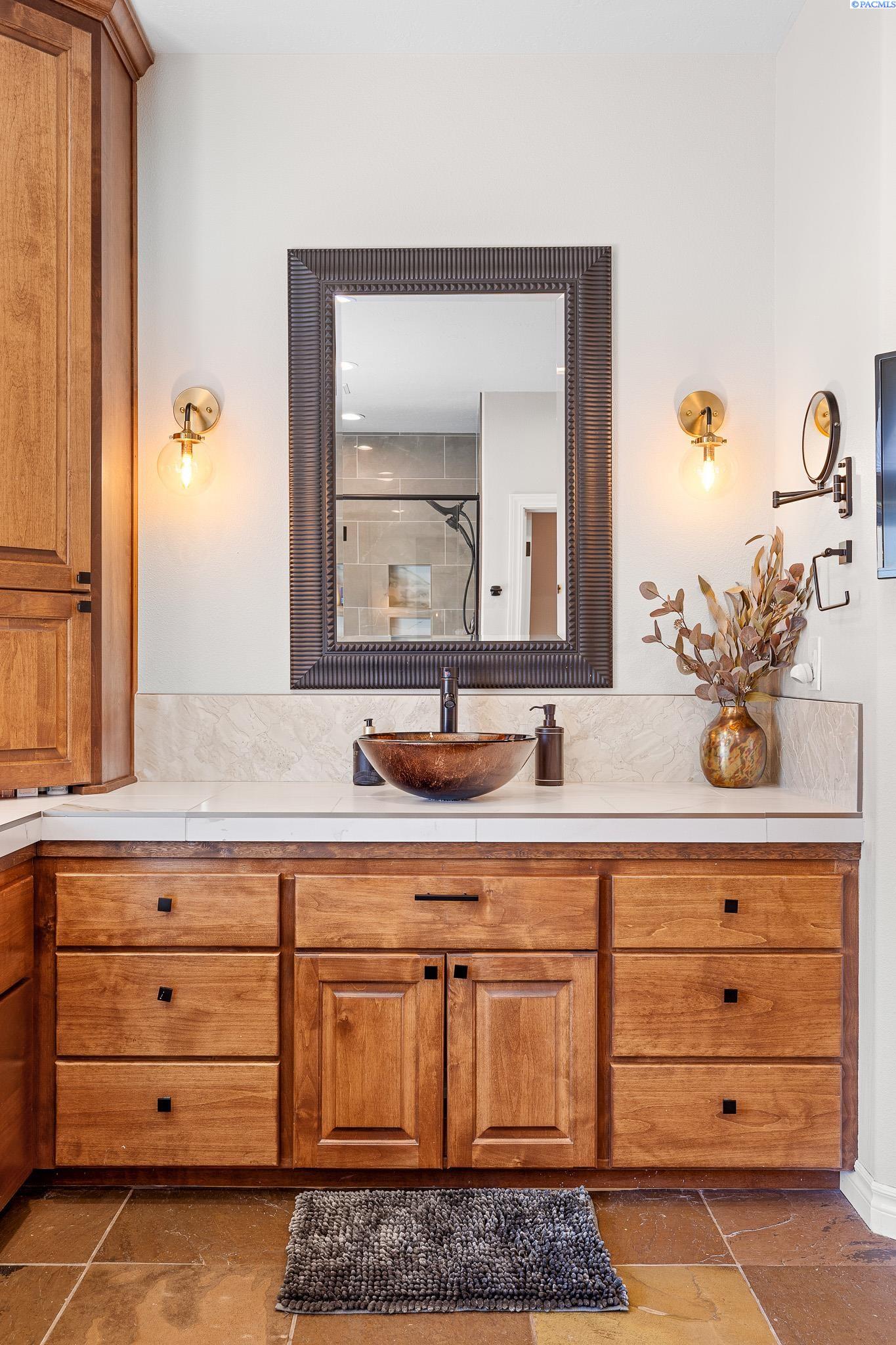 MLS# 290635 MLS# 285718 This gorgeous full-view home in the prestigious Canyon Lakes Golf Community has been extensively updated, offering all the benefits of a new build while preserving the elegance of classic mediterranean architecture. With three bedrooms PLUS an office and two full bathrooms and two half bathrooms, this home doesn't disappoint. Set atop a spacious and private wooded lot, this elegant one-story home with a walk-out basement offers over 4,464 sq ft of refined living space and boasts sweeping views of the golf course and the panoramic Tri-Cities landscape.The stunning newly updated kitchen features high-end Cambria Quartz Gold countertops, custom cabinetry, three ovens, and designer touches throughout. The main-level great room features a custom-built 3D fireplace with seating and large windows that frame the incredible view. The stunning foyer offers a grand staircase and balcony overlooking incredible views of the Tri-Cities and the lower level of the home. French oak hardwood flooring, four updated bathrooms, an updated laundry area, fresh interior and exterior paint, and upgraded lighting and finishes make this home truly move-in ready. The primary suite is on the main floor and includes an extensively remodeled bathroom, his/hers closets with stackable washer and dryer and new life proof/pet proof carpet. Downstairs, there is a second primary suite and a second, lower-level kitchenette that shines with black and gold granite, a gold hammered sink, and a reverse osmosis system. The lower level also offers another spacious family room with a second fireplace and access to the lower patio thatâs covered for rainy or hot days. French oak hardwood flooring and tile, remodeled bathrooms, an updated laundry area, fresh interior and exterior paint, and upgraded lighting and finishes make this home stunning Outside, the professionally landscaped yard is enhanced by mature evergreen trees that bring a PNW feel, a refreshing contrast to the surrounding desert terrain. System upgrades include a new upstairs HVAC system, water heater, and Tesla charger that add to your comfort and energy efficiency needs. Located in the award-winning Canyon Lakes Golf Community home to an 18-hole championship course you're minutes from everything!